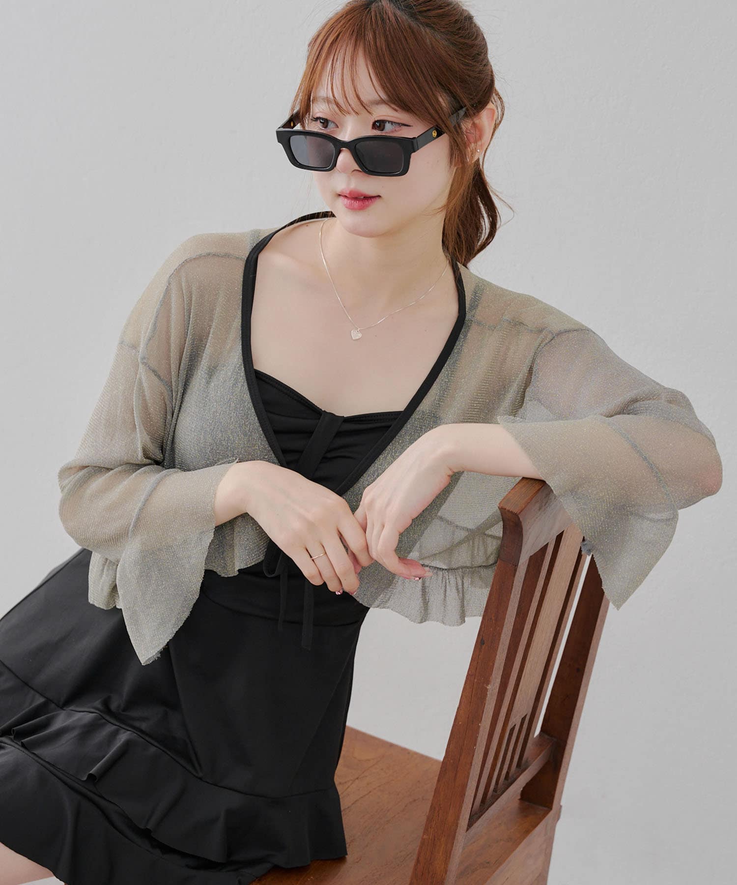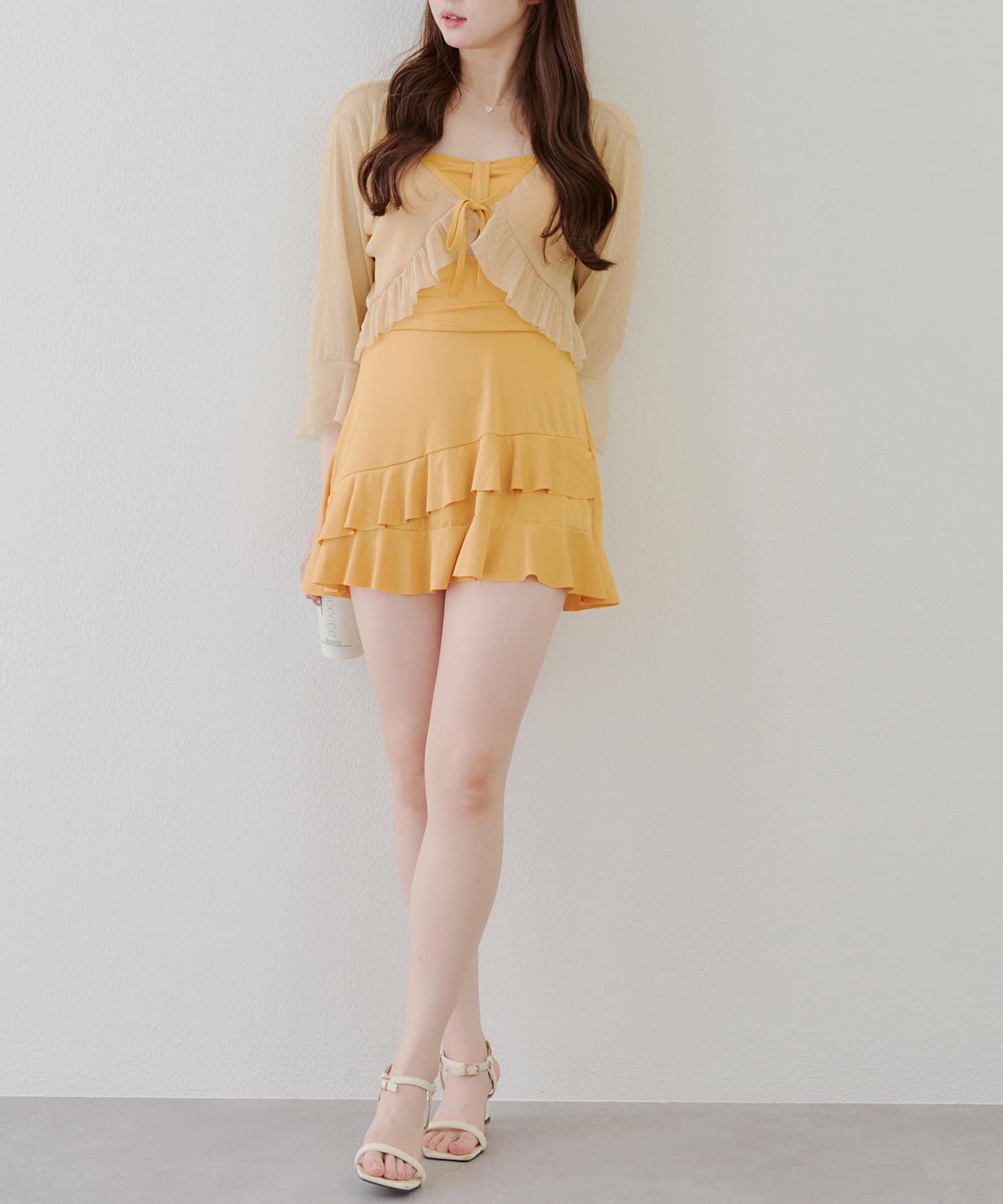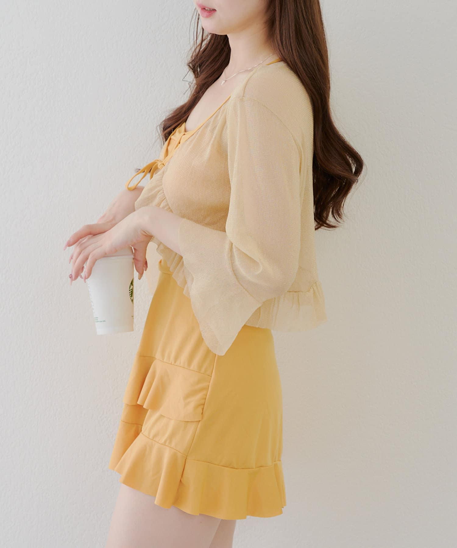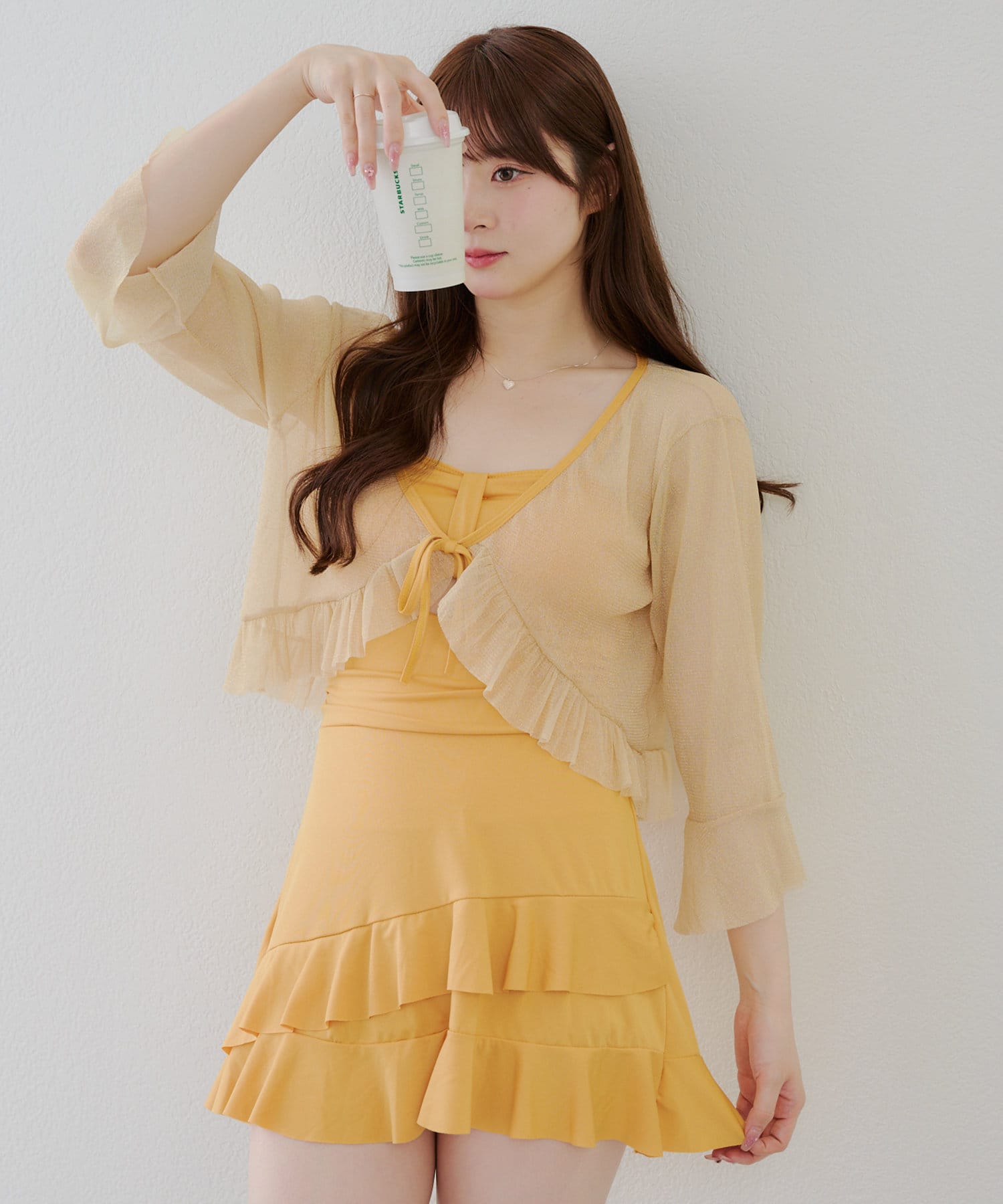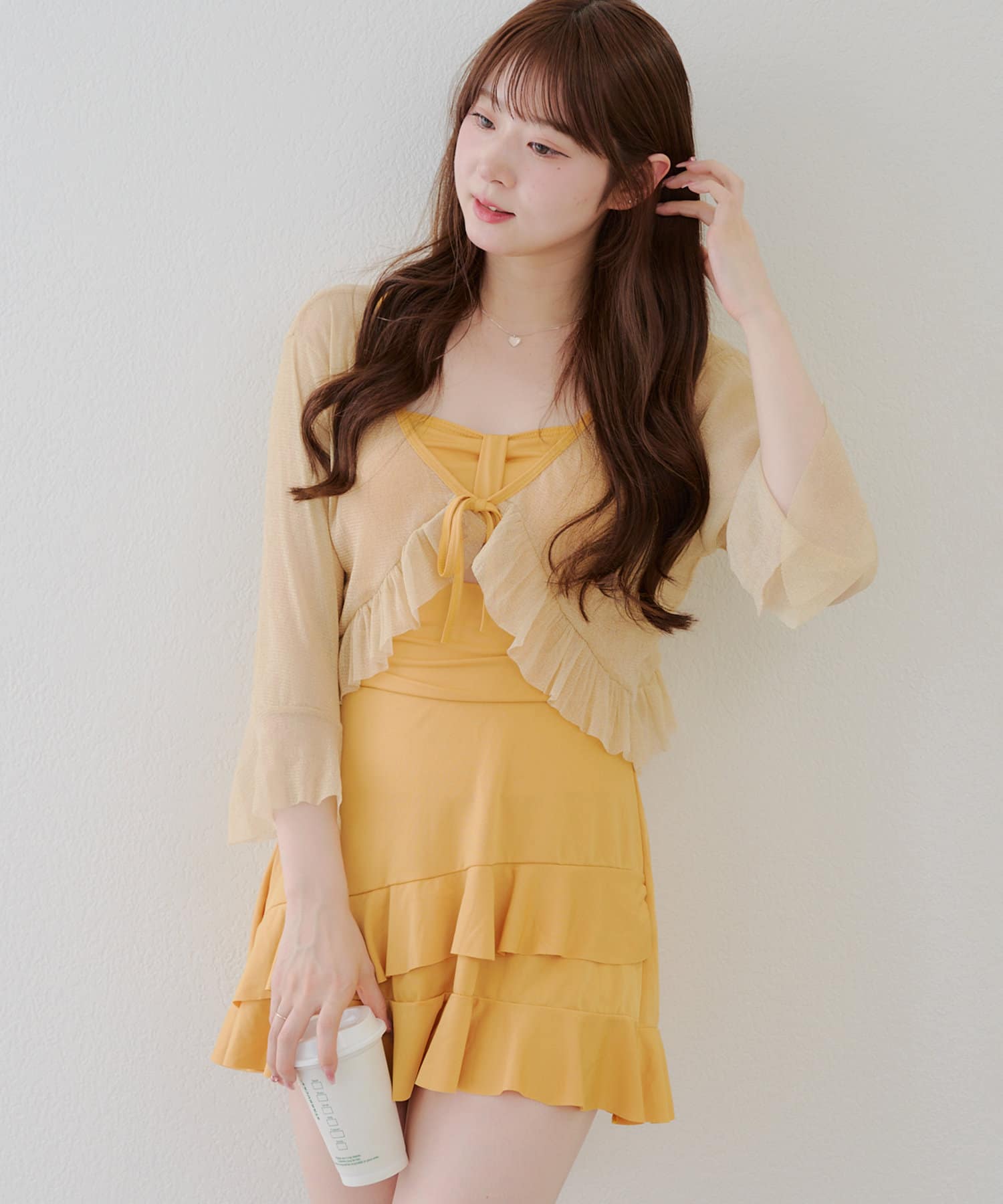 【WEB限定】シアーボレロ×裾ティアード水着2点セット