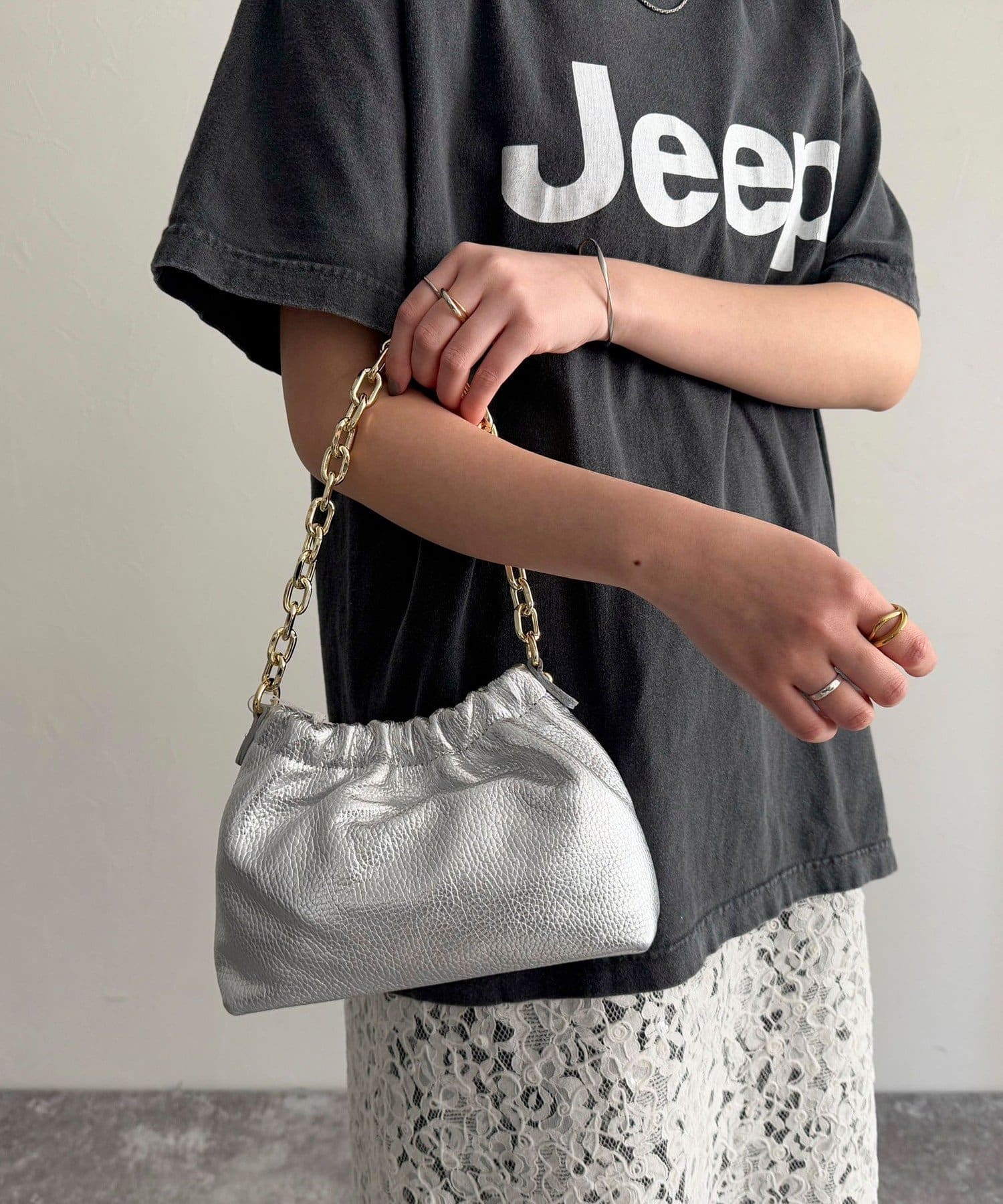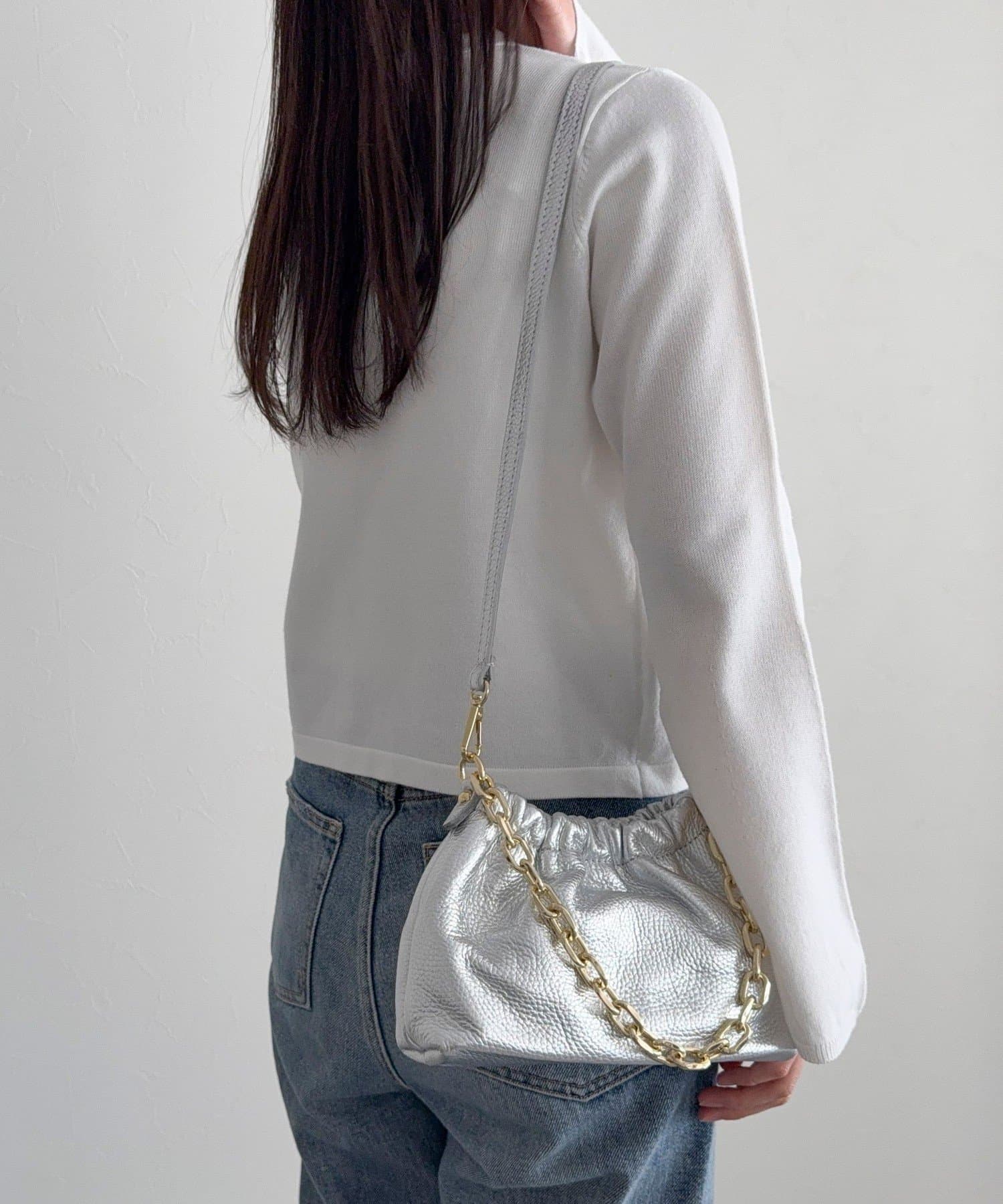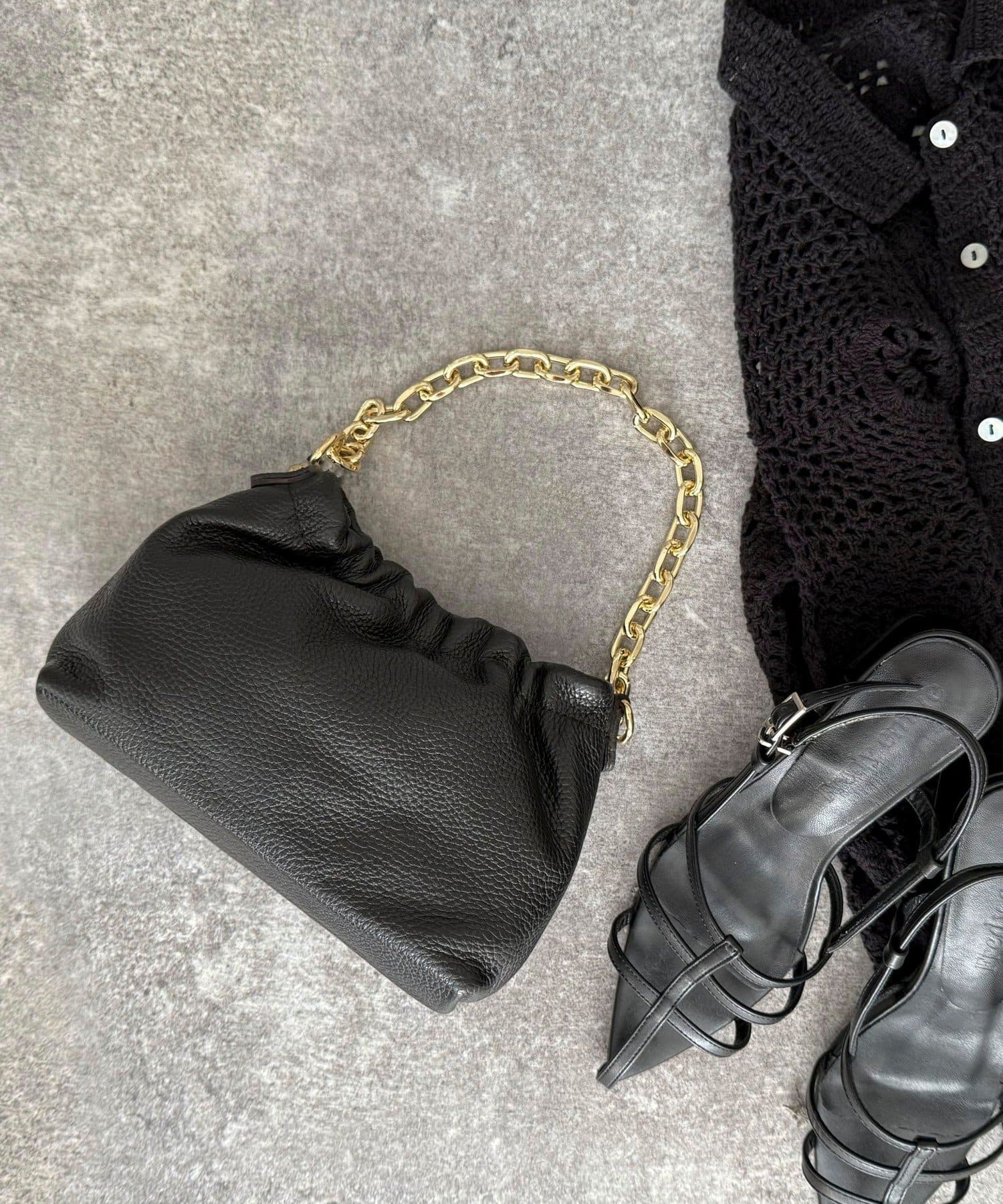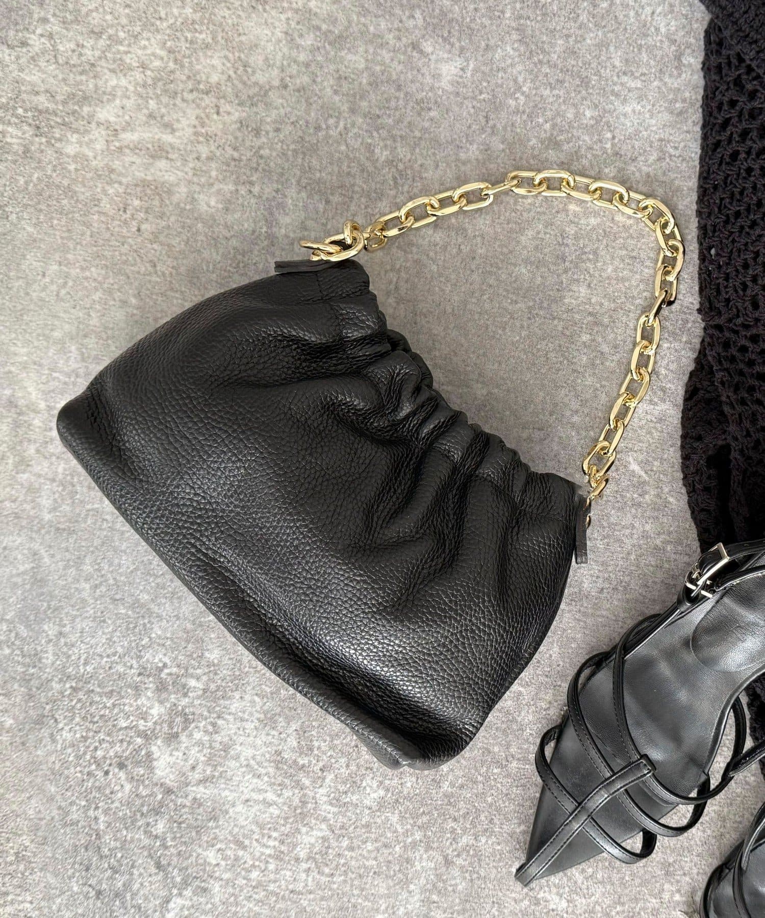 【AULENTTI/オーレンティ】チェーンギャザーレザーショルダーバッグ