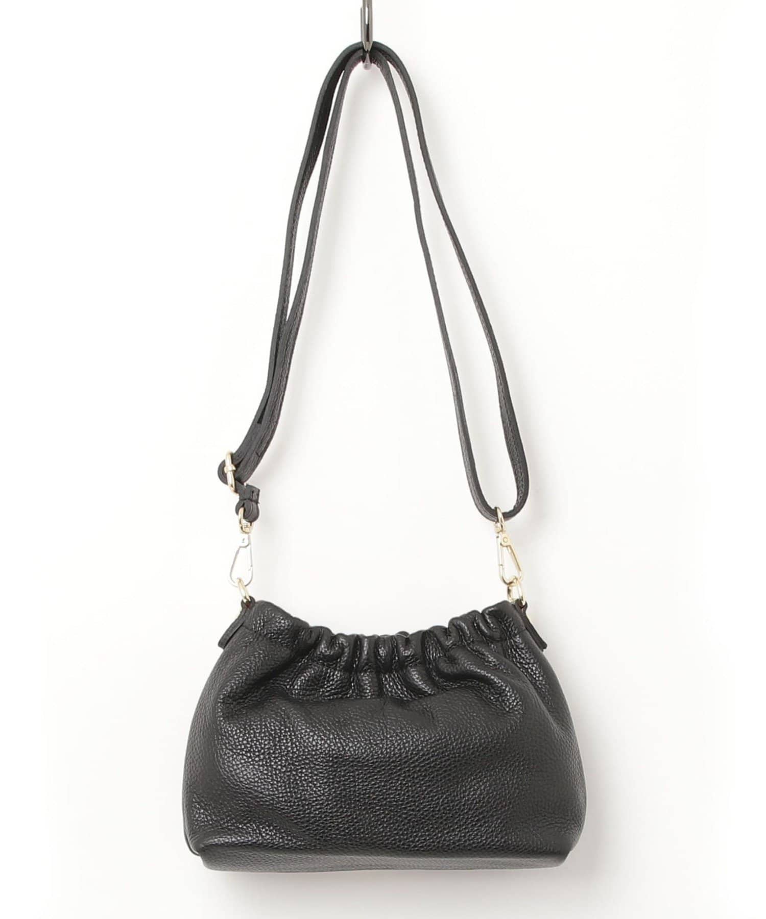 ・上質なレザー素材とゴールドの金具が高級感たっぷりなギャザーバッグです