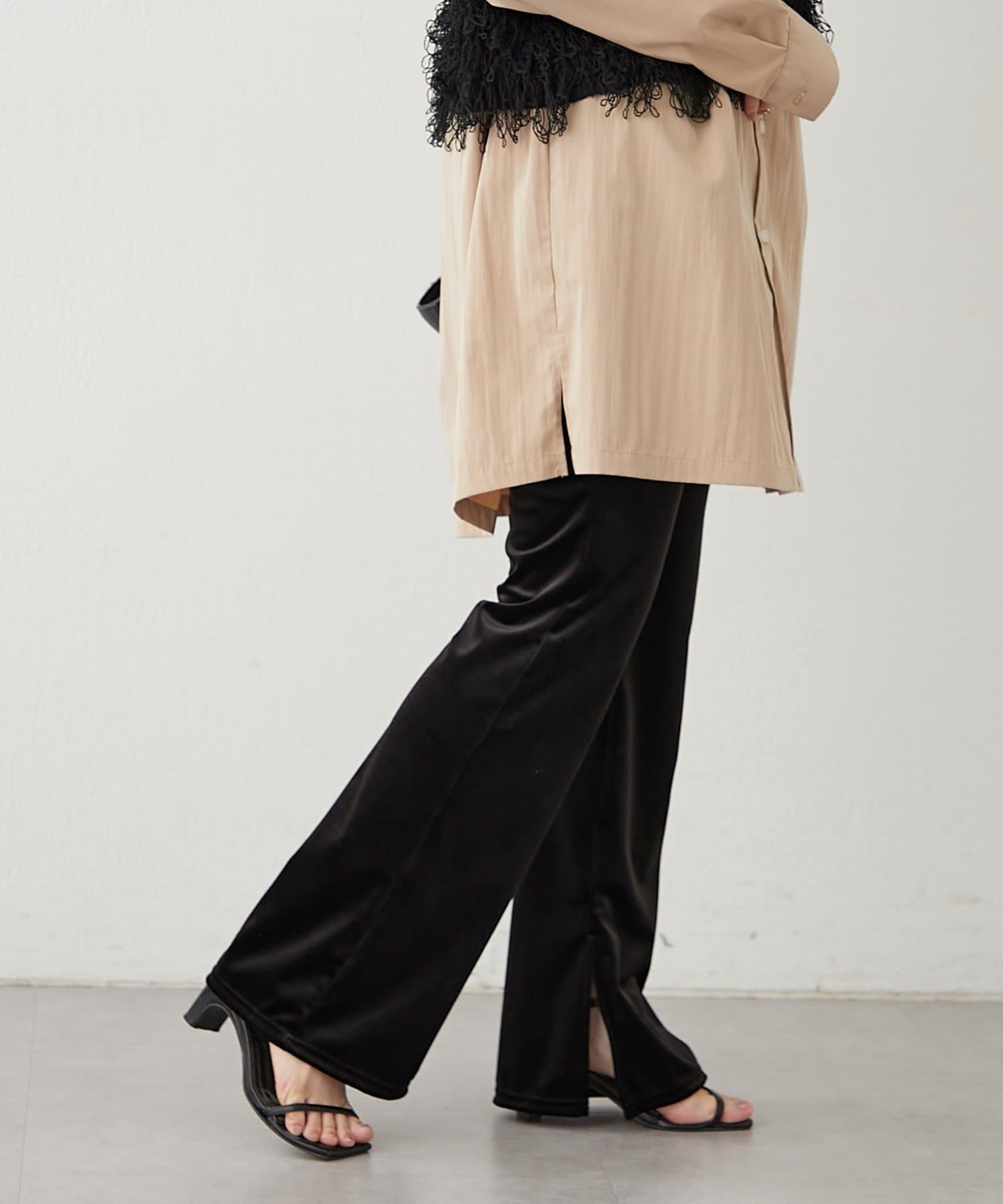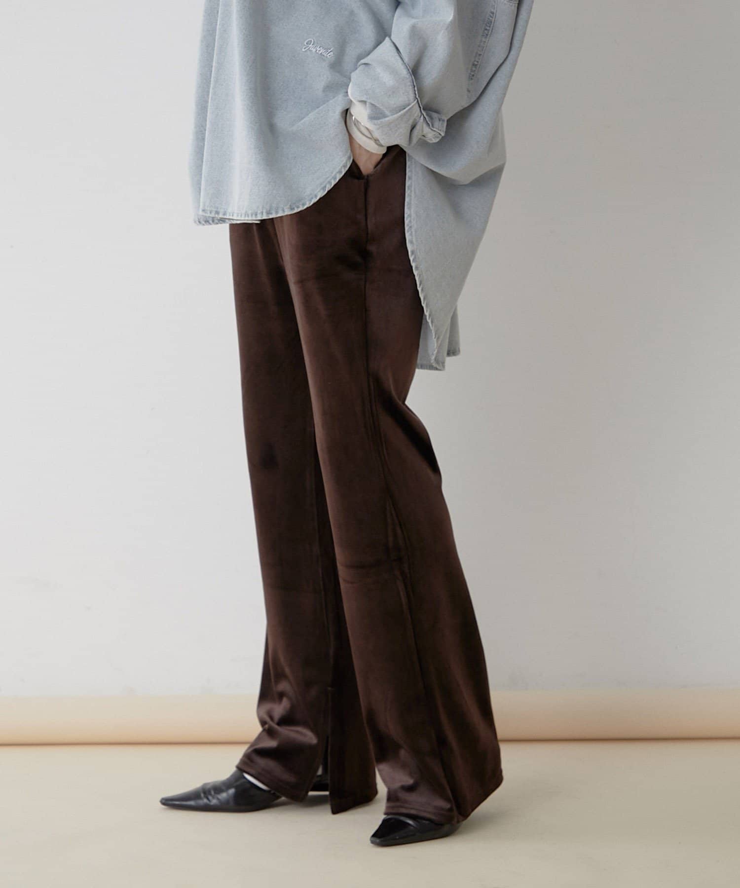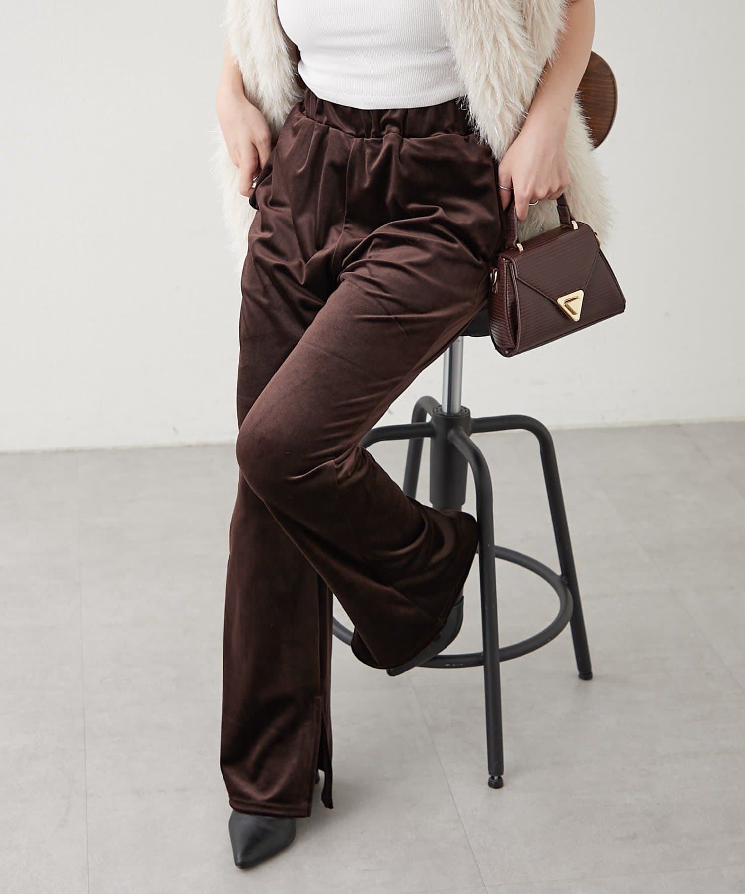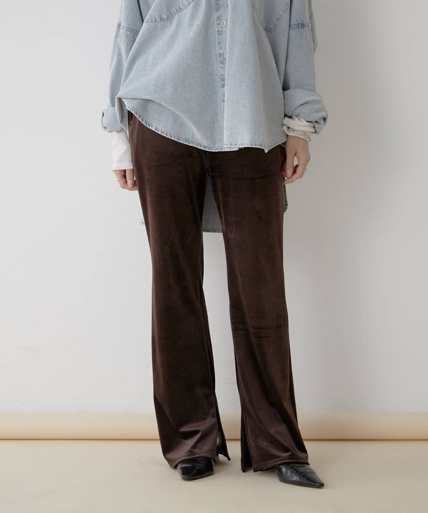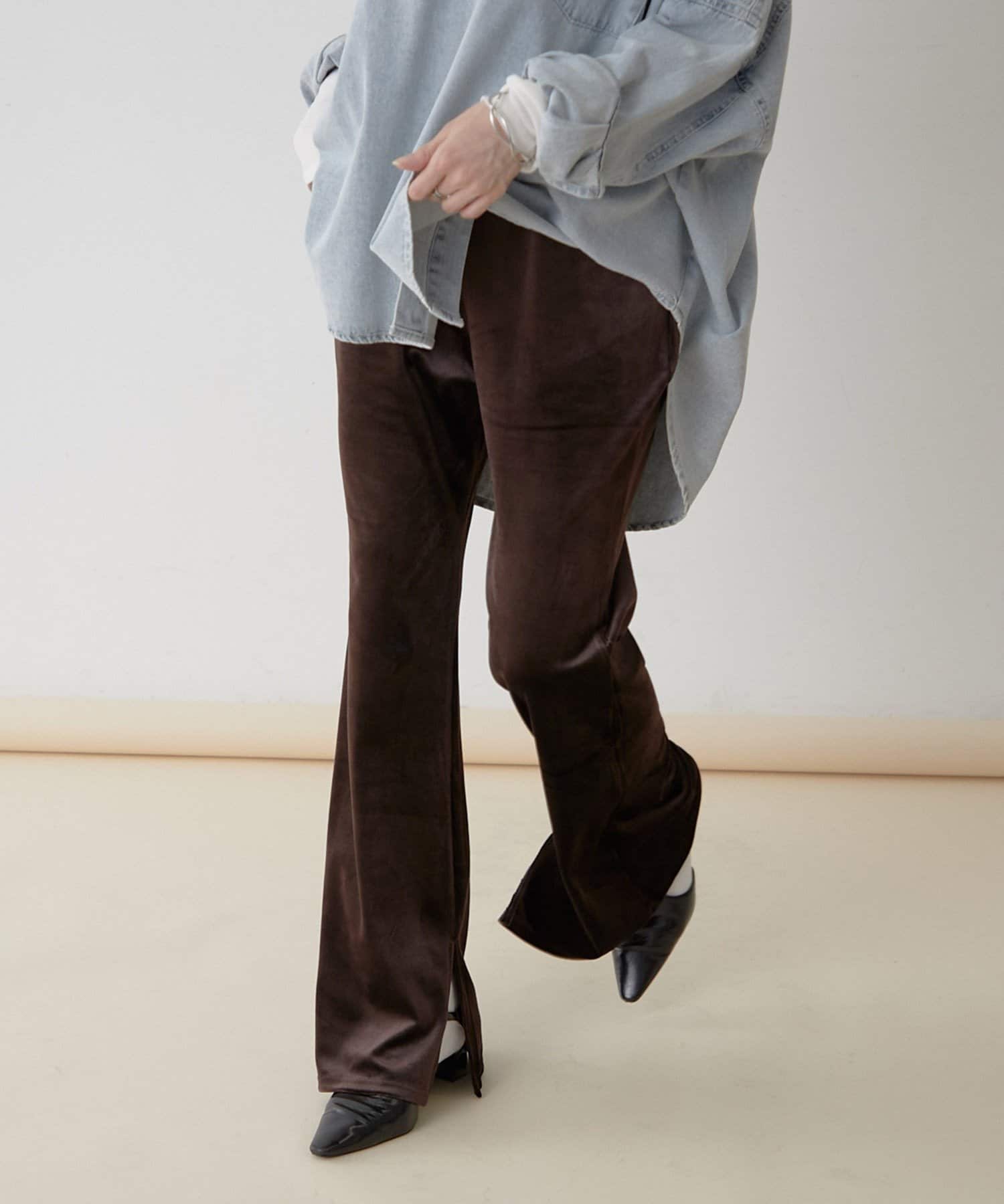 【nane】【-3kg見え!】裾スリットフレアベロアパンツ