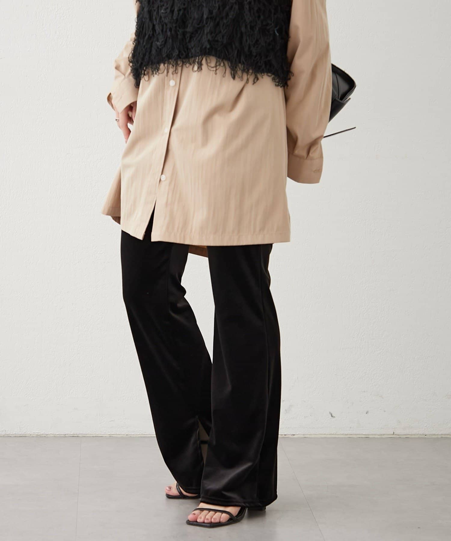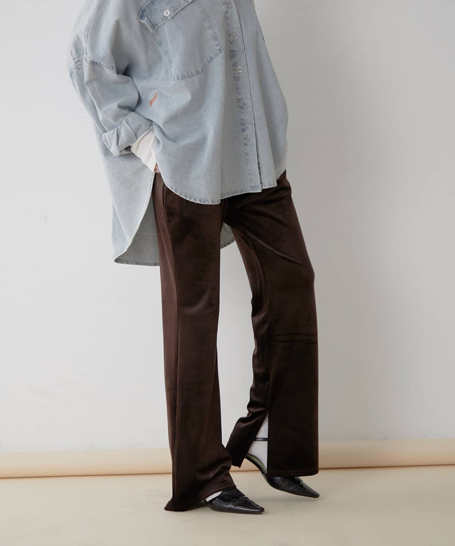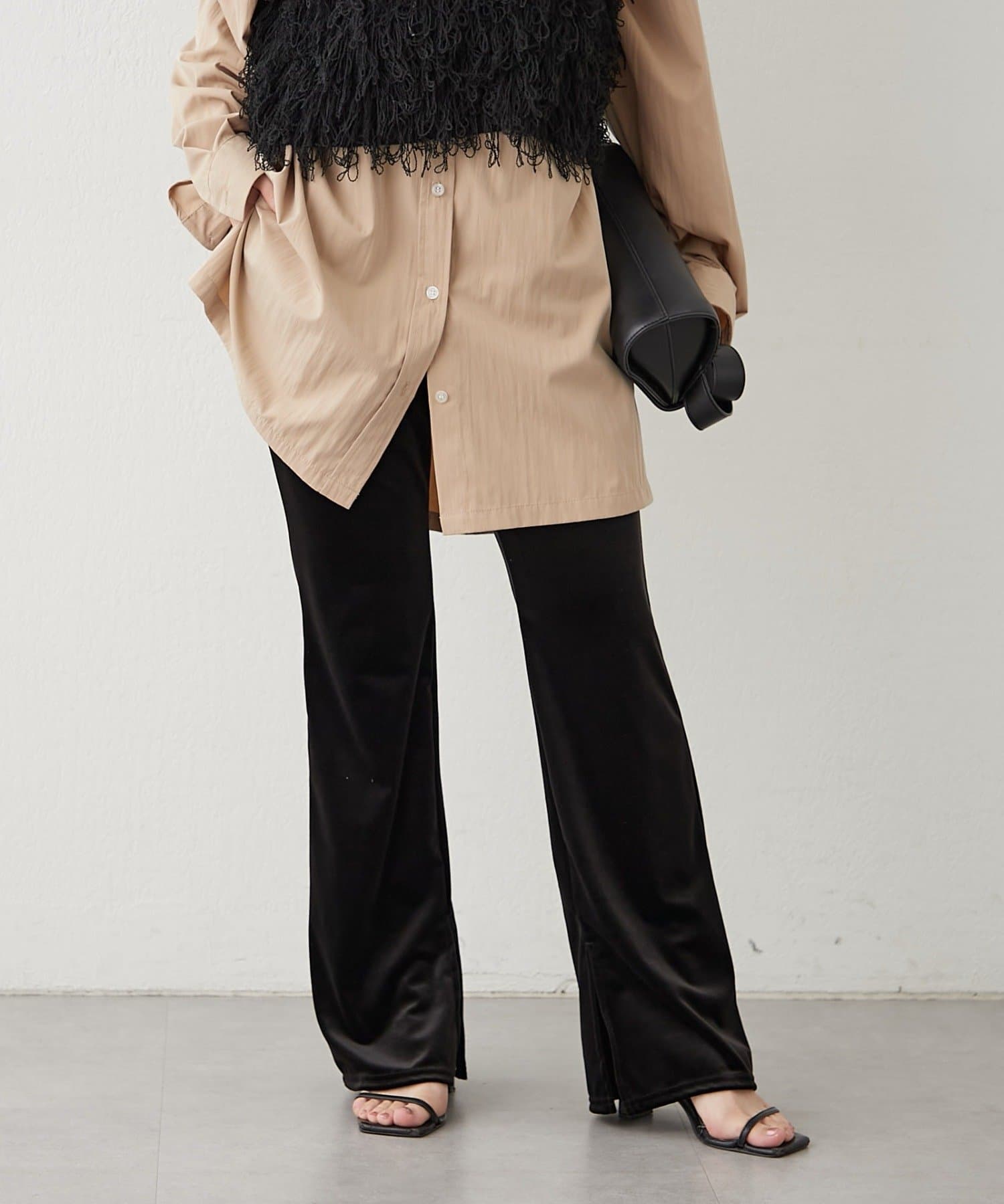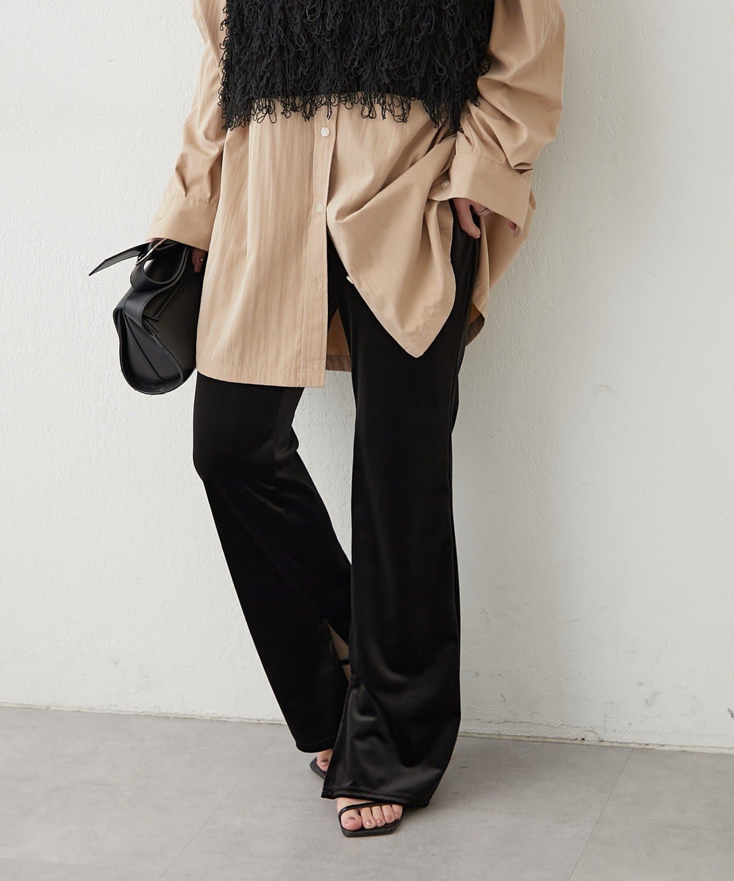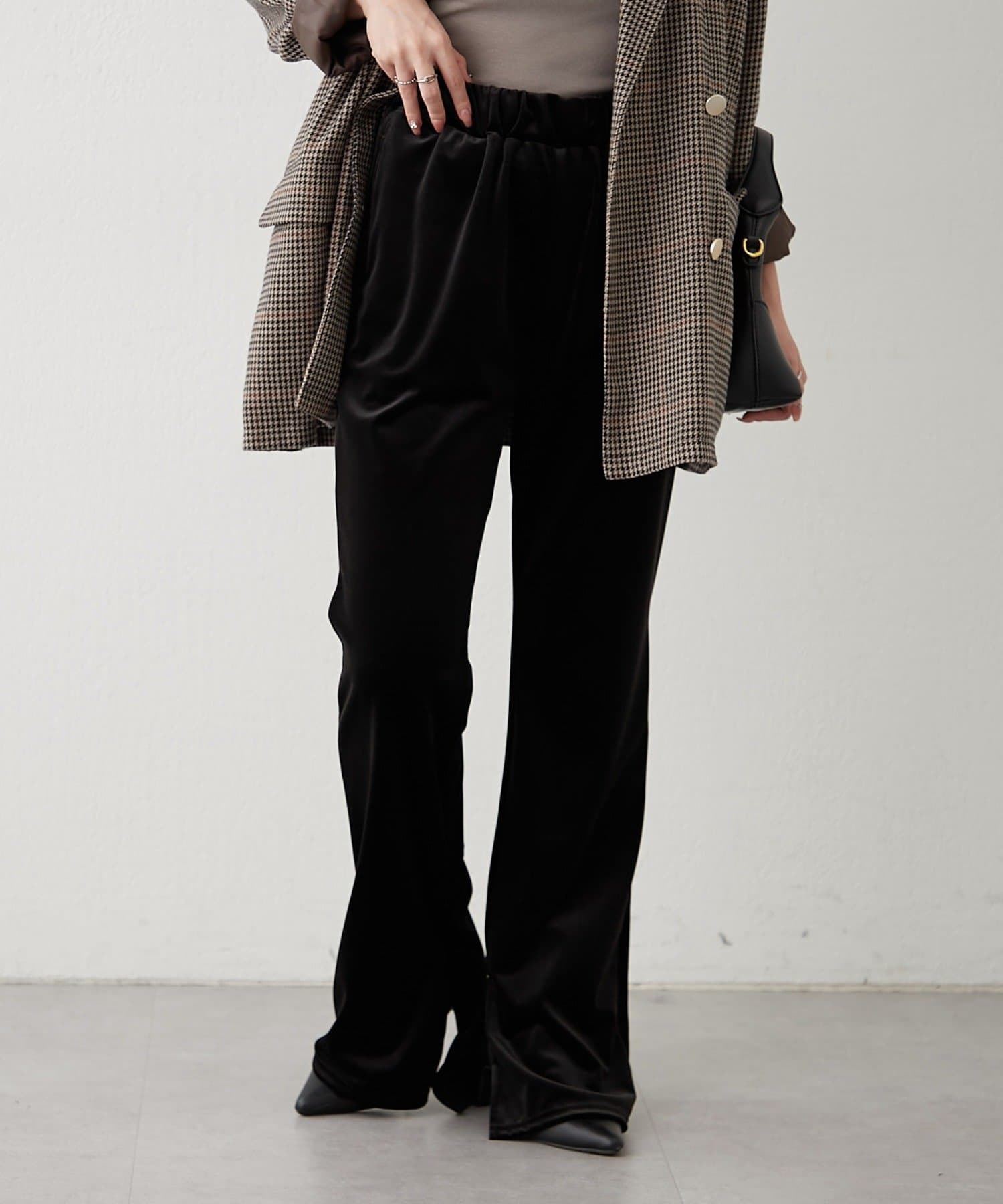 【nane】【-3kg見え!】裾スリットフレアベロアパンツ