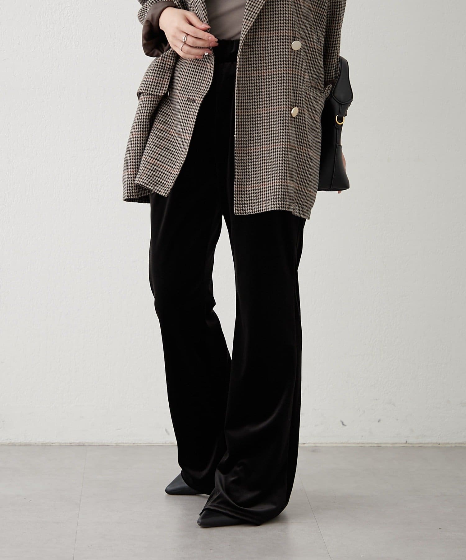 ・ウエスト総ゴムでらくちんなのはもちろん、伸び感あるベロア素材で動きやすいさ抜群◎