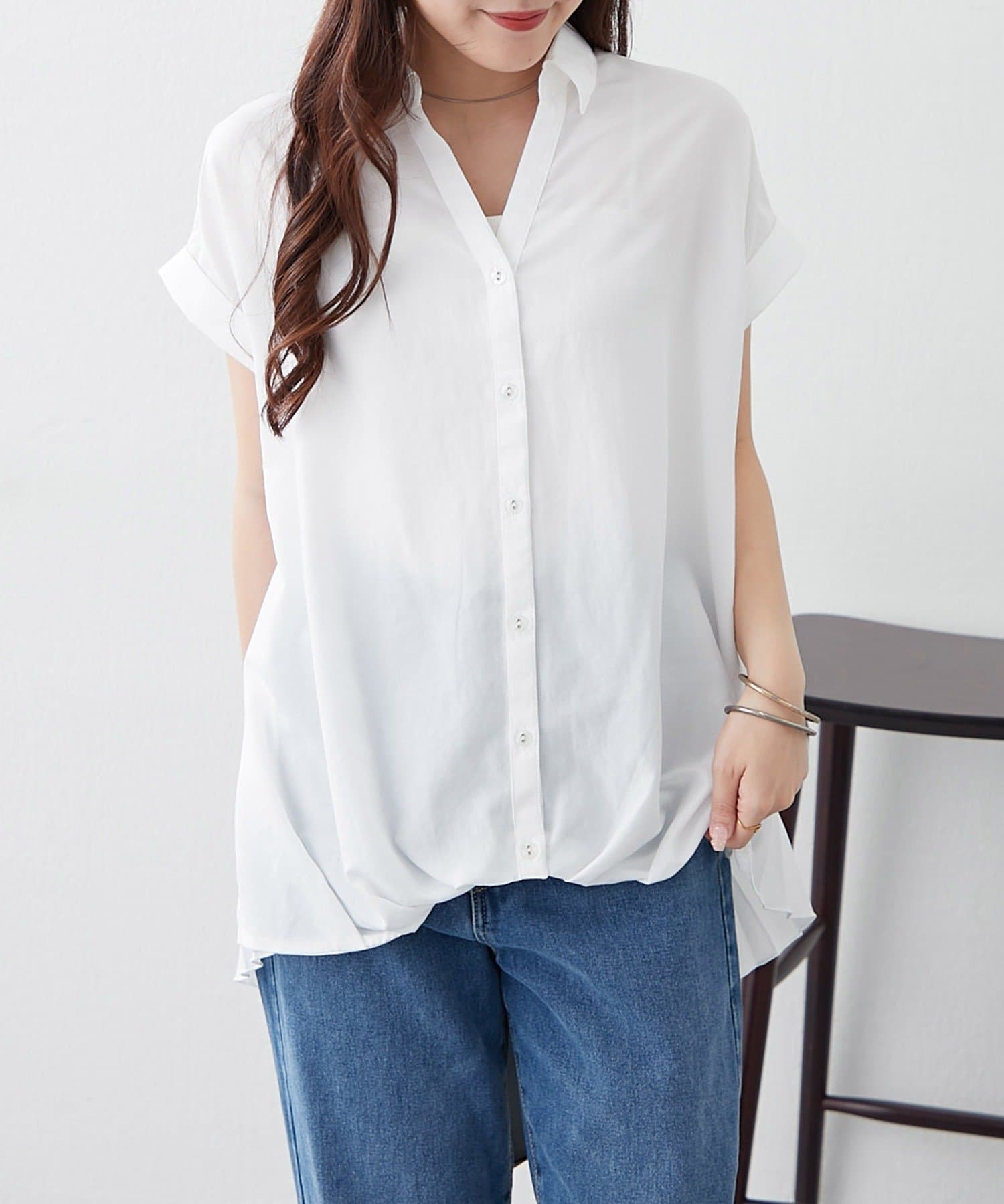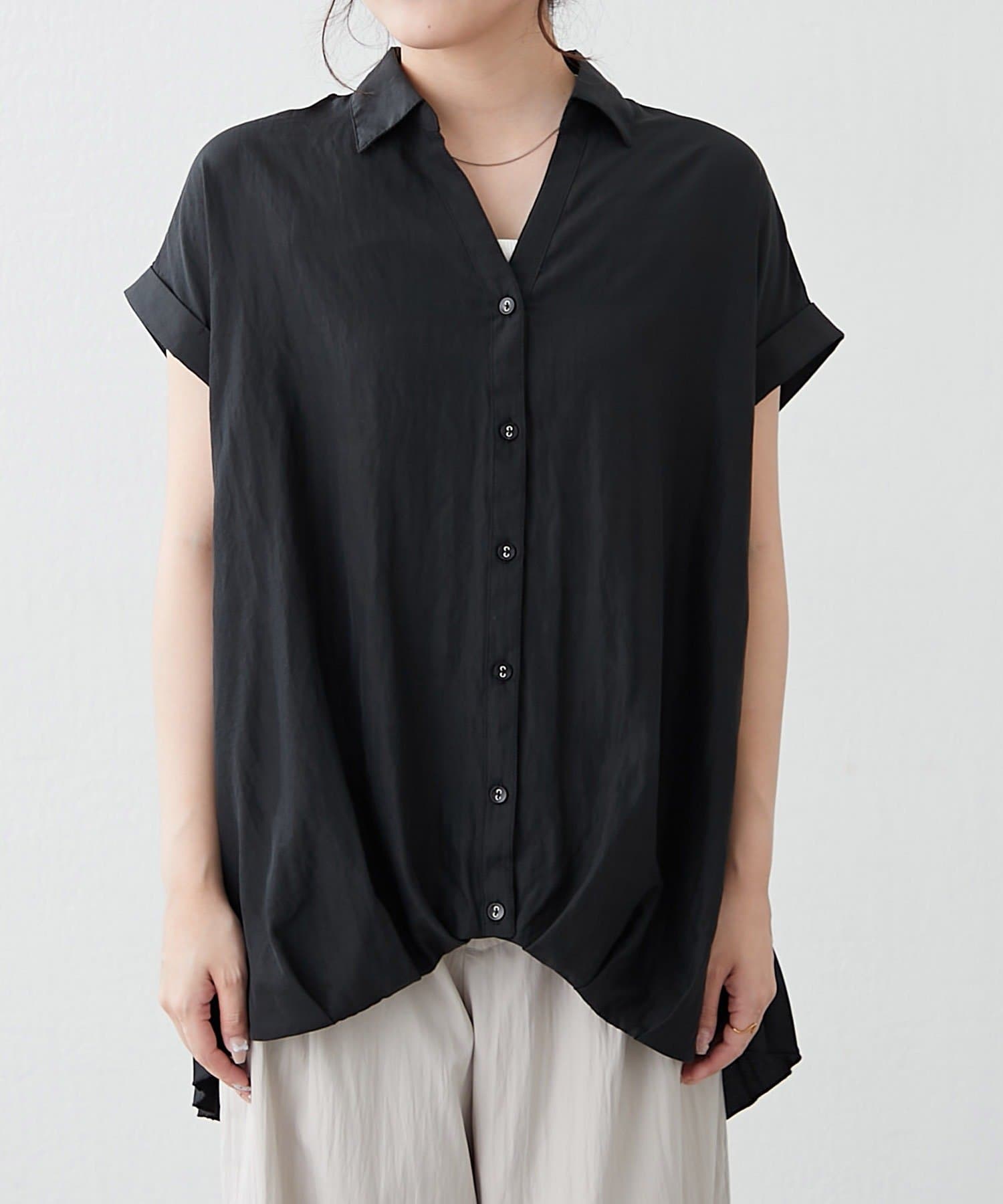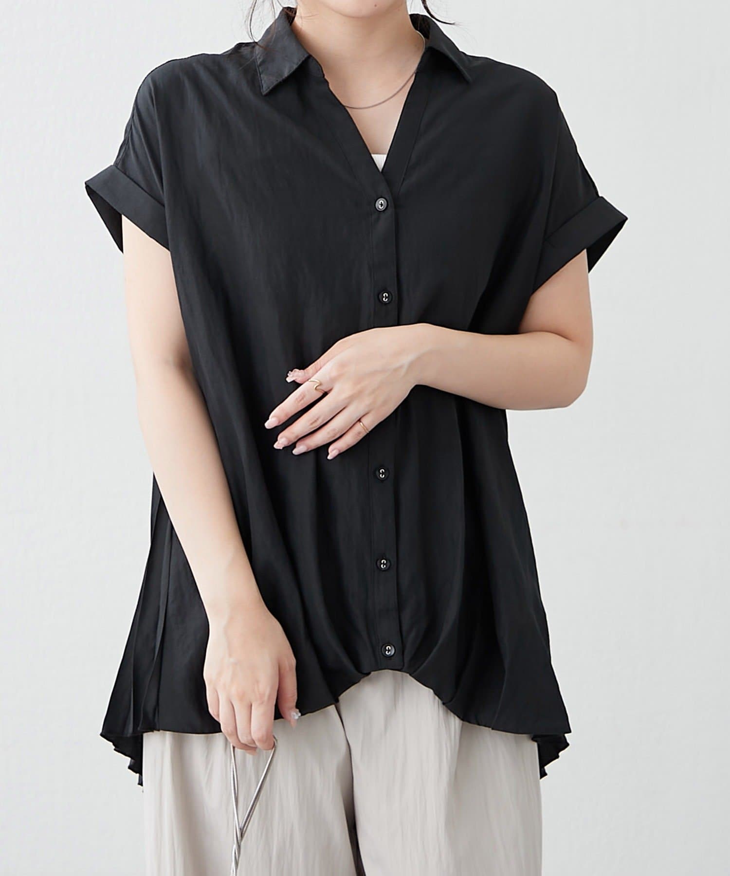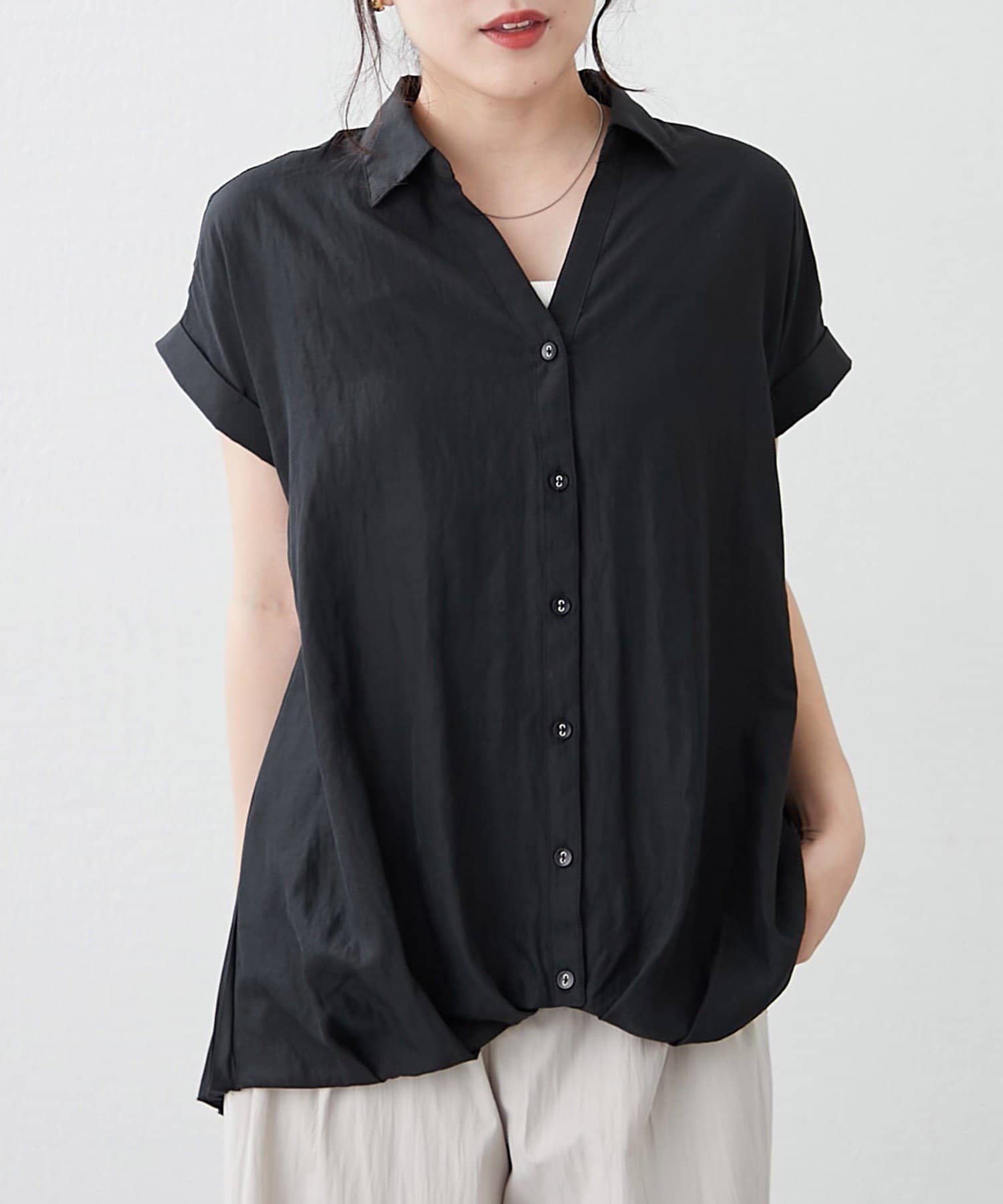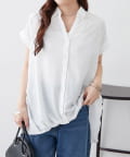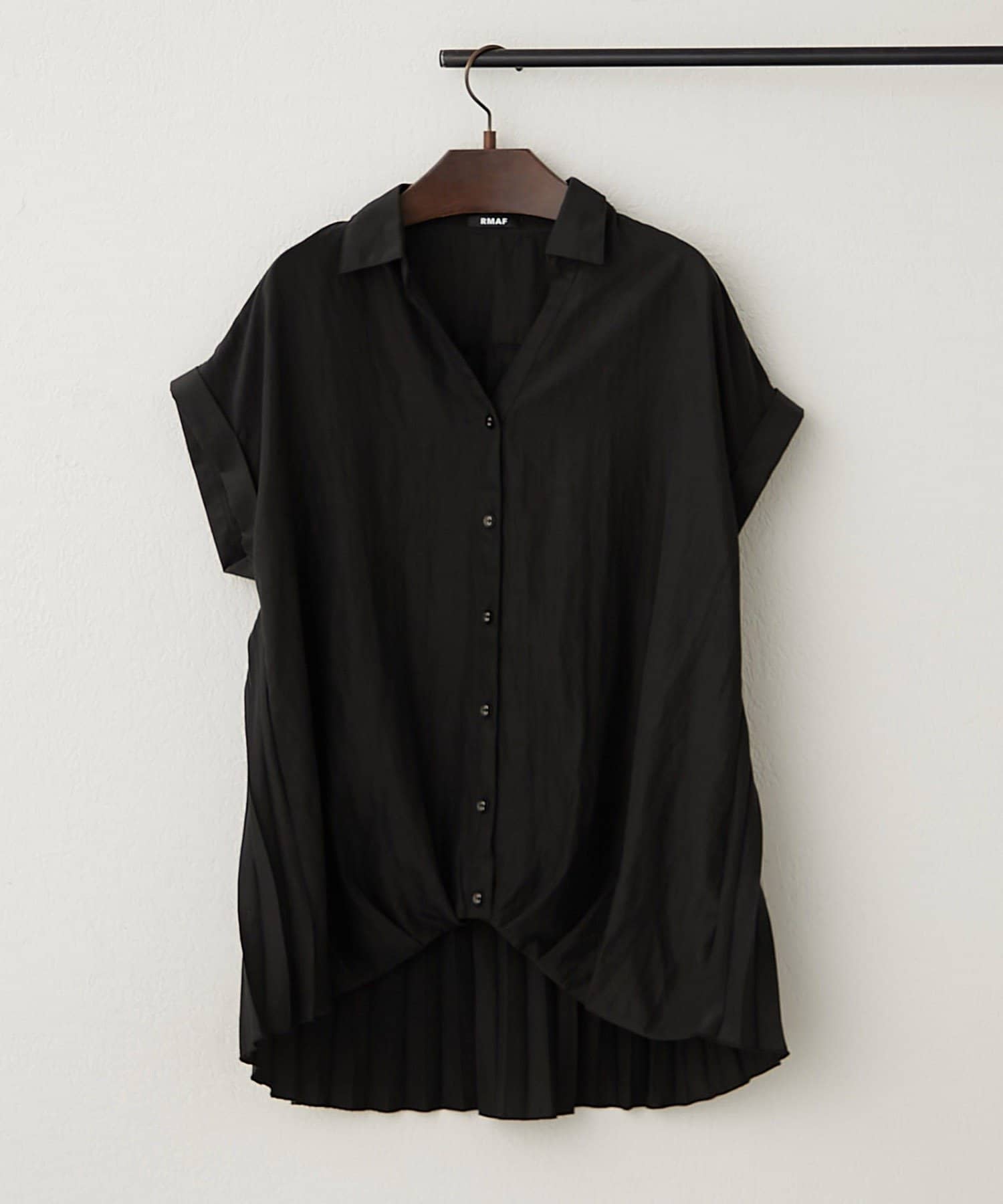 ・一見シンプルなスキッパーシャツブラウスながら、後ろがプリーツになっておりバックスタイルも決まる一枚