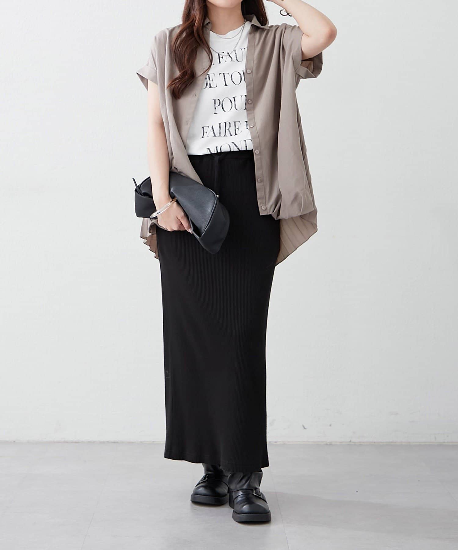 ・デニムパンツやリブスカートに変えればオフの日スタイルにも合う一枚です