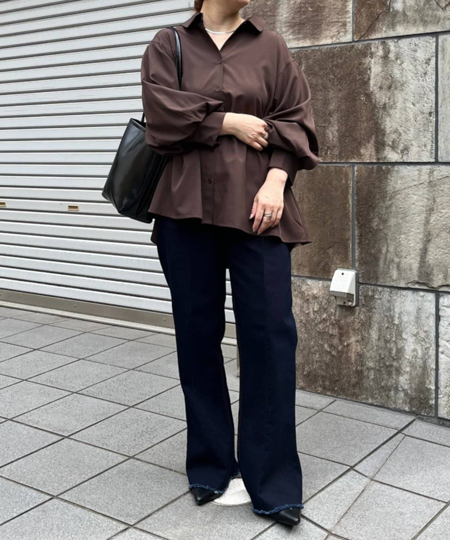 ・前後差のある丈感と広がり感あるシルエットで体型カバーにも◎