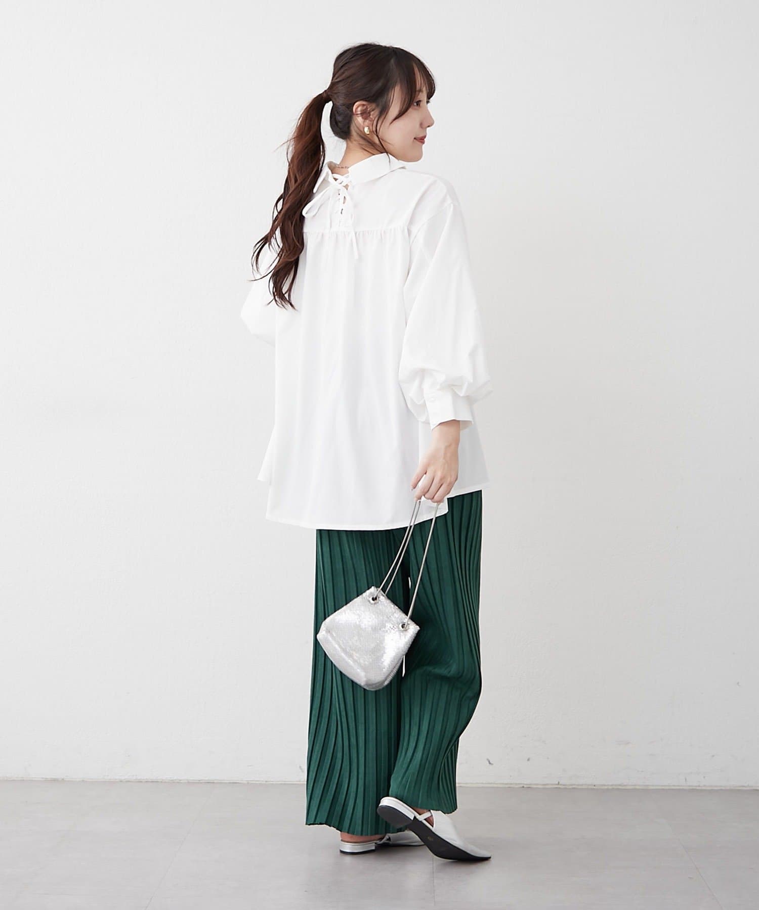 ・毎回人気の袖ボリュームデザインのシャツブラウス