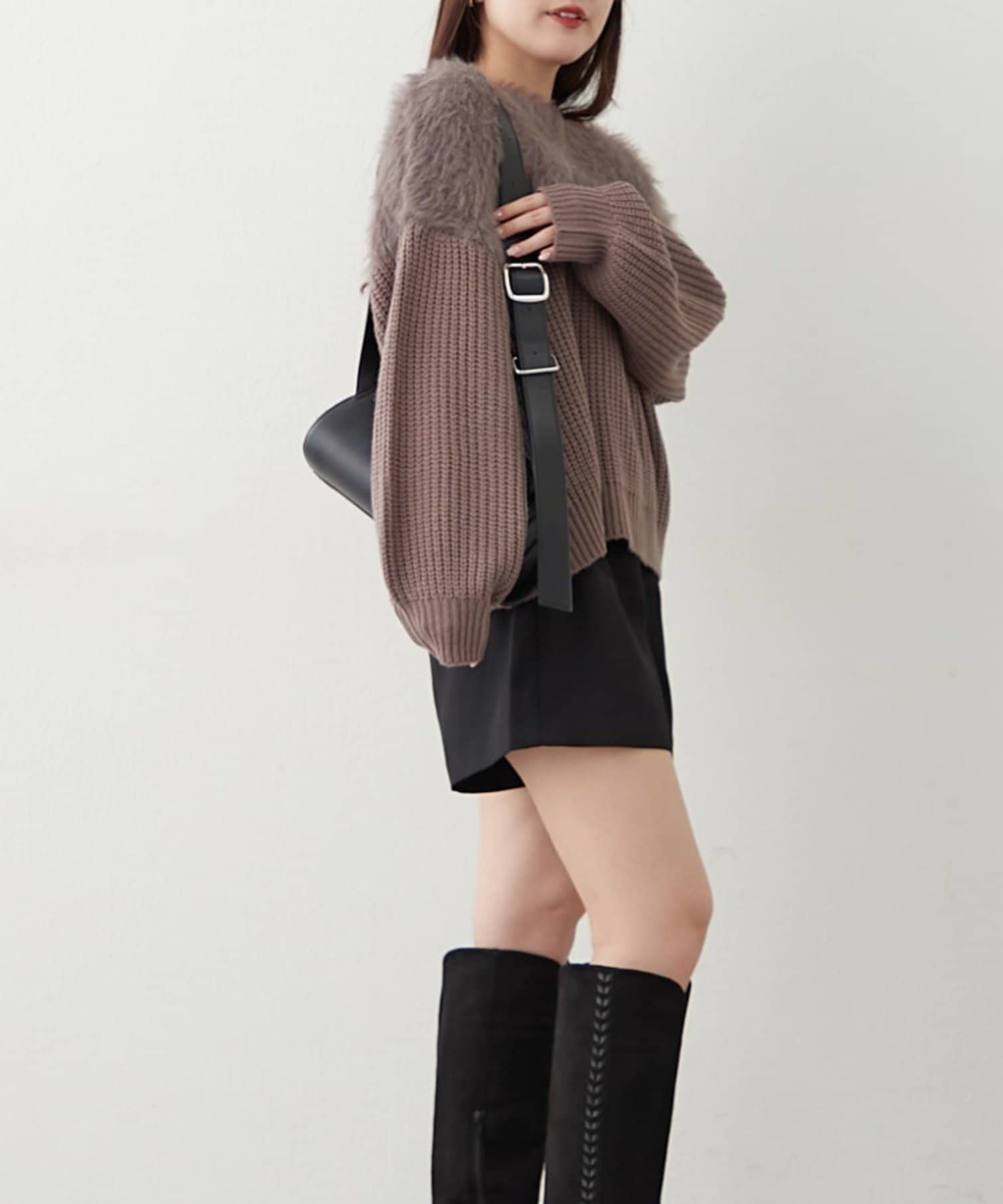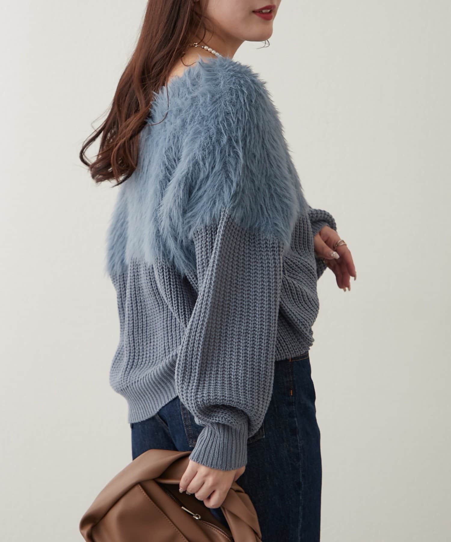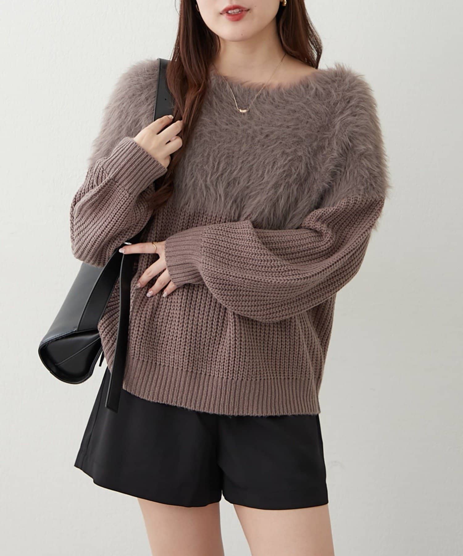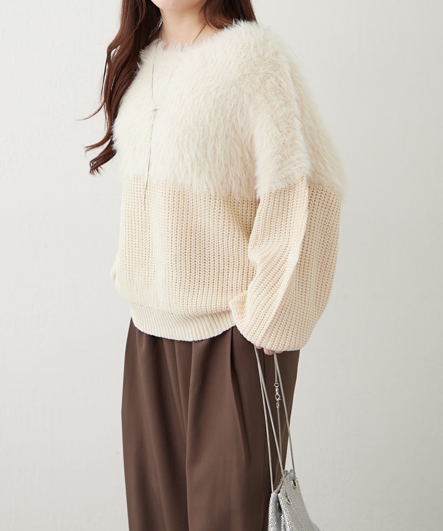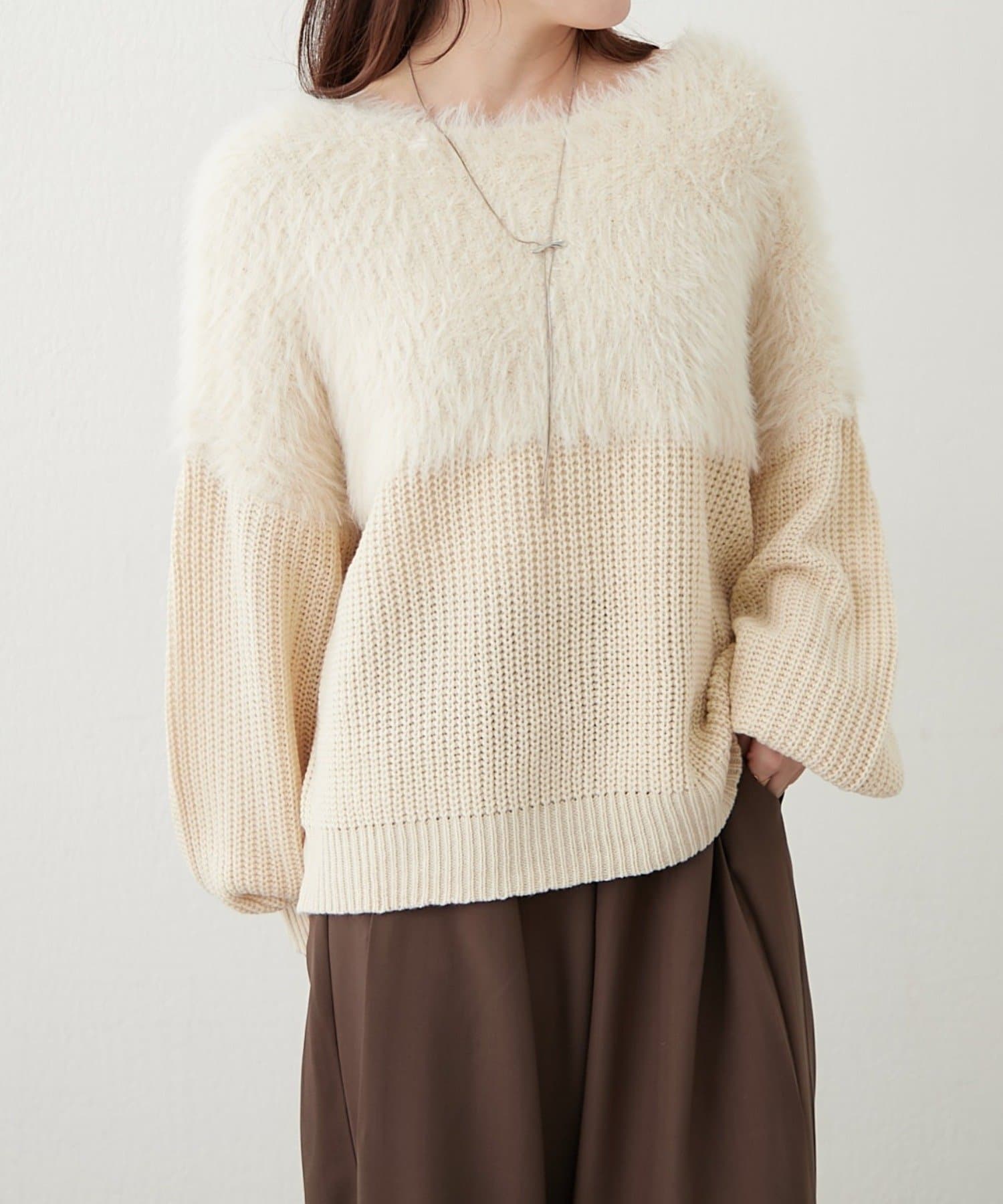・ふわふわっとしたシャギーと畦編みニットの切替がポイント