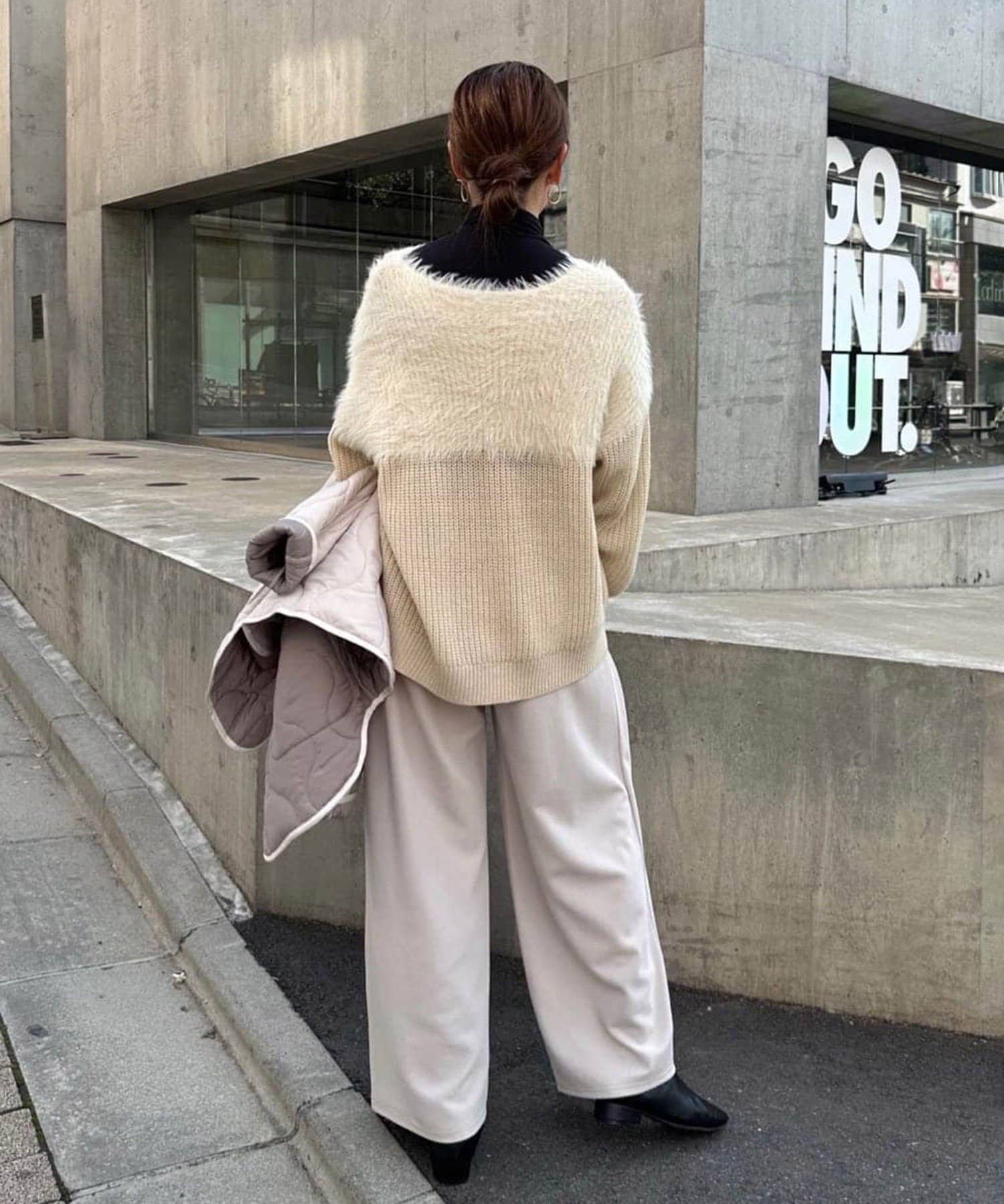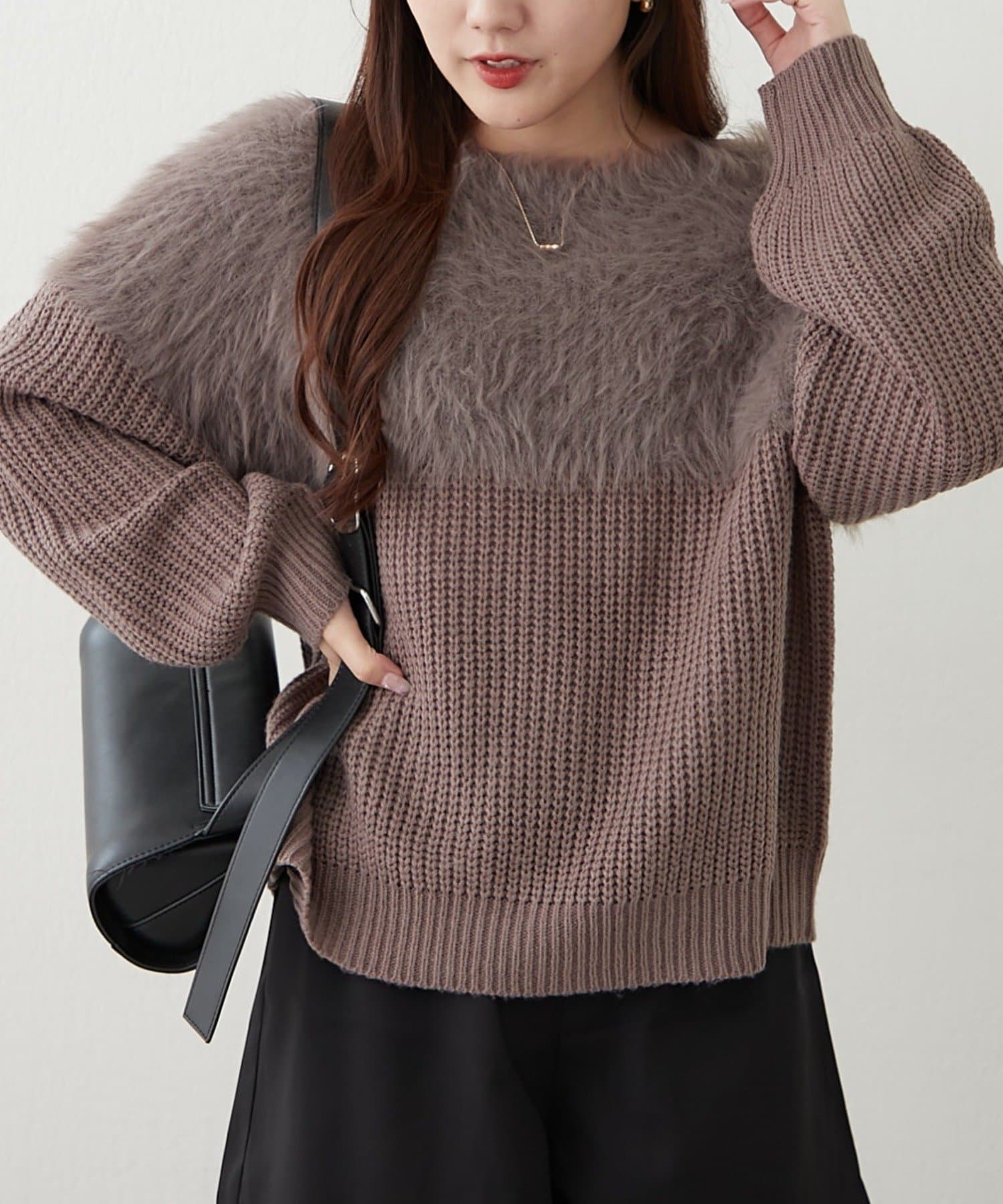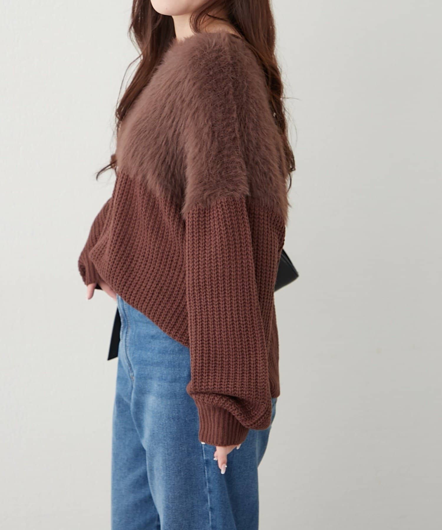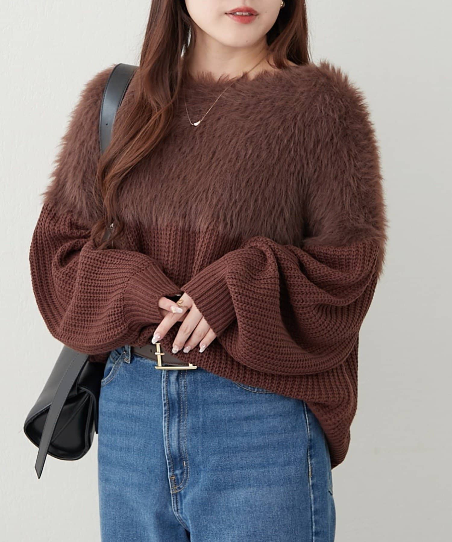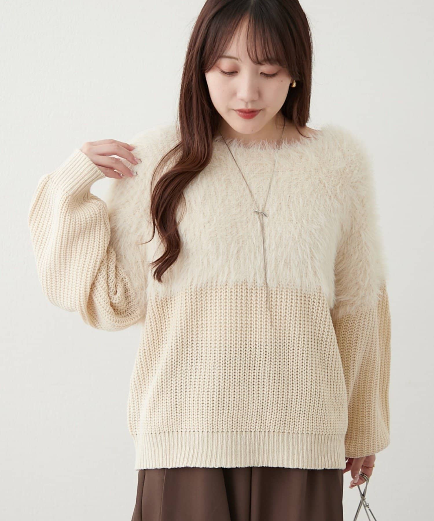 ・ふわふわっとしたシャギーと畦編みニットの切替がポイント