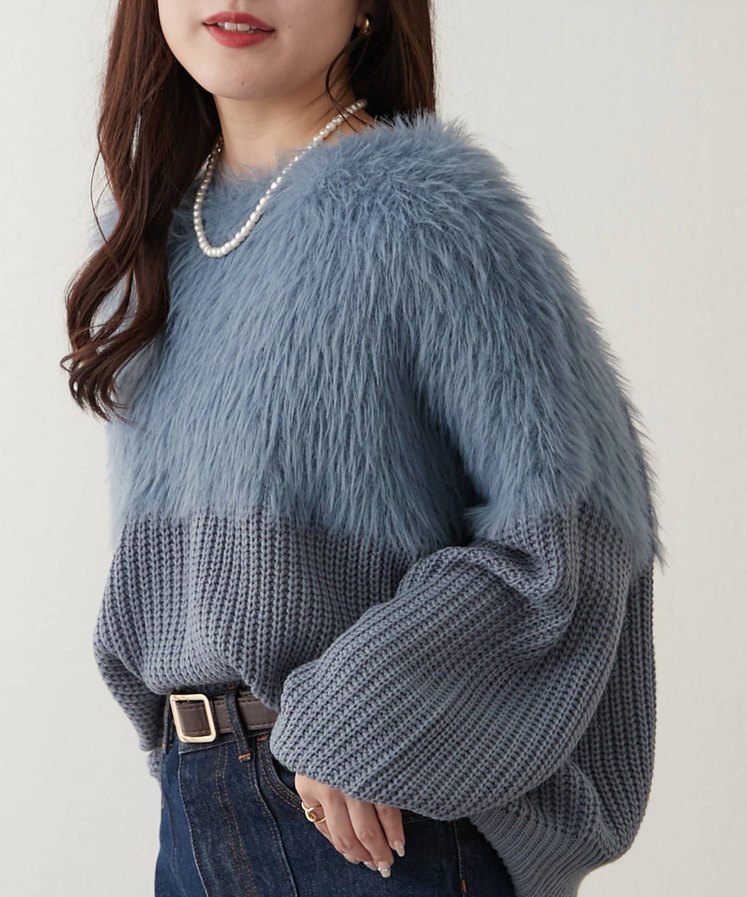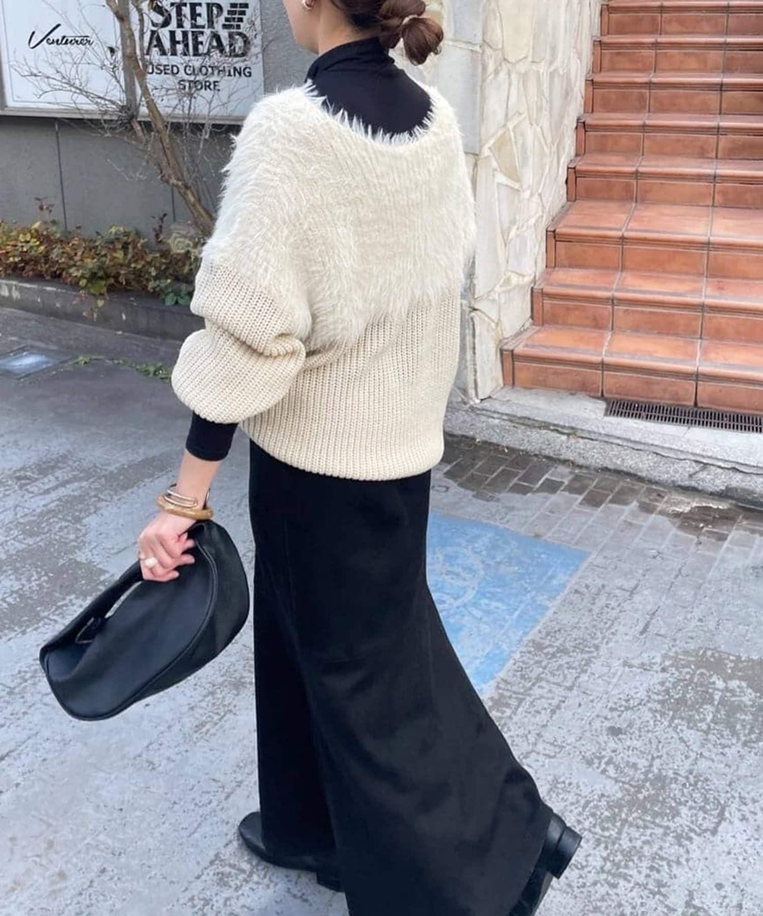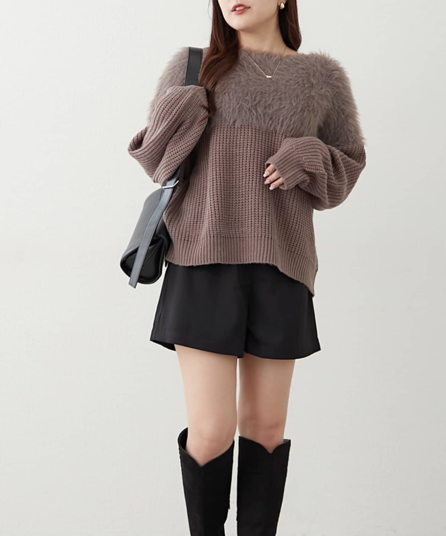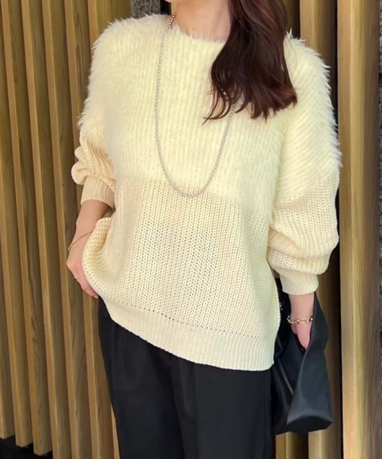 ・ふわふわっとしたシャギーと畦編みニットの切替がポイント