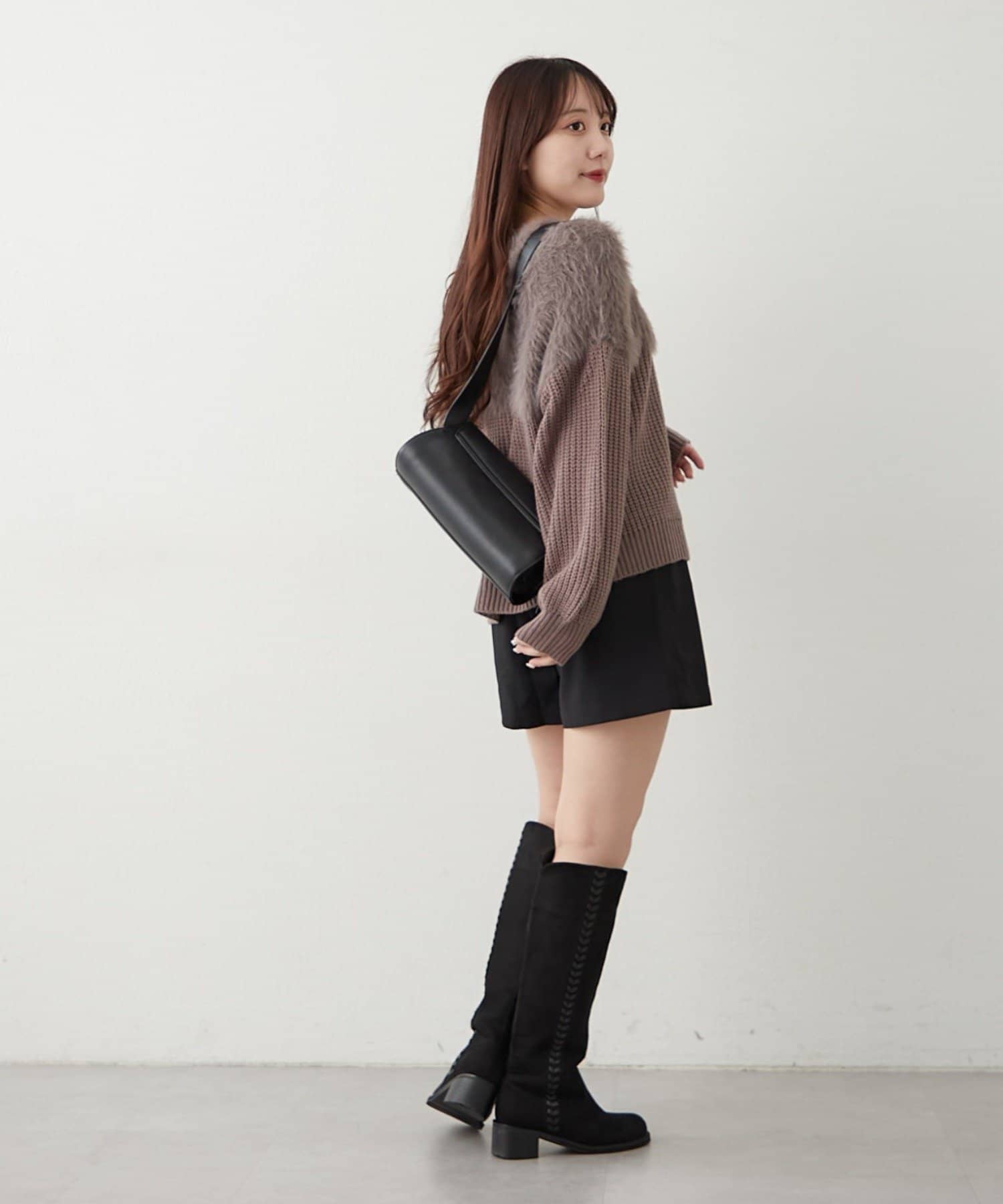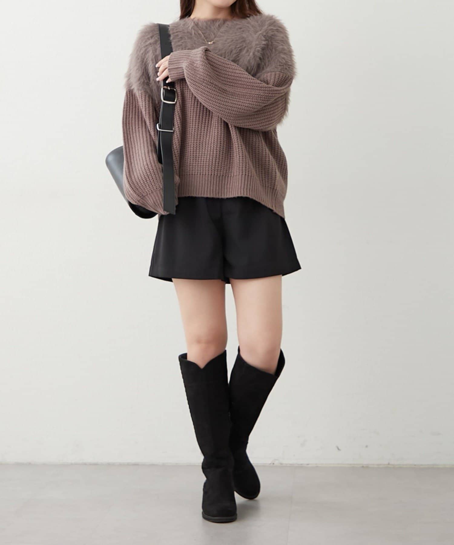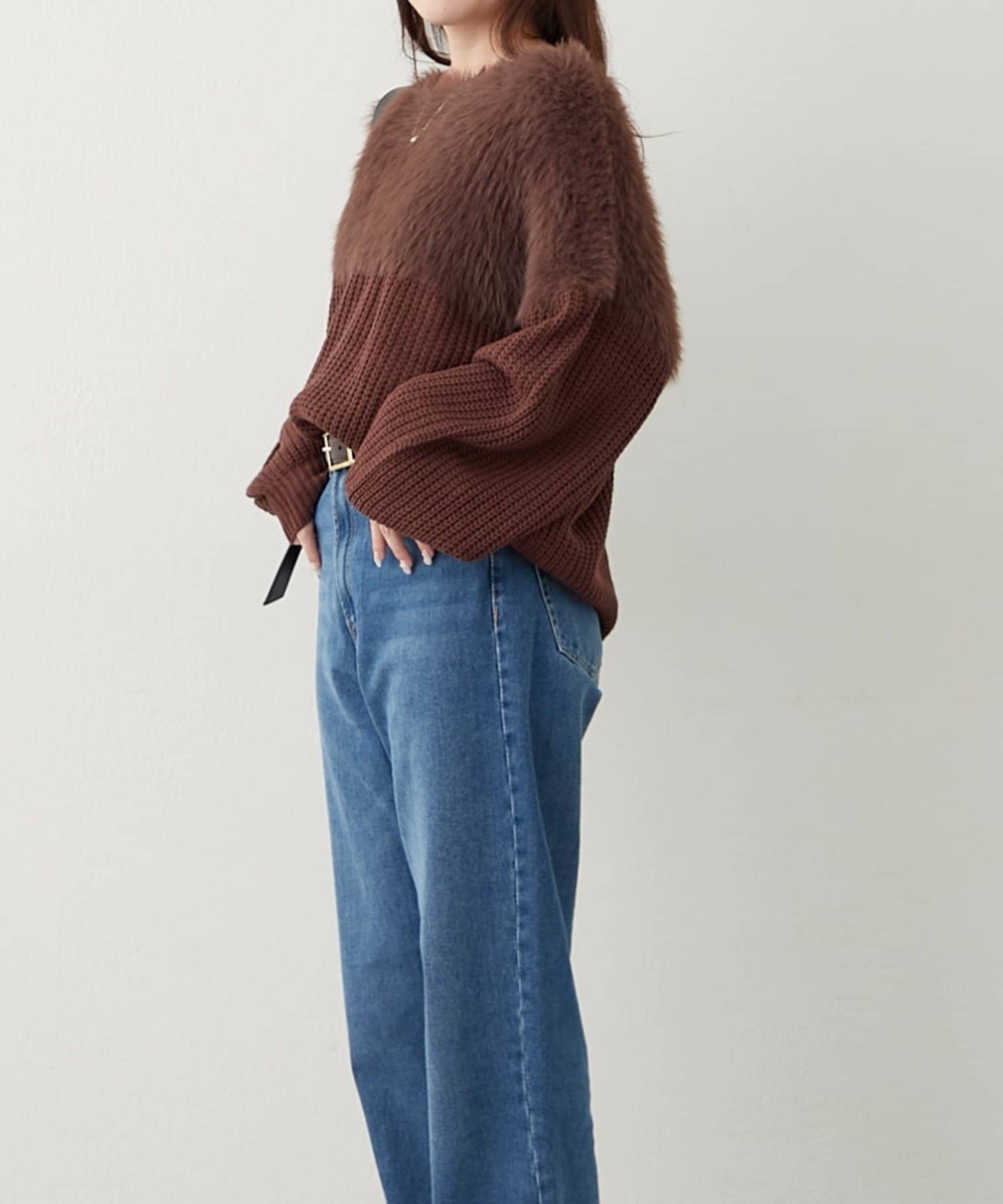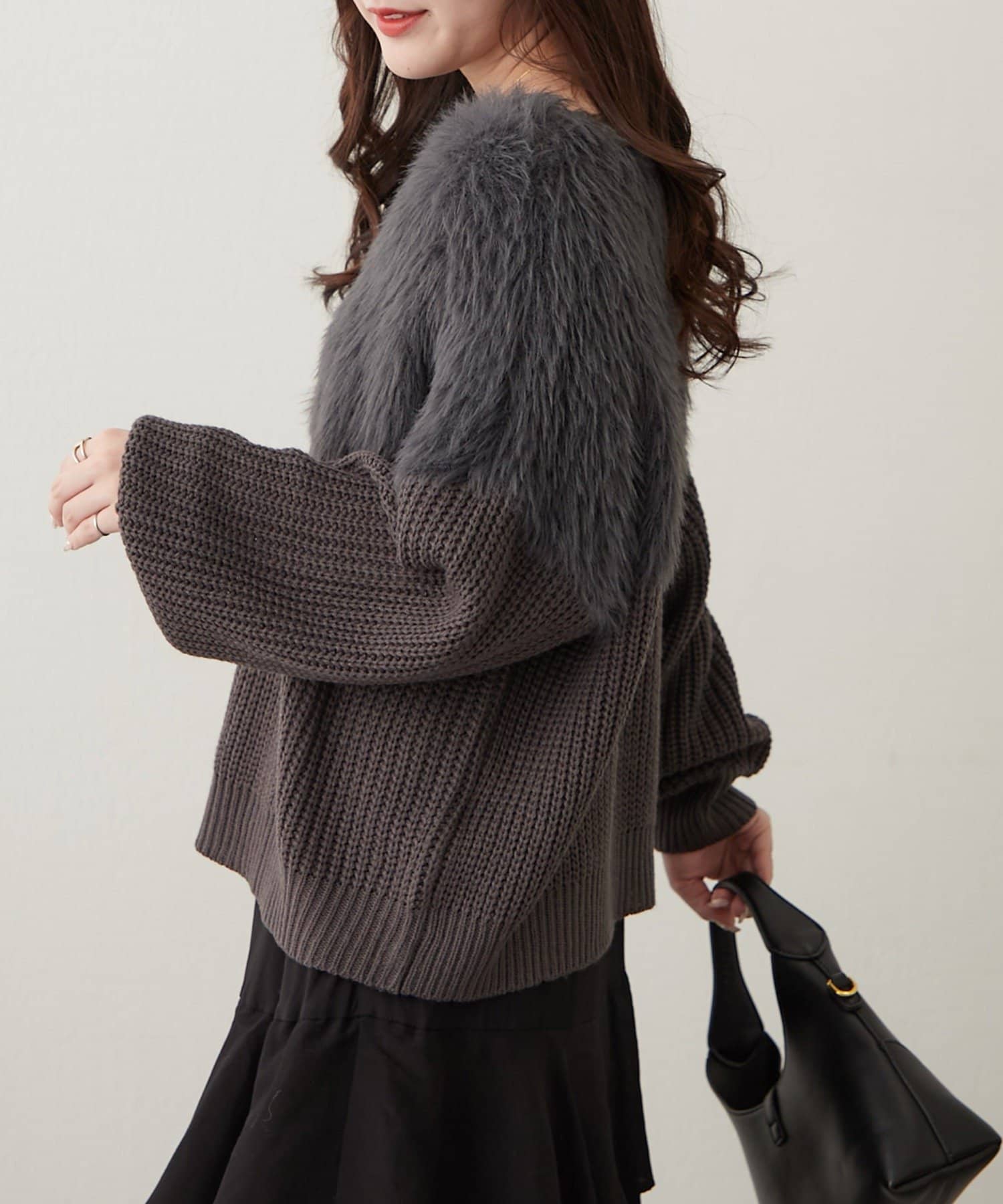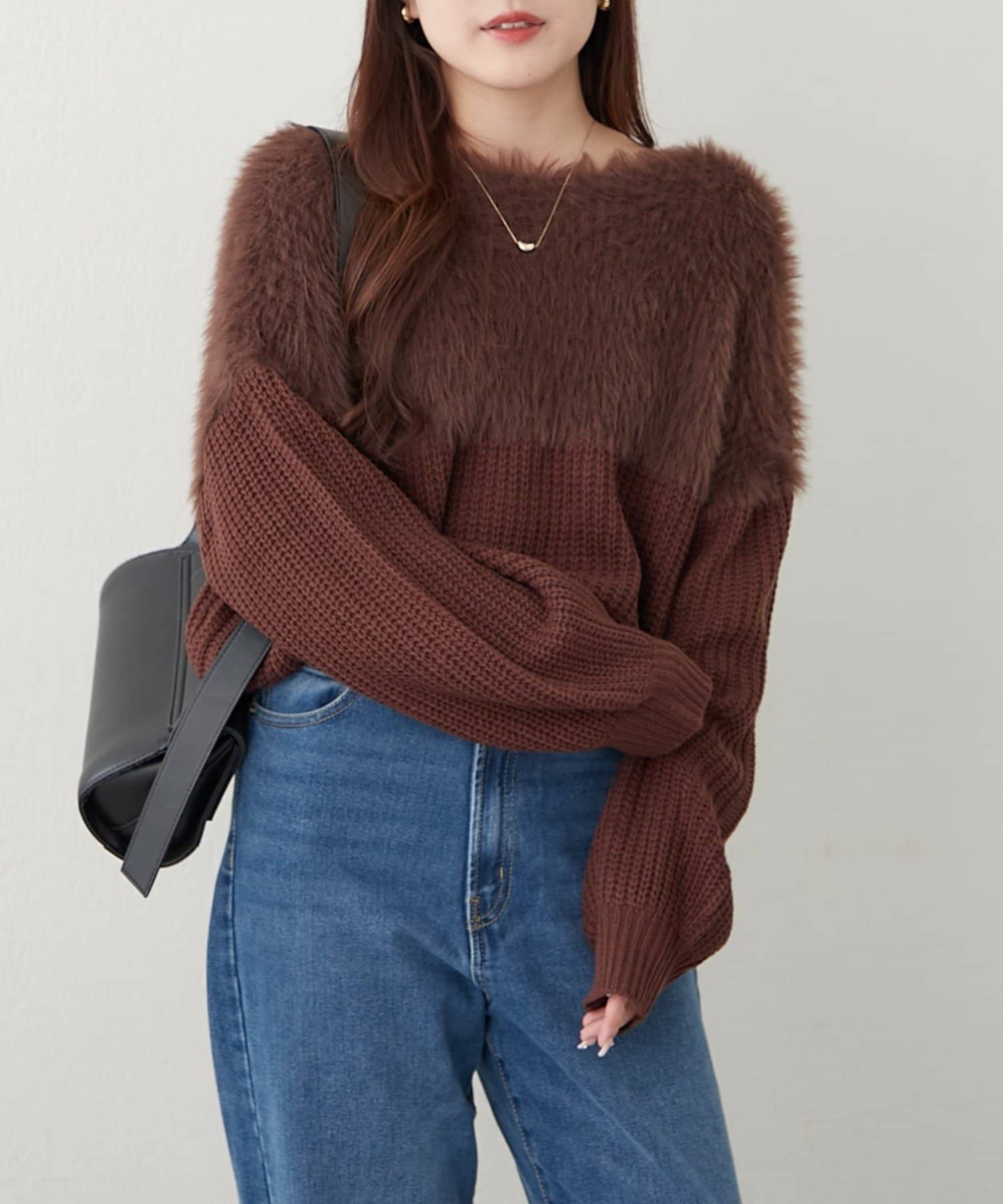 ・ふわふわっとしたシャギーと畦編みニットの切替がポイント