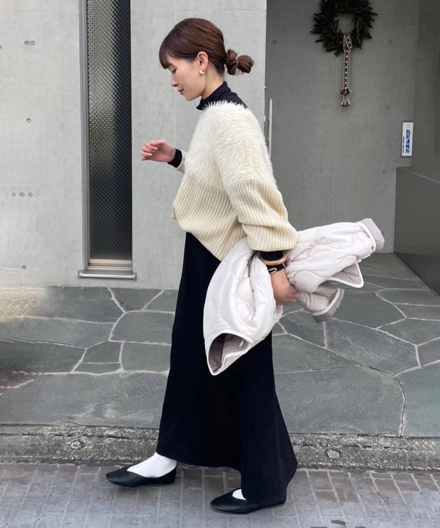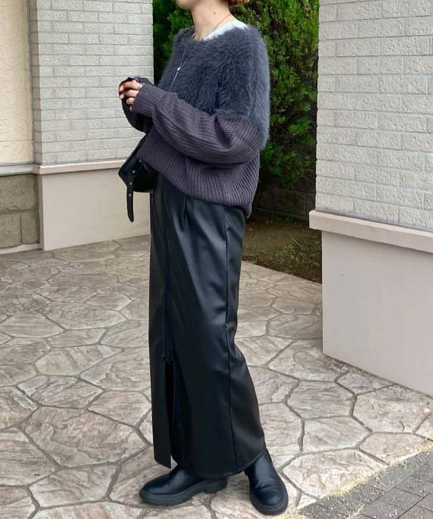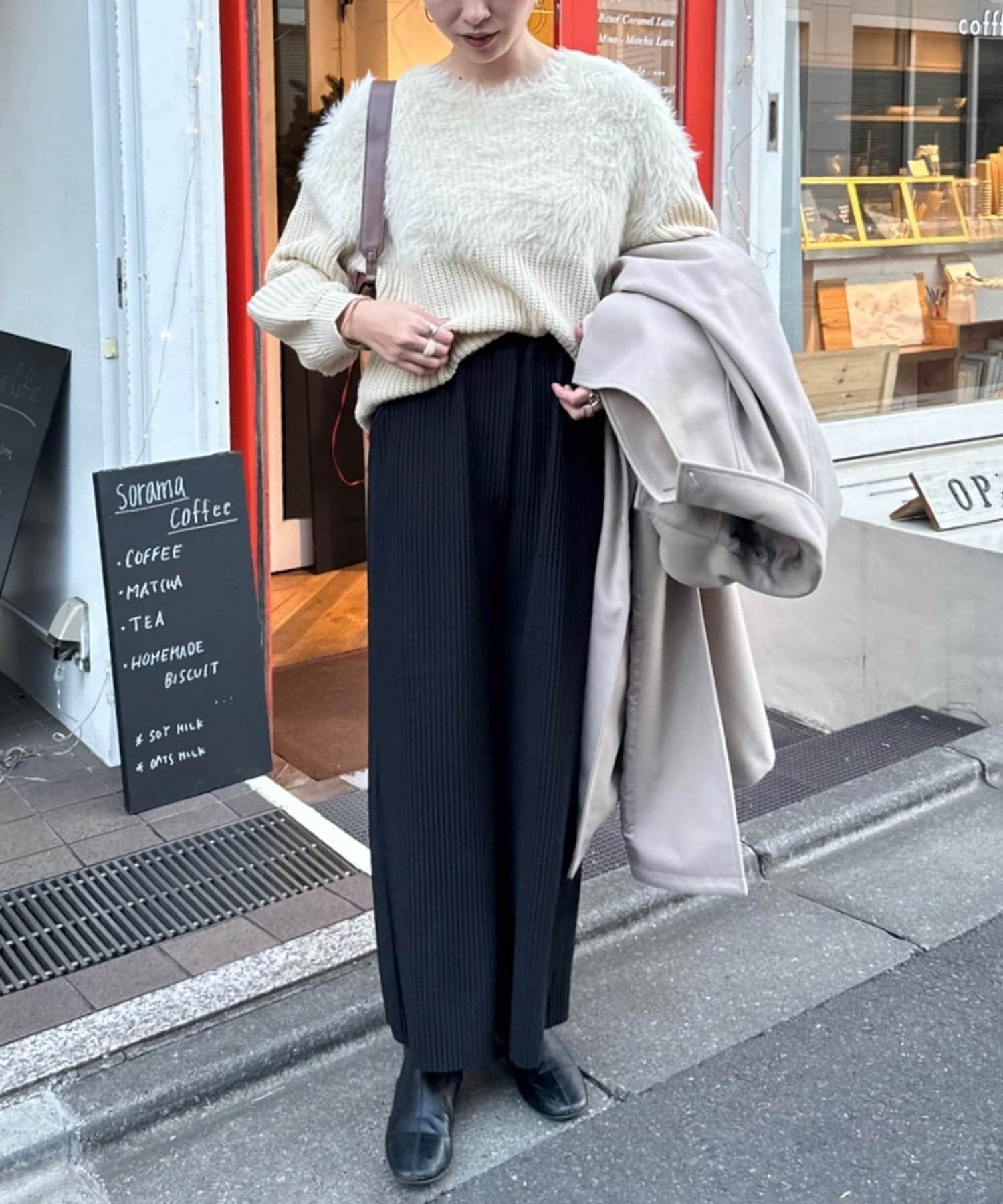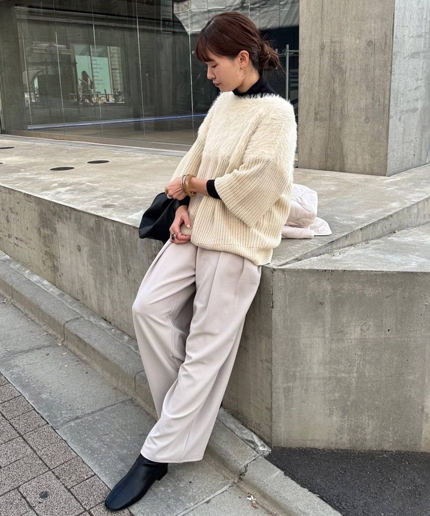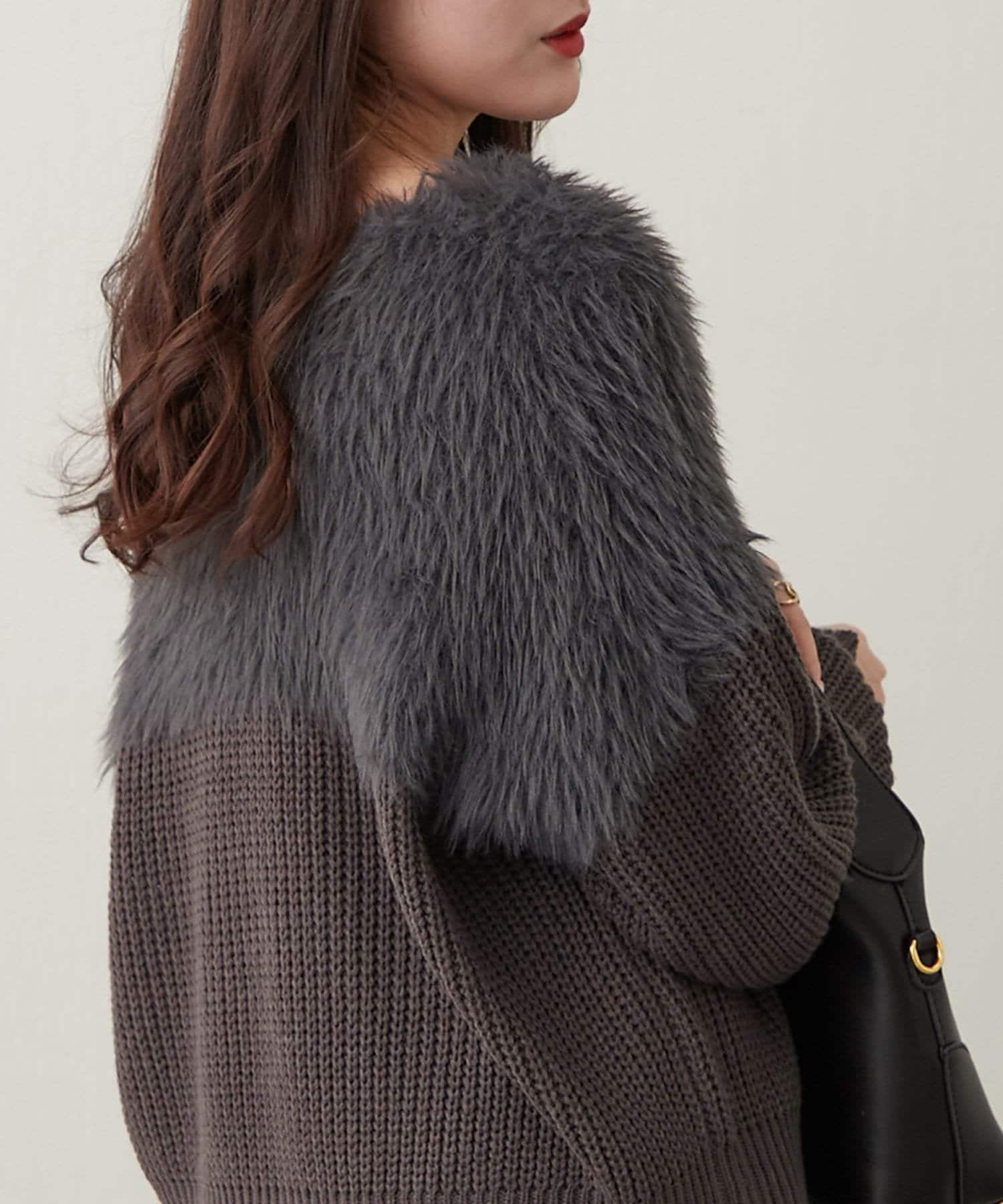 ・ふわふわっとしたシャギーと畦編みニットの切替がポイント