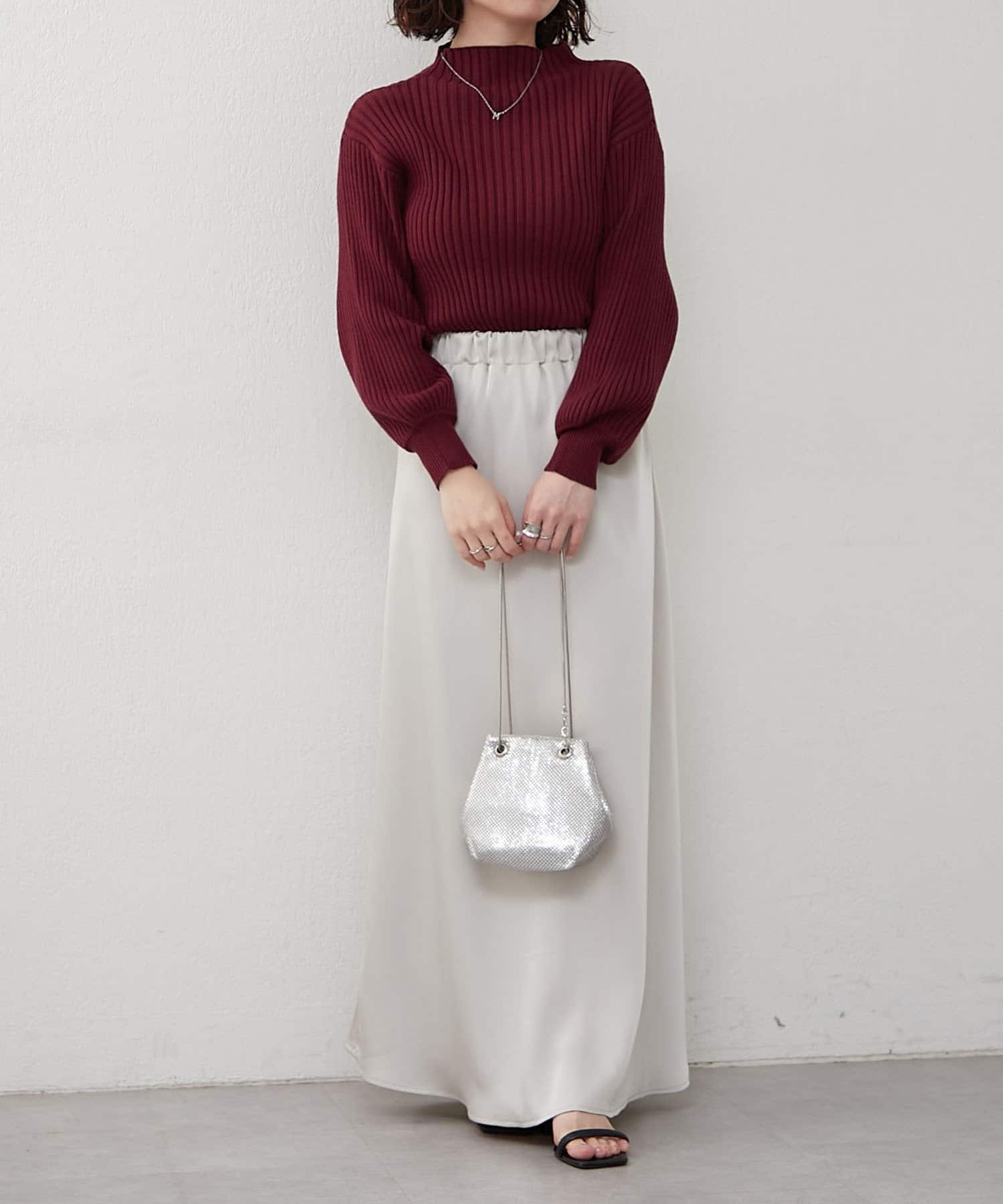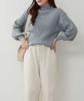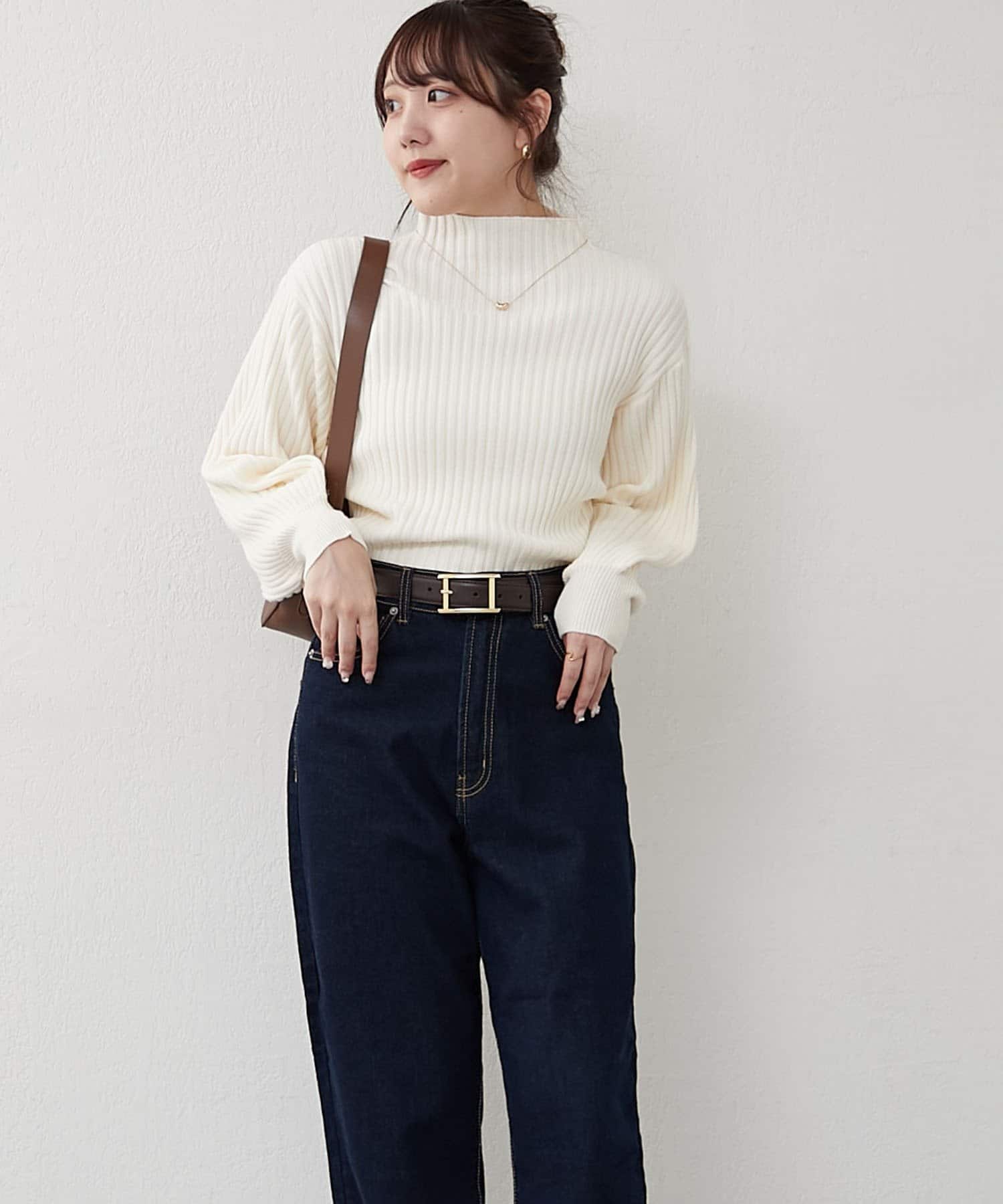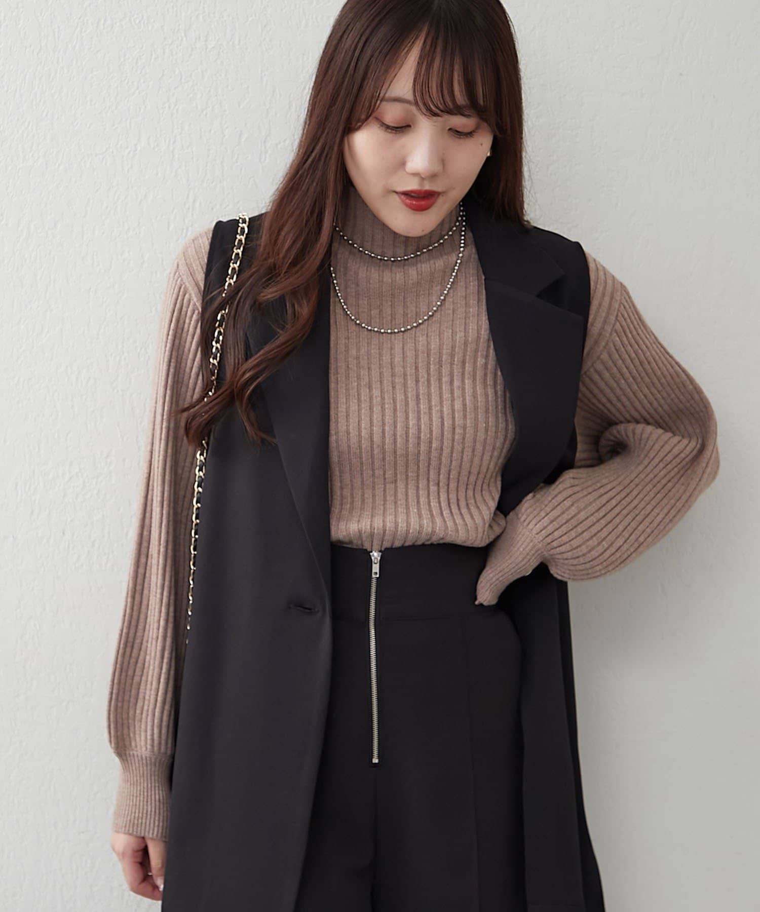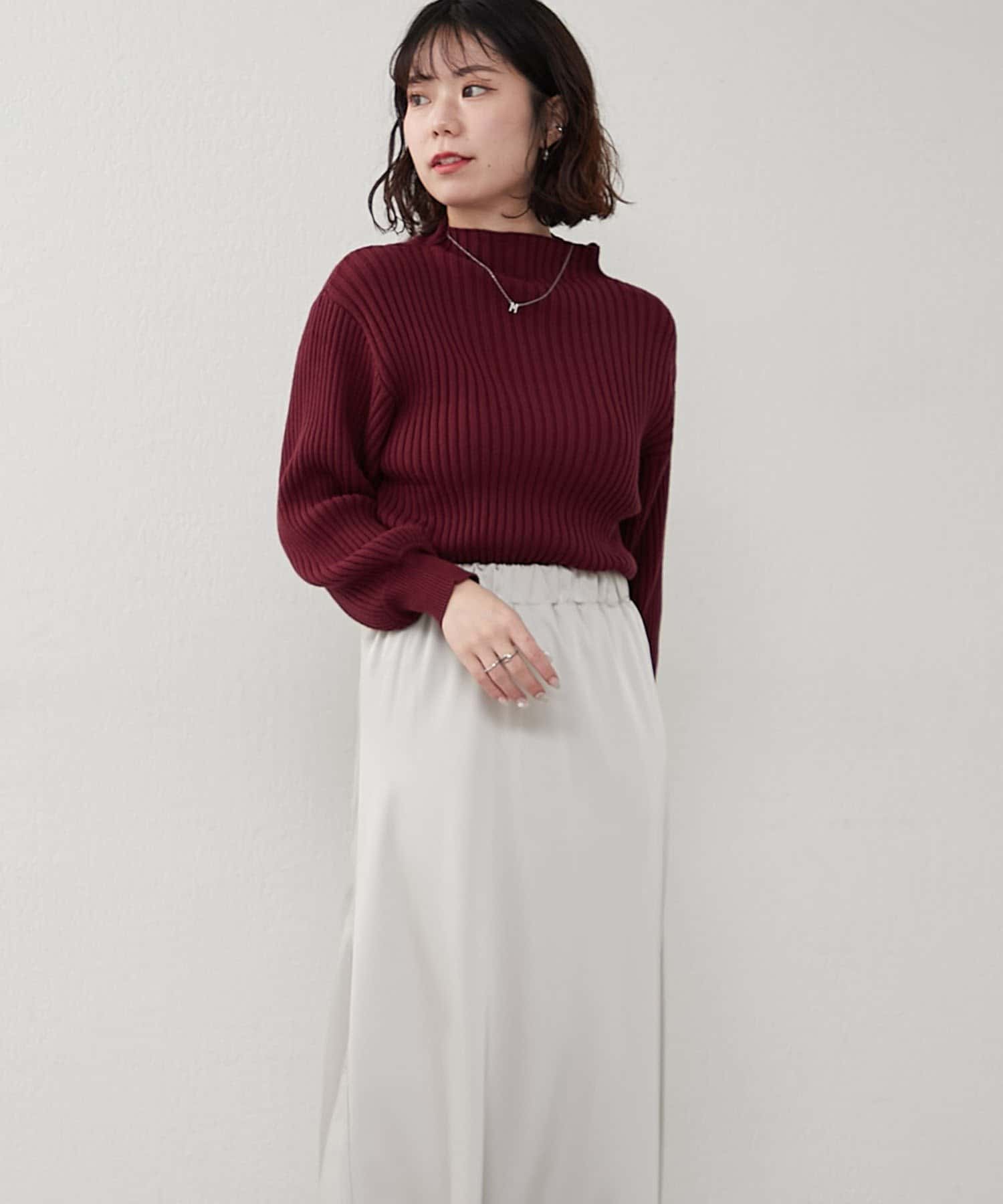 ・ボリュームスリーブとハイネックが程よいルーズさを演出。着るだけで旬顔に。