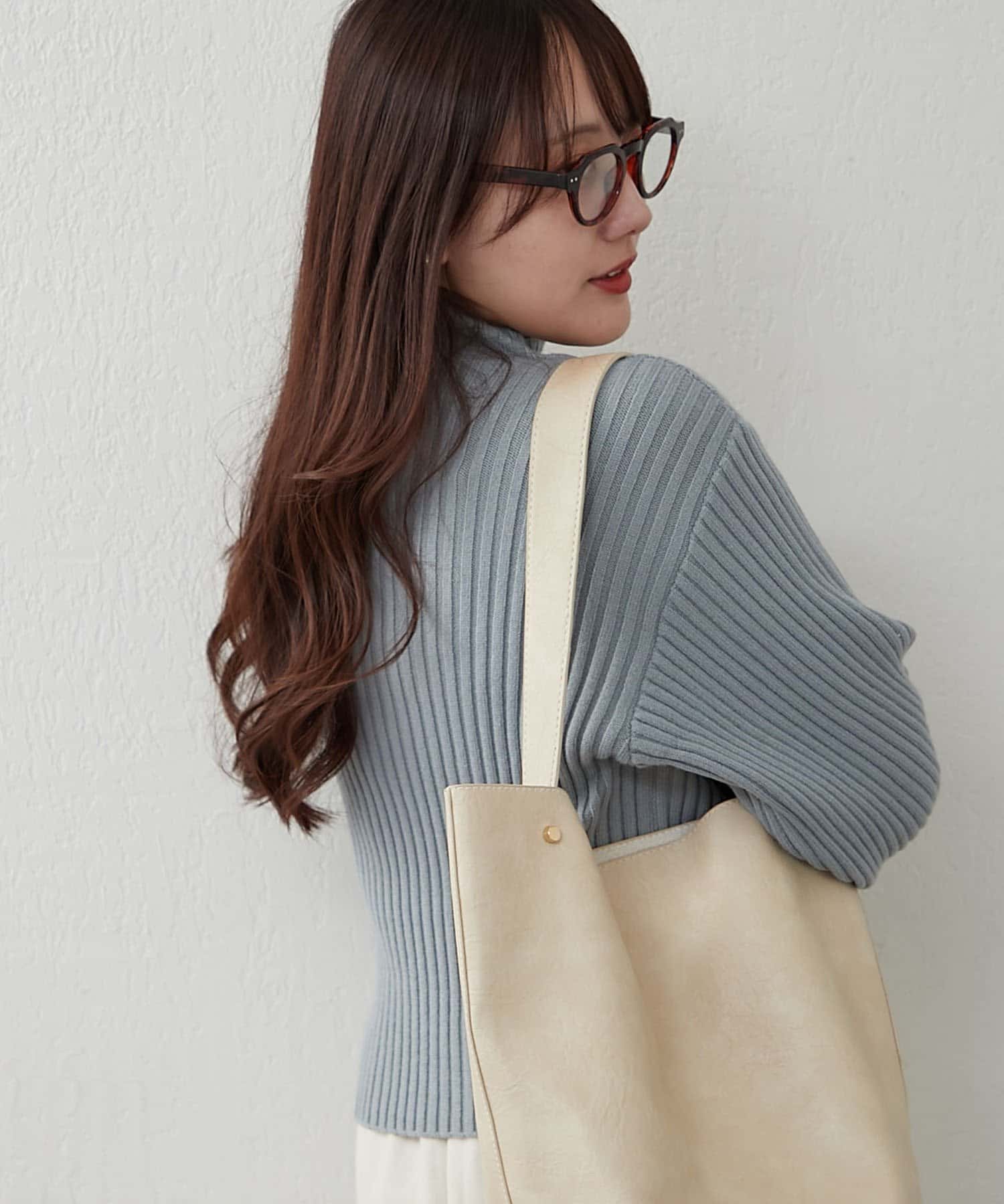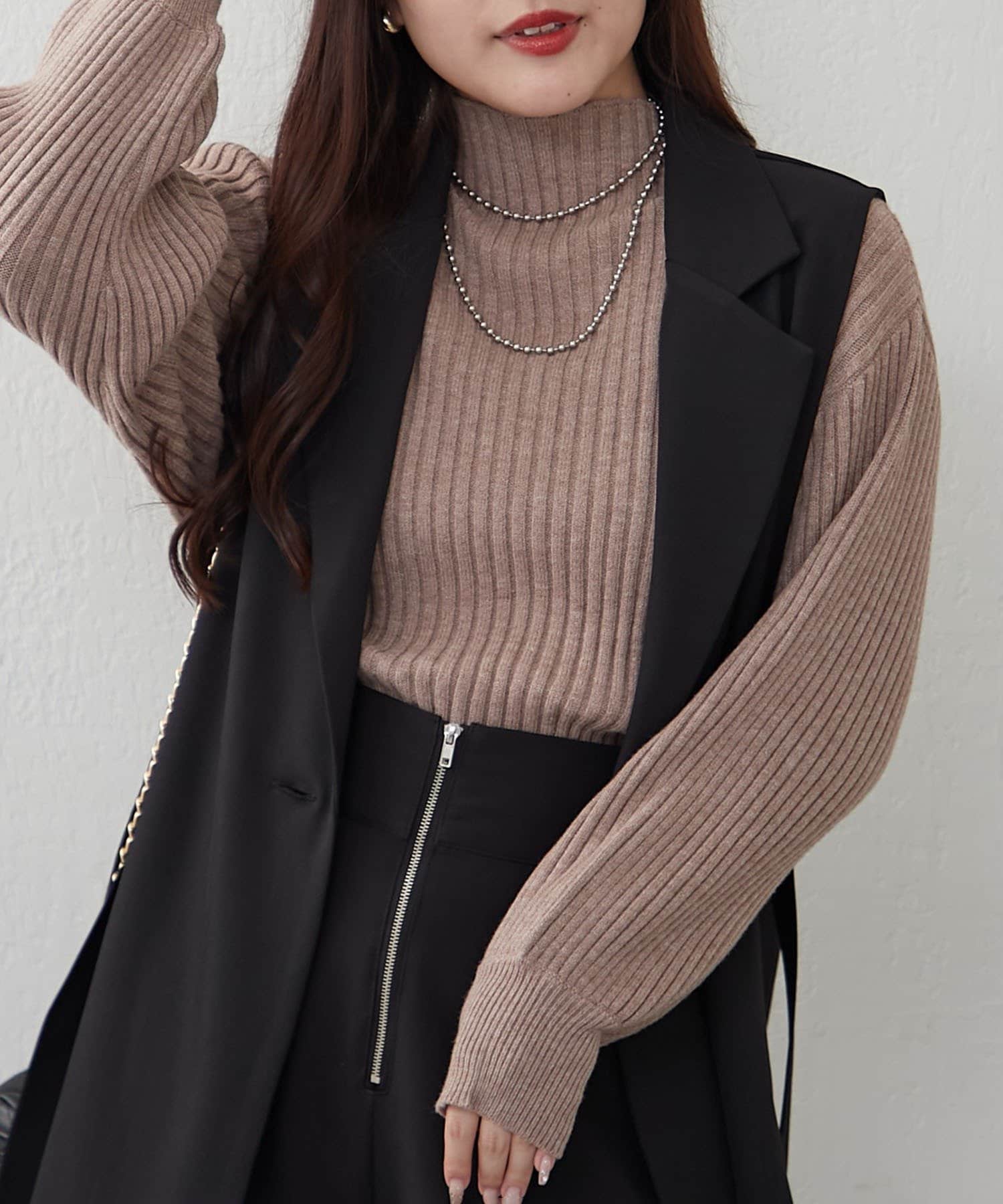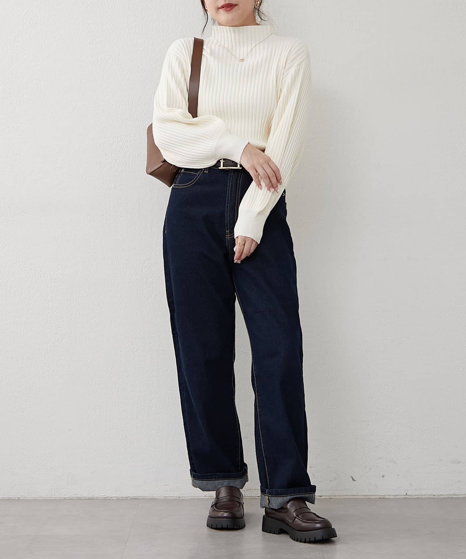 ・ボリュームスリーブとハイネックが程よいルーズさを演出。着るだけで旬顔に。