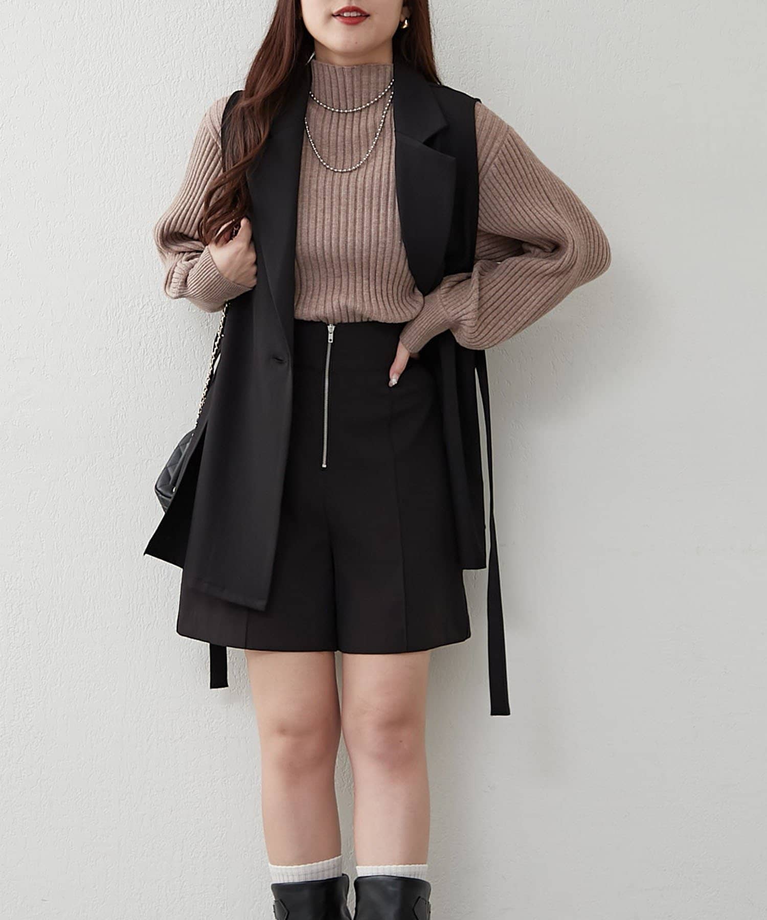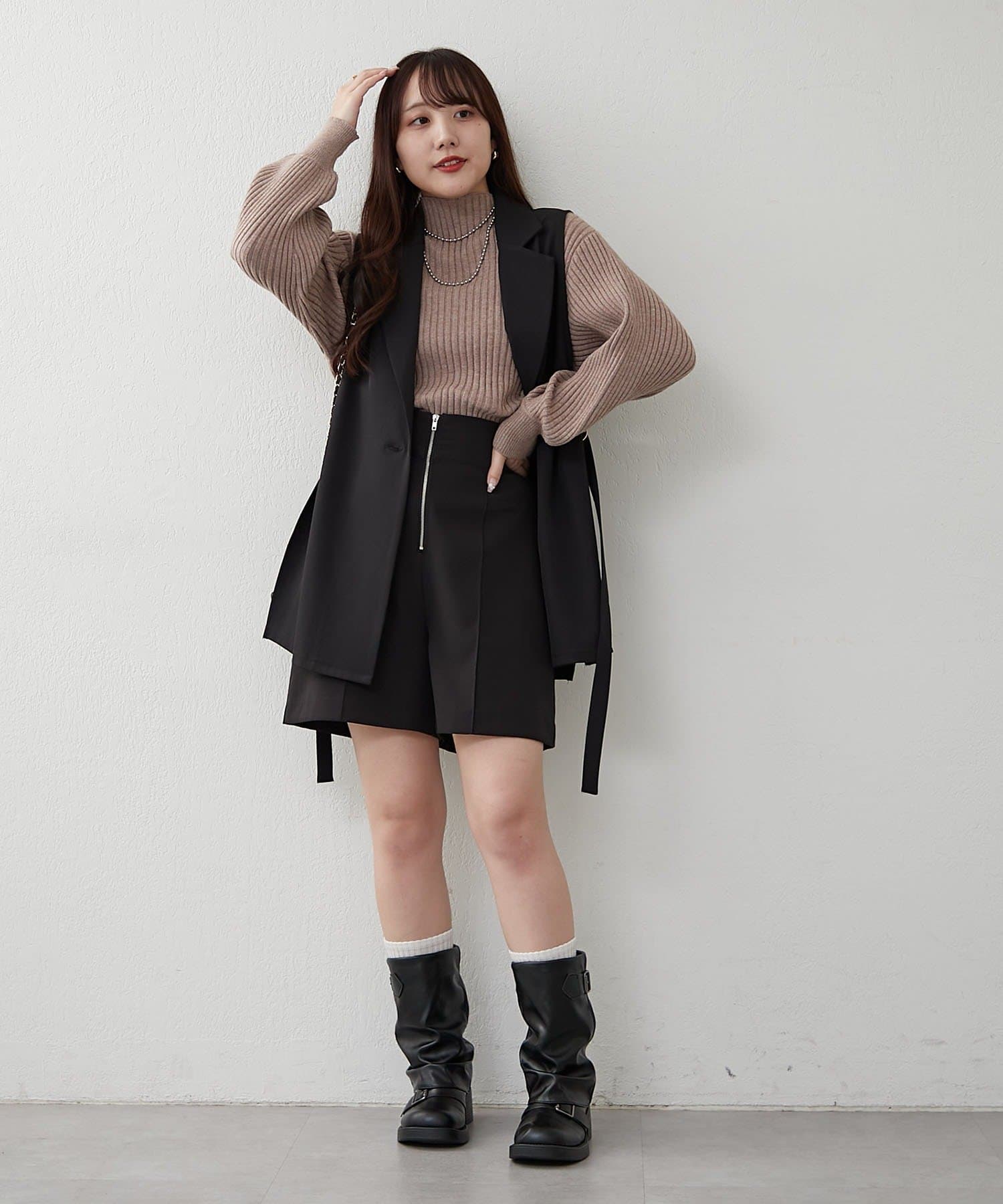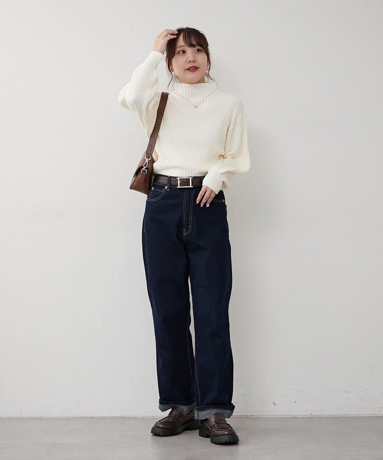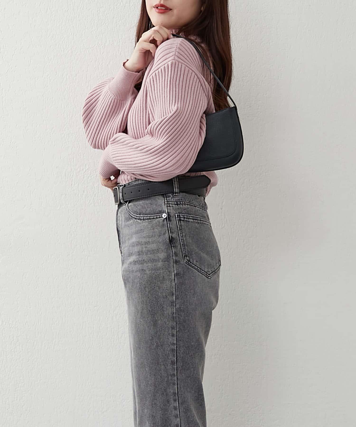 ・ボリュームスリーブとハイネックが程よいルーズさを演出。着るだけで旬顔に。