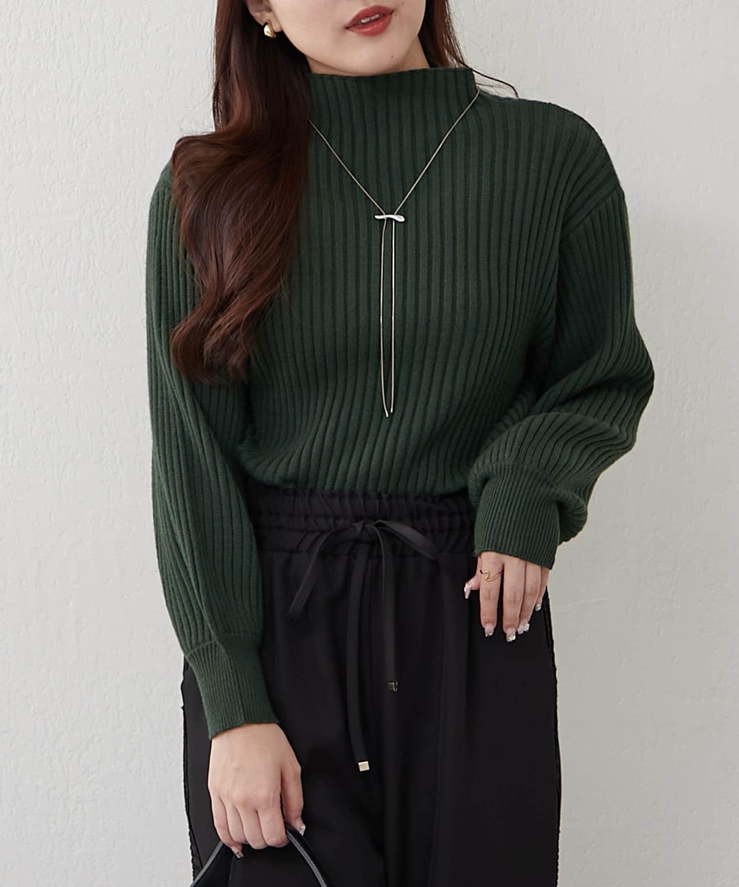 ・ボリュームスリーブとハイネックが程よいルーズさを演出。着るだけで旬顔に。