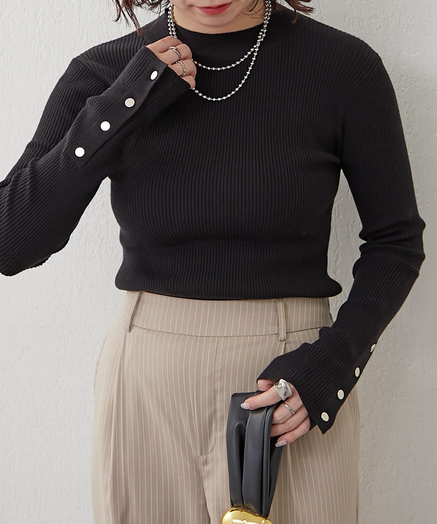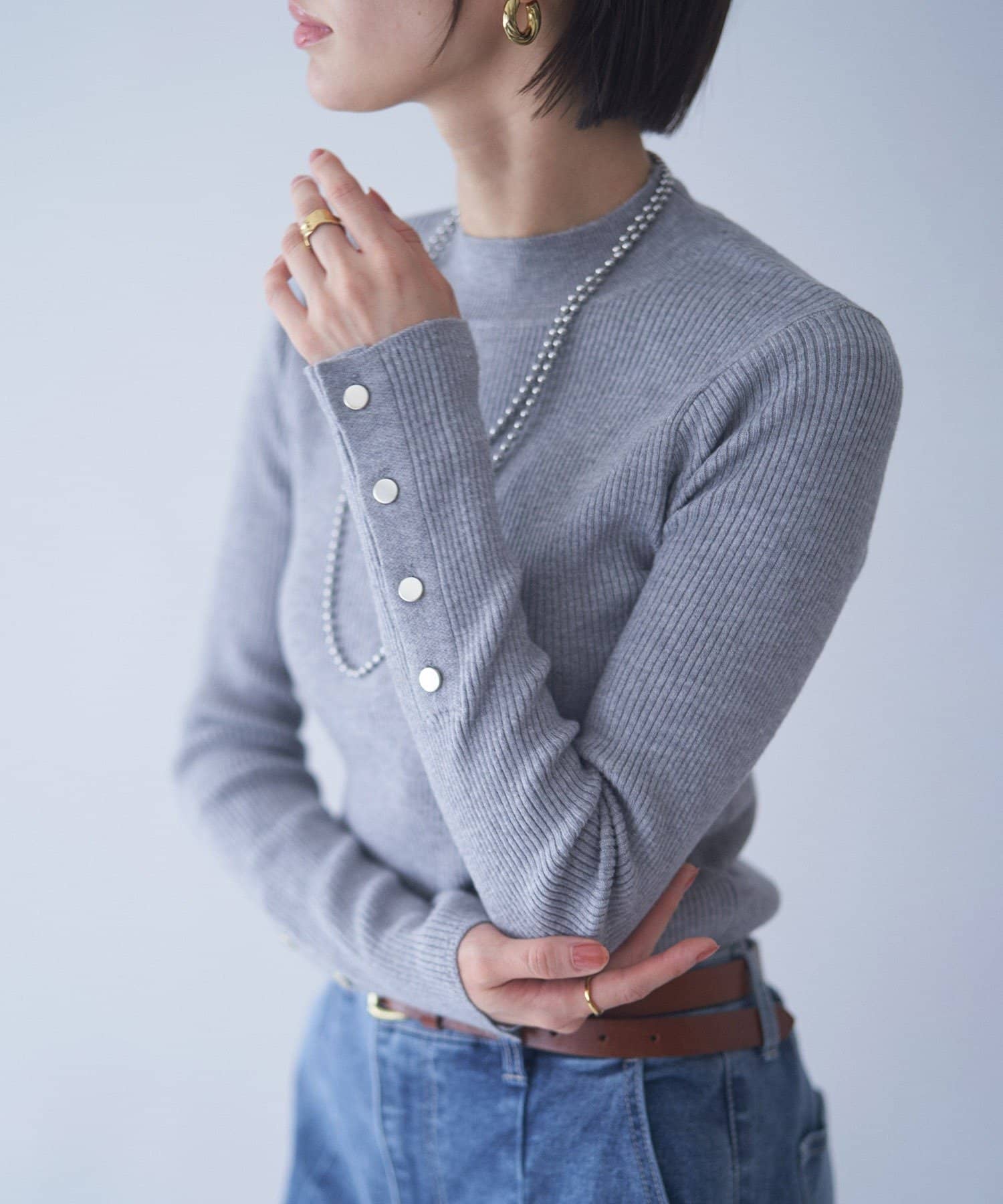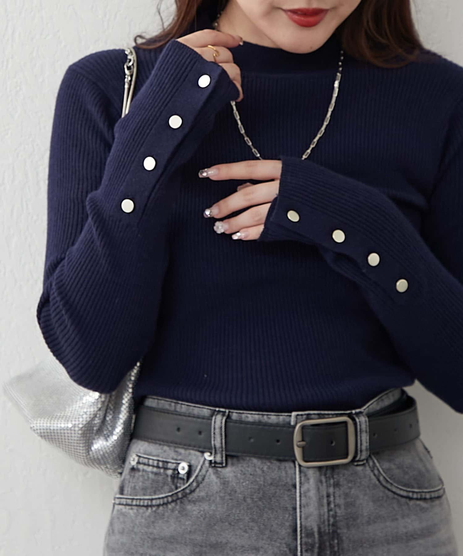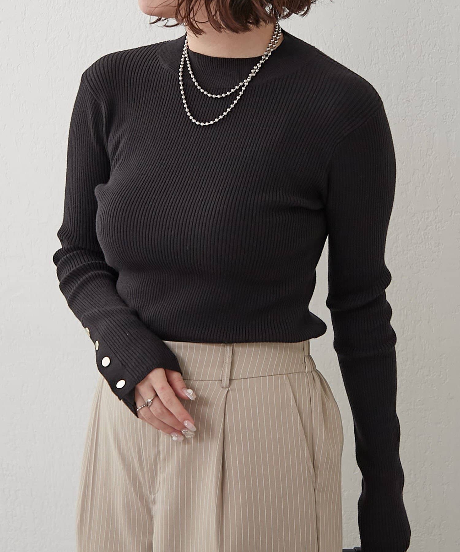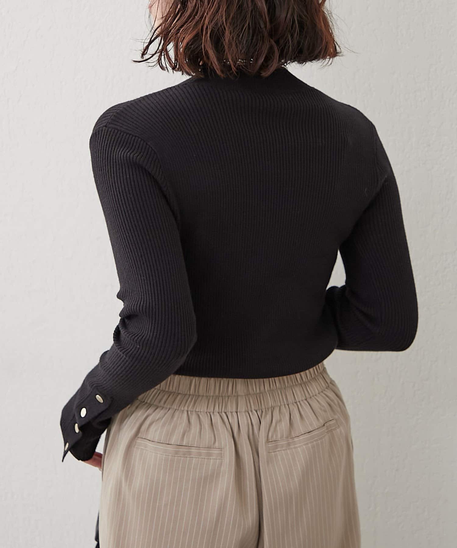 【WEB先行予約】袖ボタンハイネックリブプルオーバー