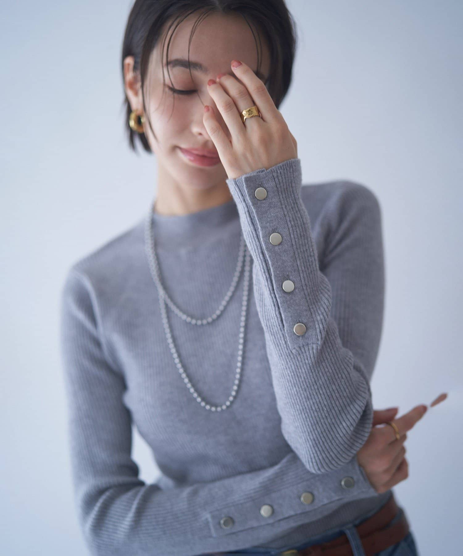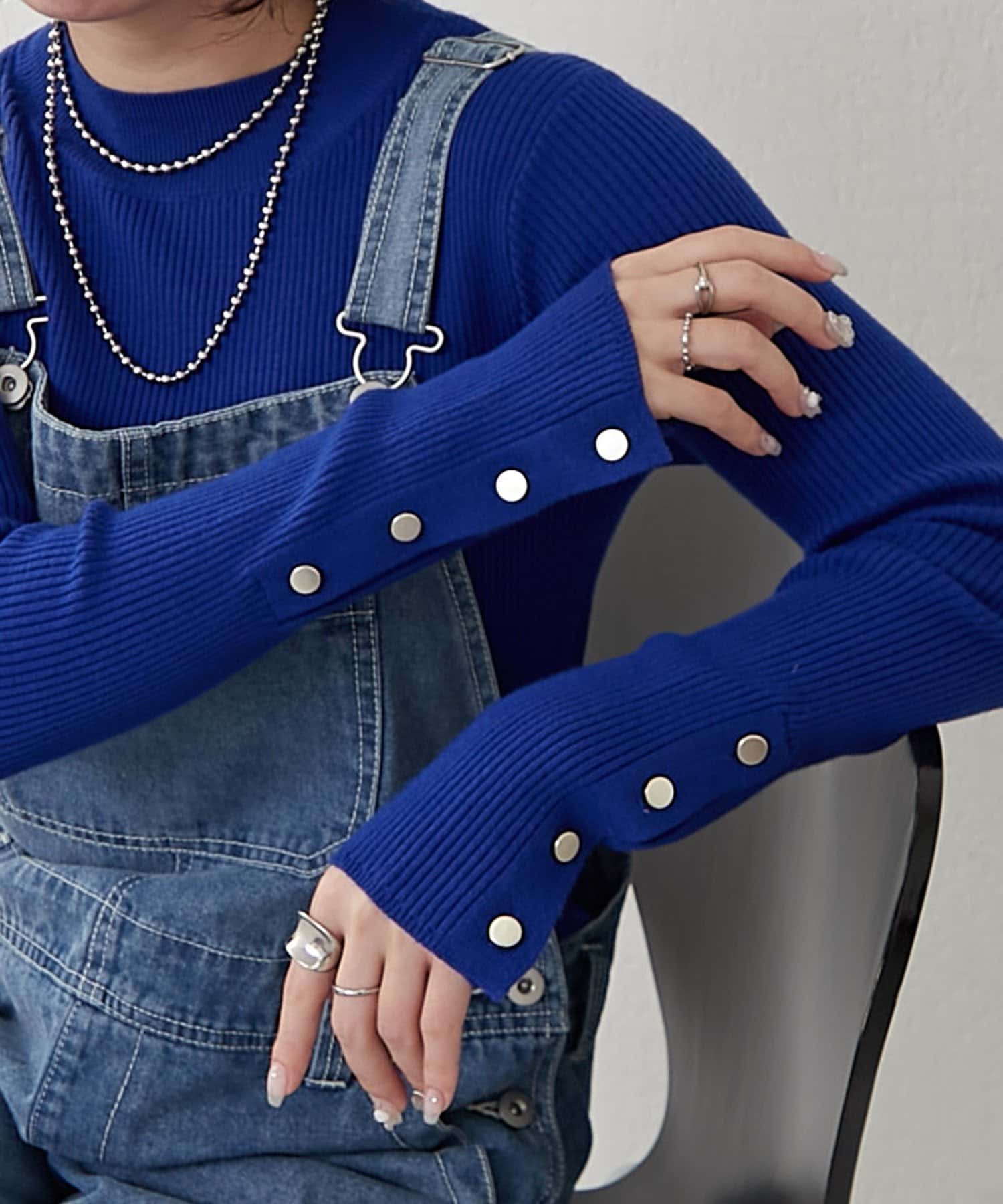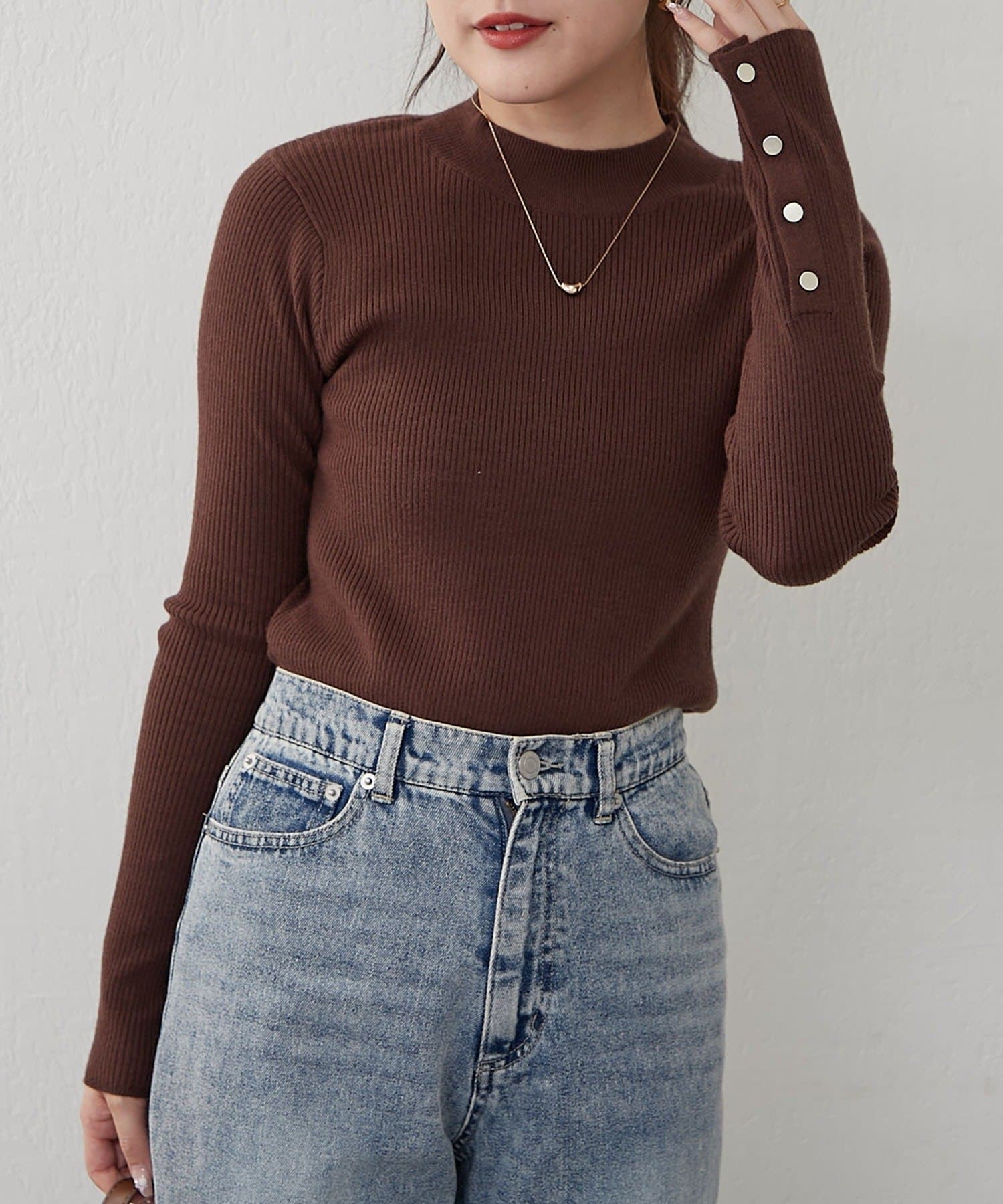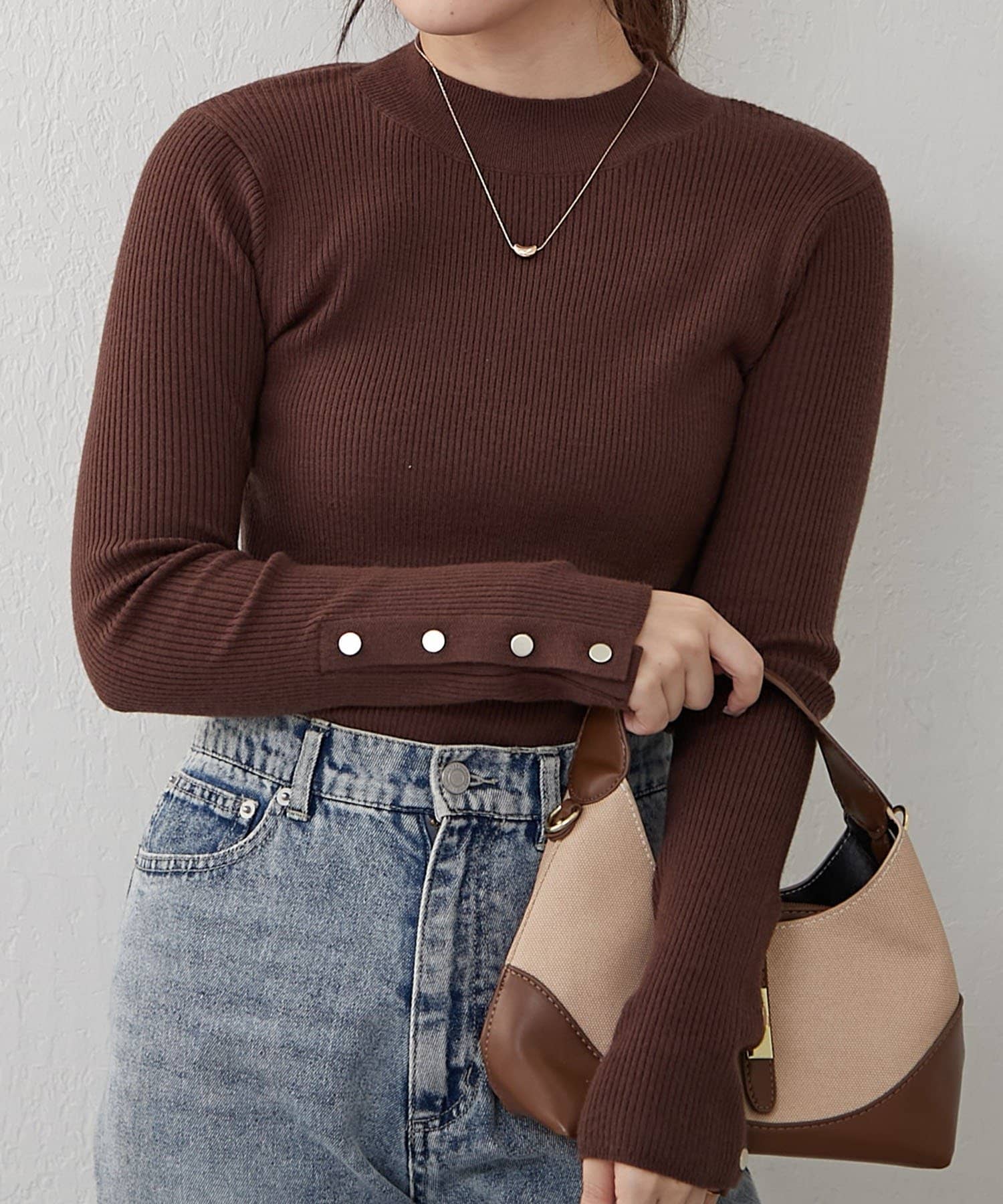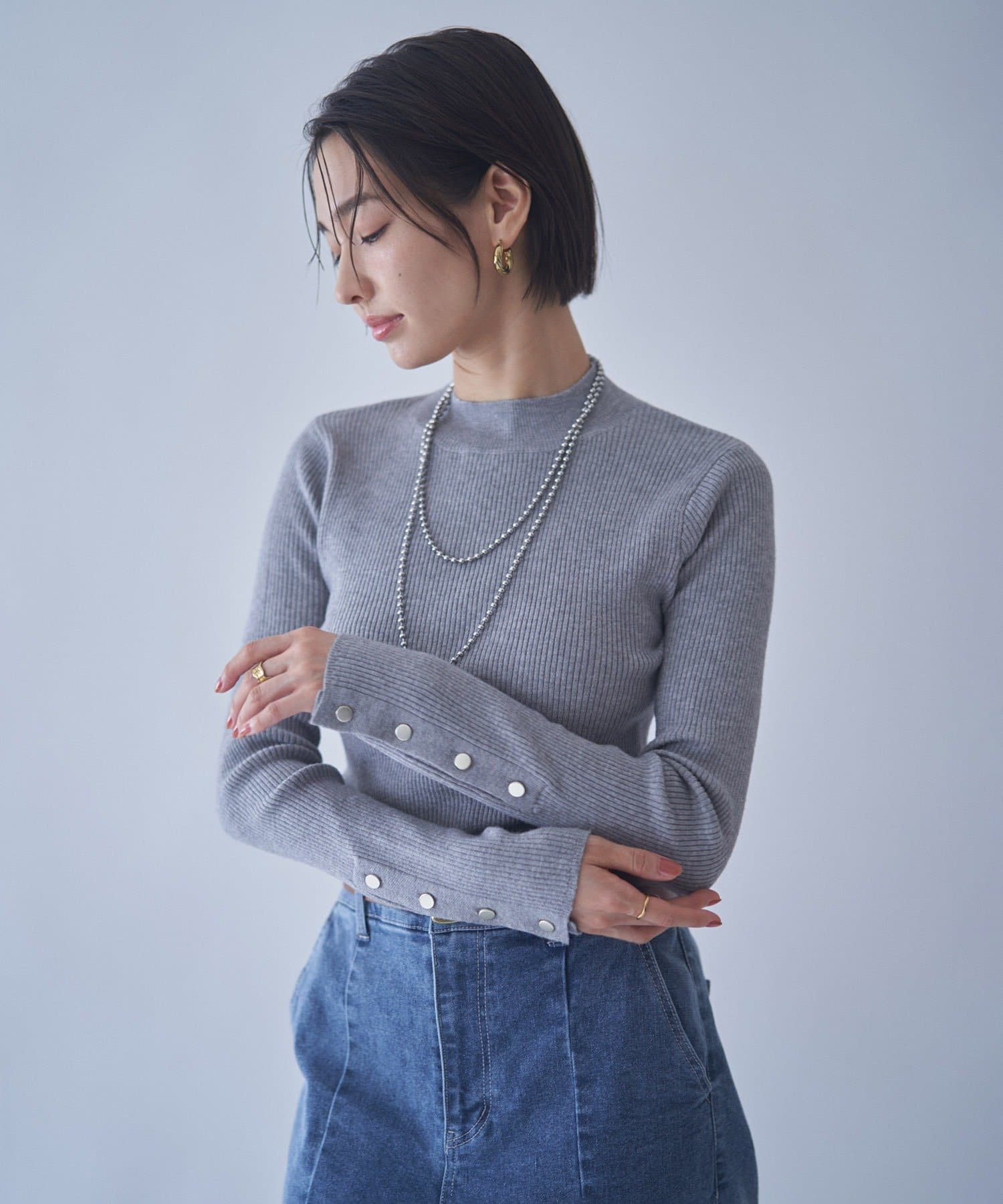 【WEB先行予約】袖ボタンハイネックリブプルオーバー