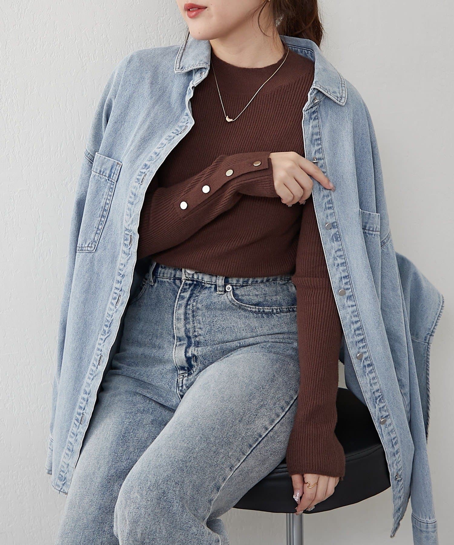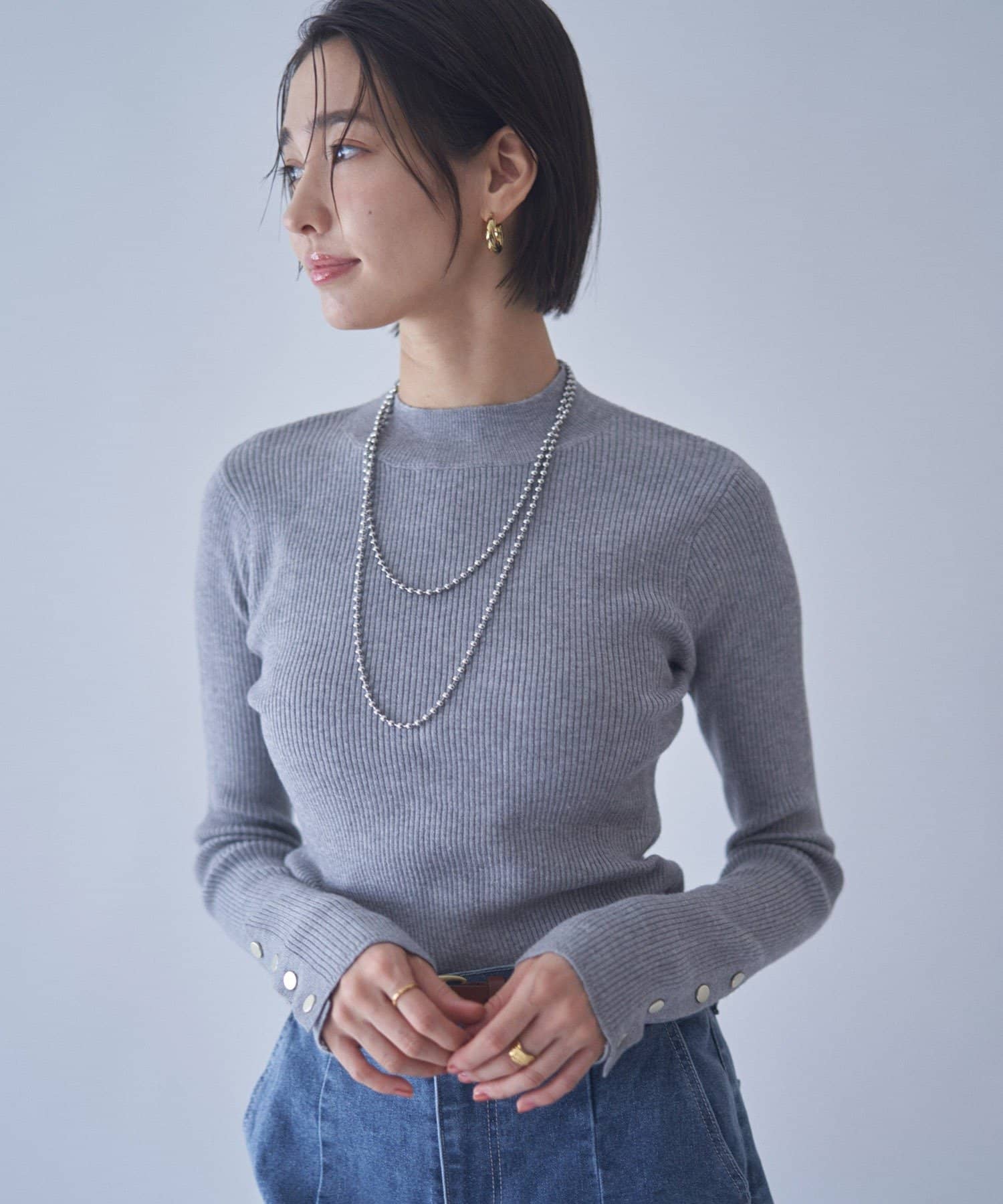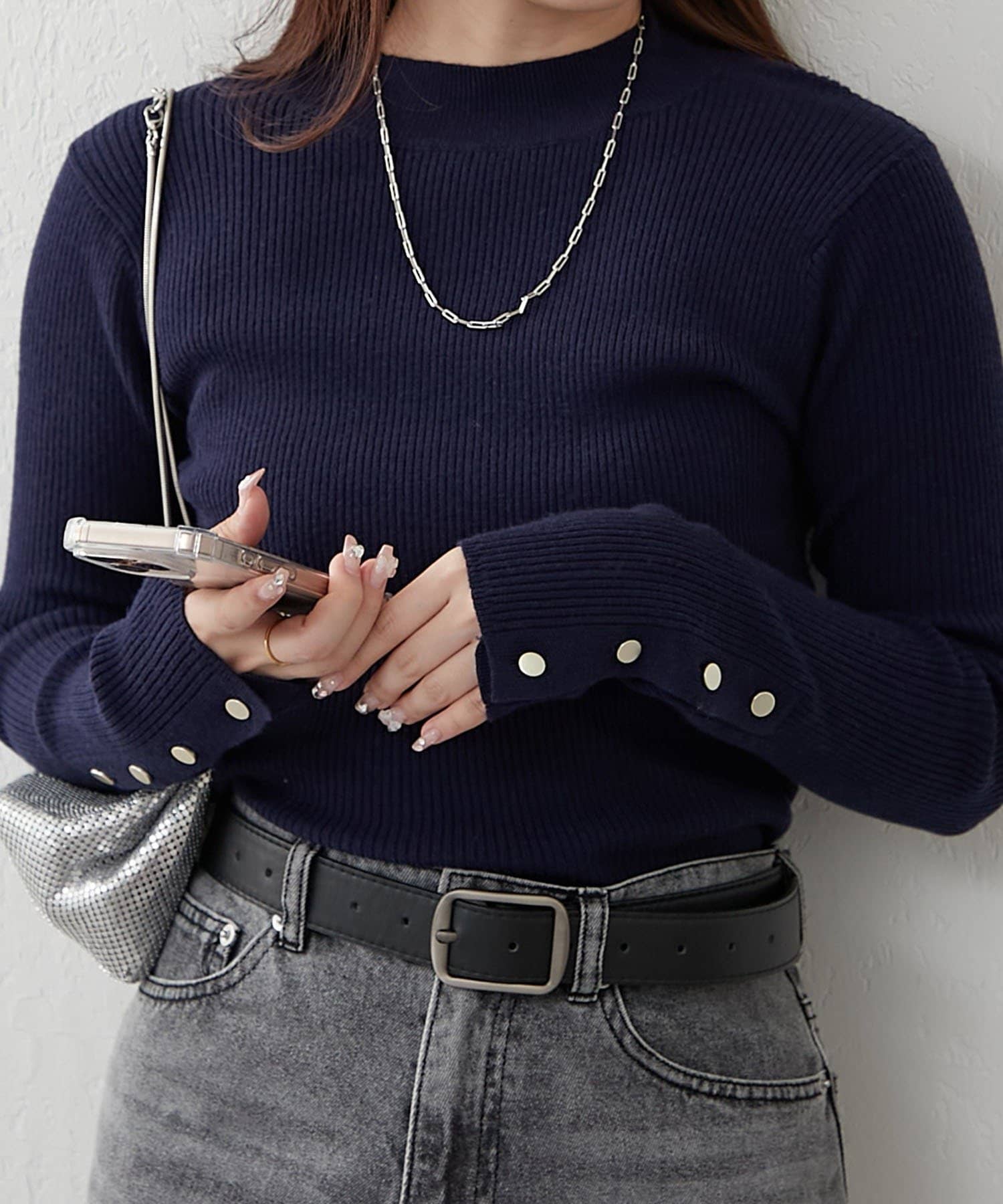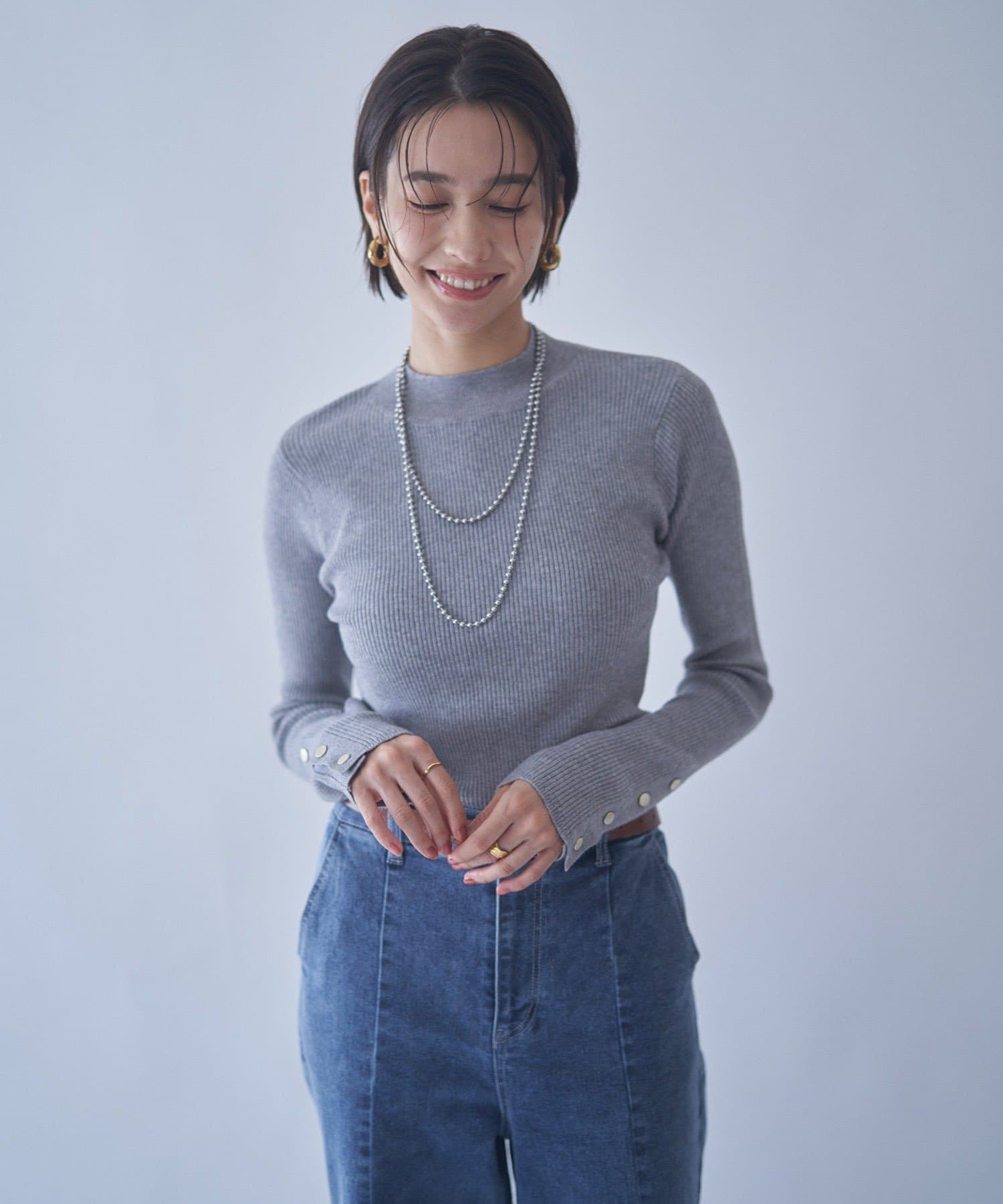 【WEB先行予約】袖ボタンハイネックリブプルオーバー