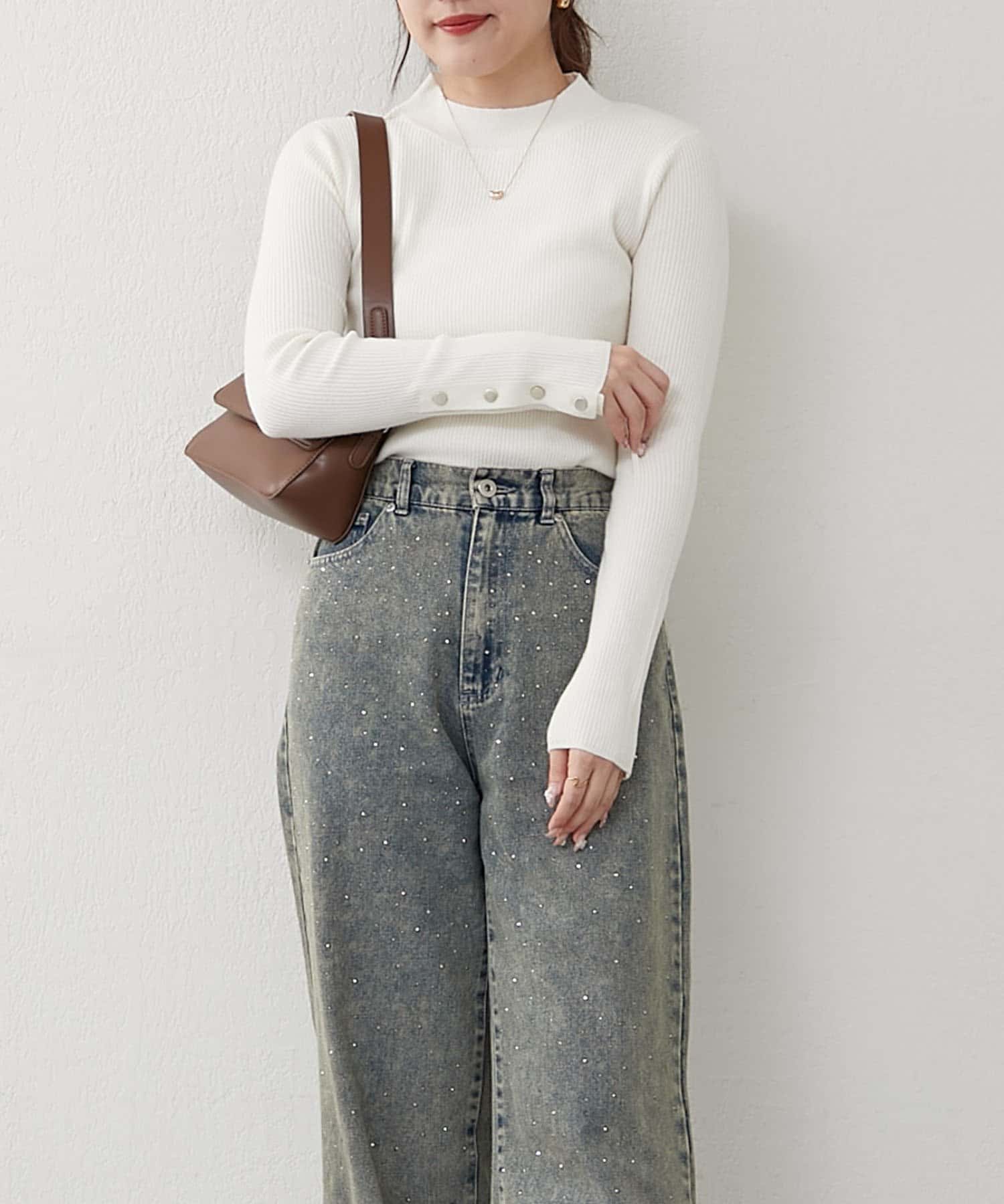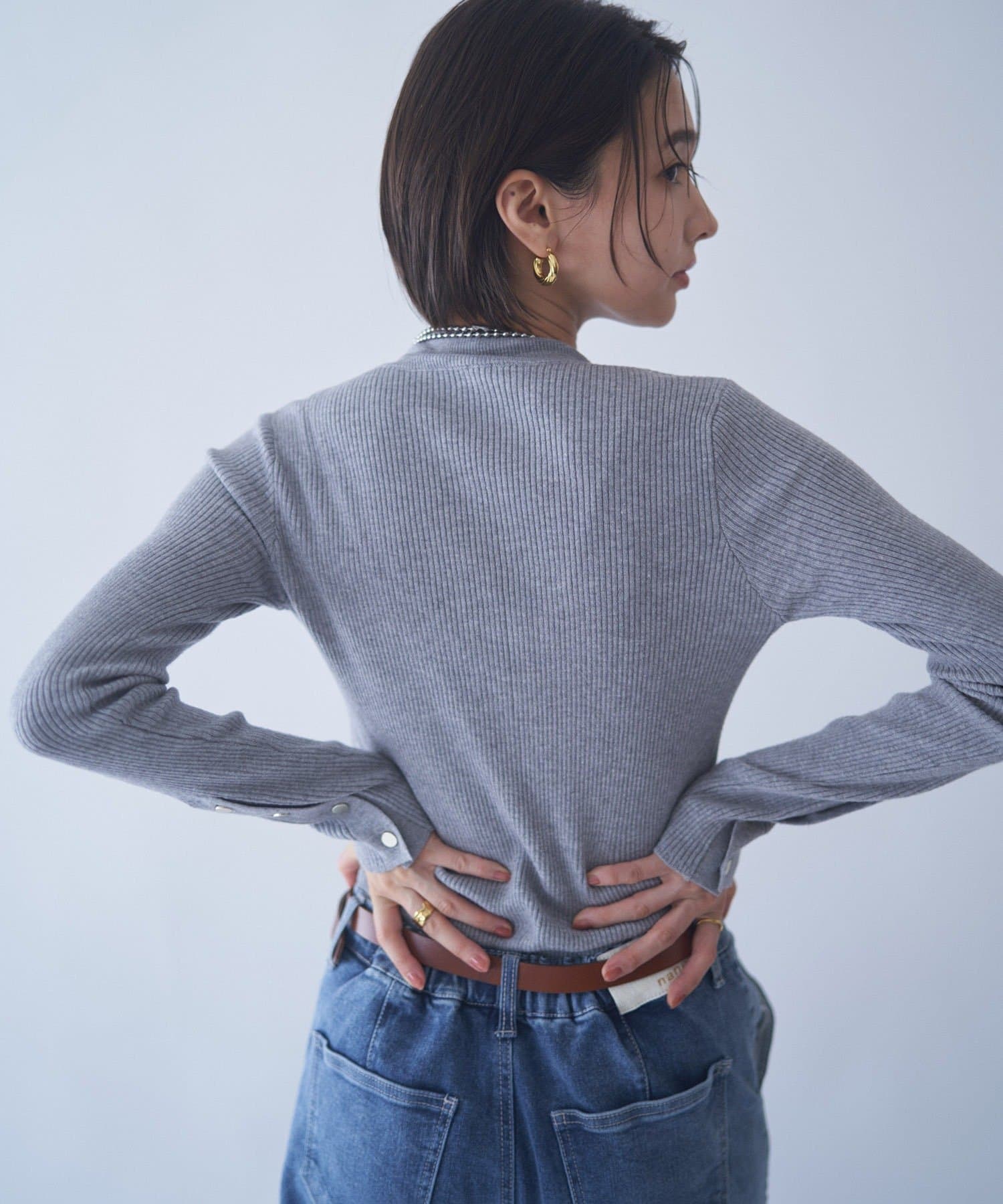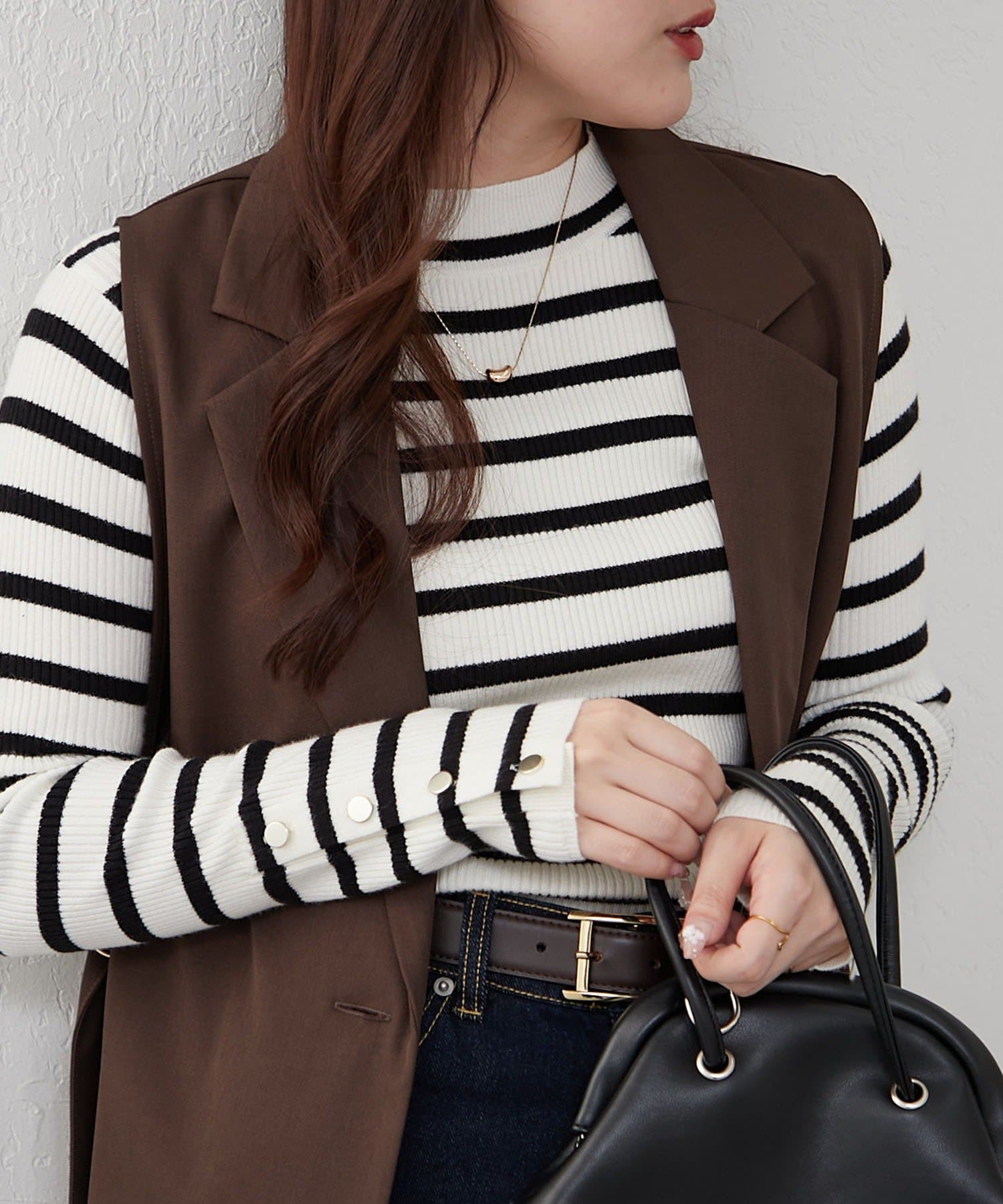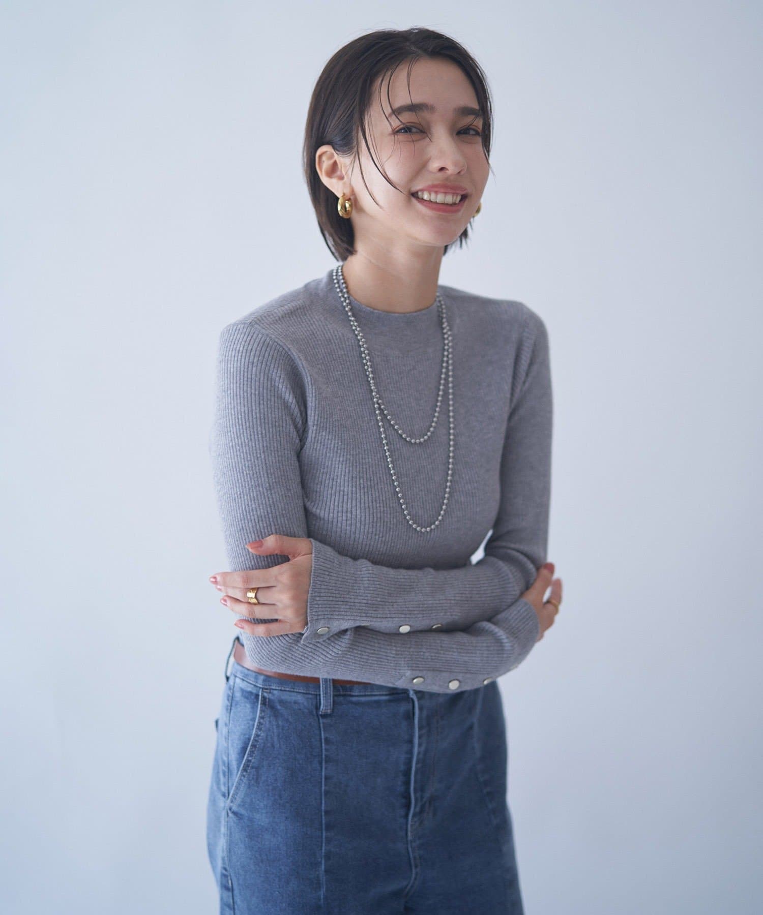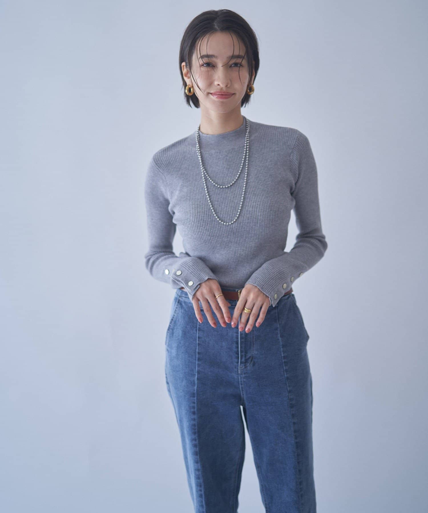 【WEB先行予約】袖ボタンハイネックリブプルオーバー