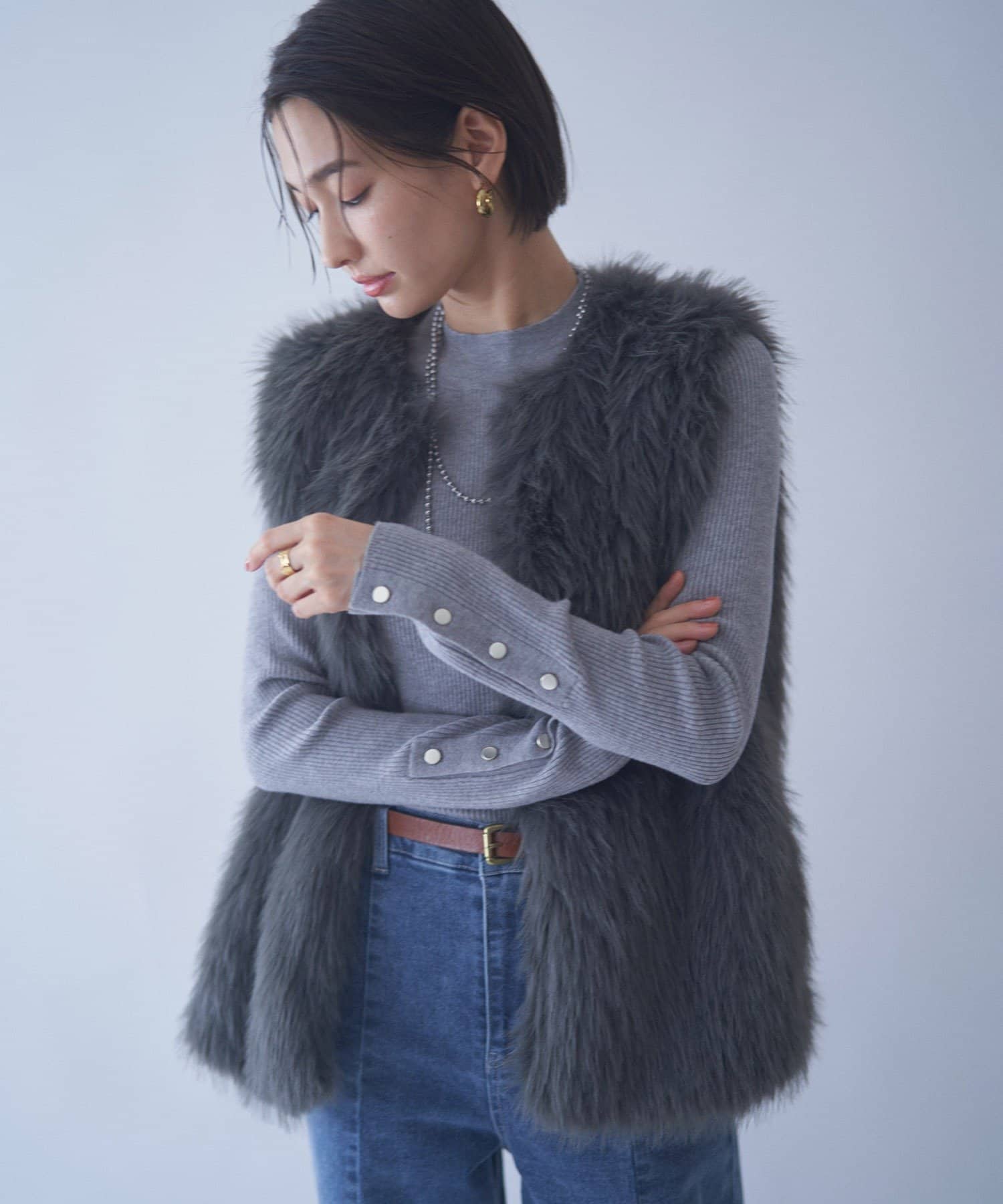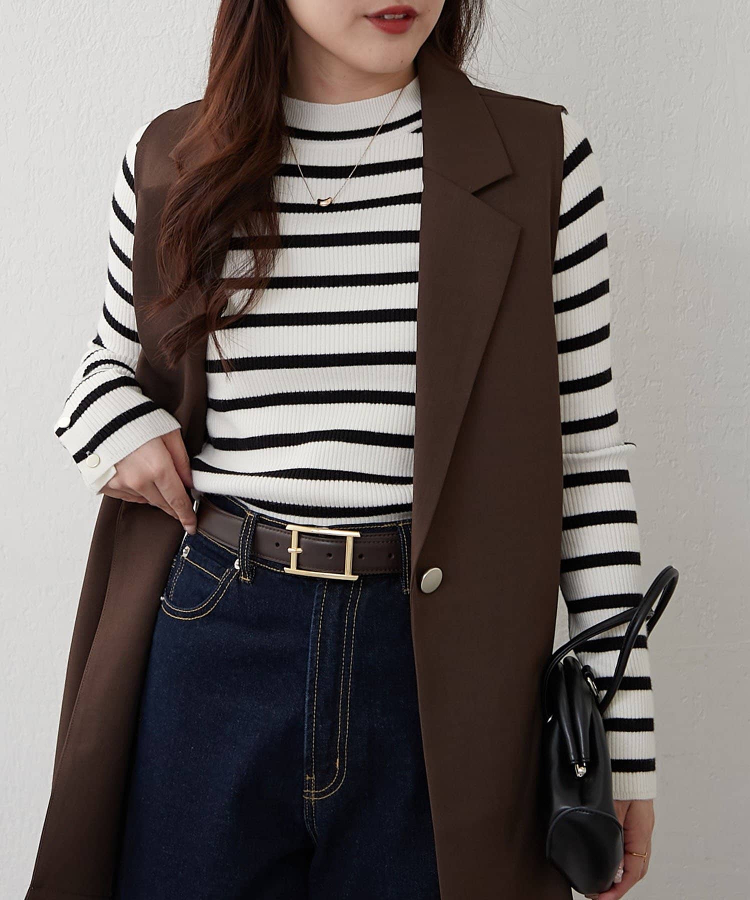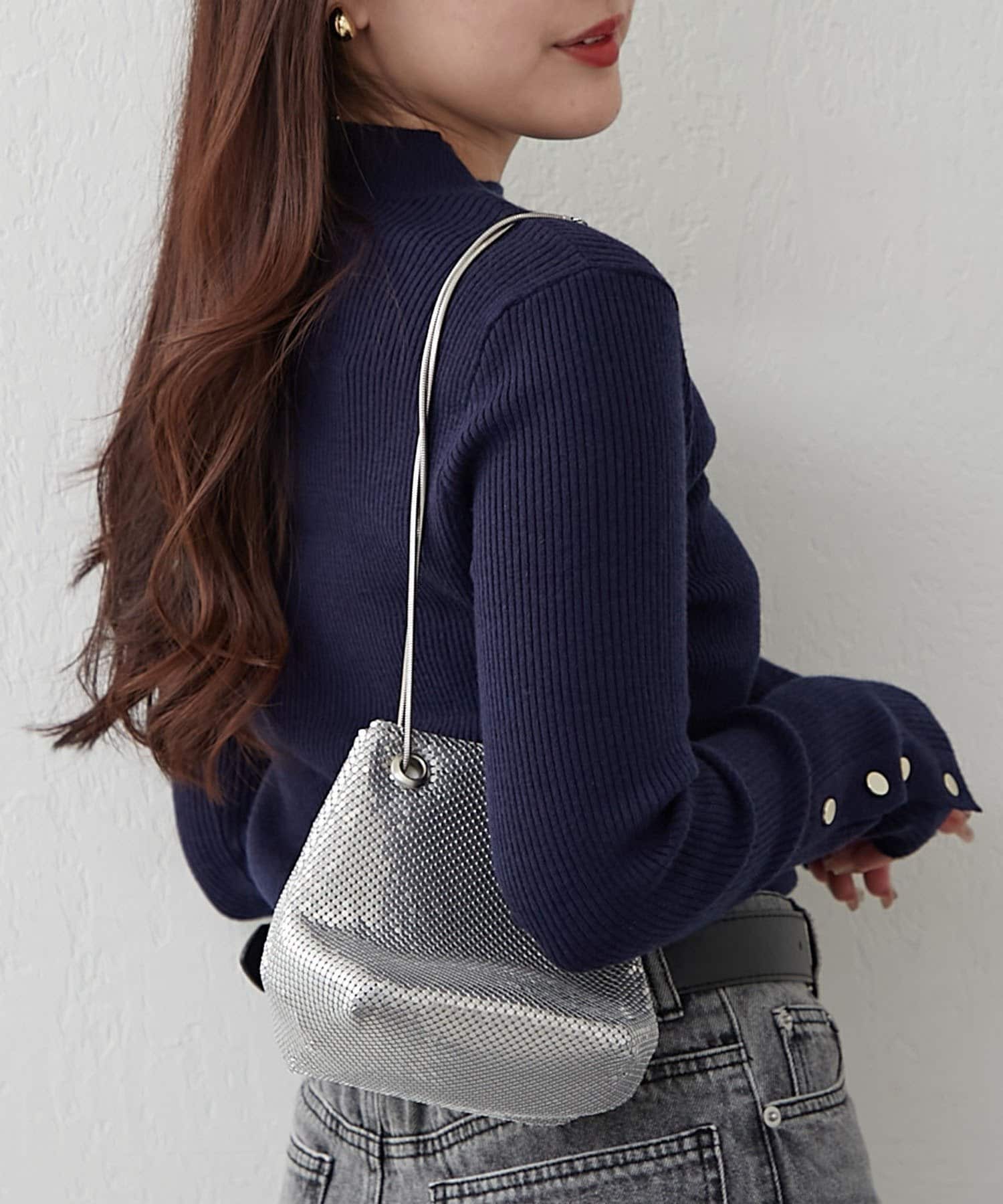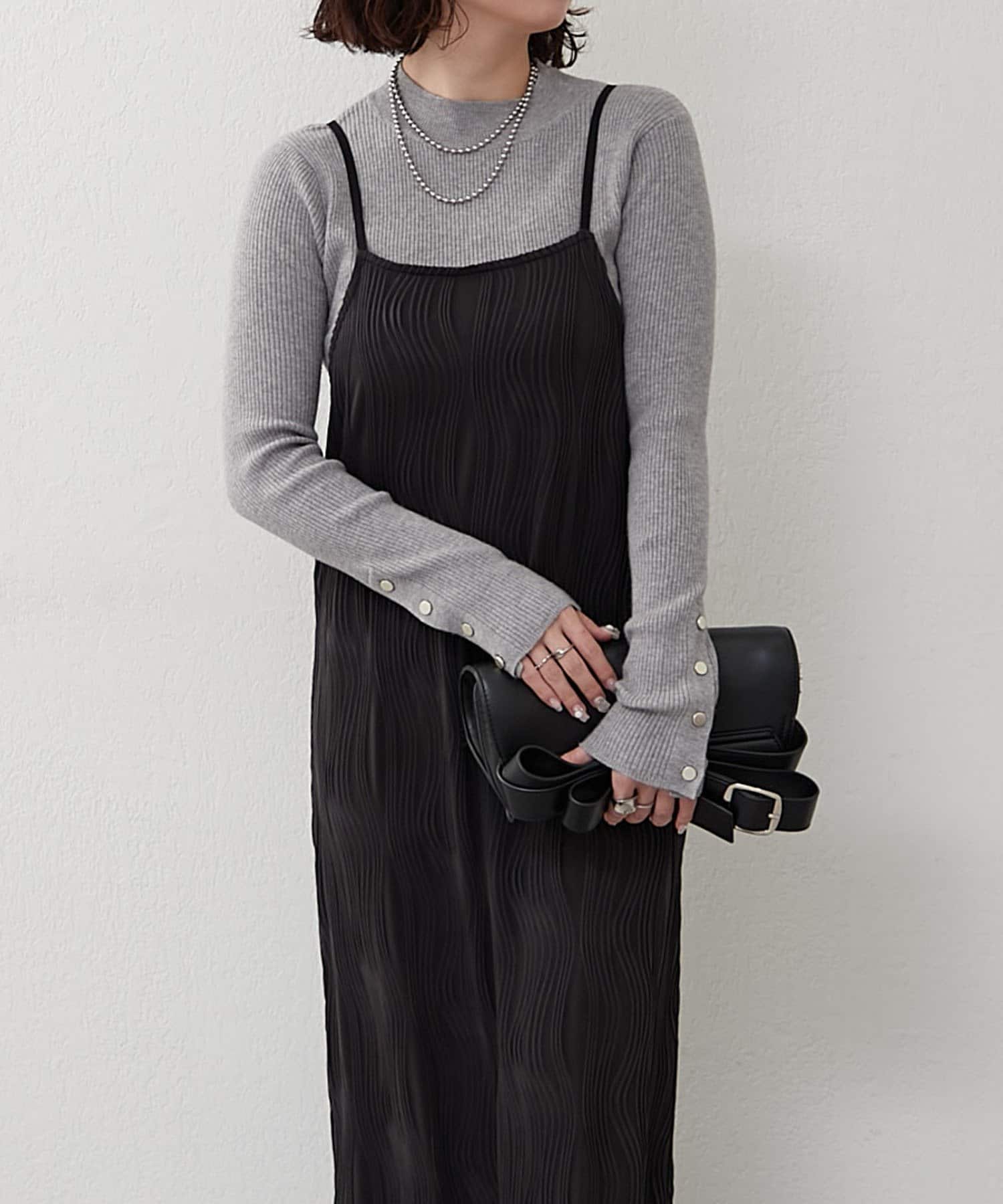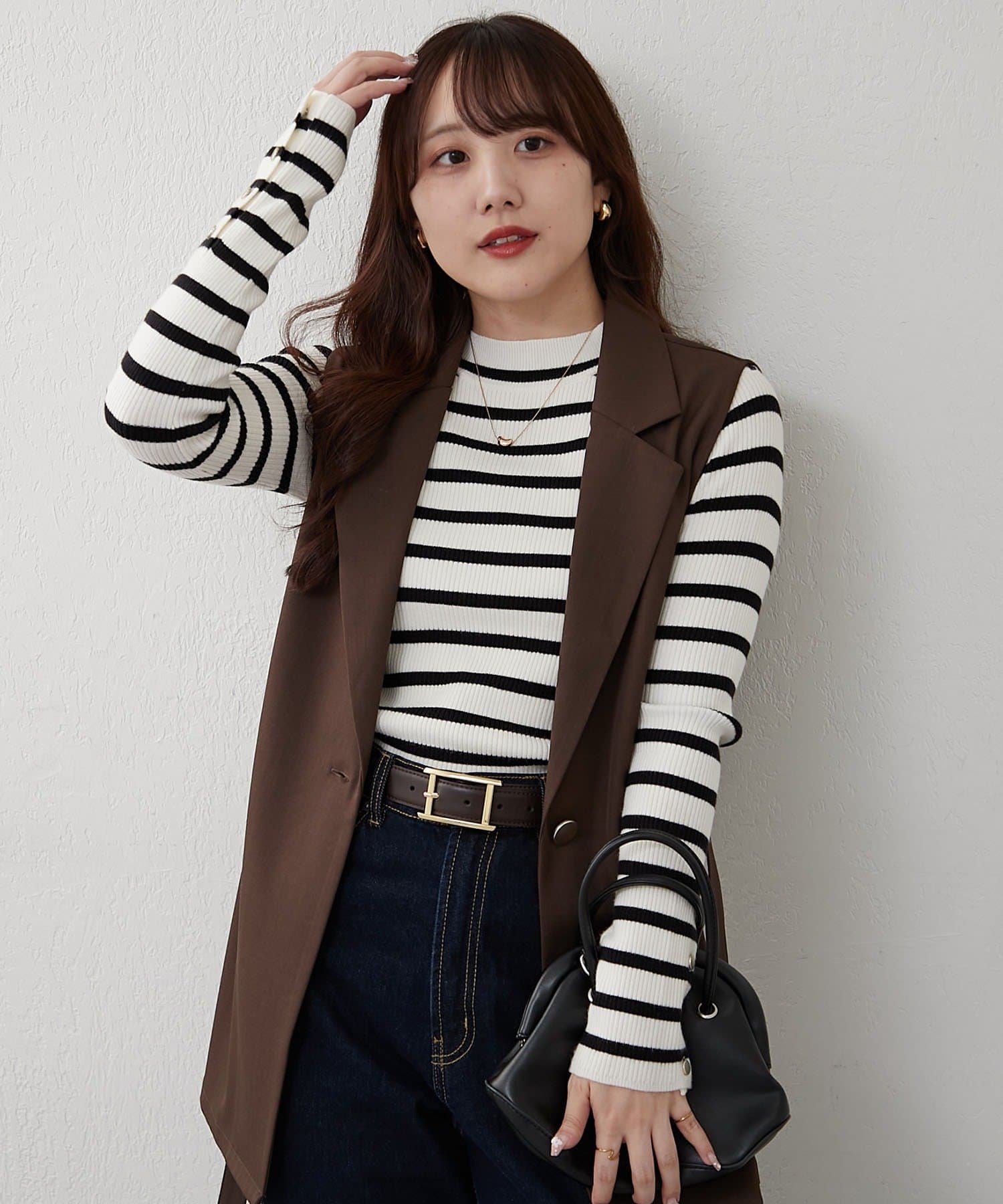 【WEB先行予約】袖ボタンハイネックリブプルオーバー