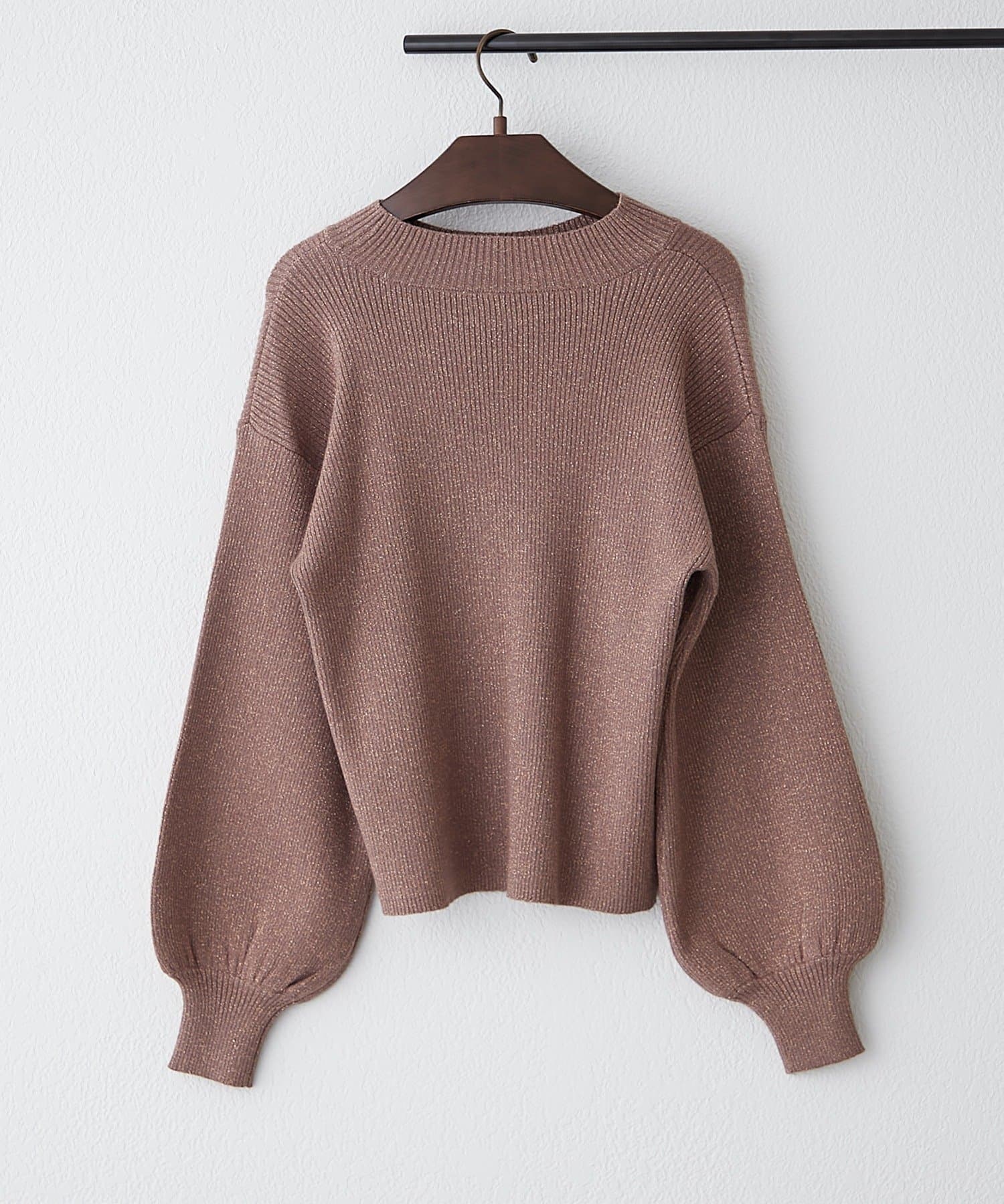 ・ラメ入りでキラキラとした素材でシンプルながら華やかさがあるニット