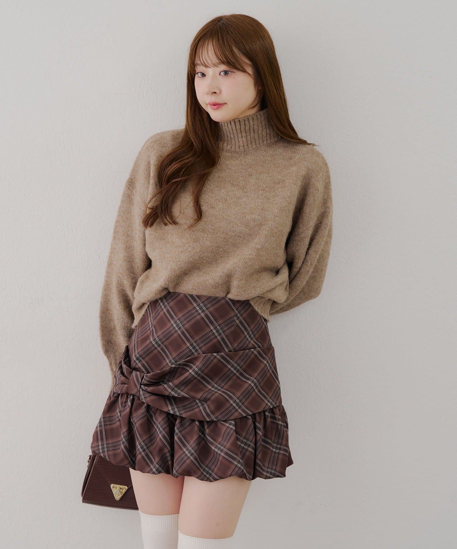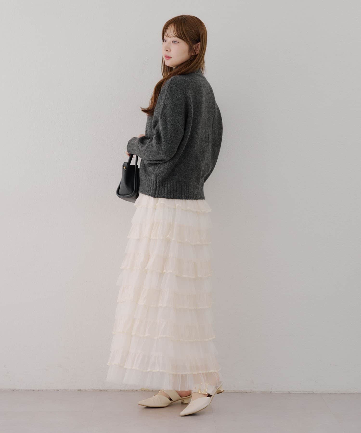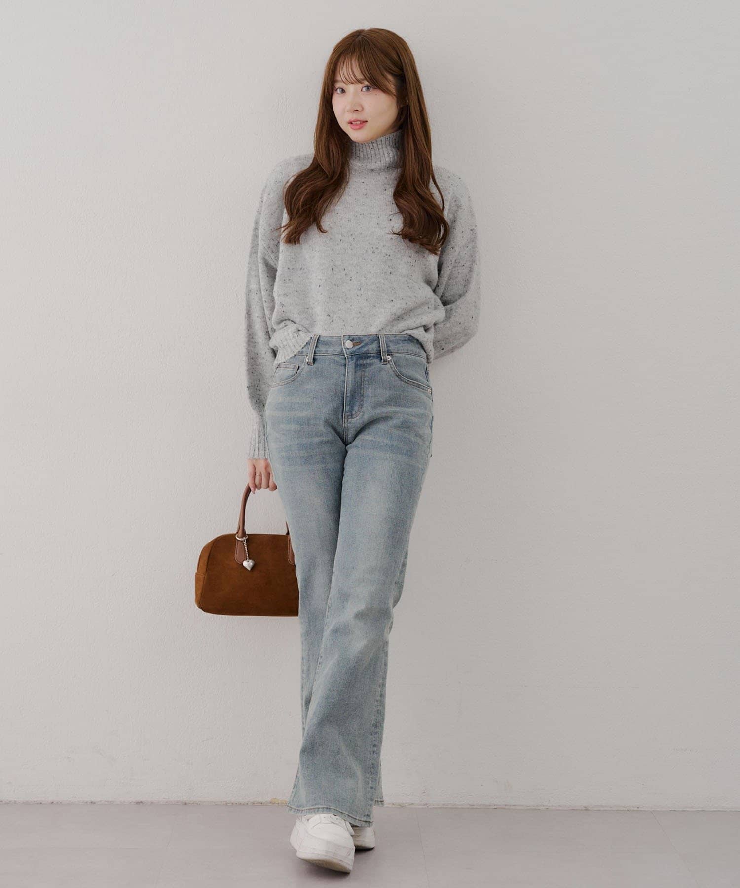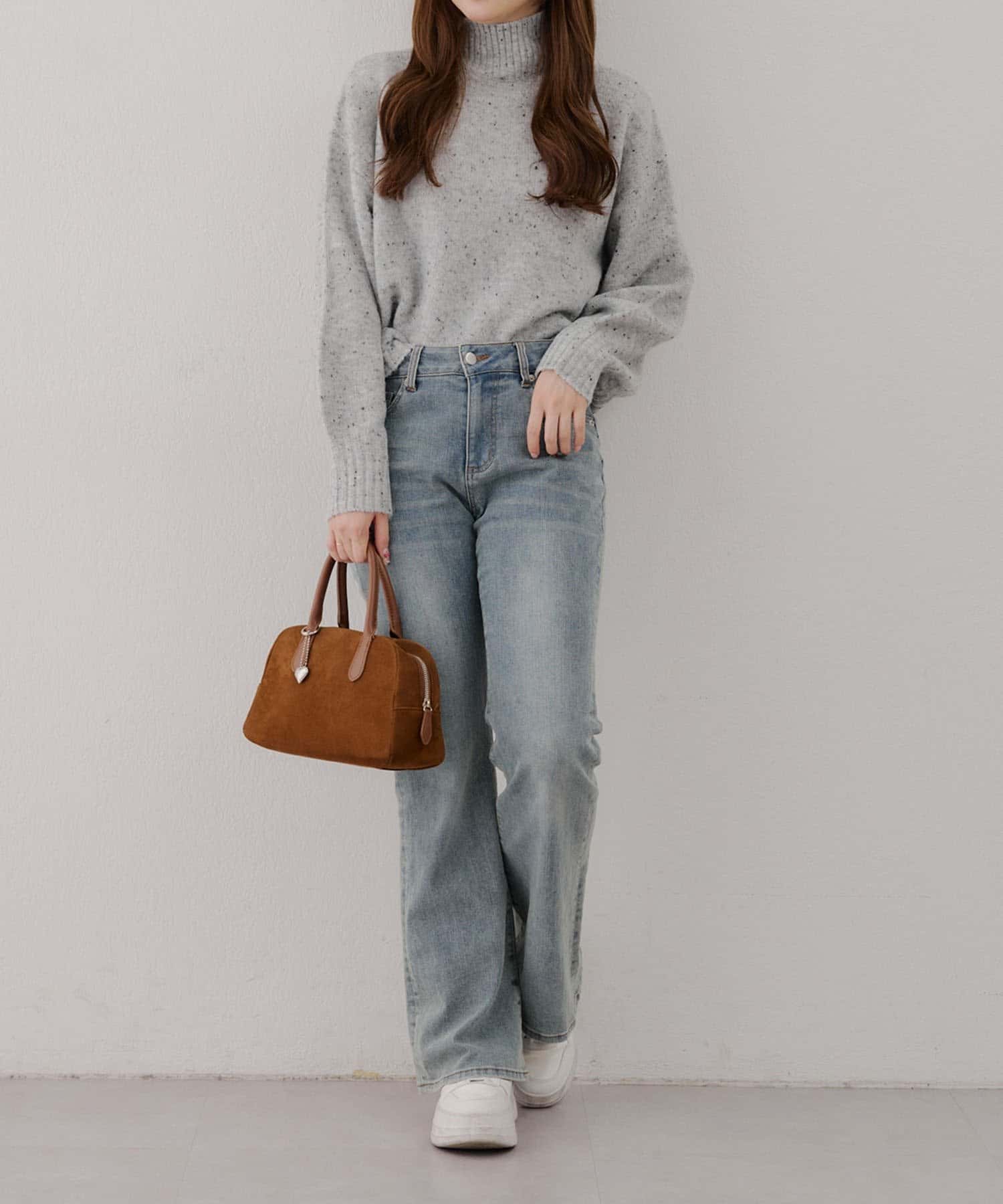 ・首元に余裕のあるアウター合わせるとニットのハイネック部分を見せることが出来ます。