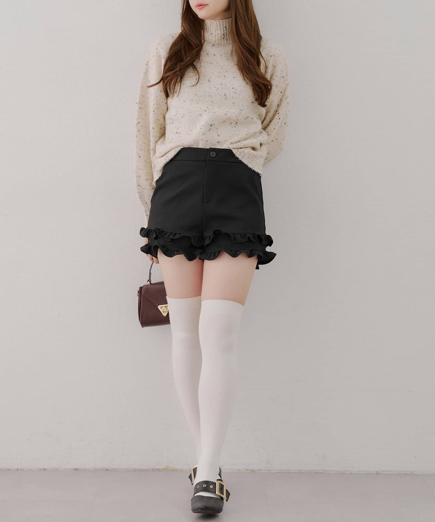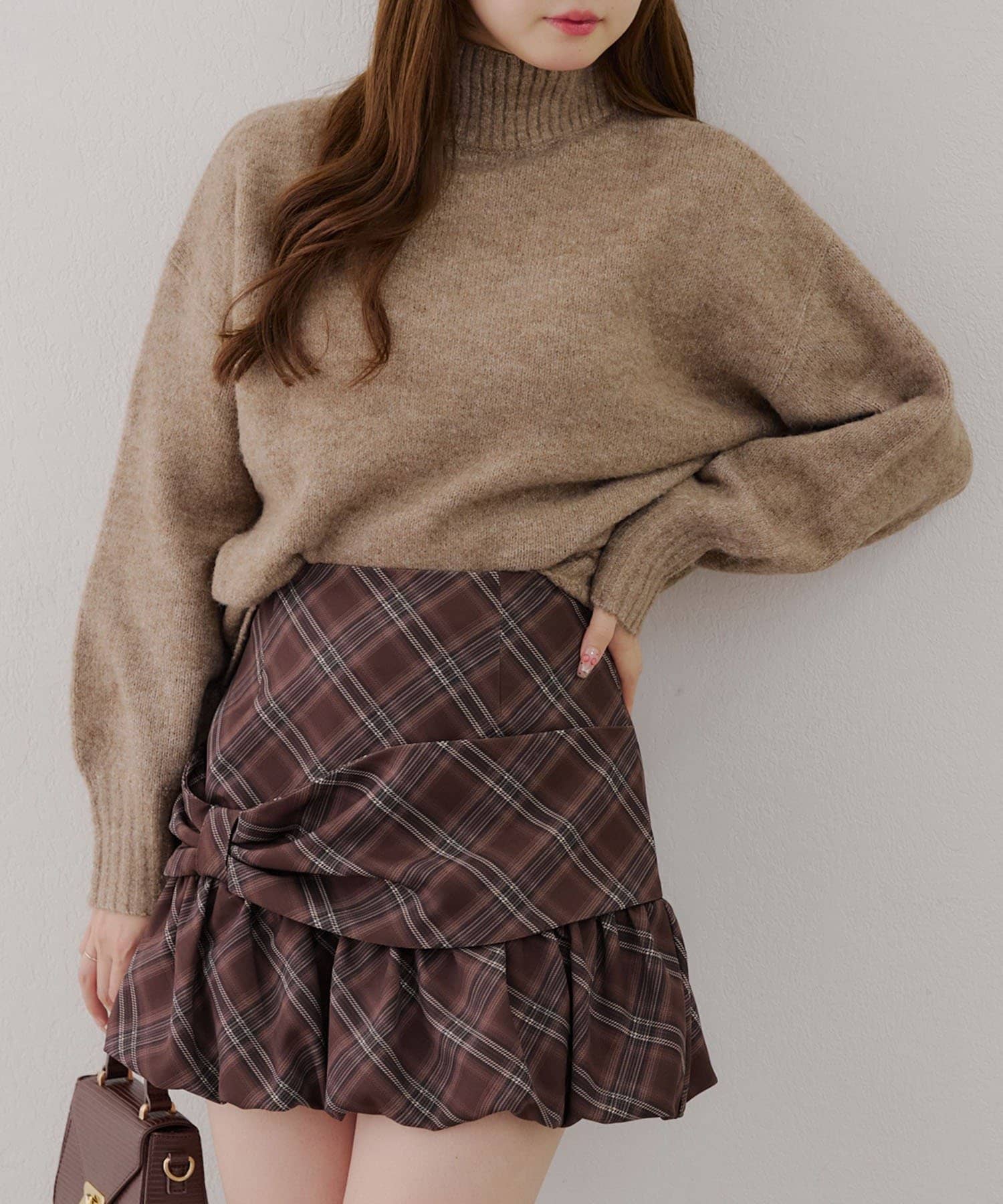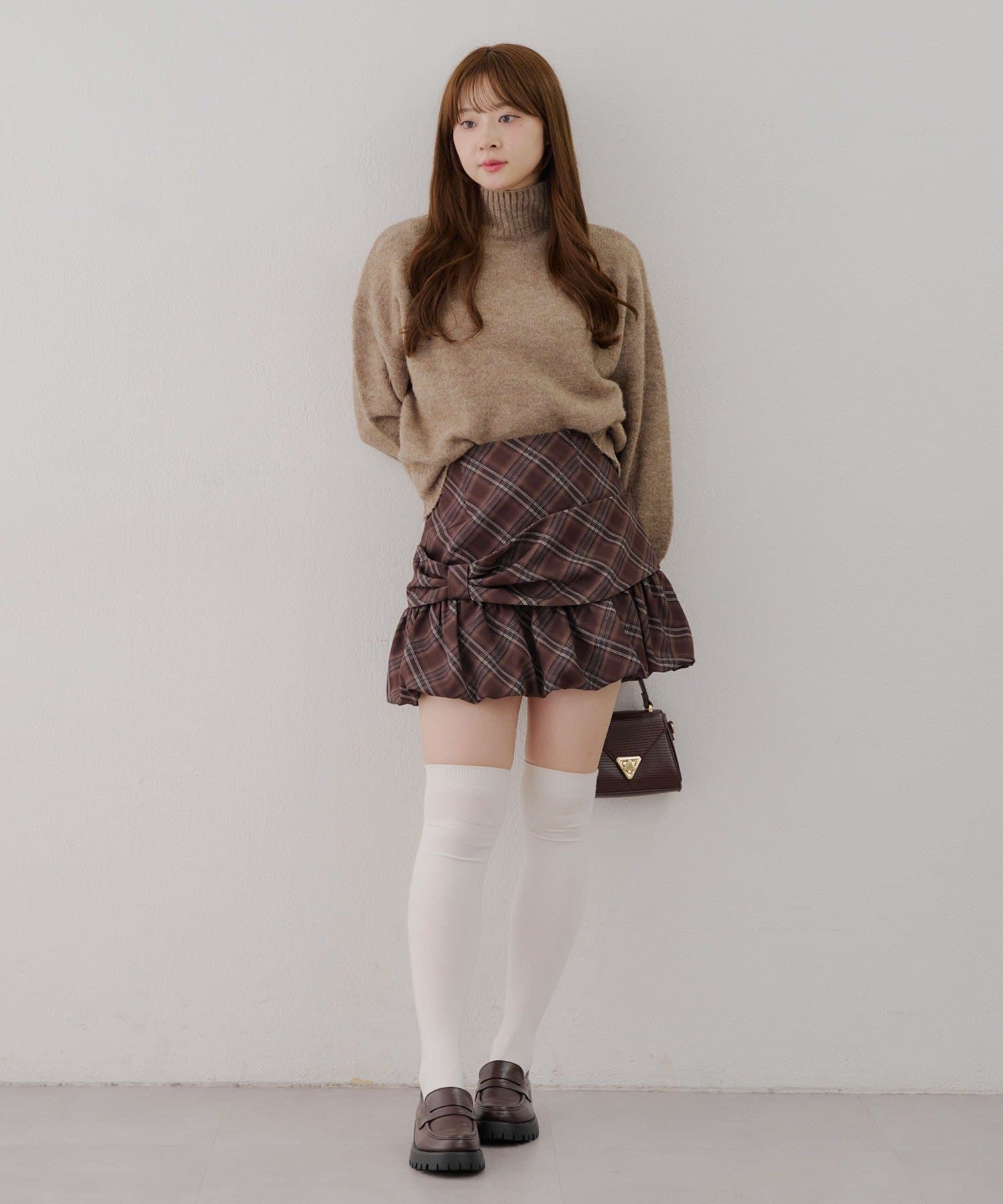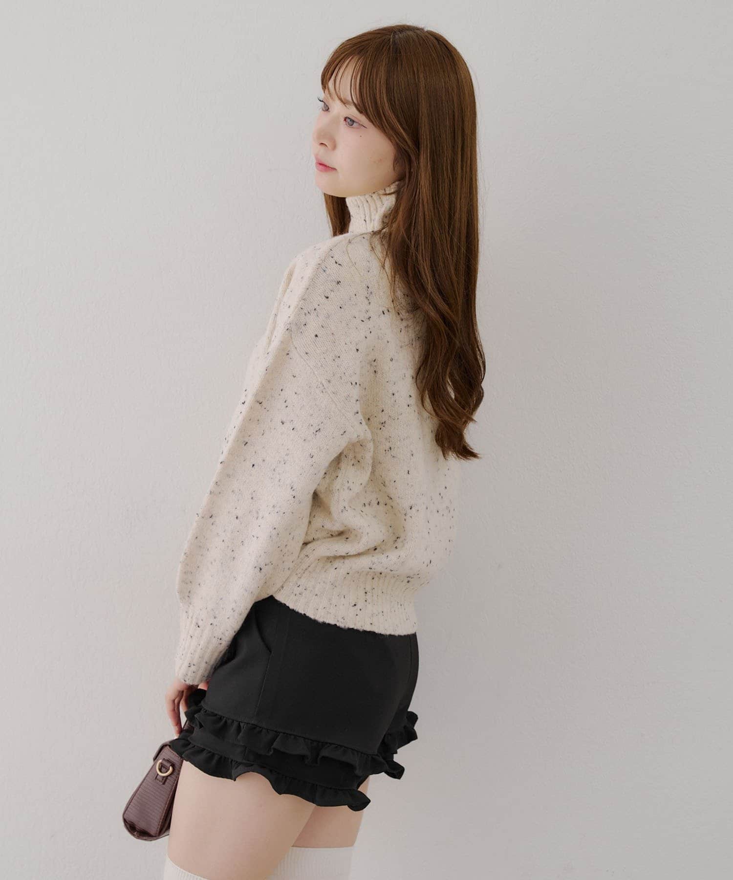 ・首元に余裕のあるアウター合わせるとニットのハイネック部分を見せることが出来ます。