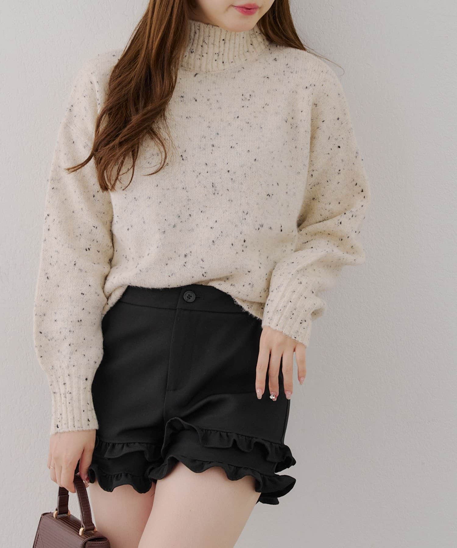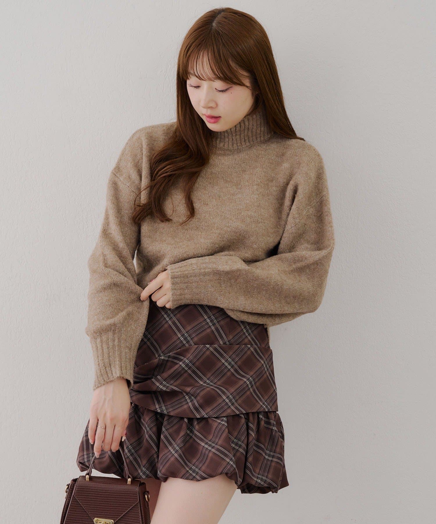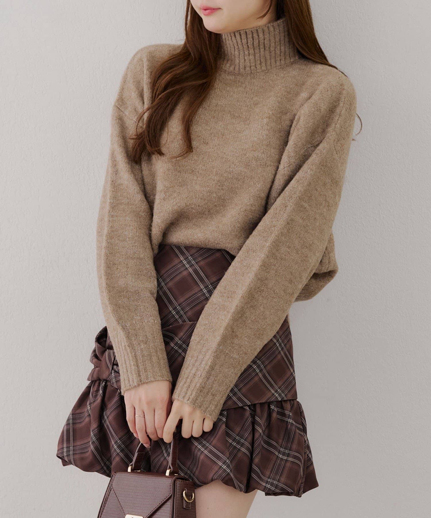 ・シワになりにくく肌触り良い素材でできたヤクタッチハイネックニット