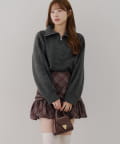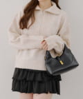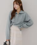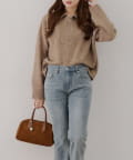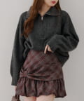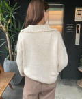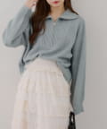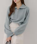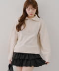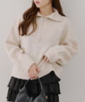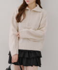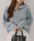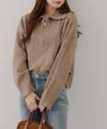 ・ハーフジップデザインのニットトップス。