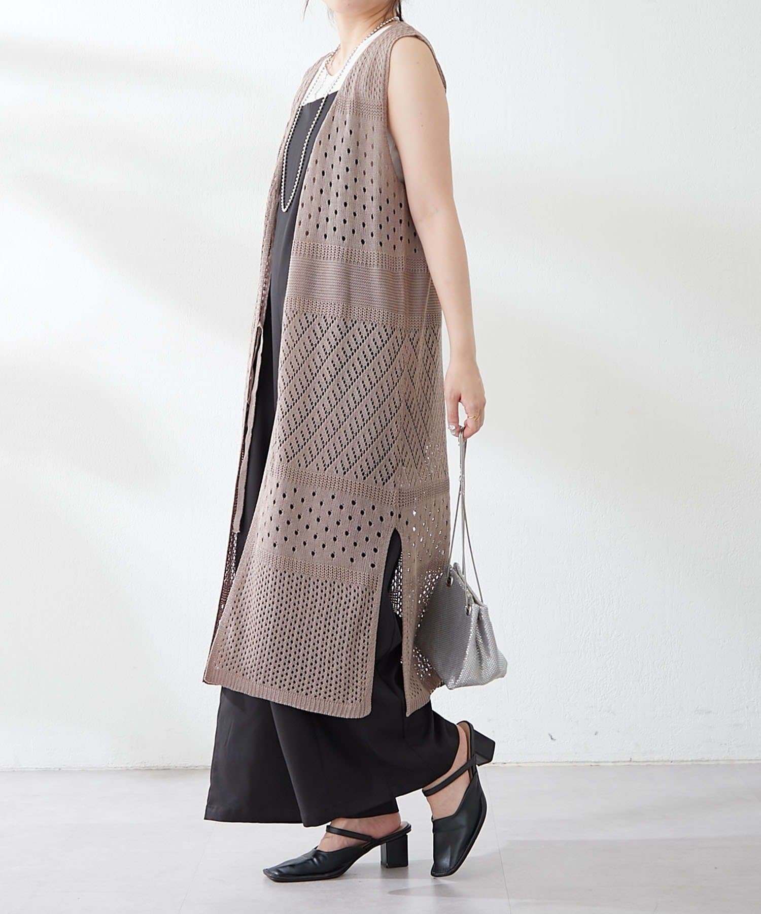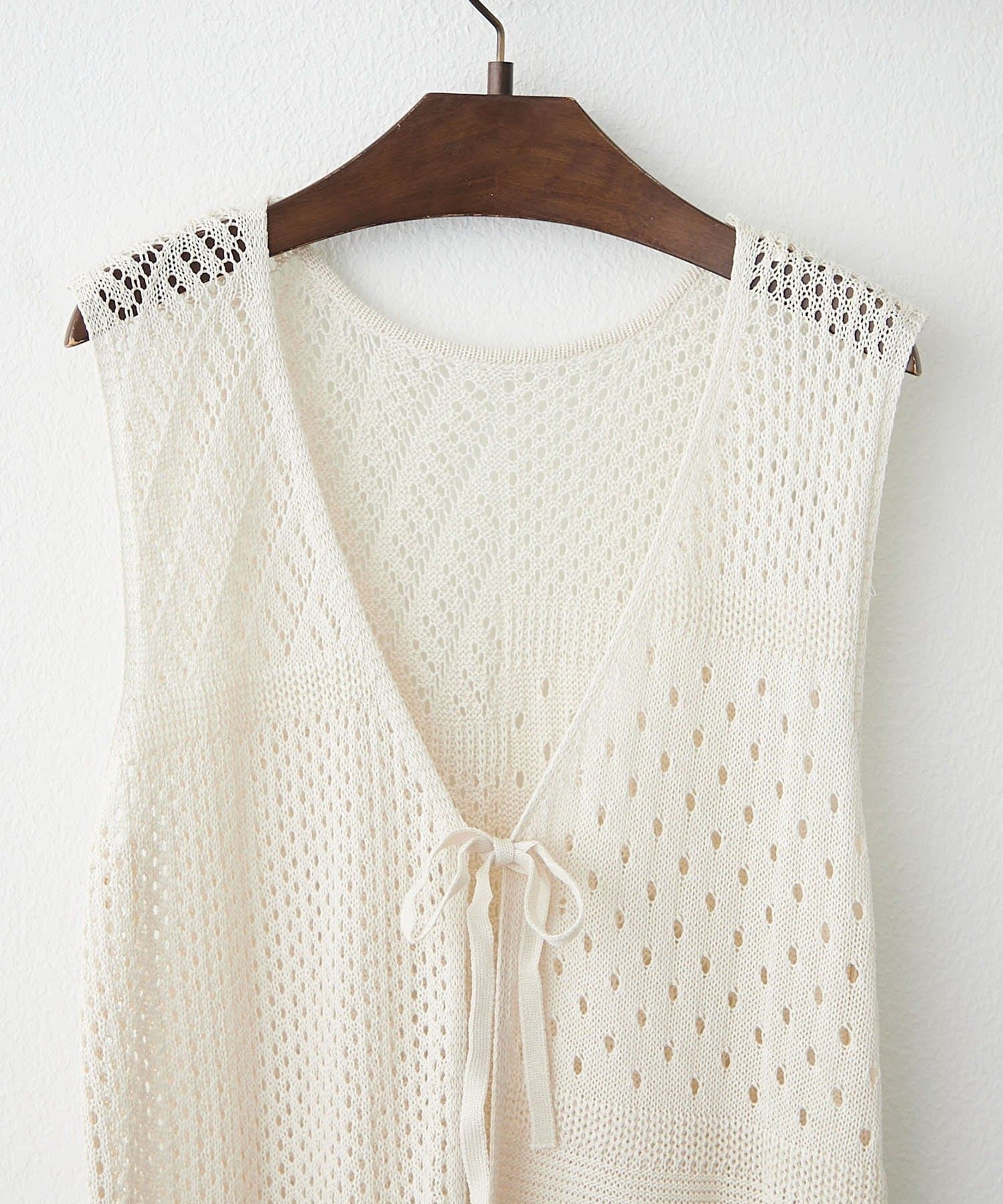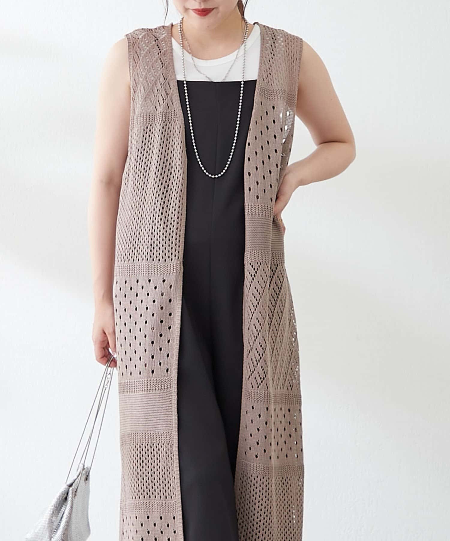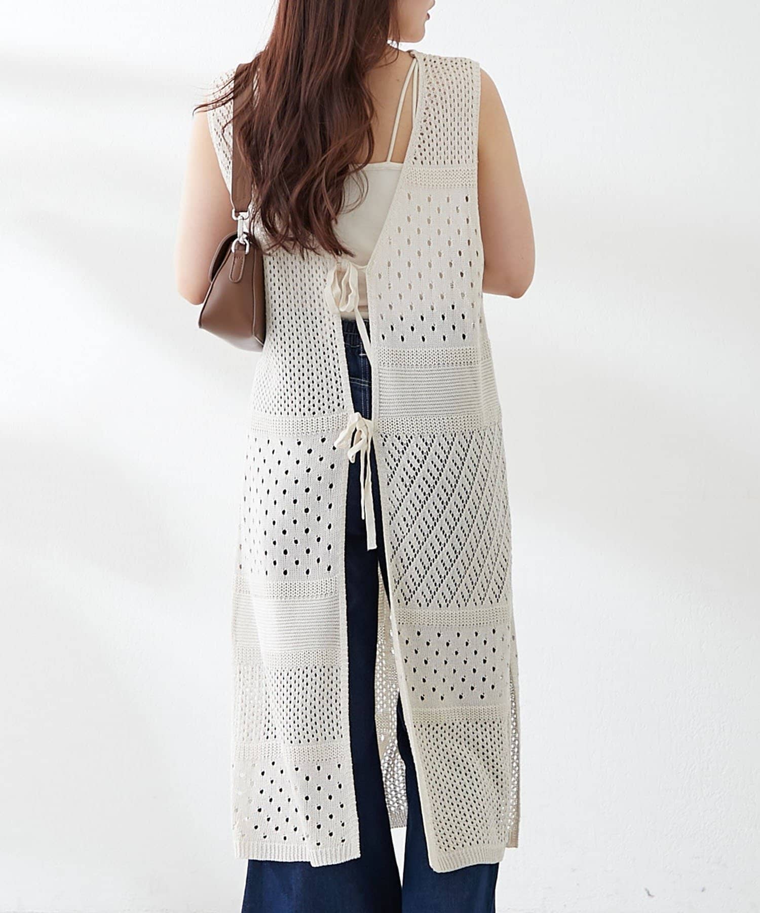 ・夏らしい涼し気なかぎ針ニットを使用したジレ