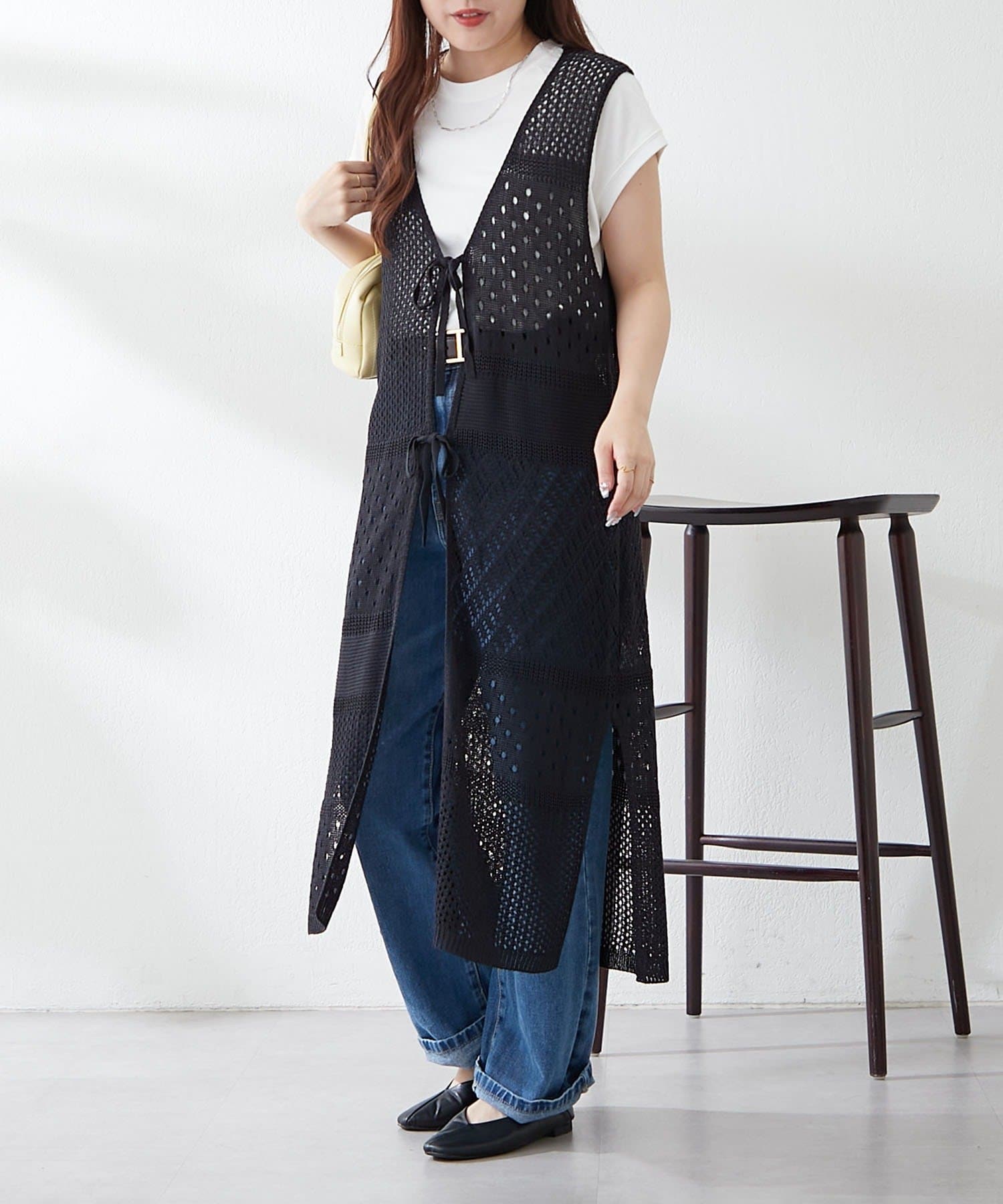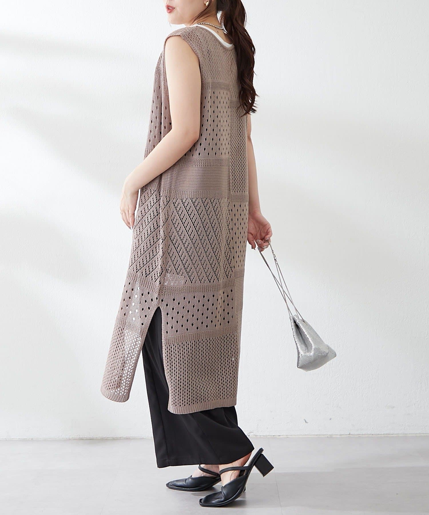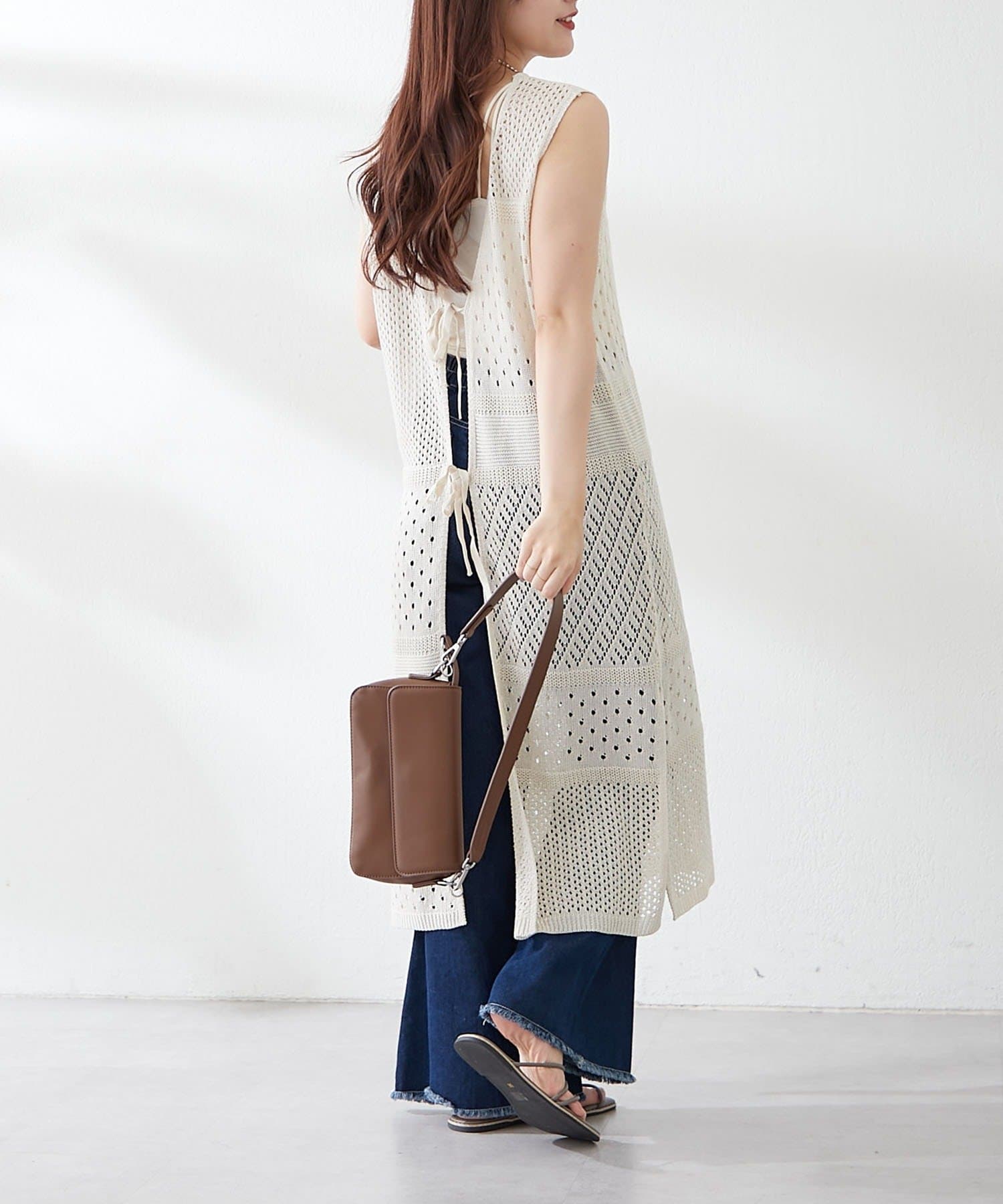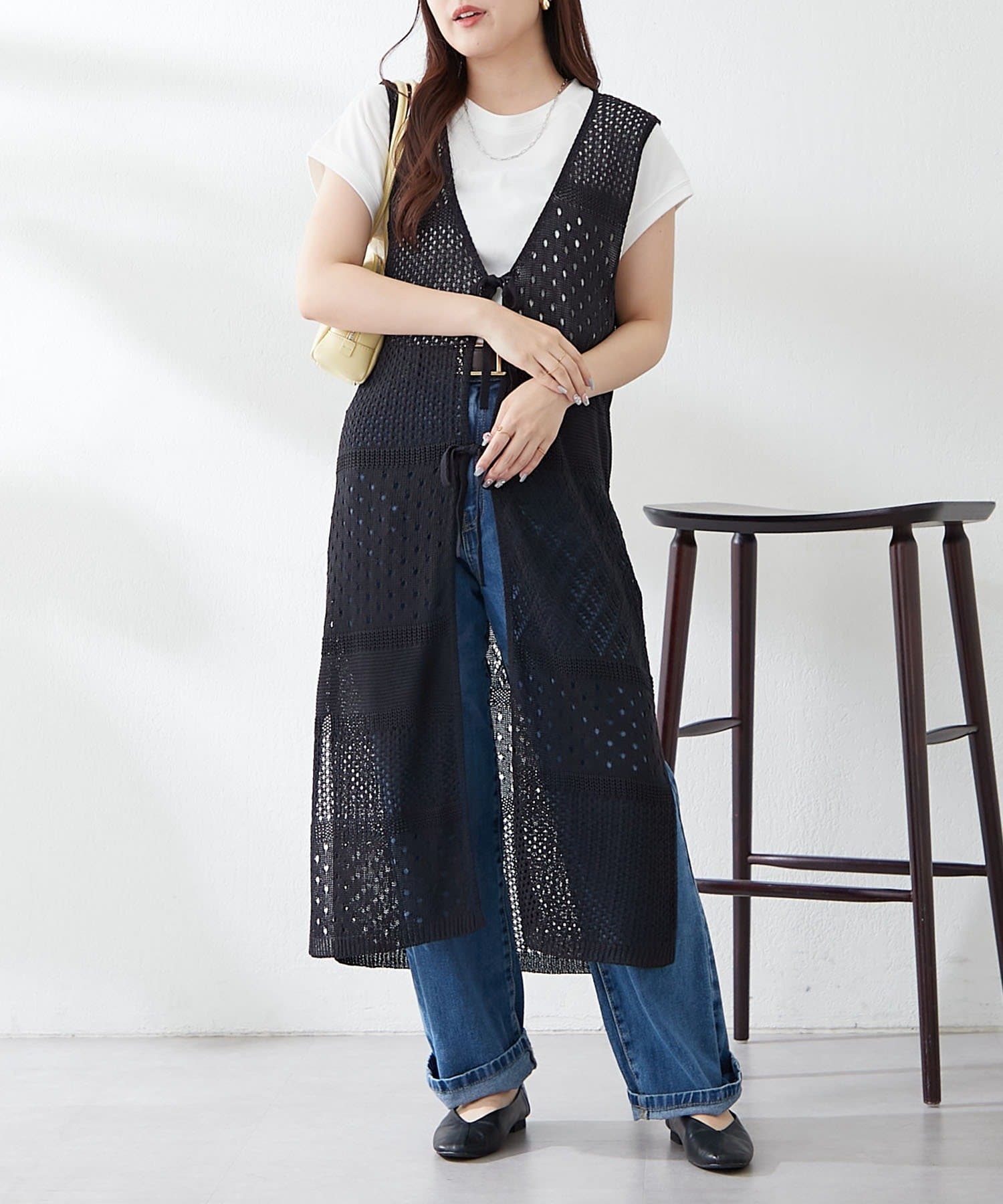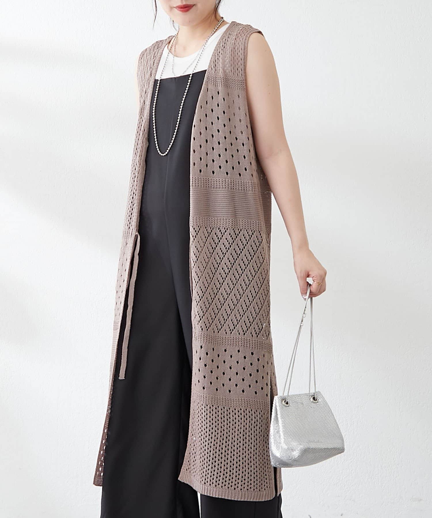 ・夏らしい涼し気なかぎ針ニットを使用したジレ