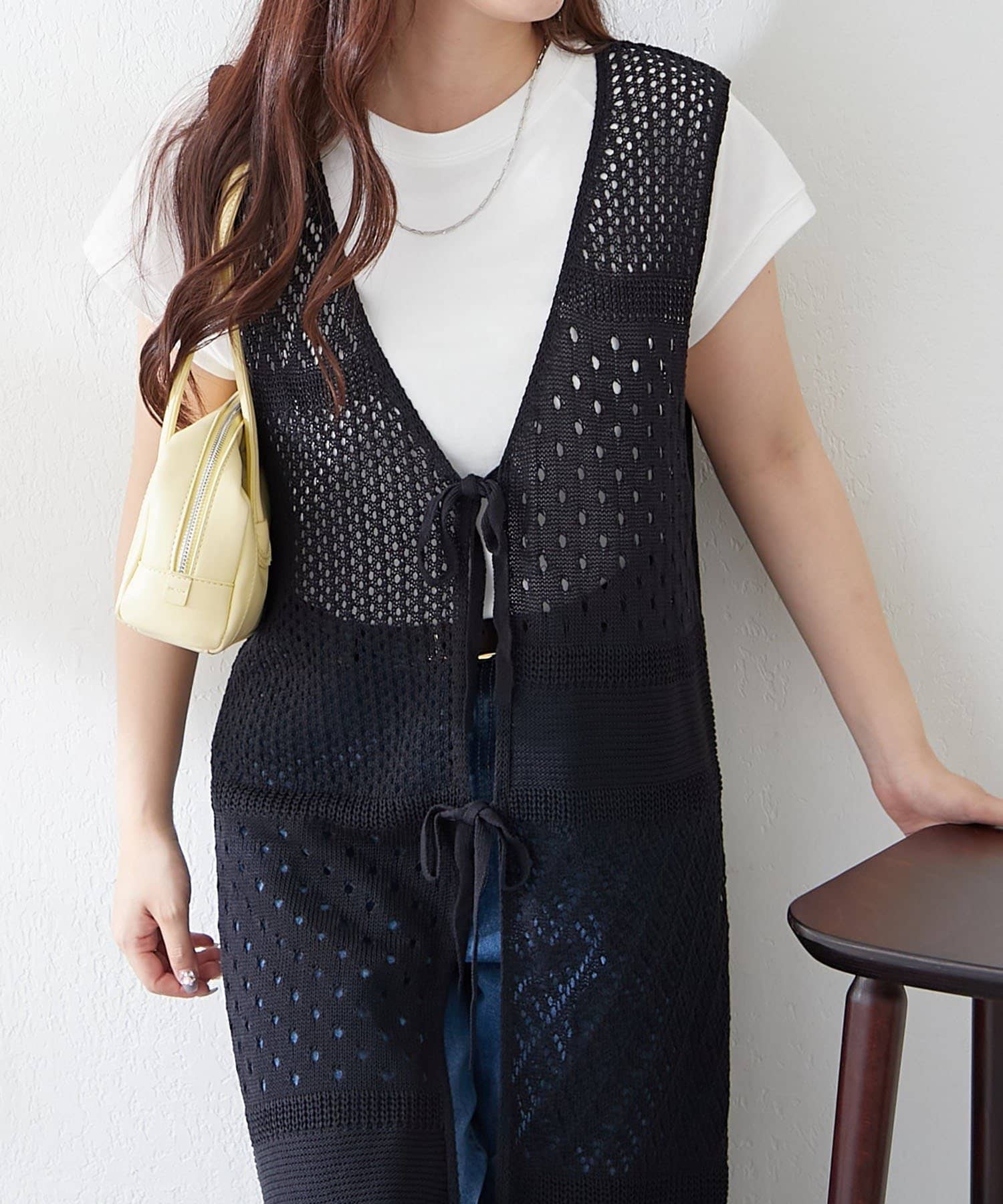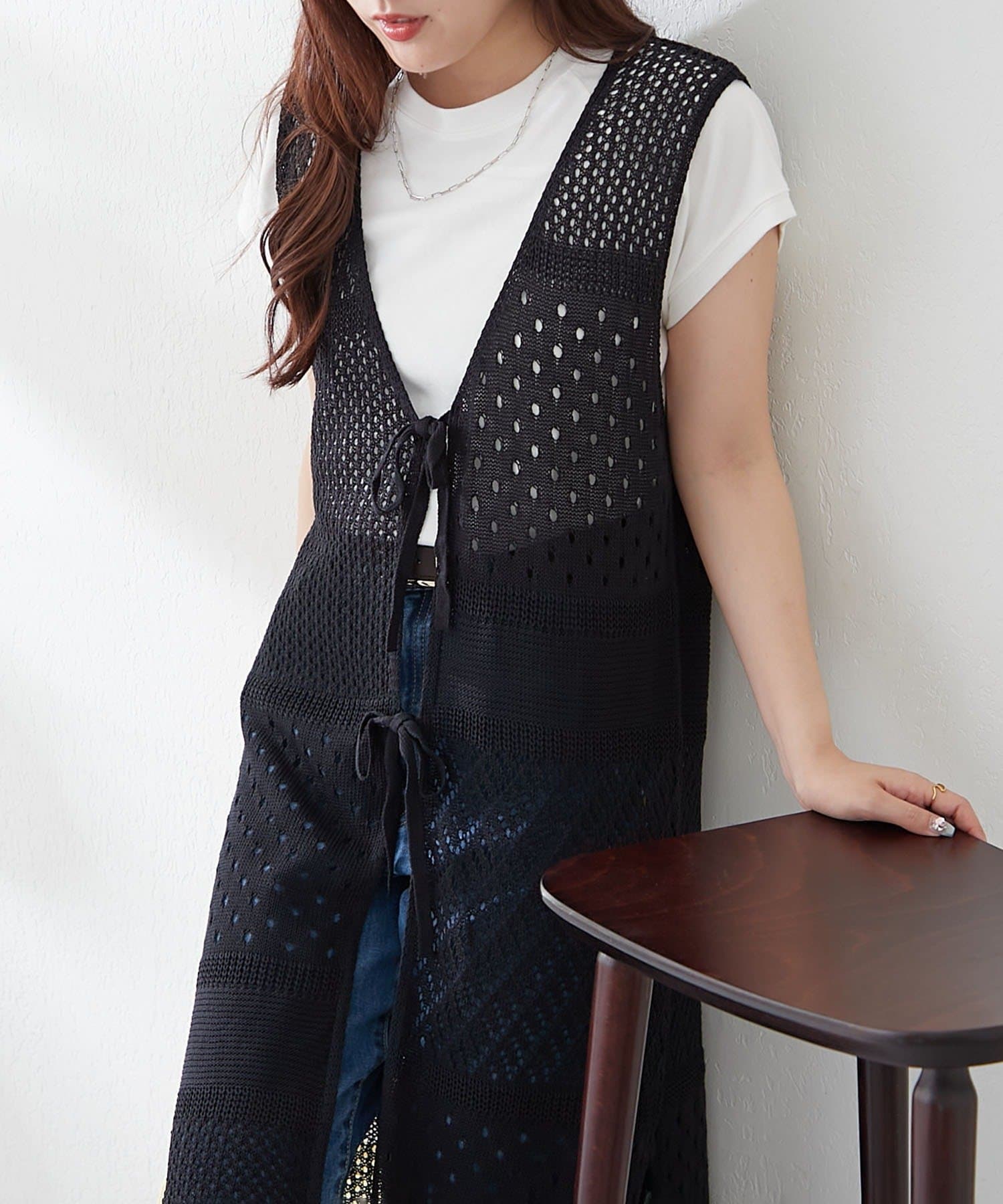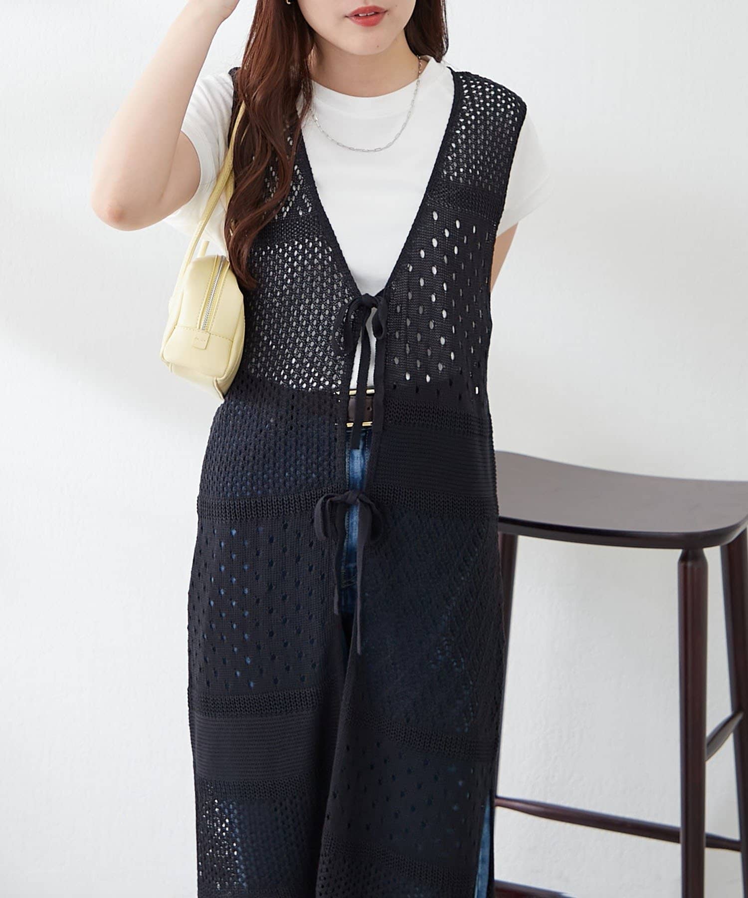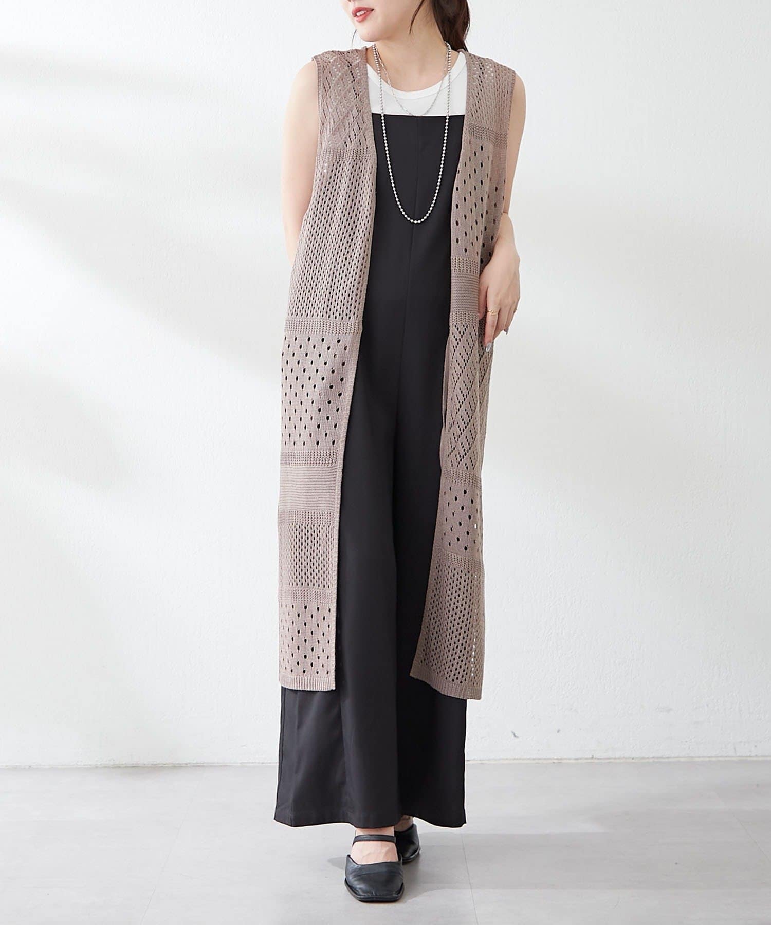 ・夏らしい涼し気なかぎ針ニットを使用したジレ