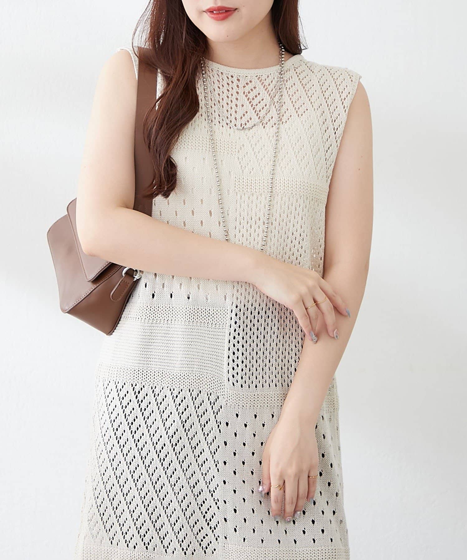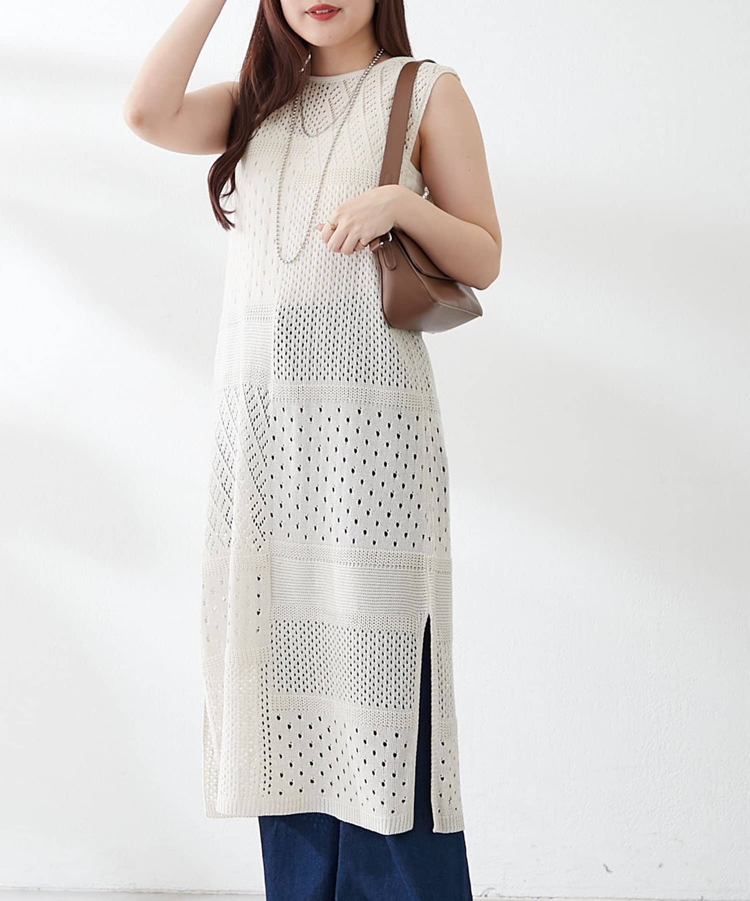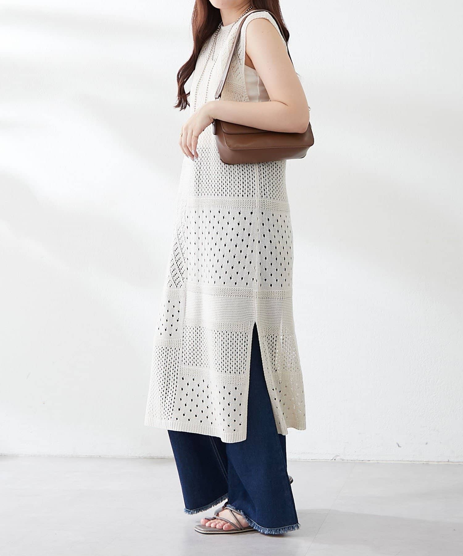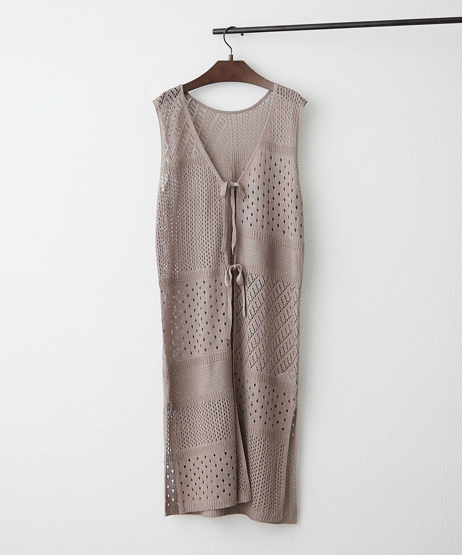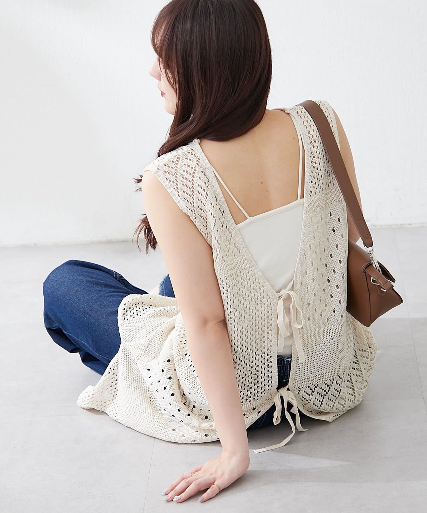 ・夏らしい涼し気なかぎ針ニットを使用したジレ