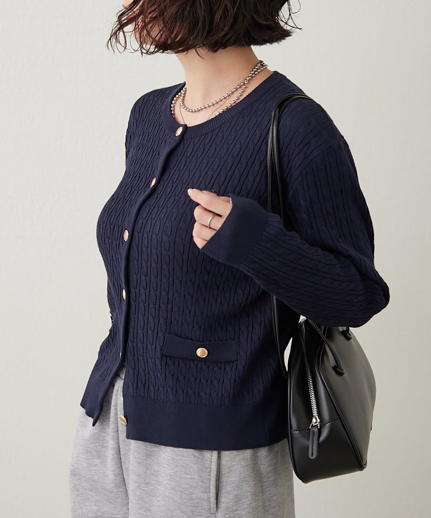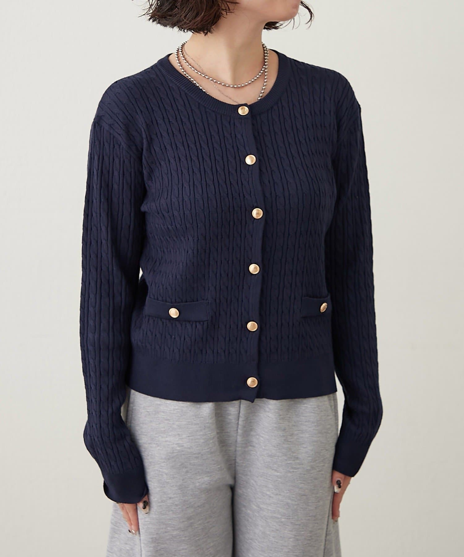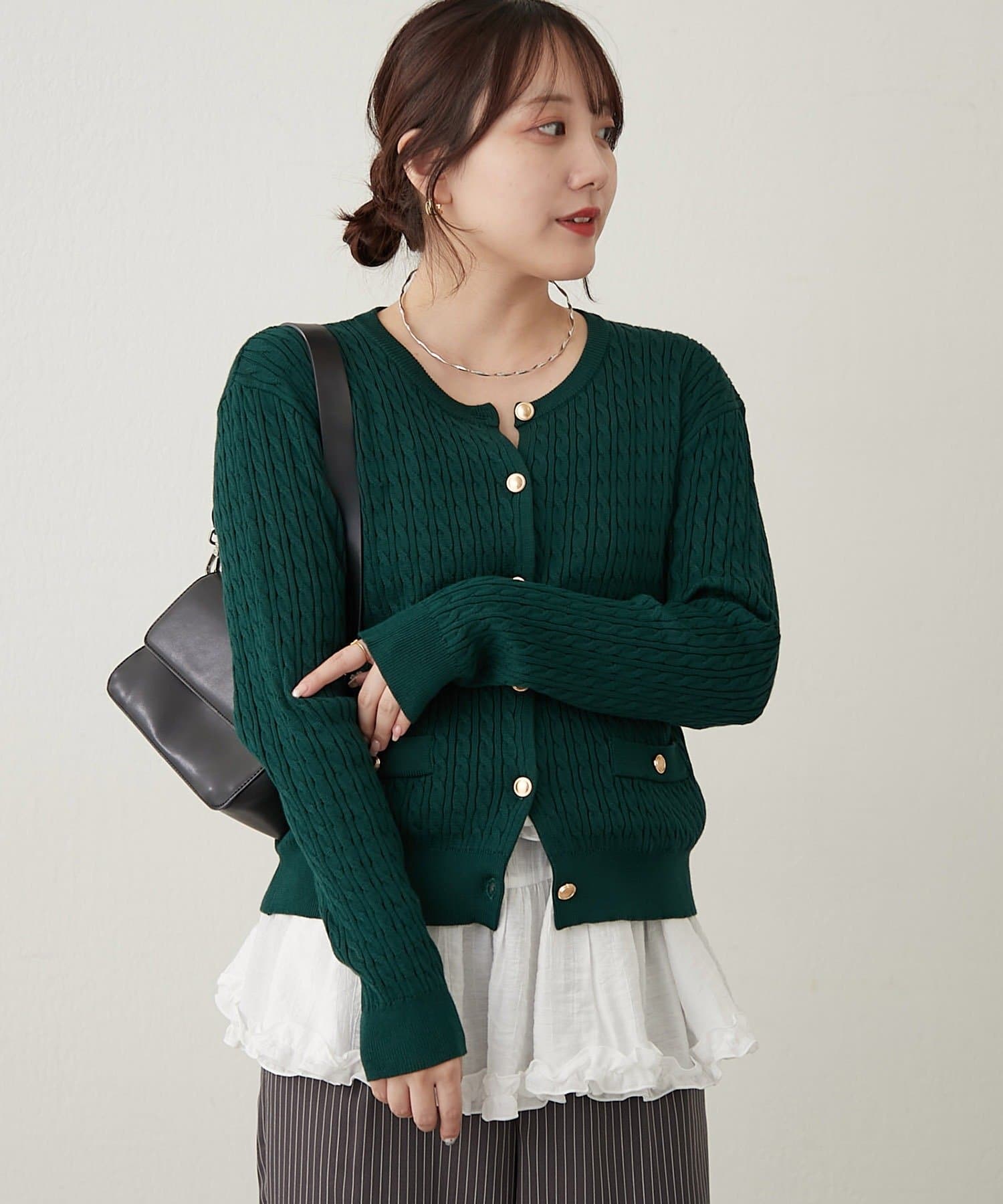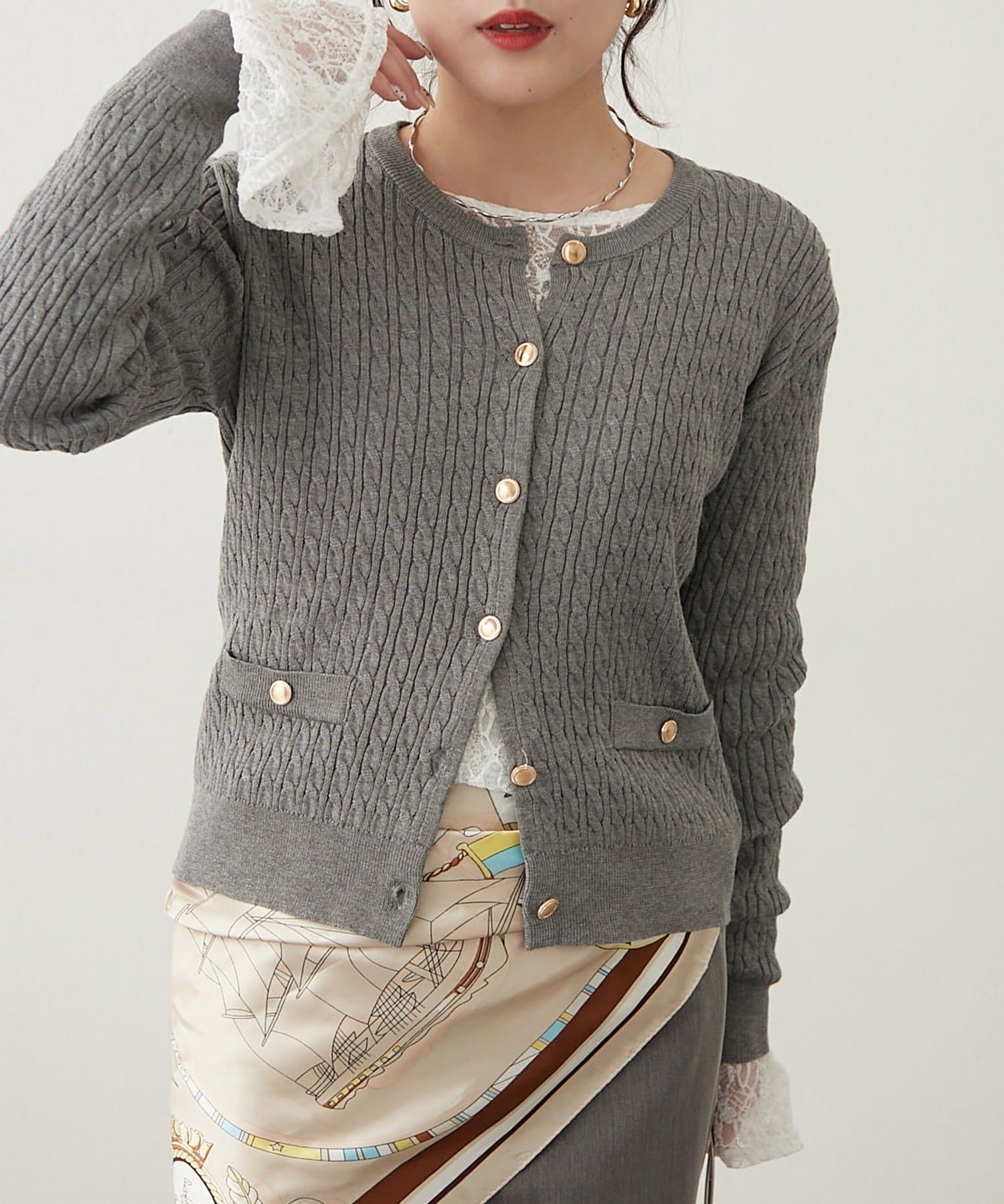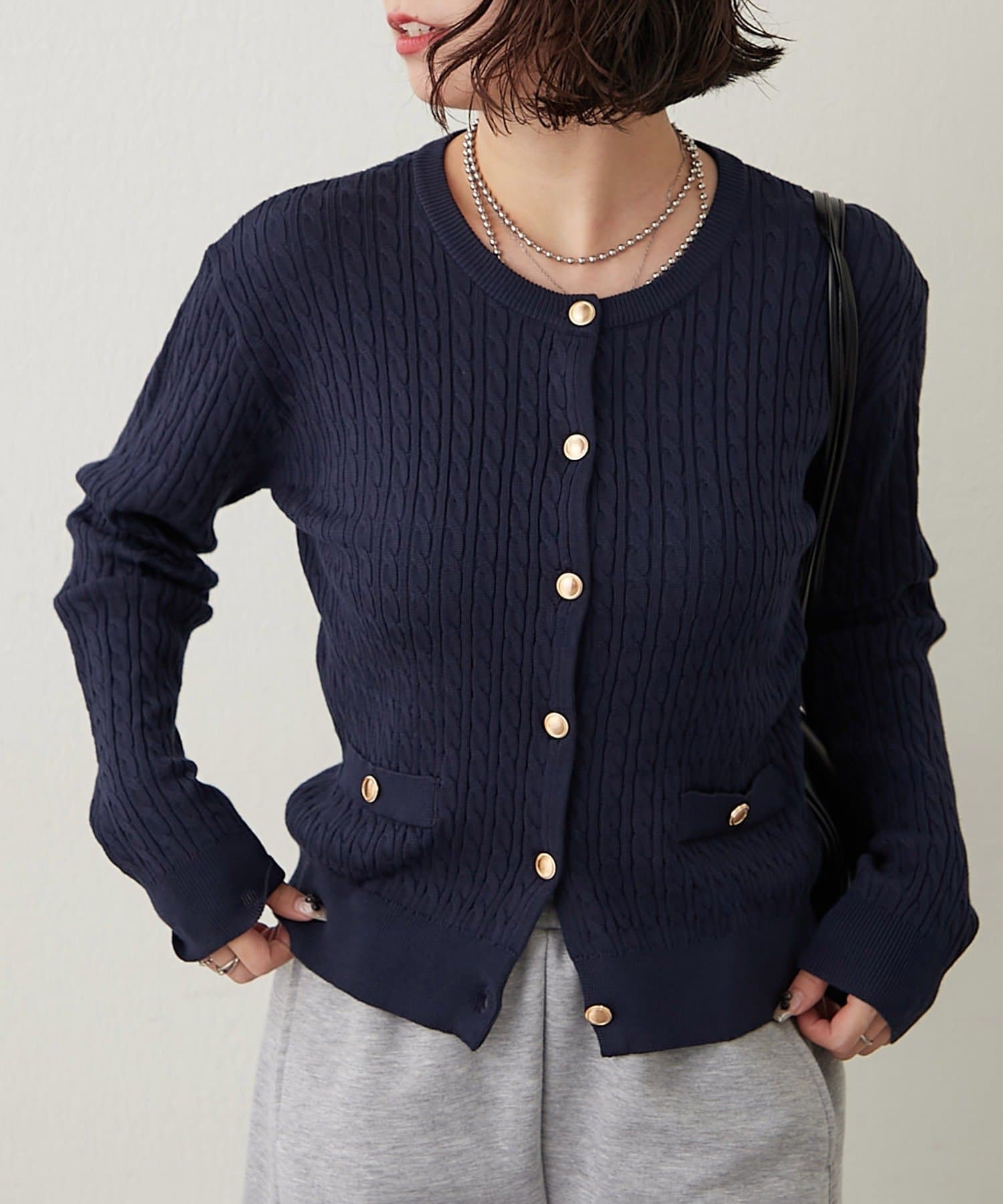7色展開!カラバリ豊富!ケーブル金釦カーディガン