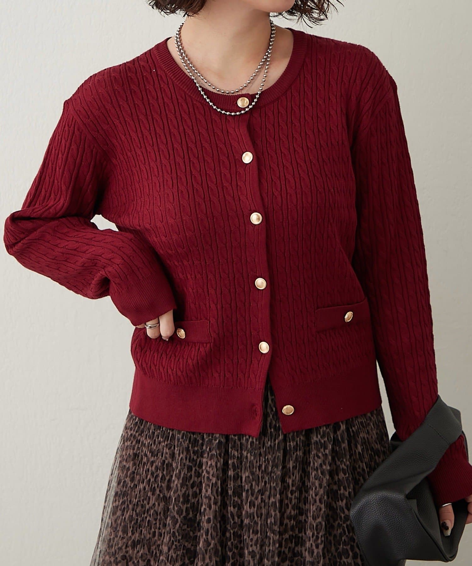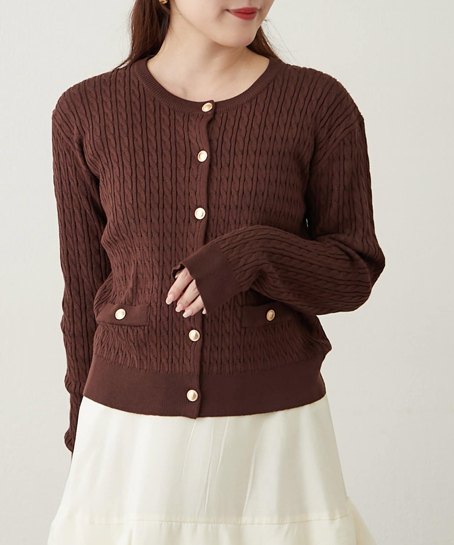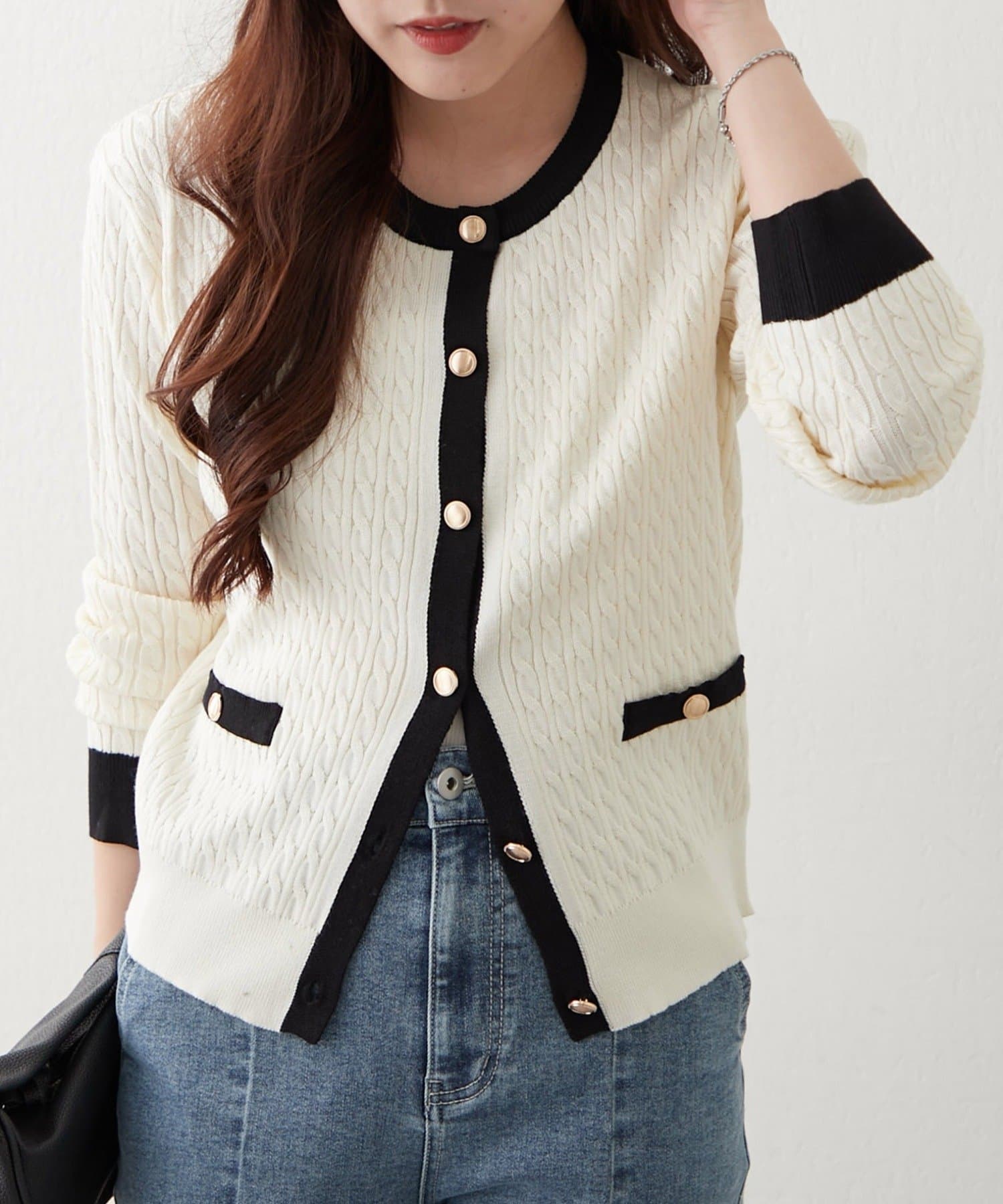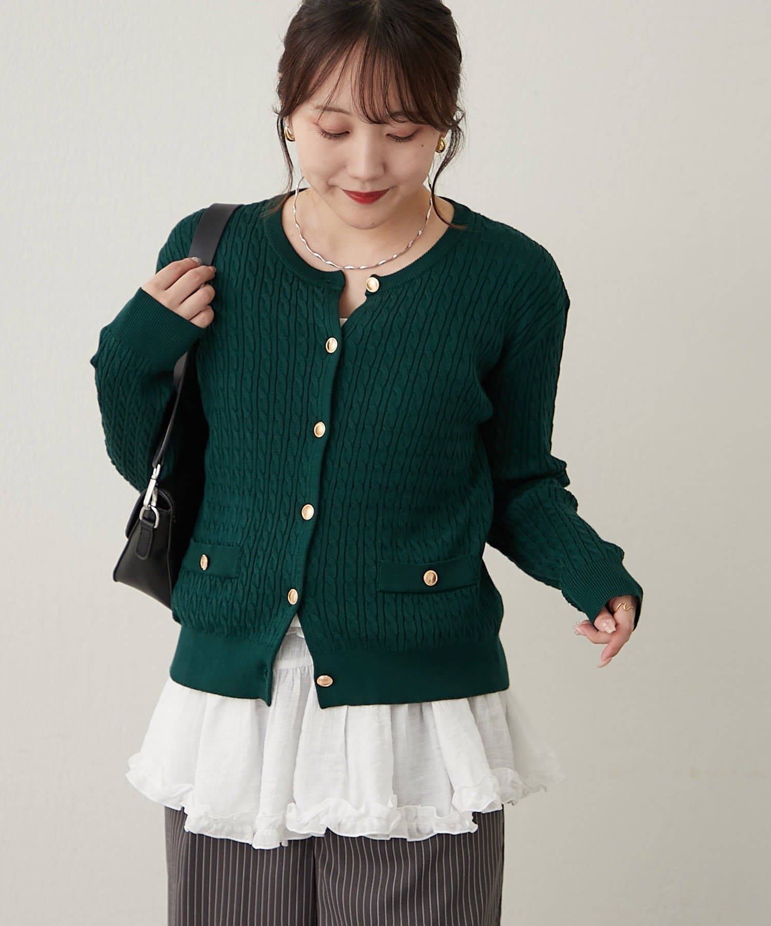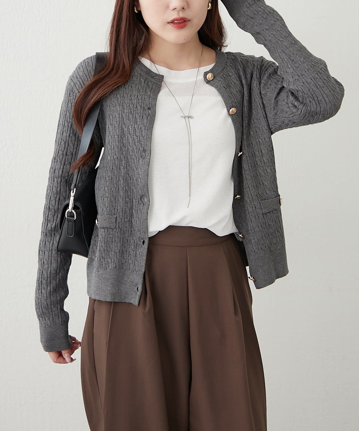 7色展開!カラバリ豊富!ケーブル金釦カーディガン