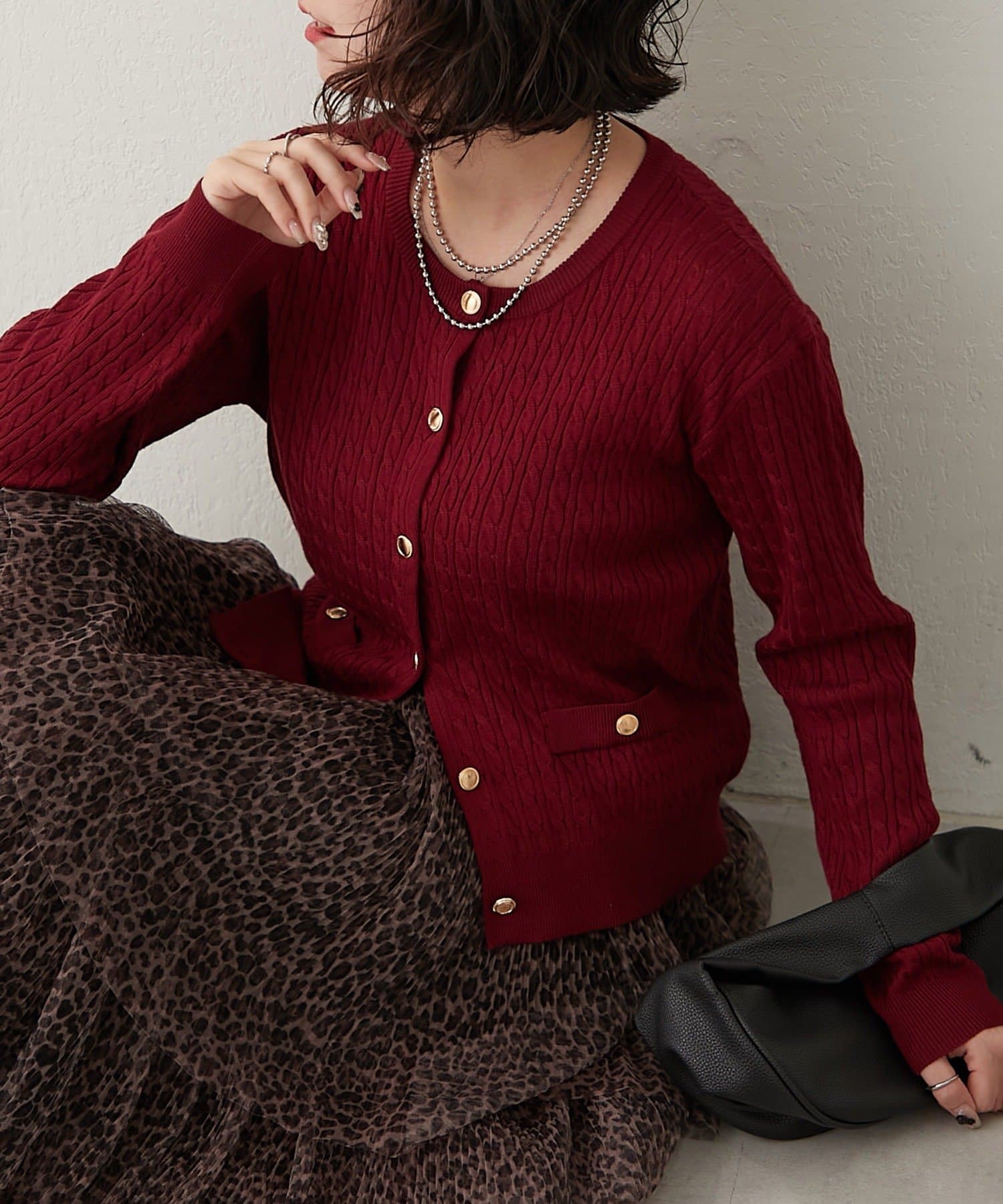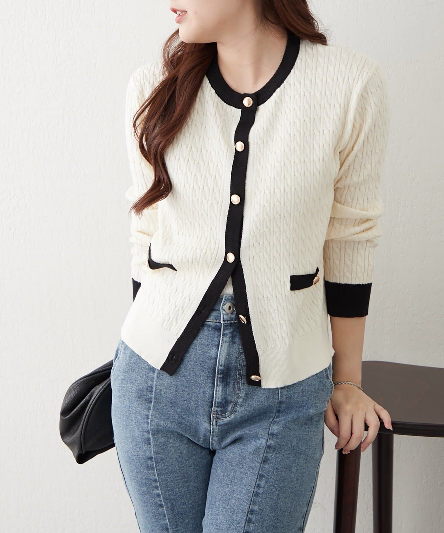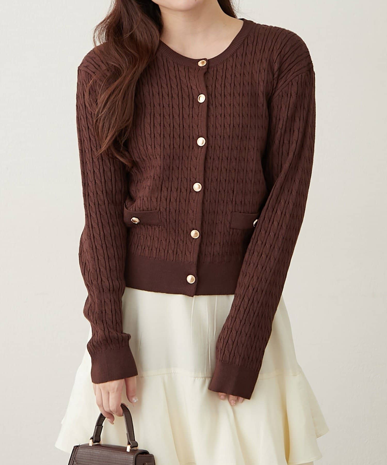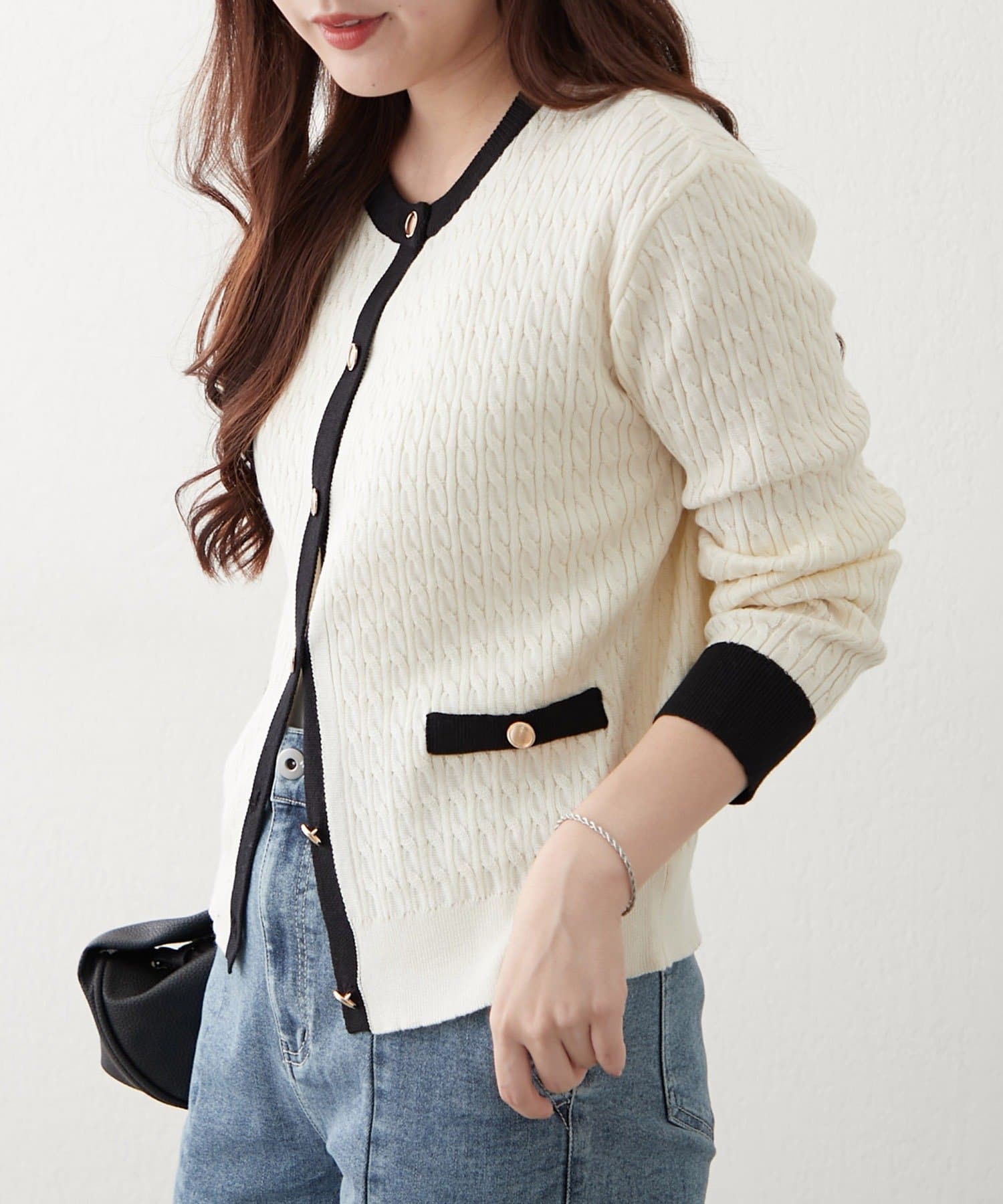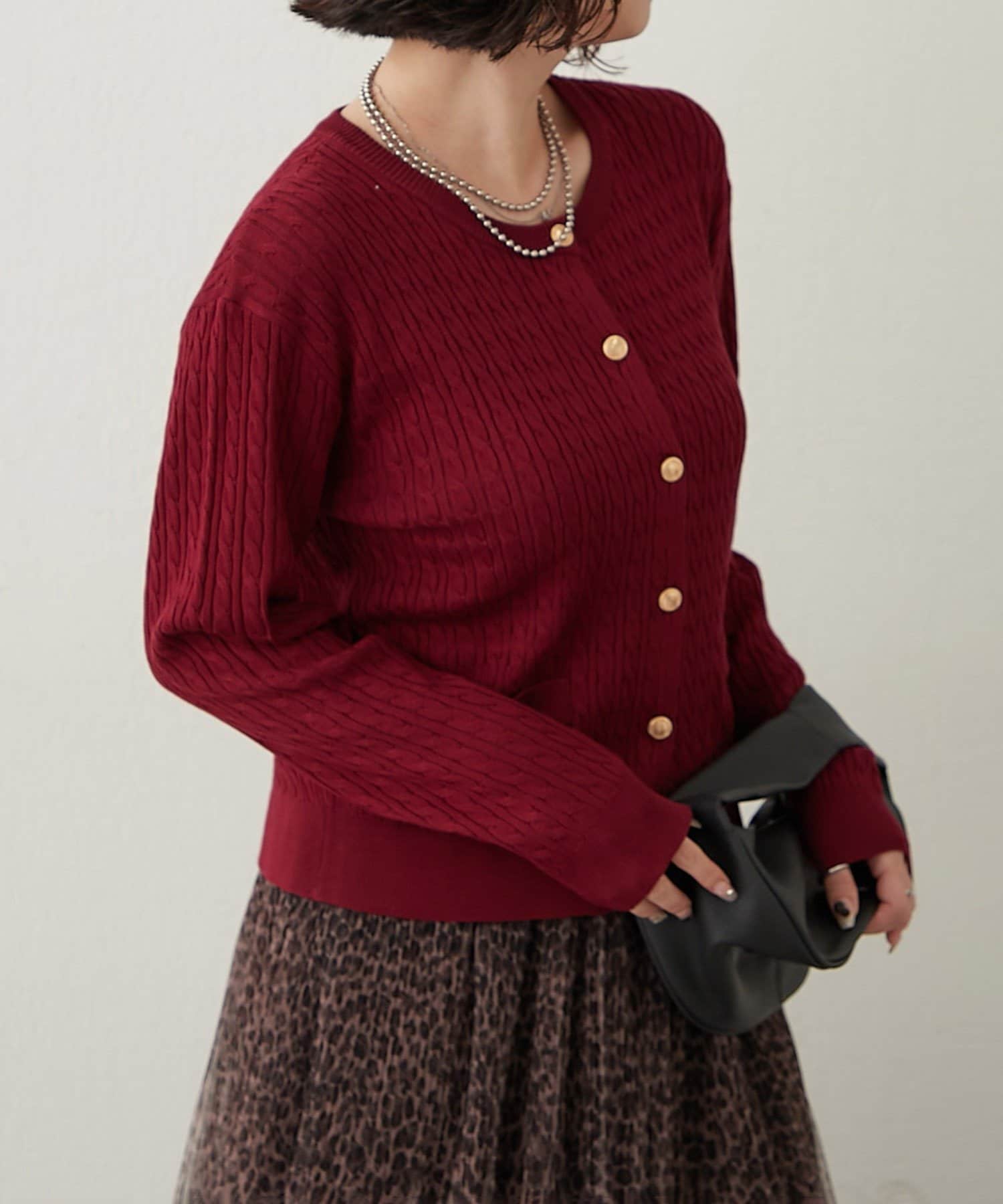7色展開!カラバリ豊富!ケーブル金釦カーディガン