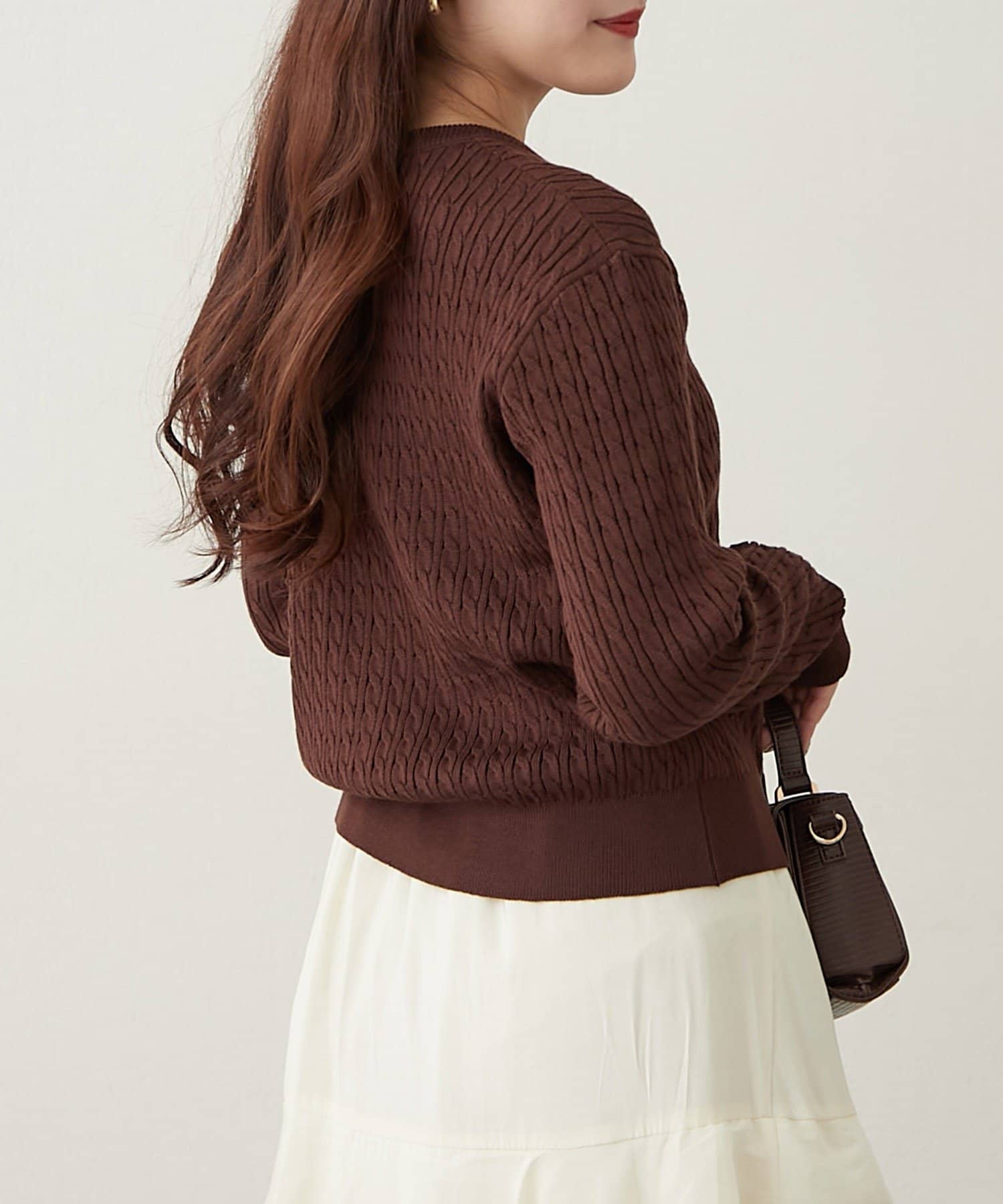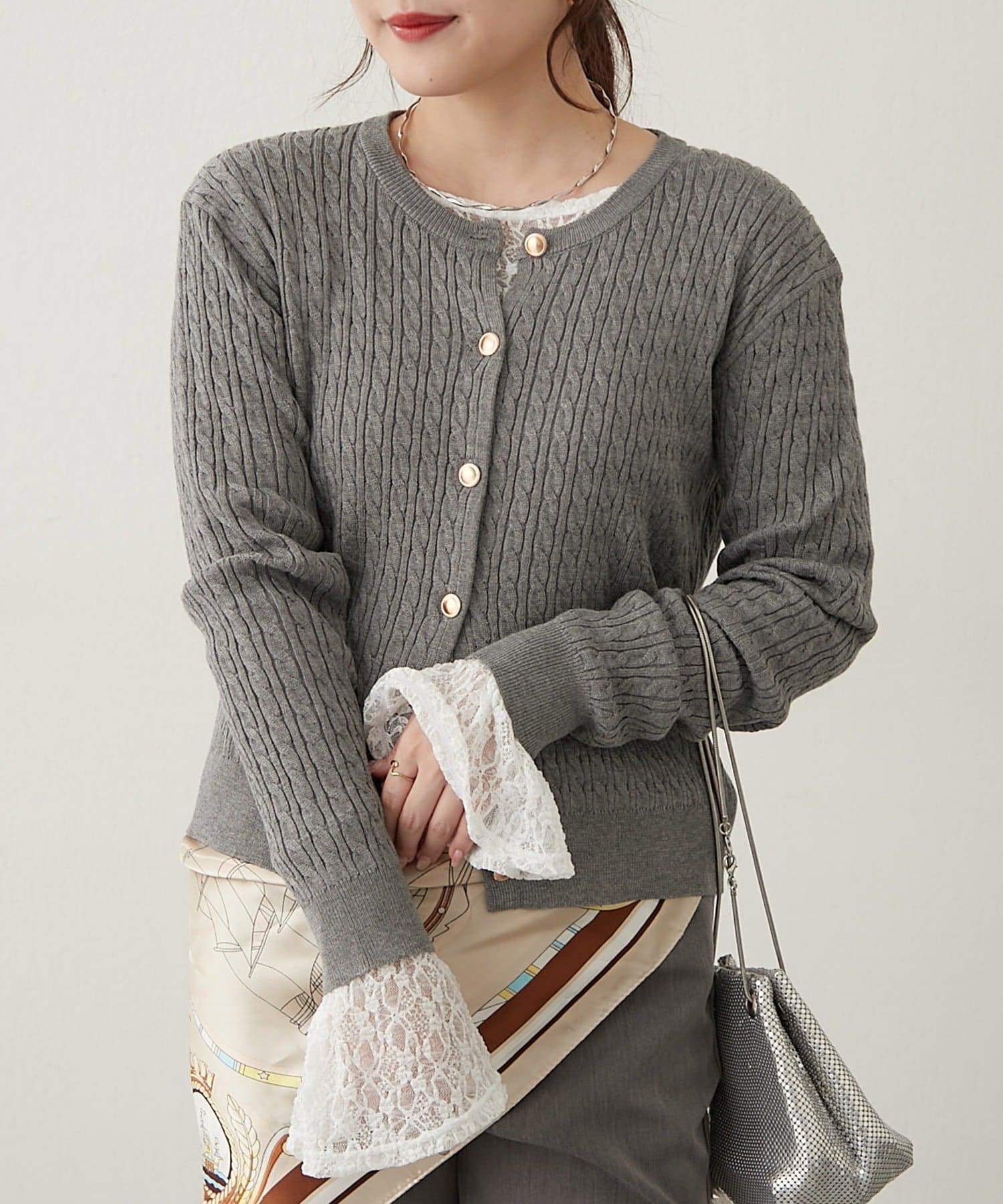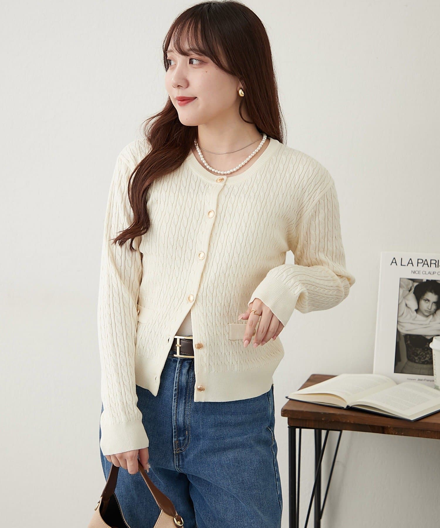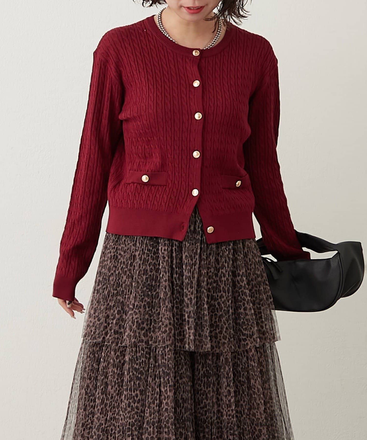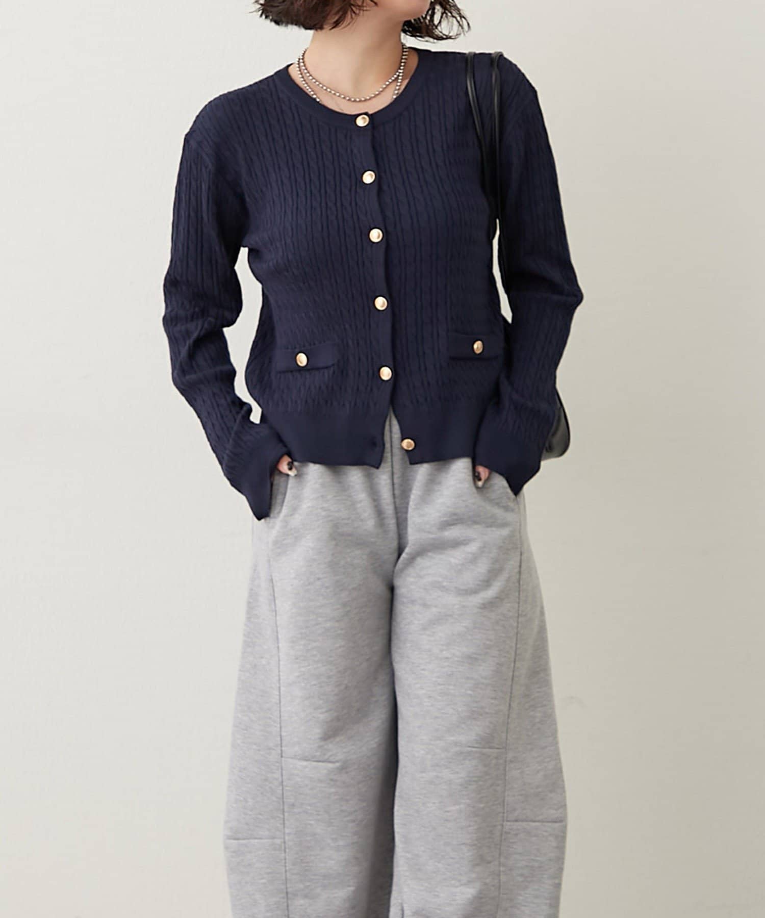 7色展開!カラバリ豊富!ケーブル金釦カーディガン