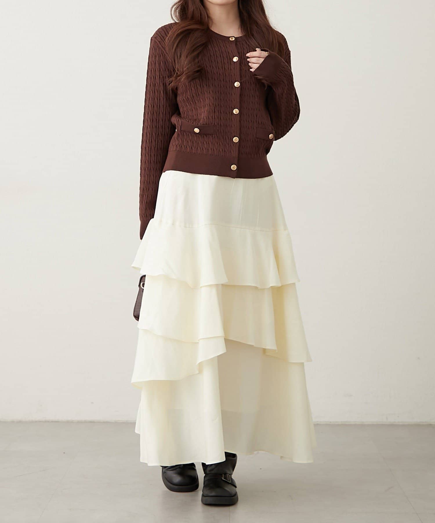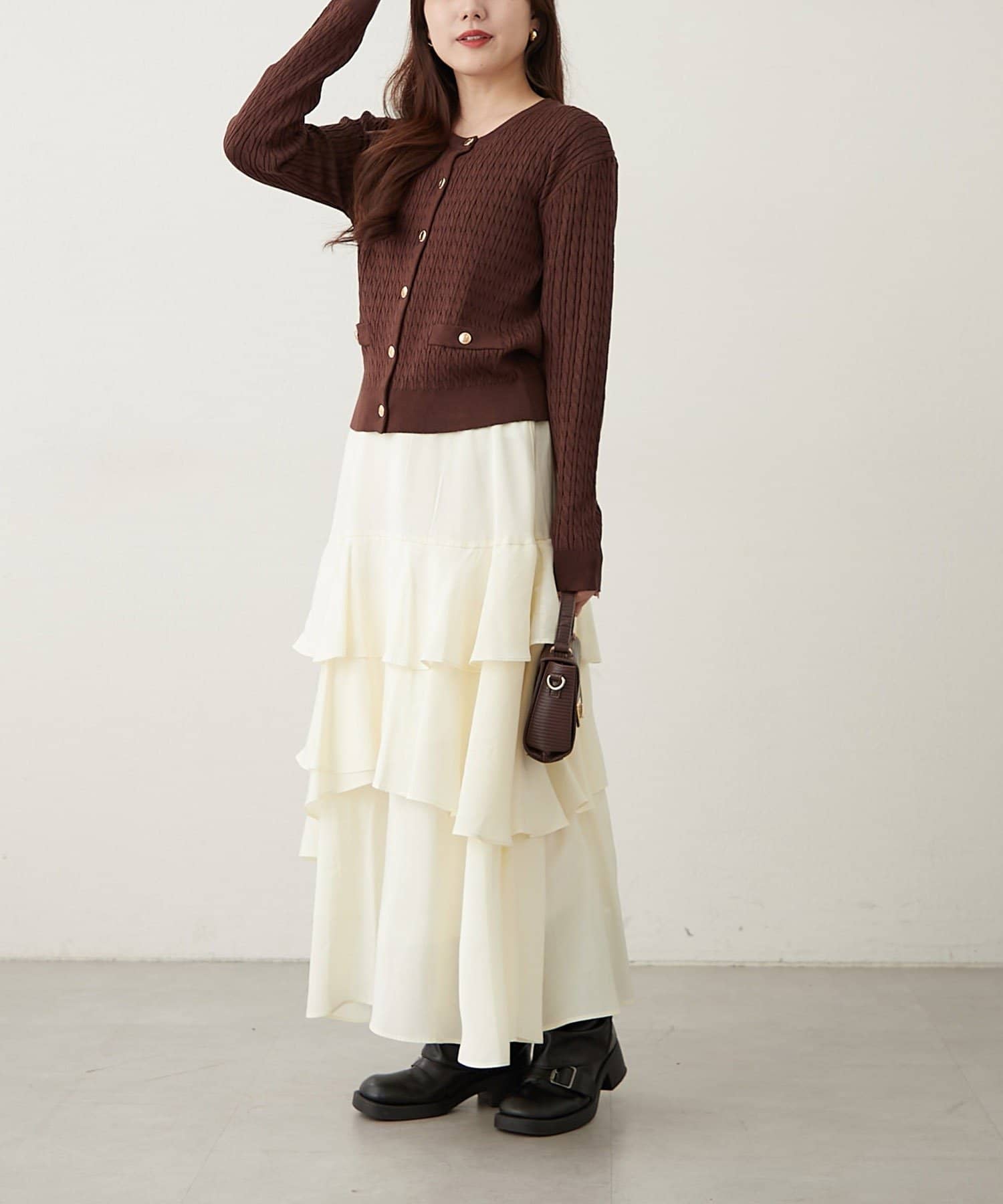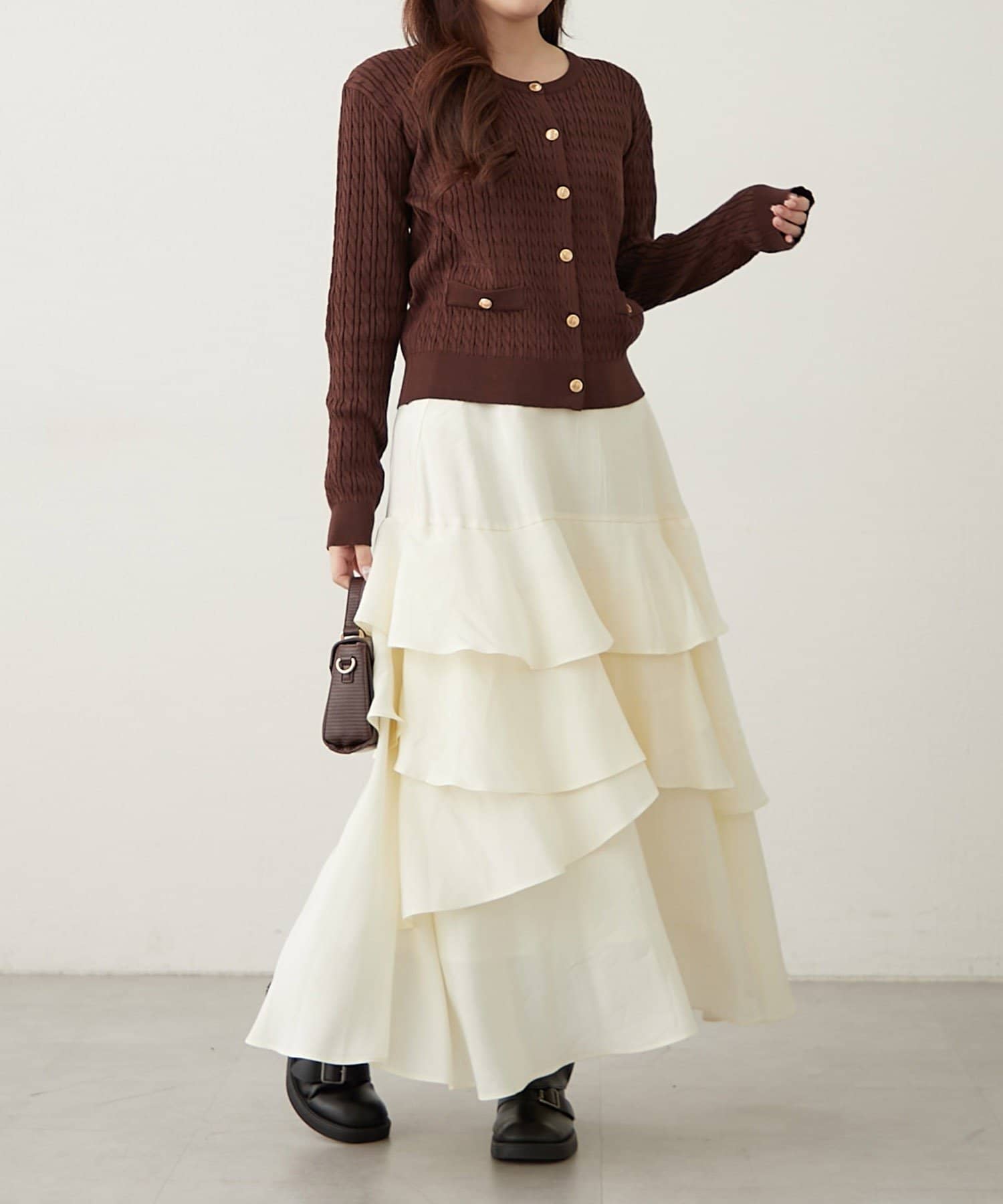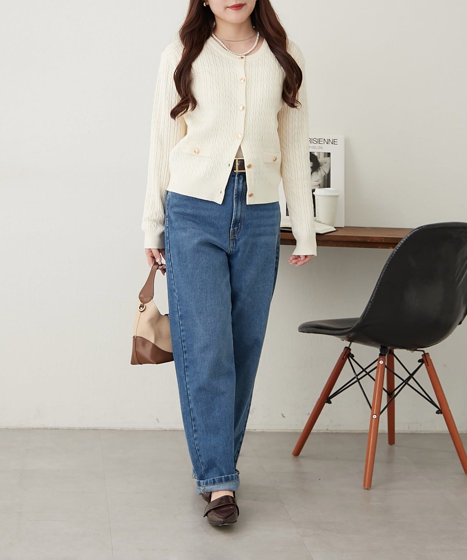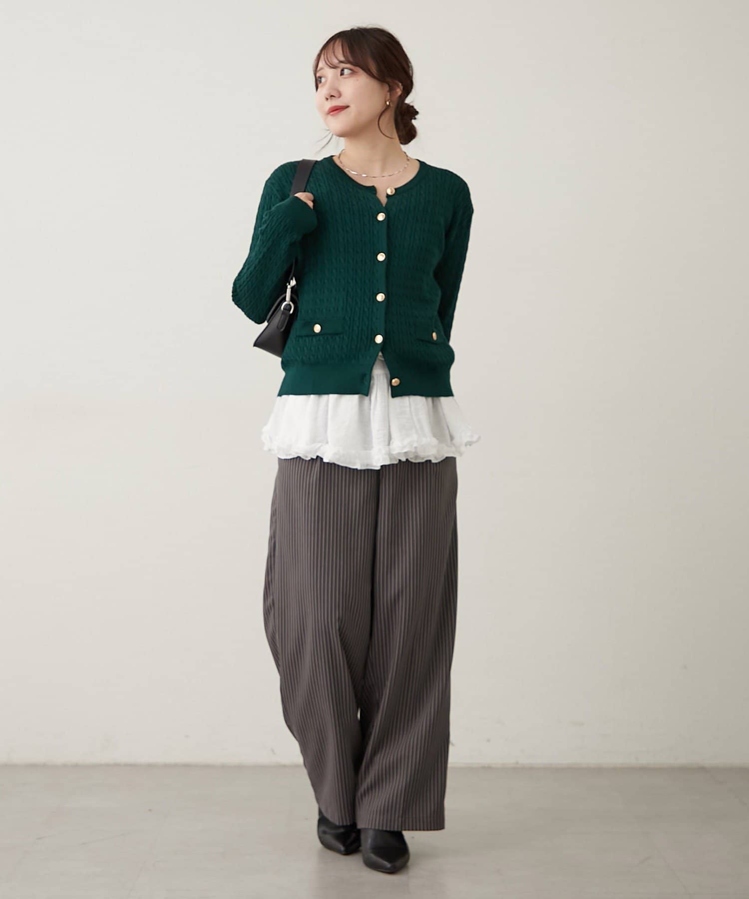 7色展開!カラバリ豊富!ケーブル金釦カーディガン