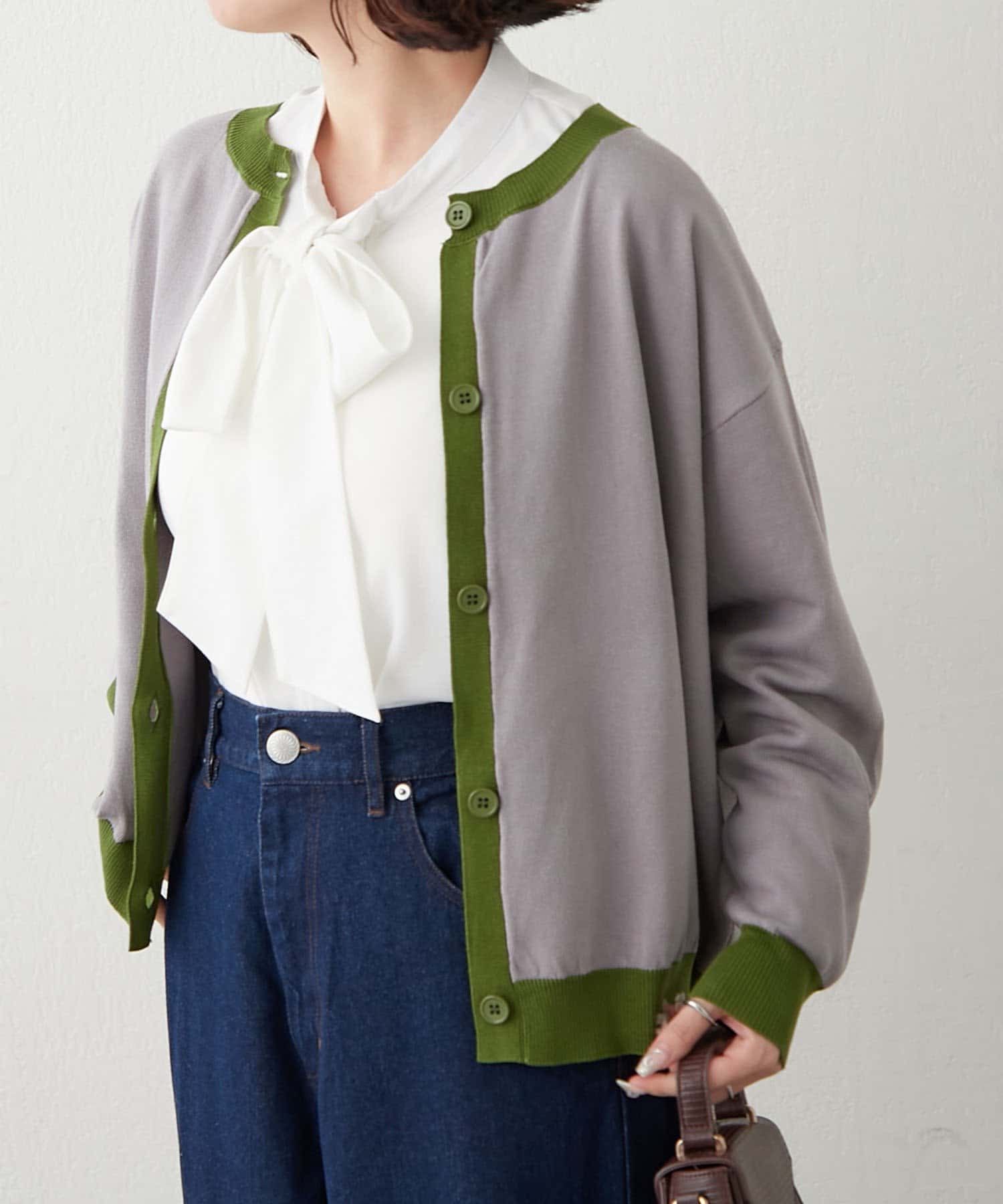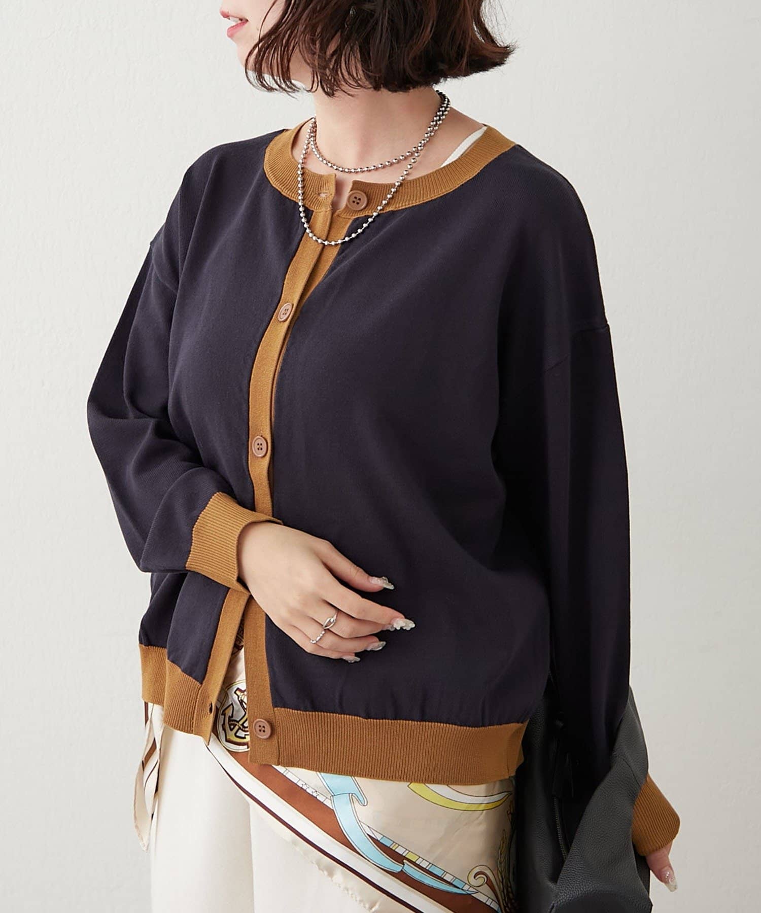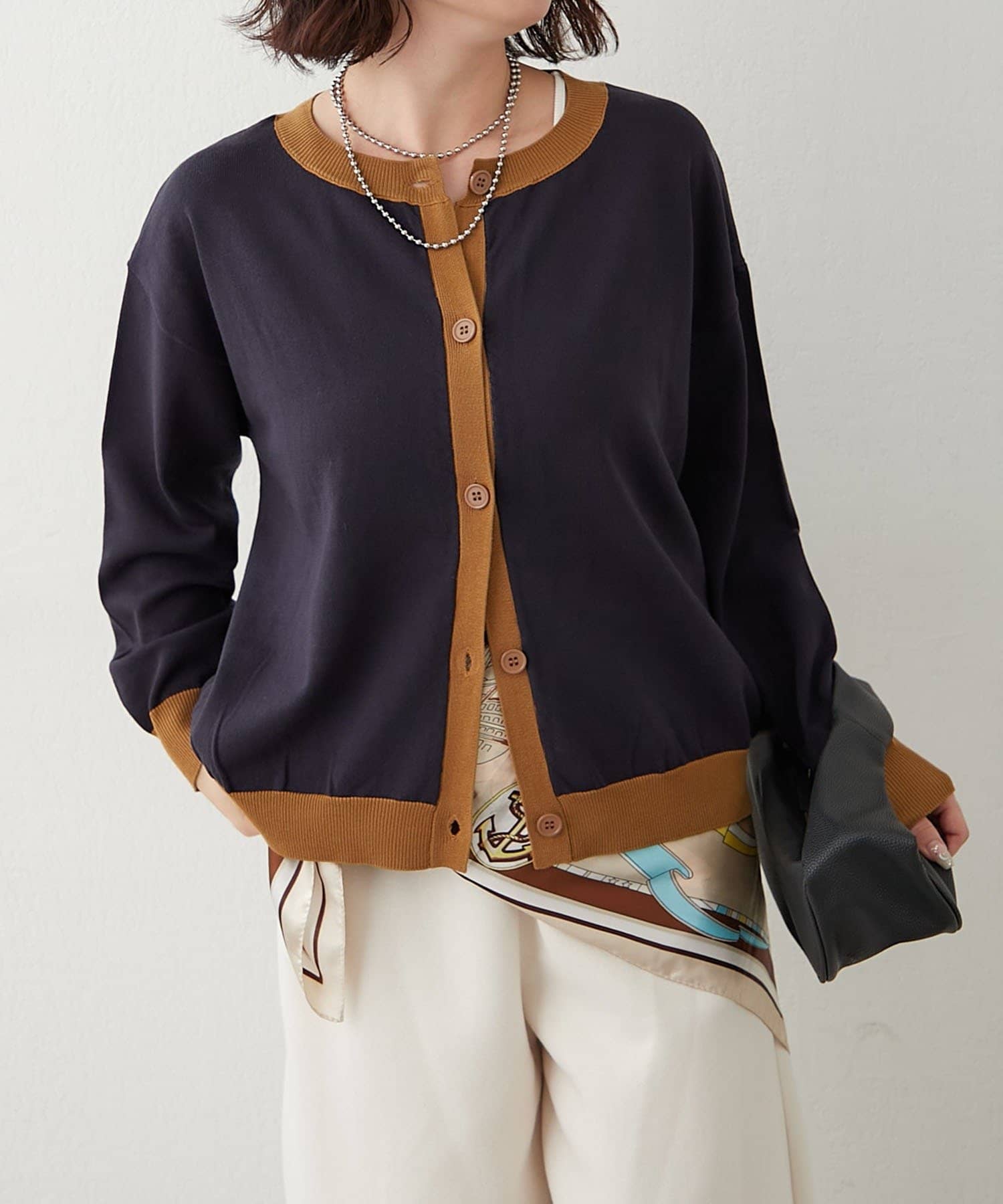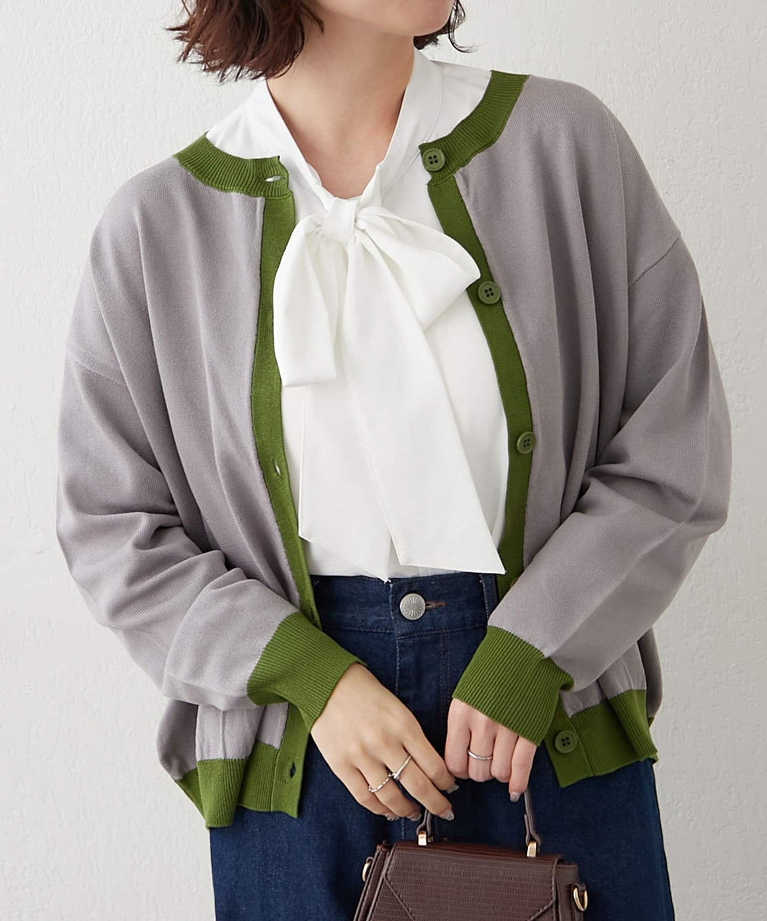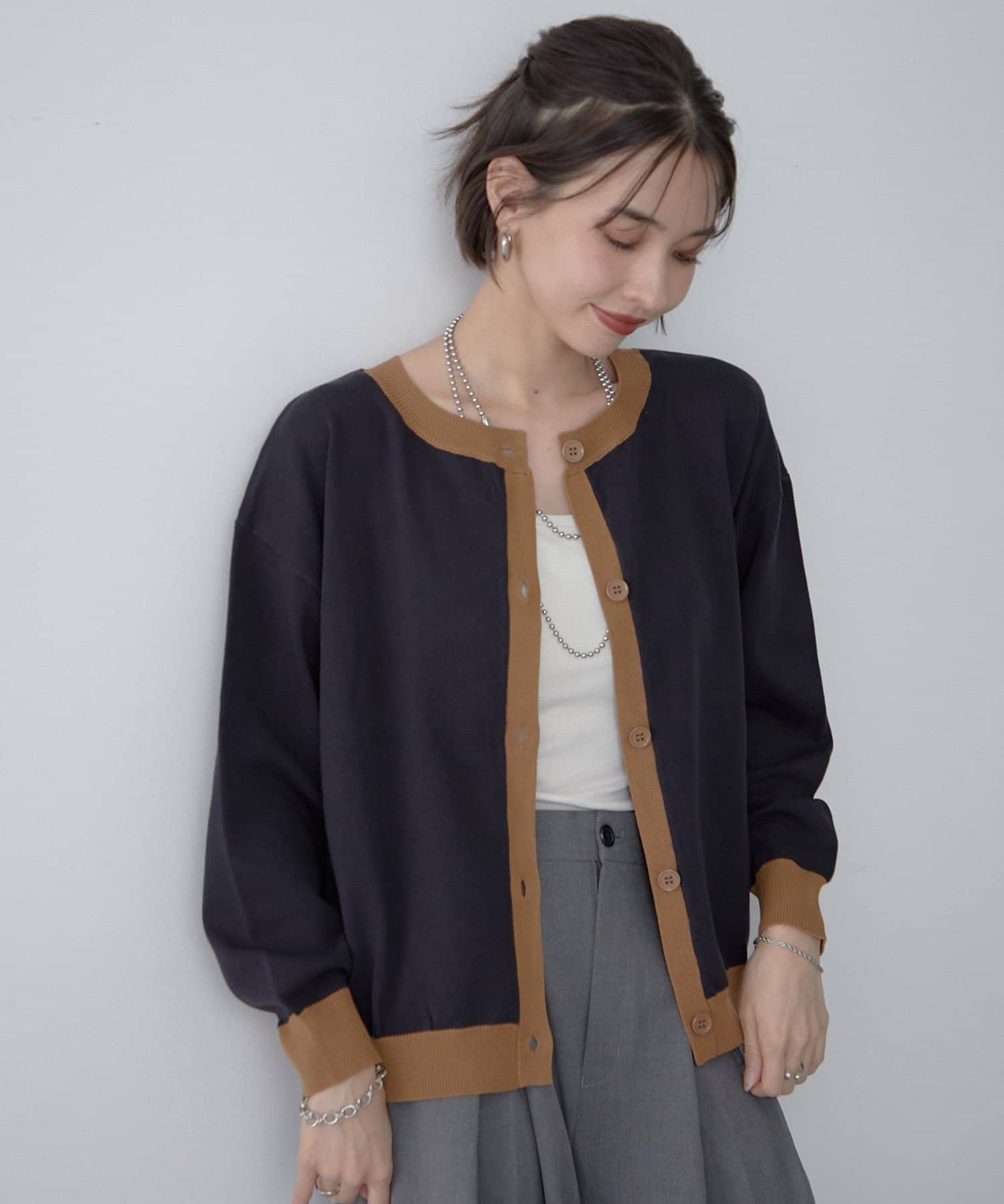 春夏に人気だった配色シアーカーディガンが秋素材になって登場!