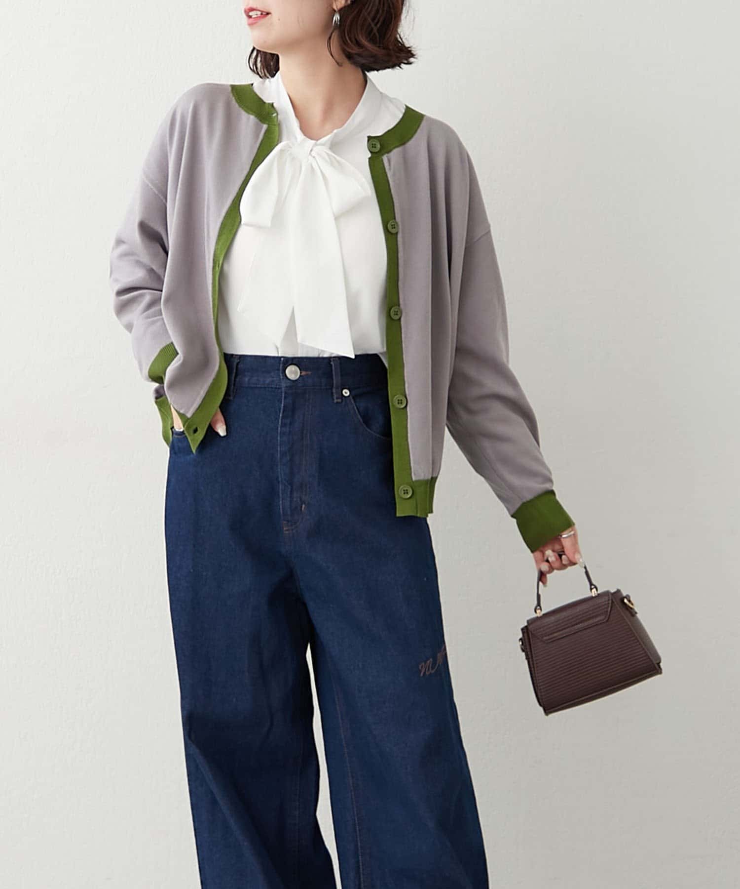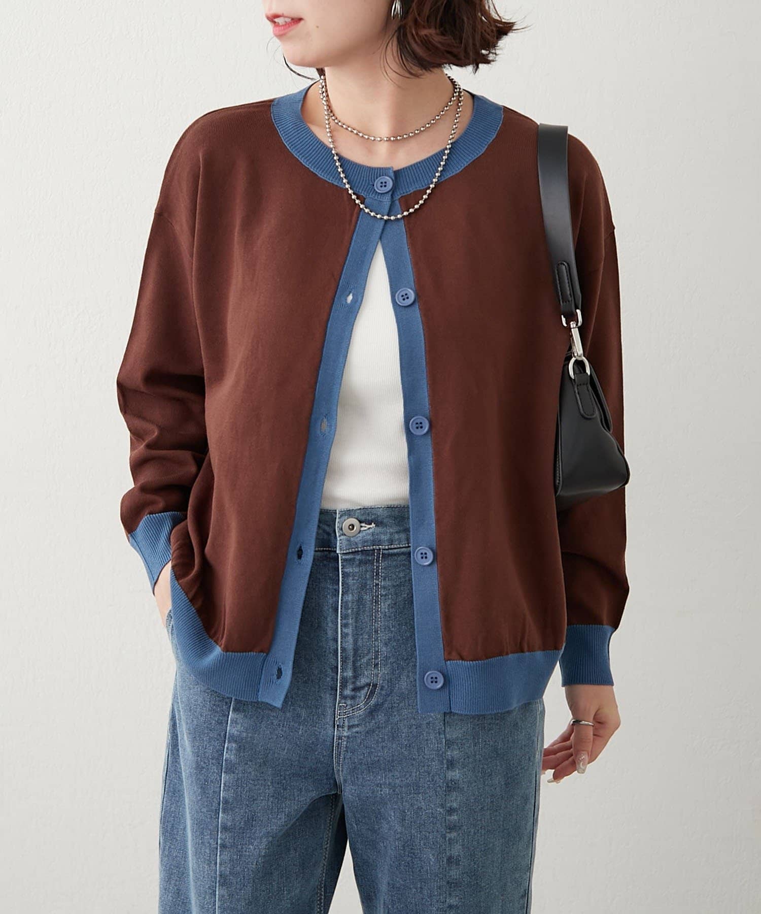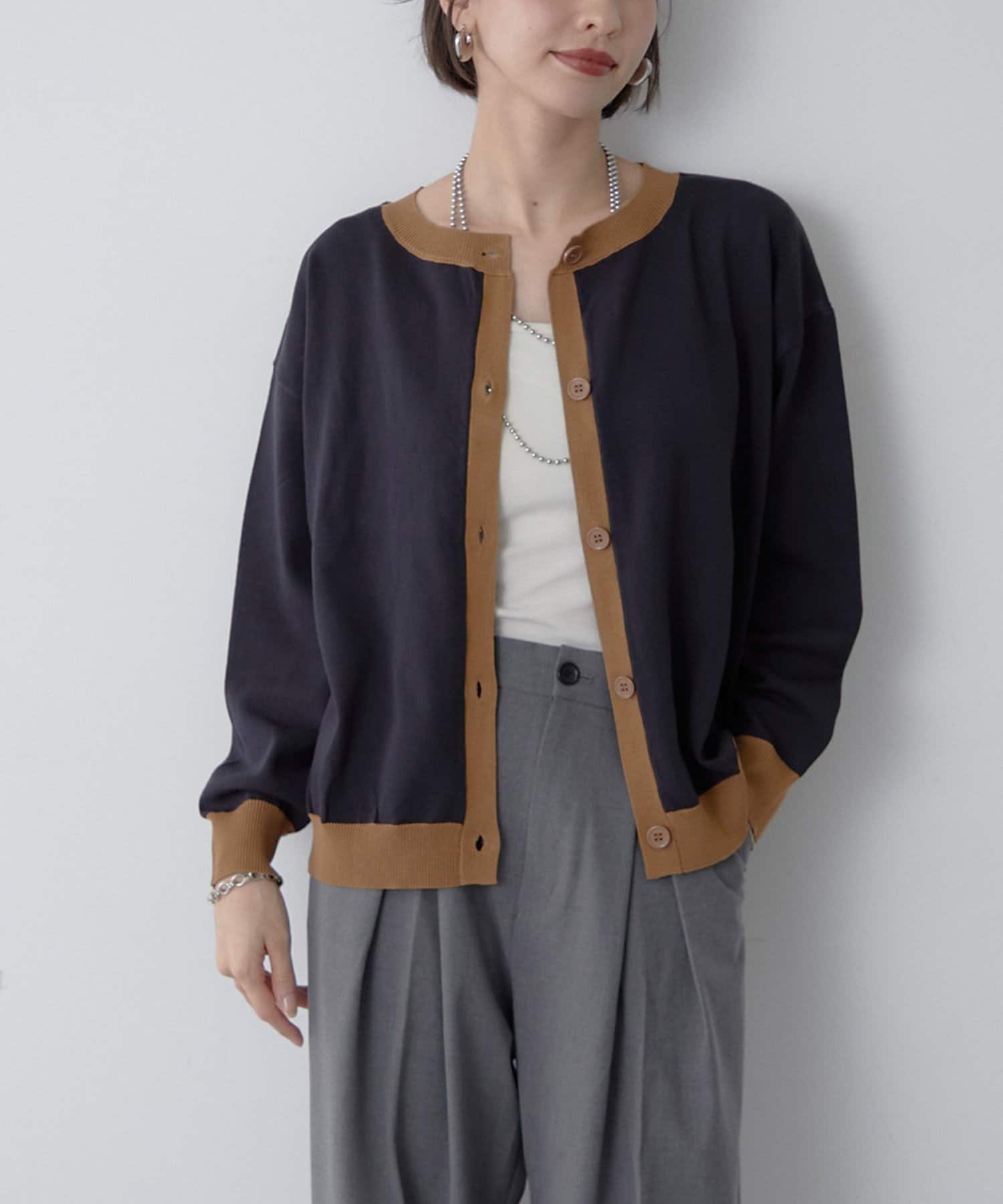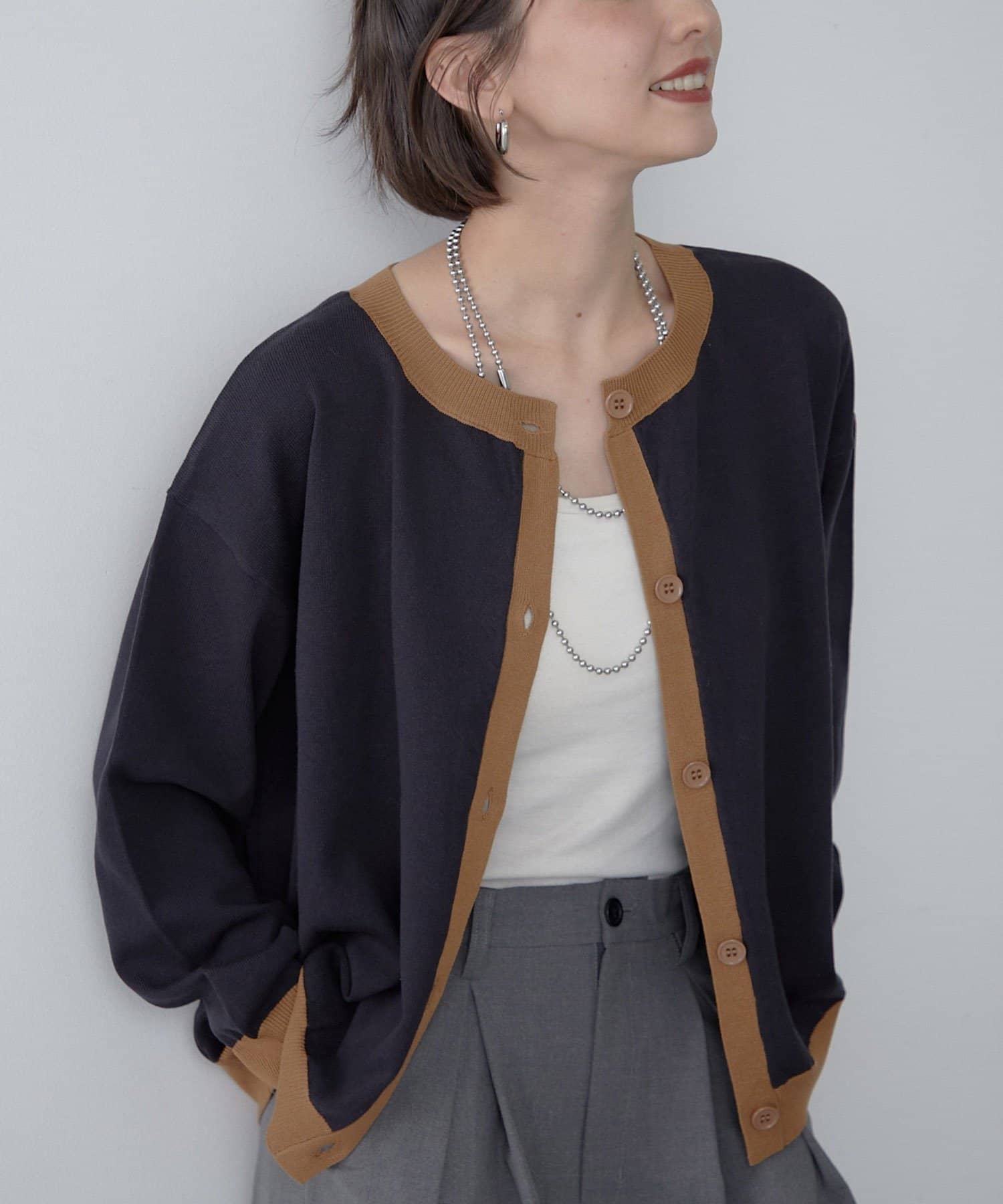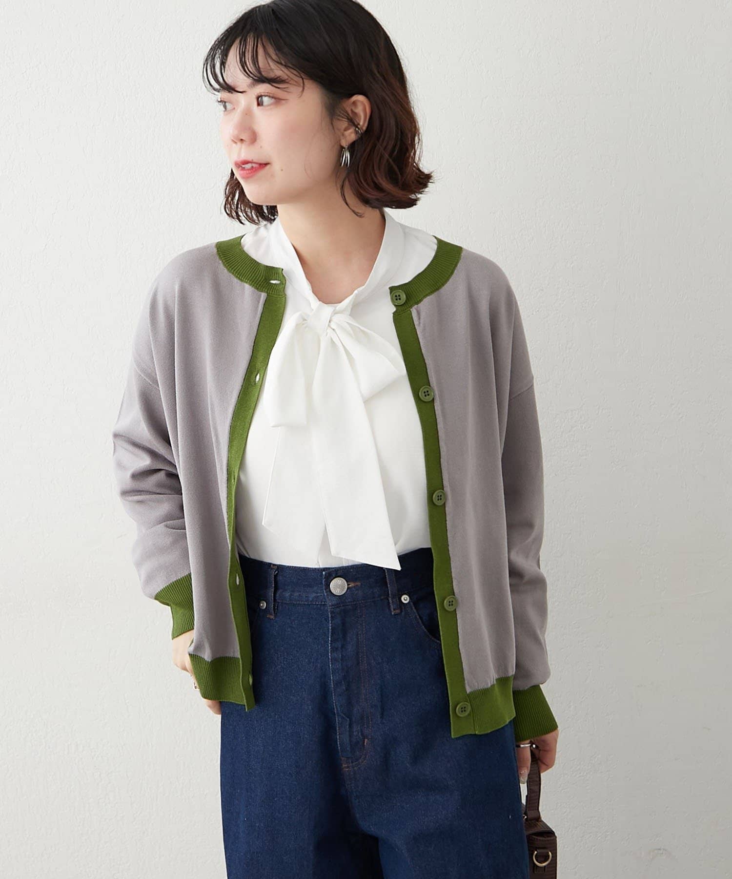 春夏に人気だった配色シアーカーディガンが秋素材になって登場!
