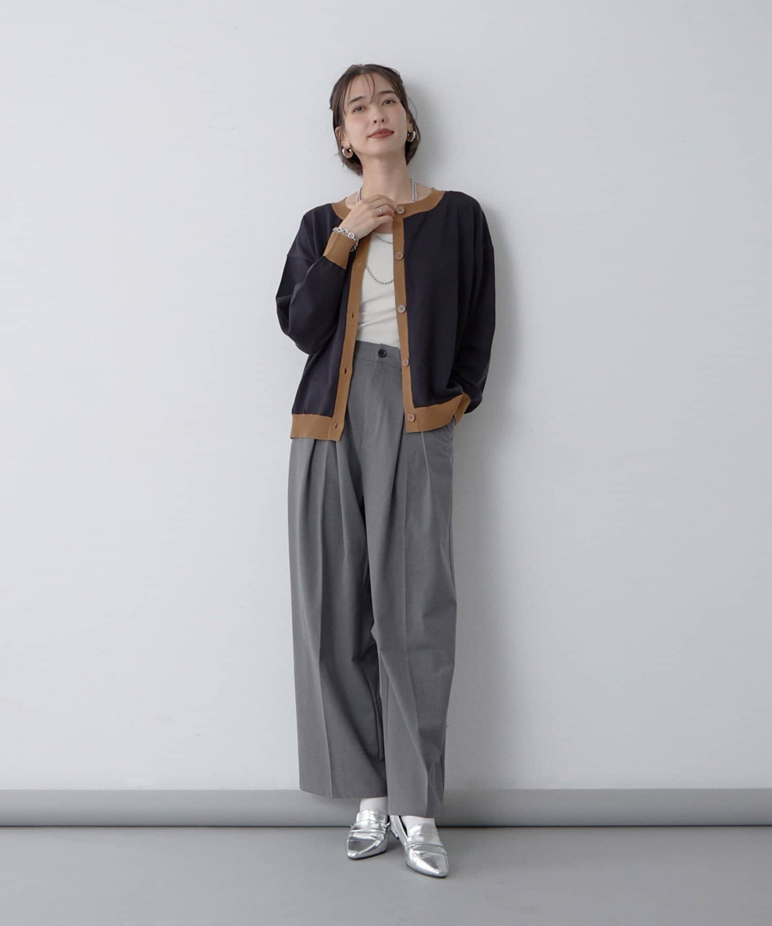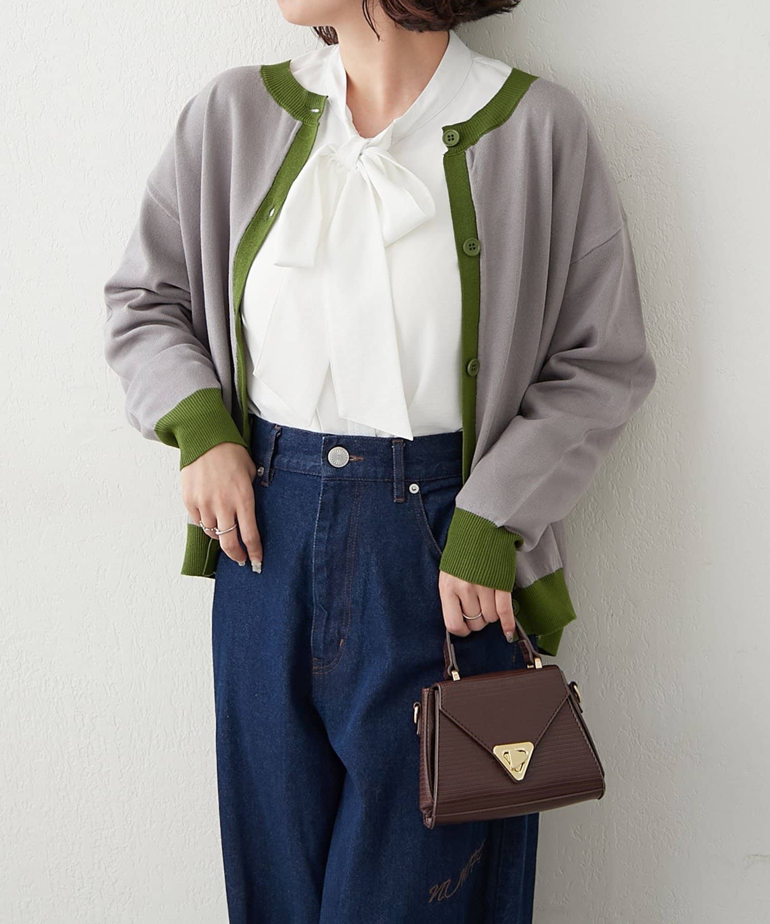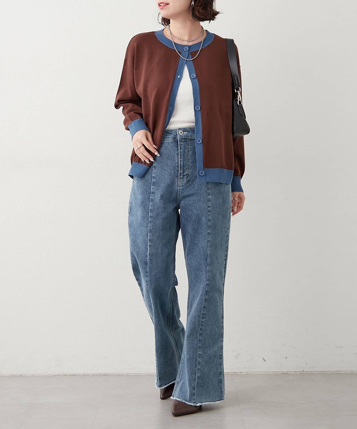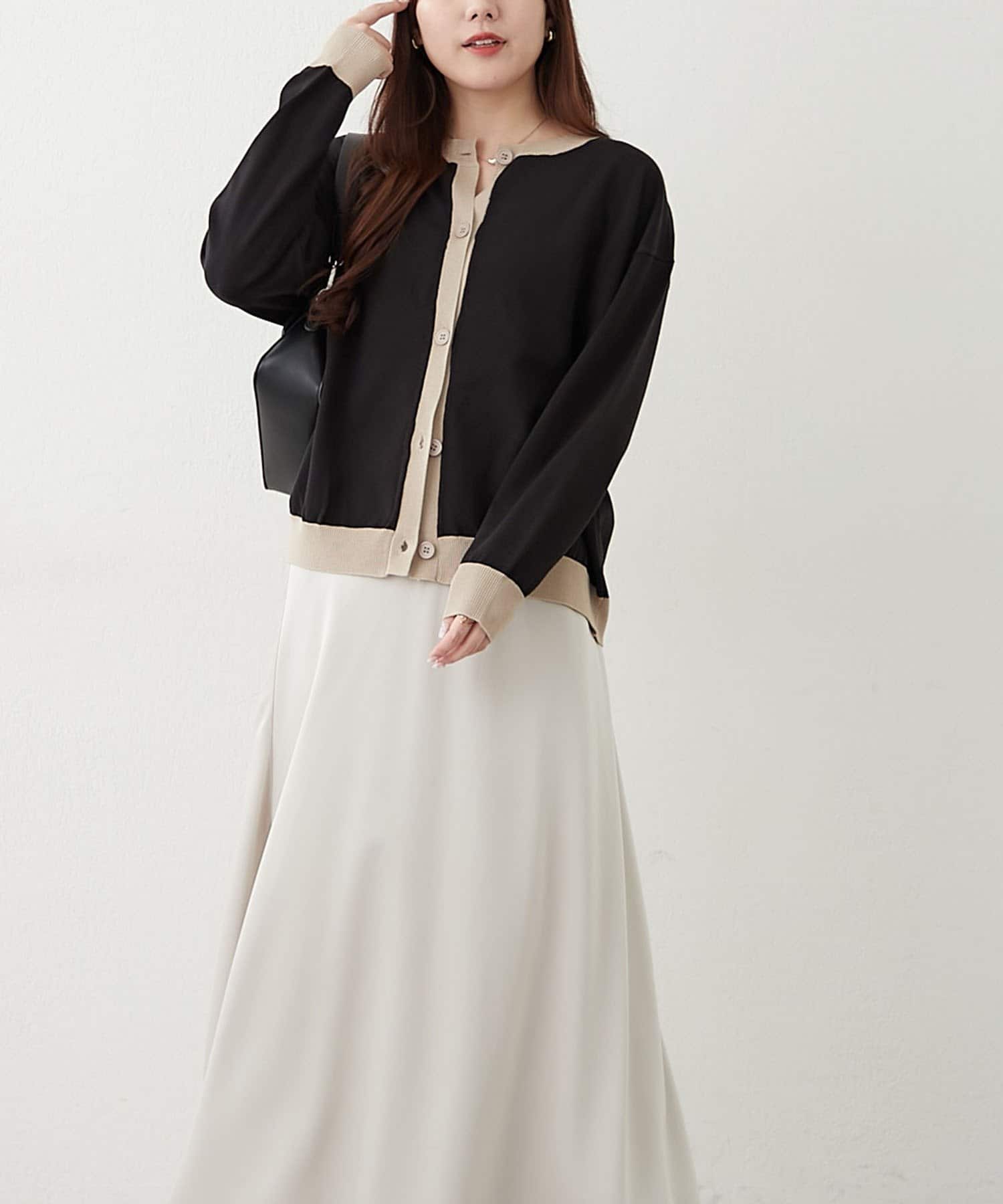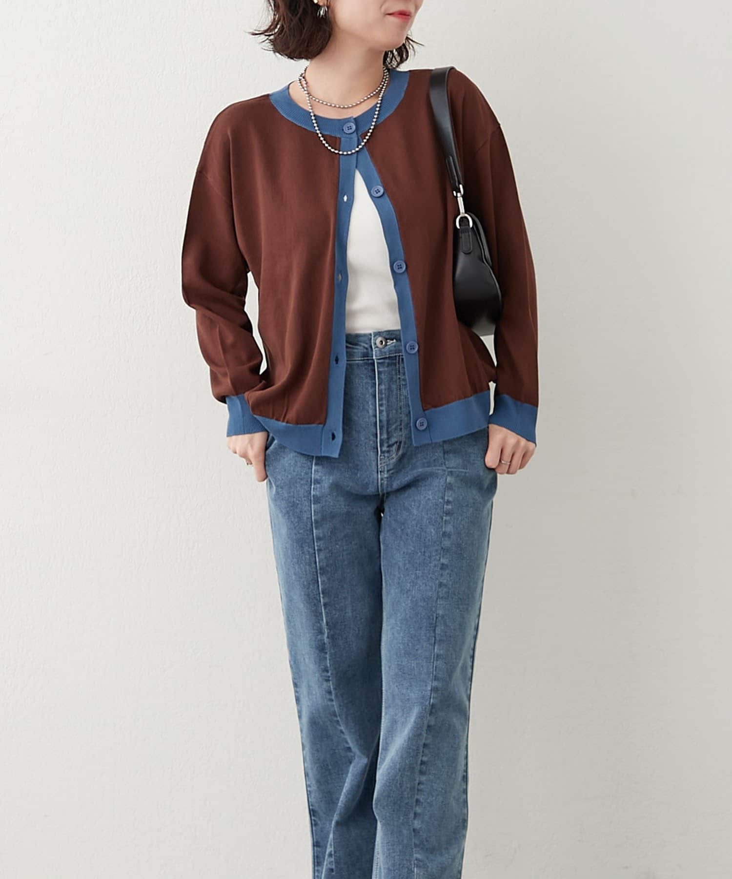春夏に人気だった配色シアーカーディガンが秋素材になって登場!