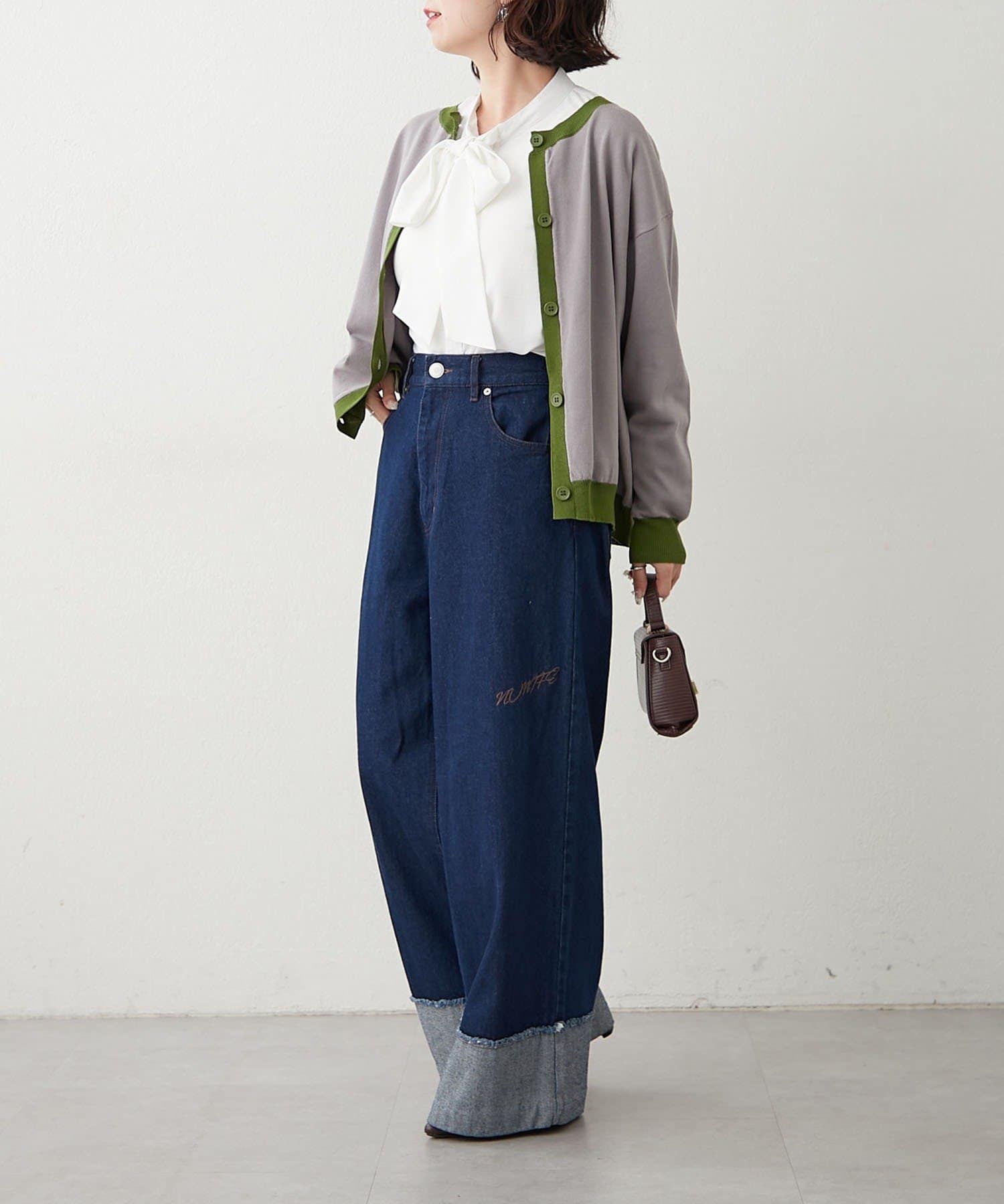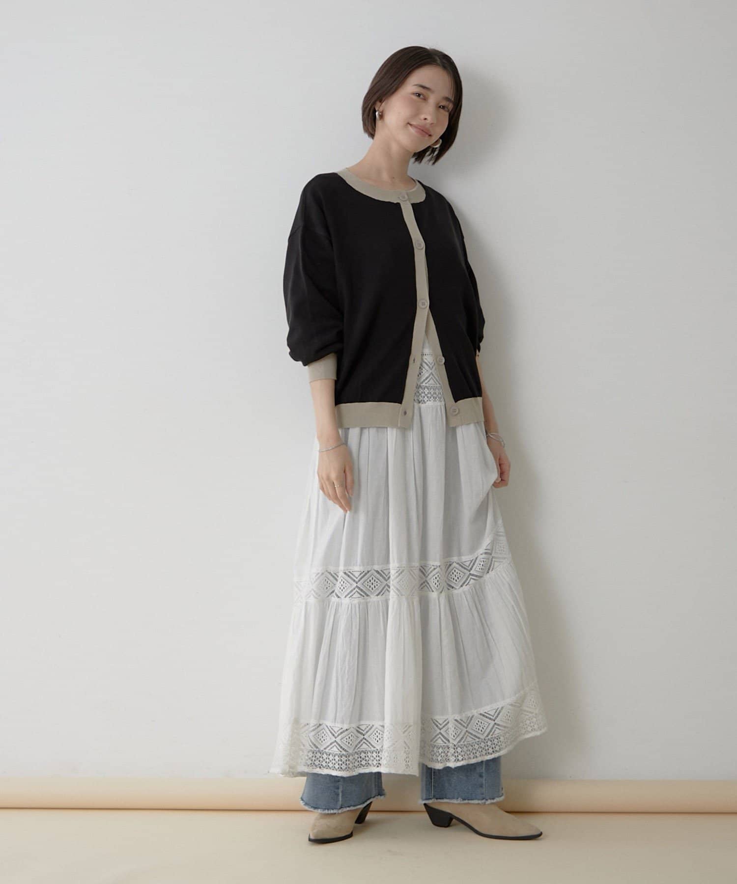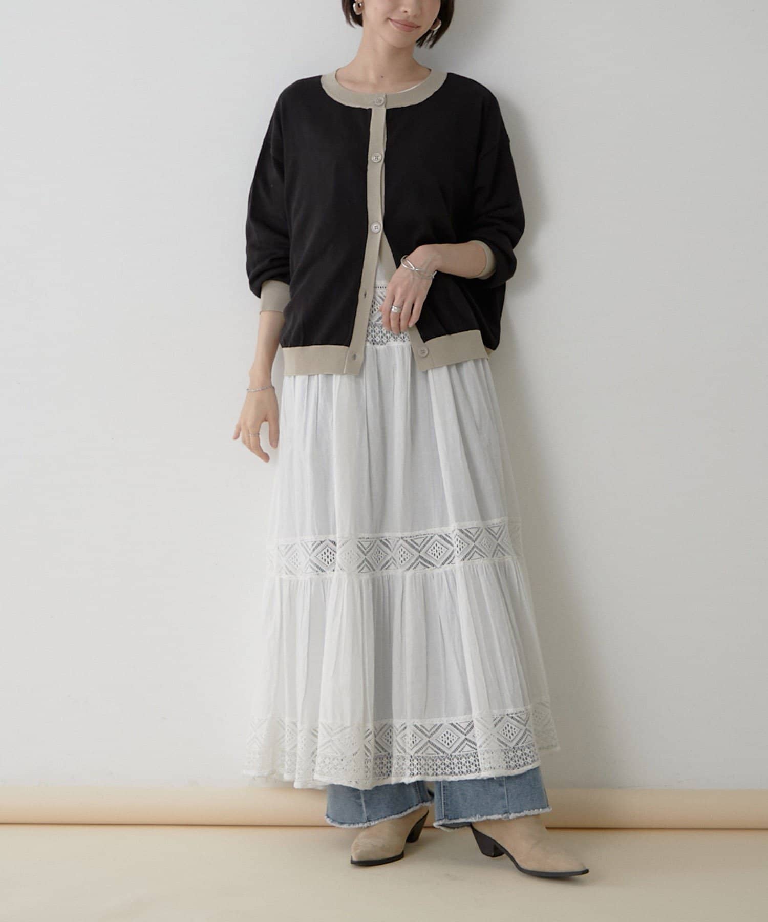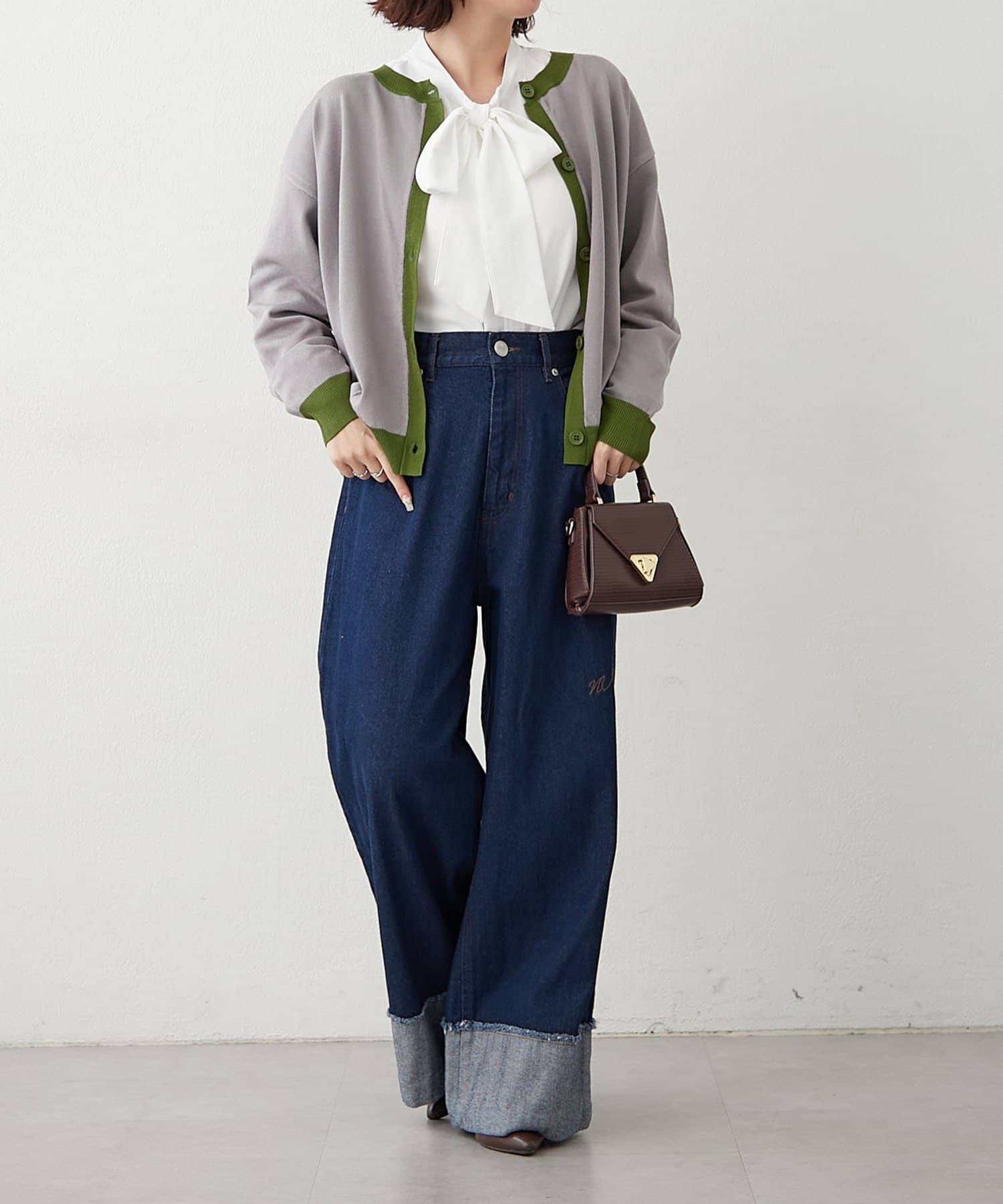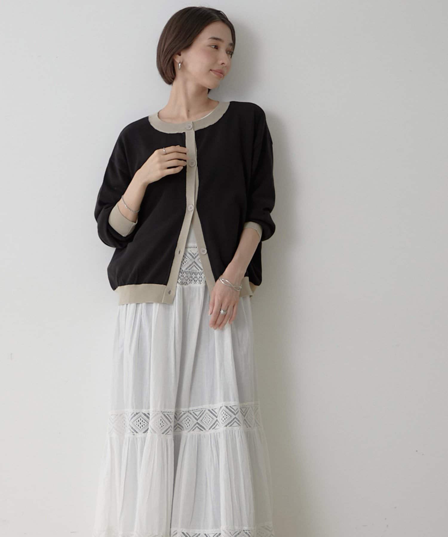 春夏に人気だった配色シアーカーディガンが秋素材になって登場!