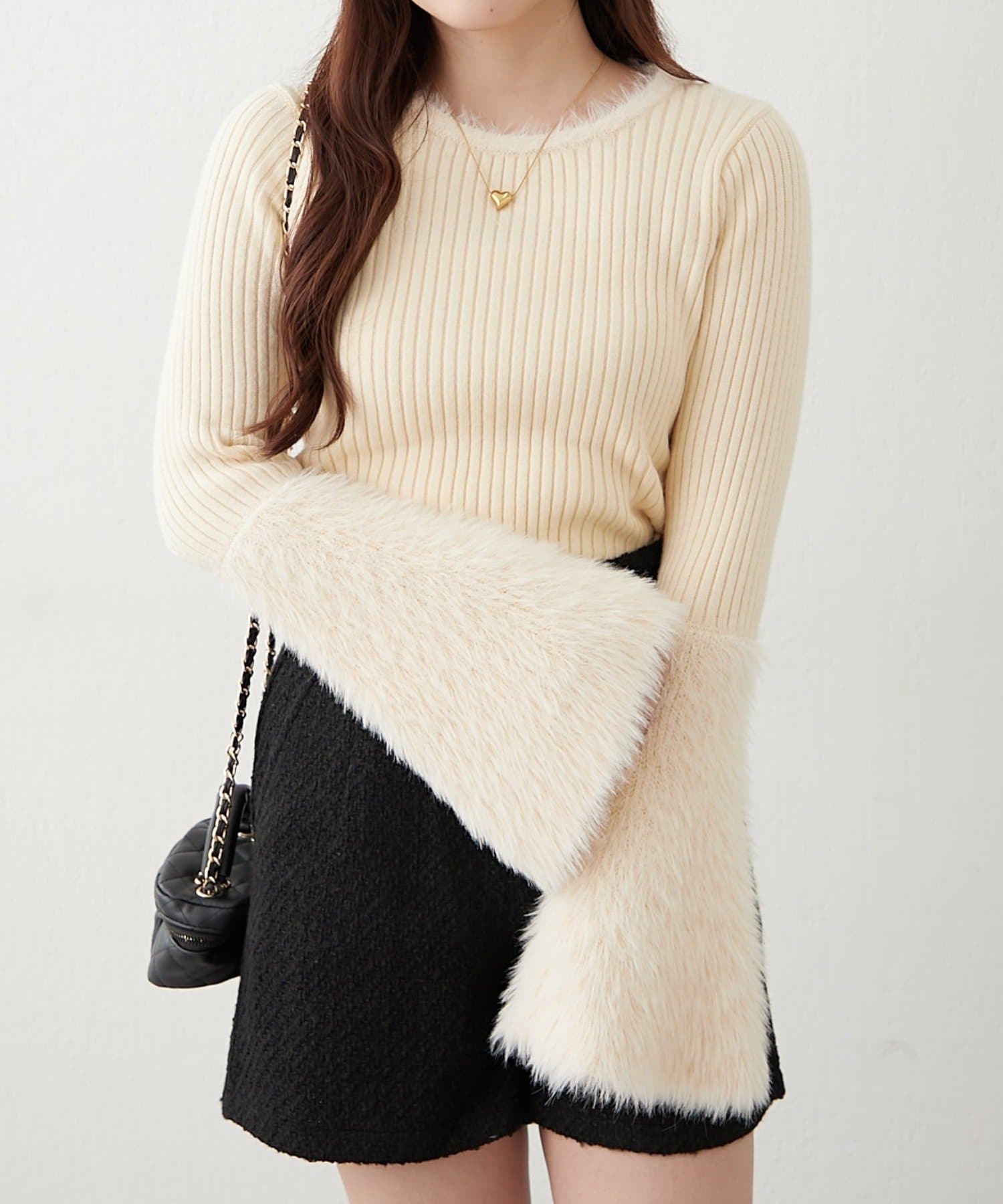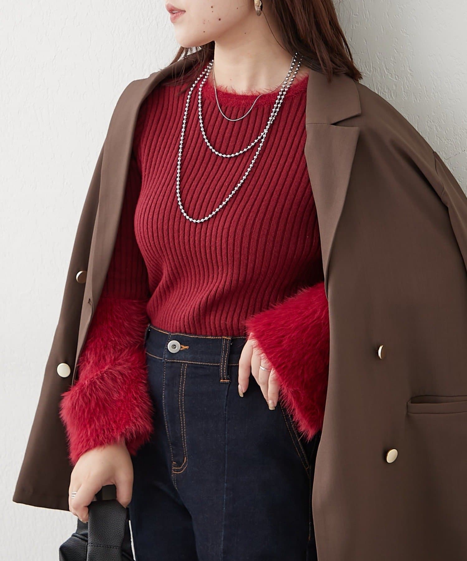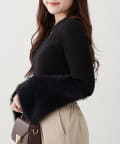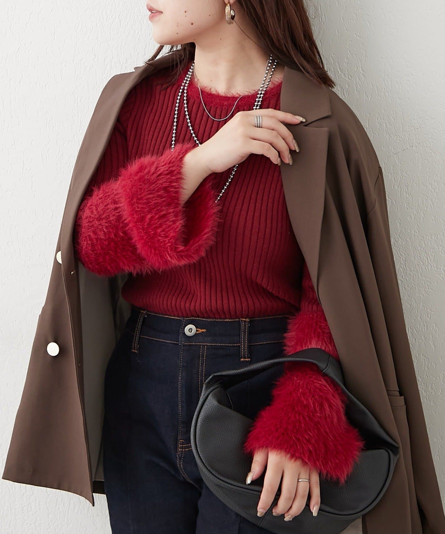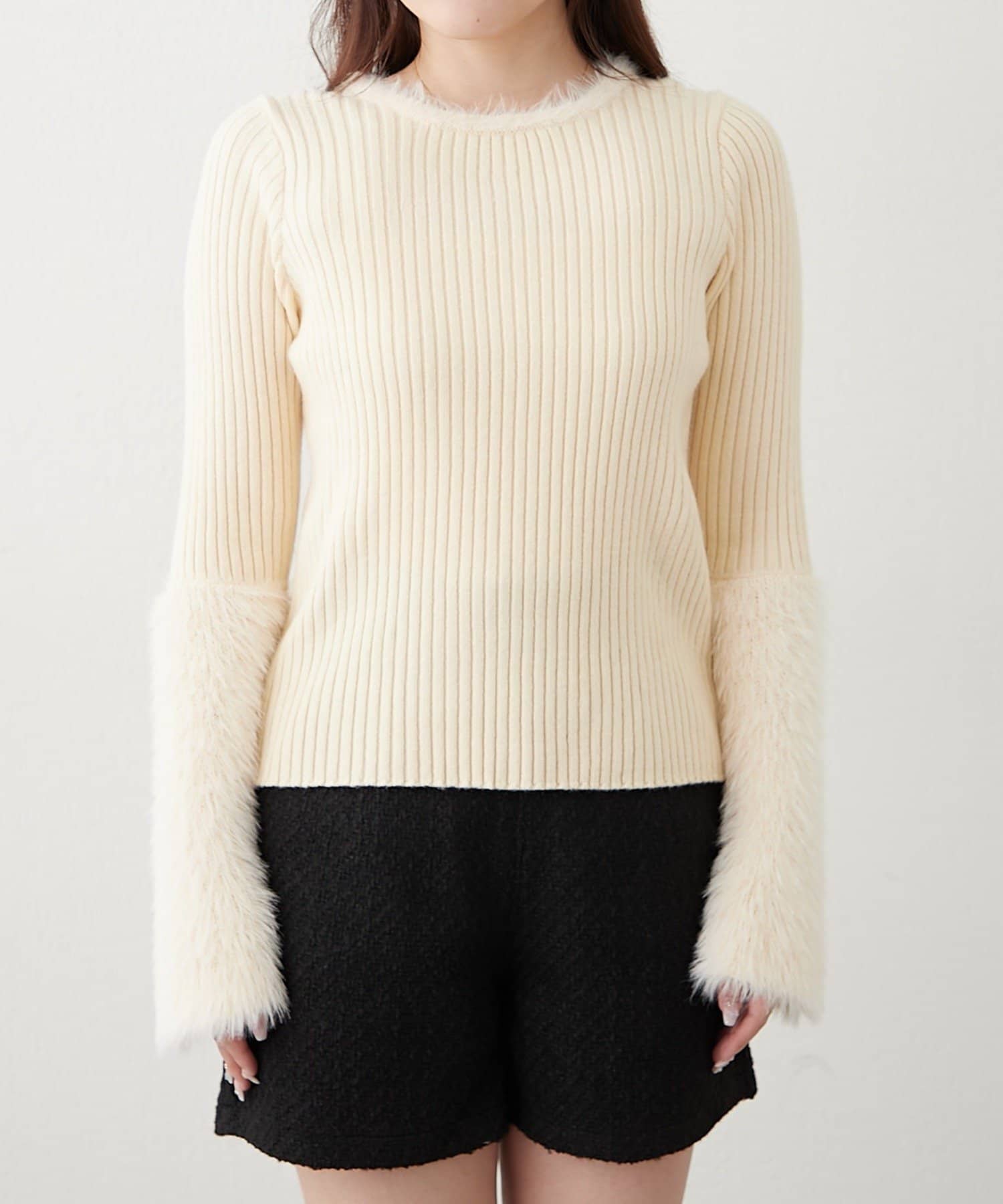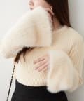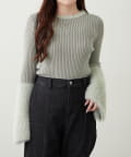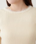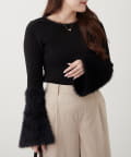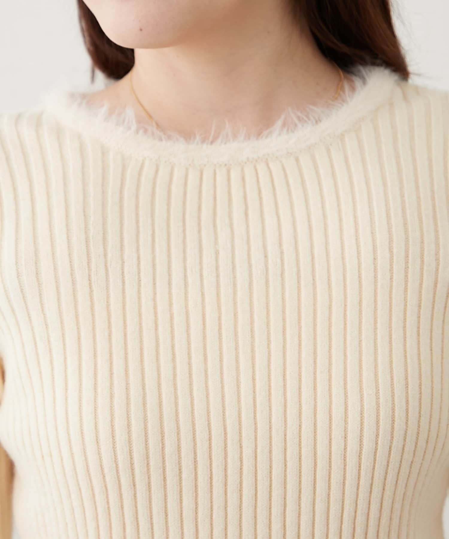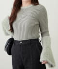 ・襟元と袖がフェザーヤーンになったニットプルオーバー