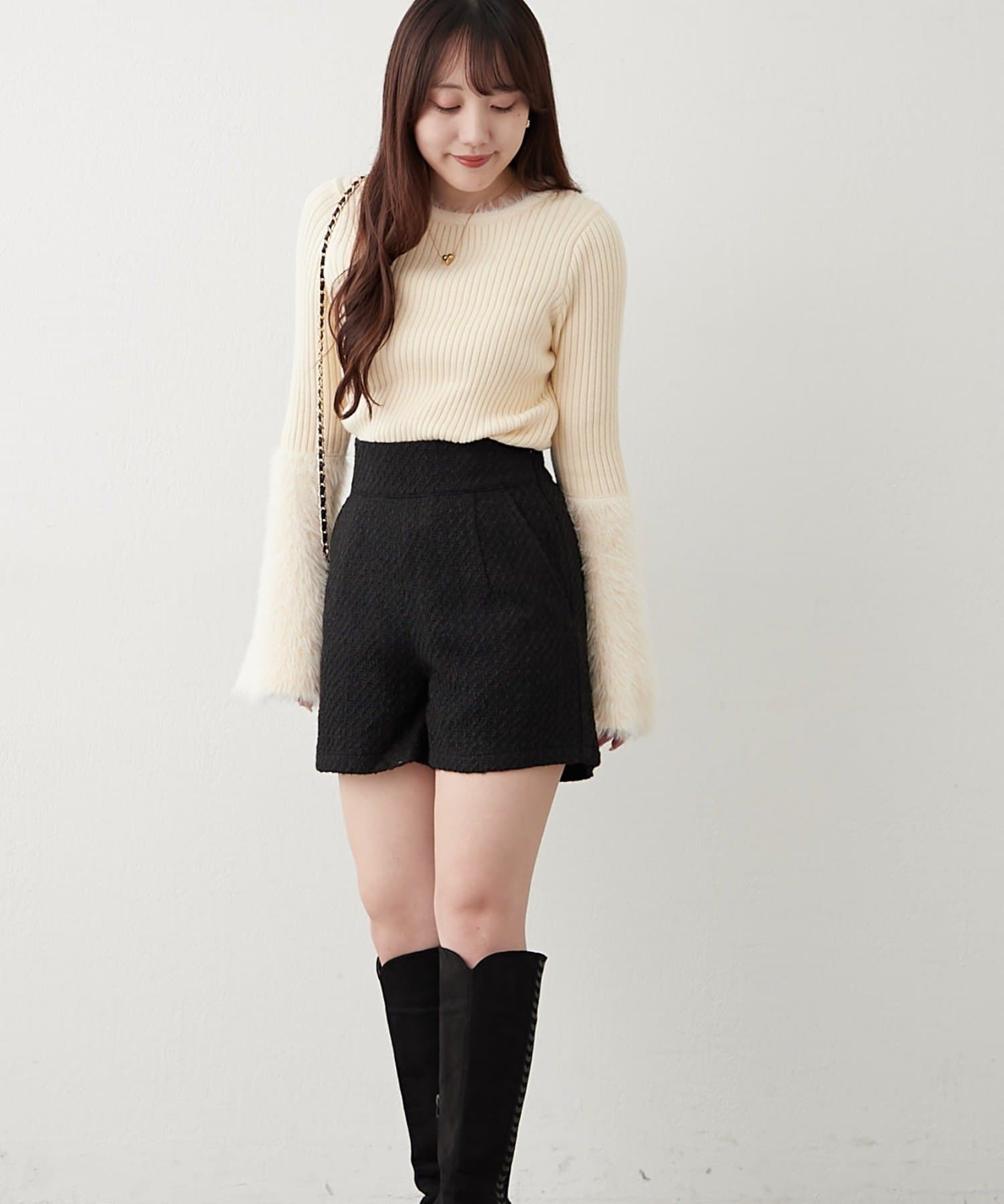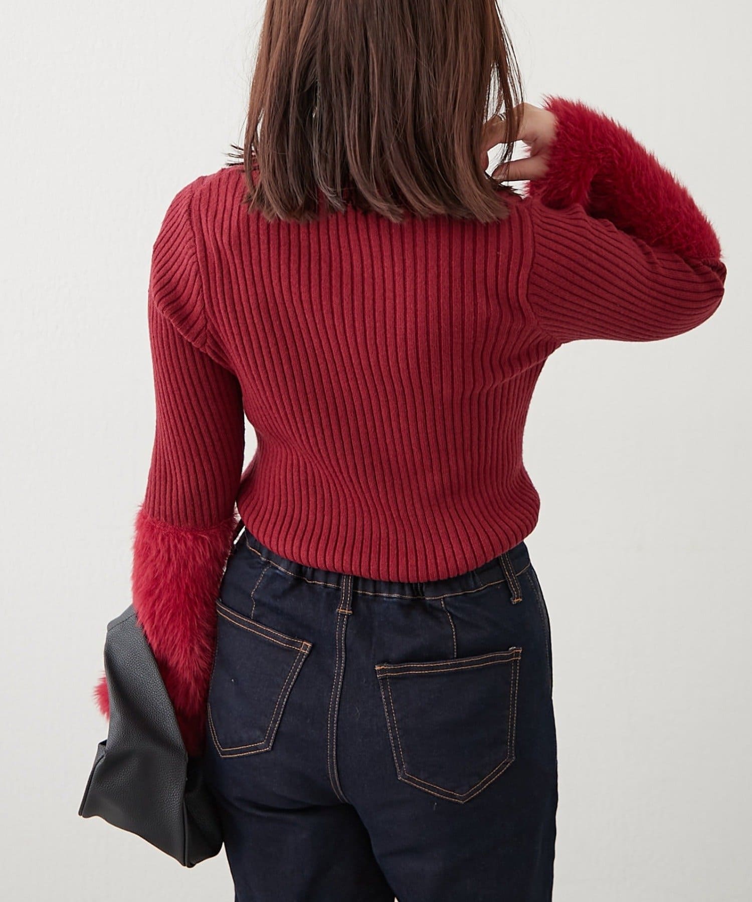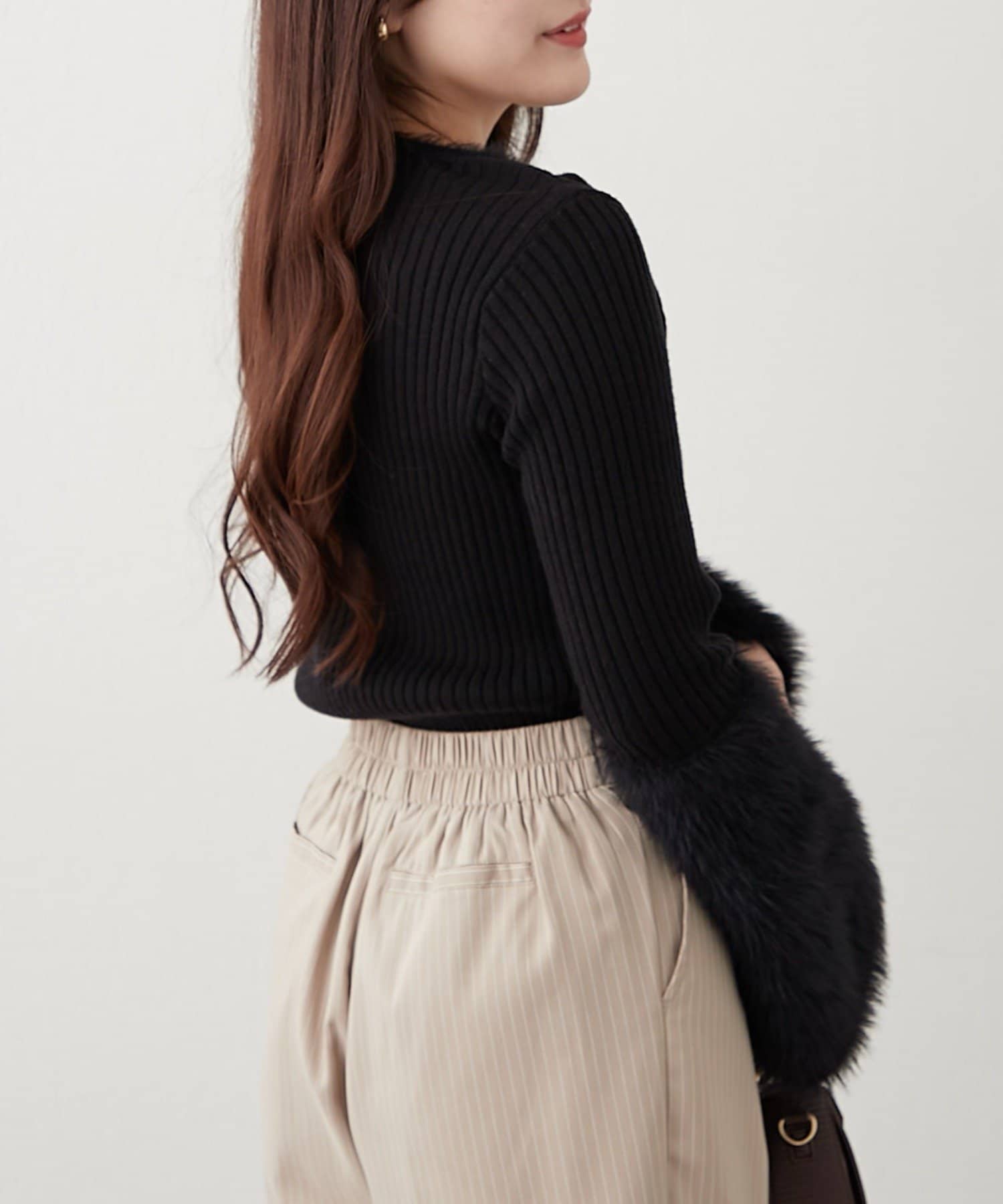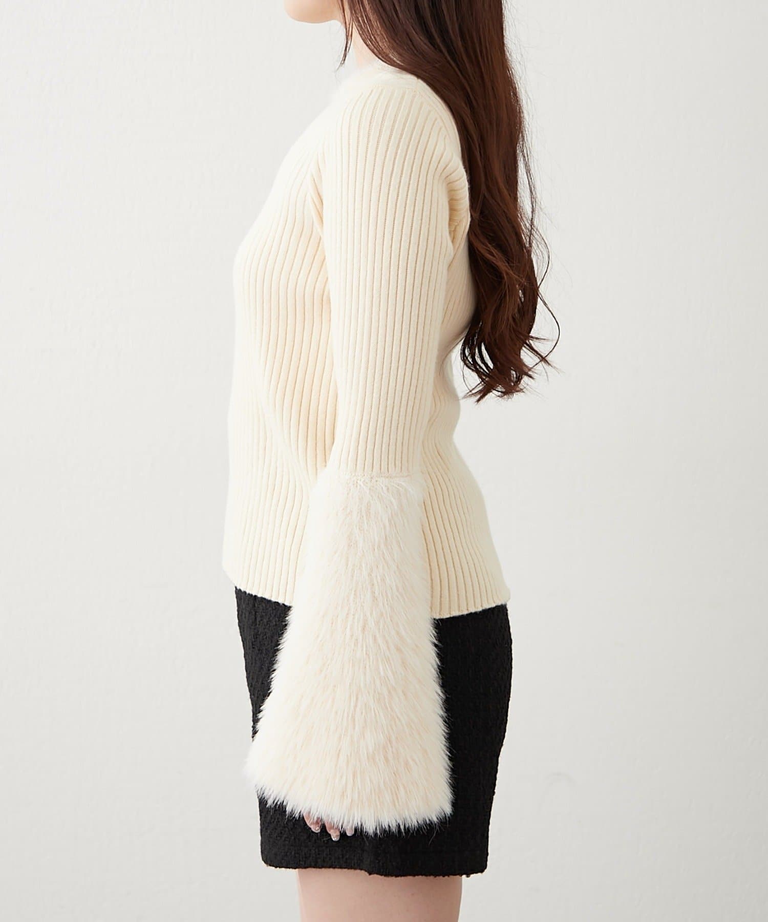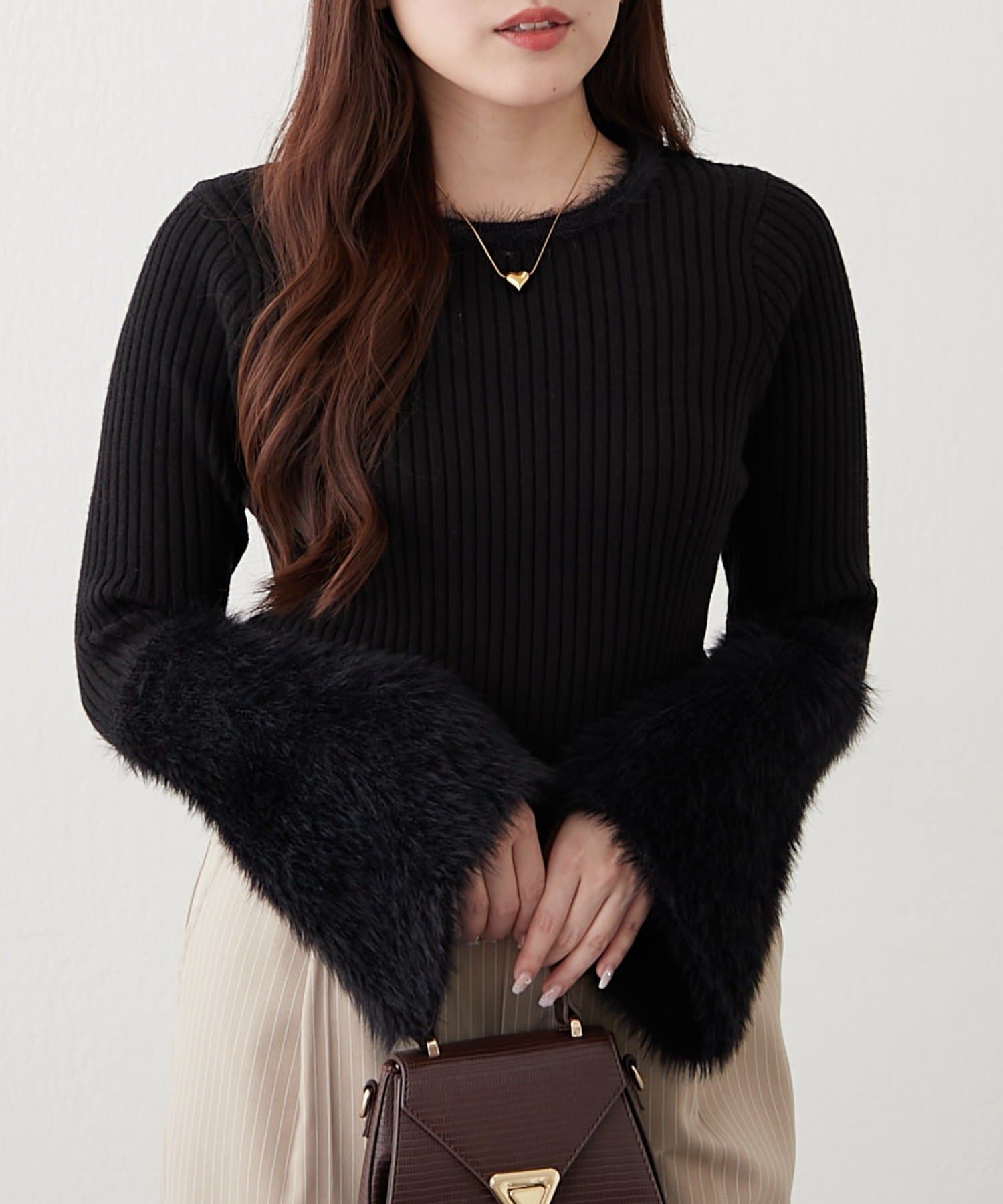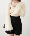 ・襟元と袖がフェザーヤーンになったニットプルオーバー