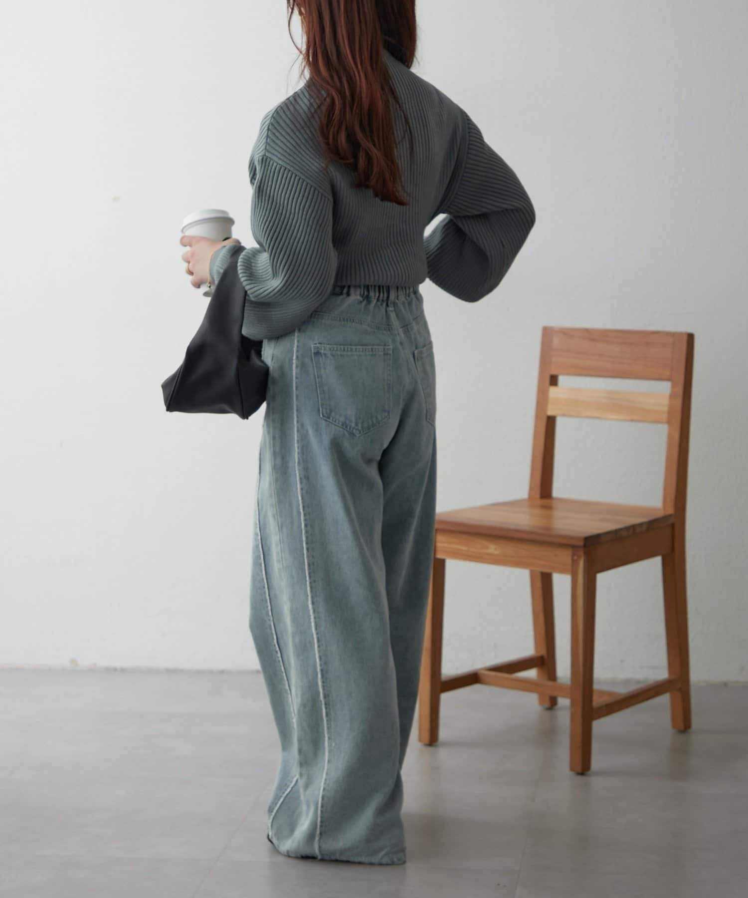・お袖にボリュームがあり程よくルーズに着こなせるニット。