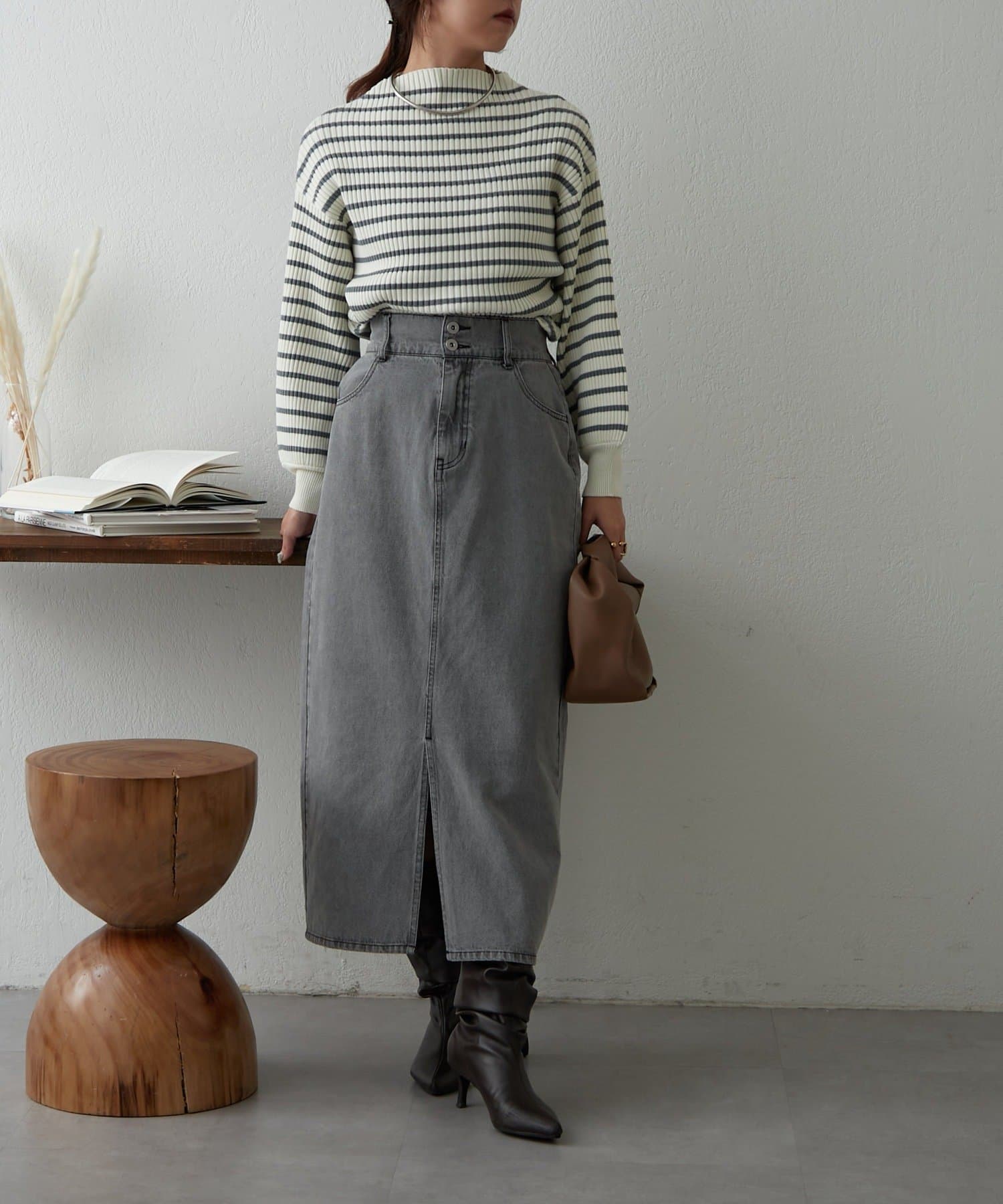 ・ロングスカートと合わせたきれいめなスタイリングもおすすめ。
