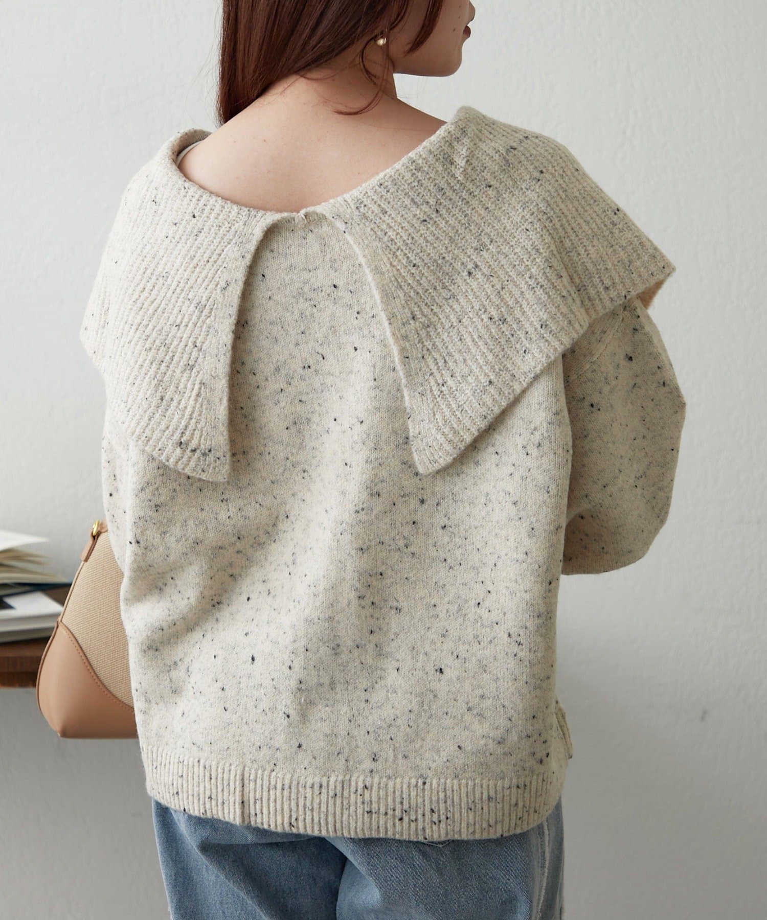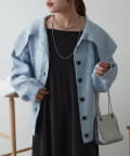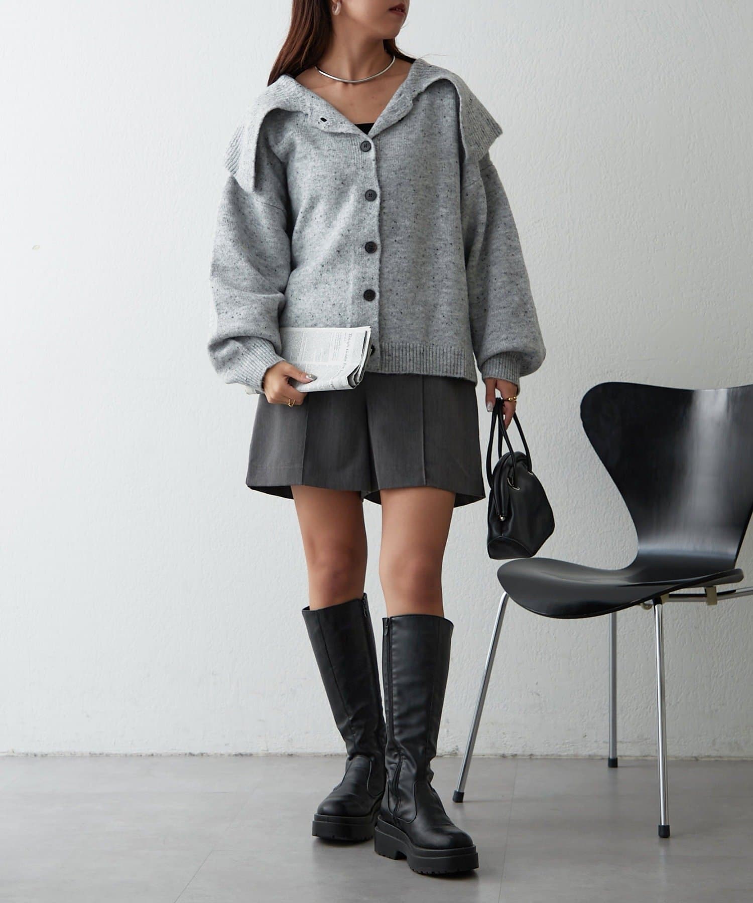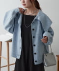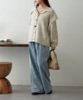 ・大きめの襟がポイントで抜け感のある秋冬の大人カジュアルスタイルに。