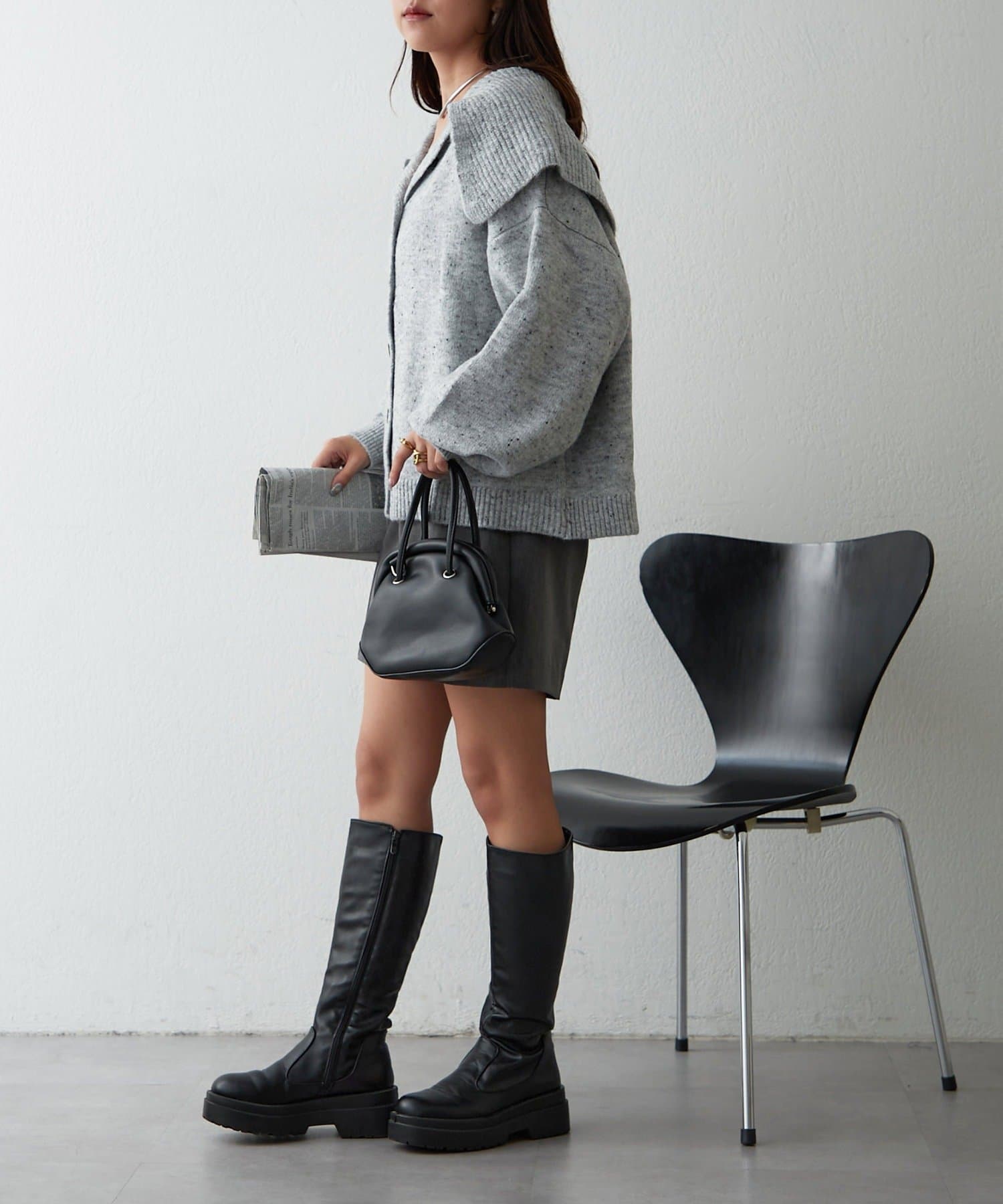 ・定番のコンパクトなミニボトムにロングブーツスタイルで今っぽコーデに。