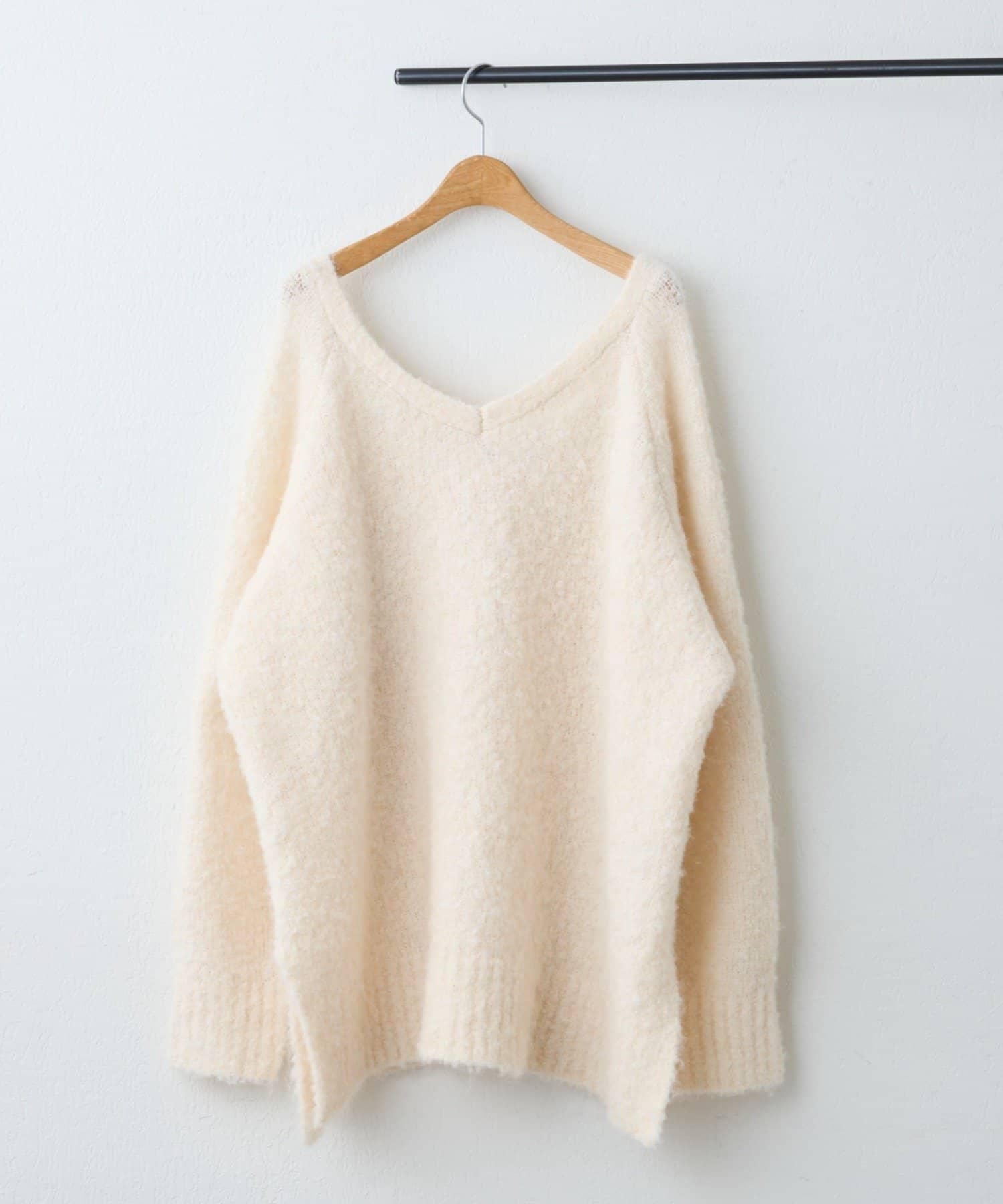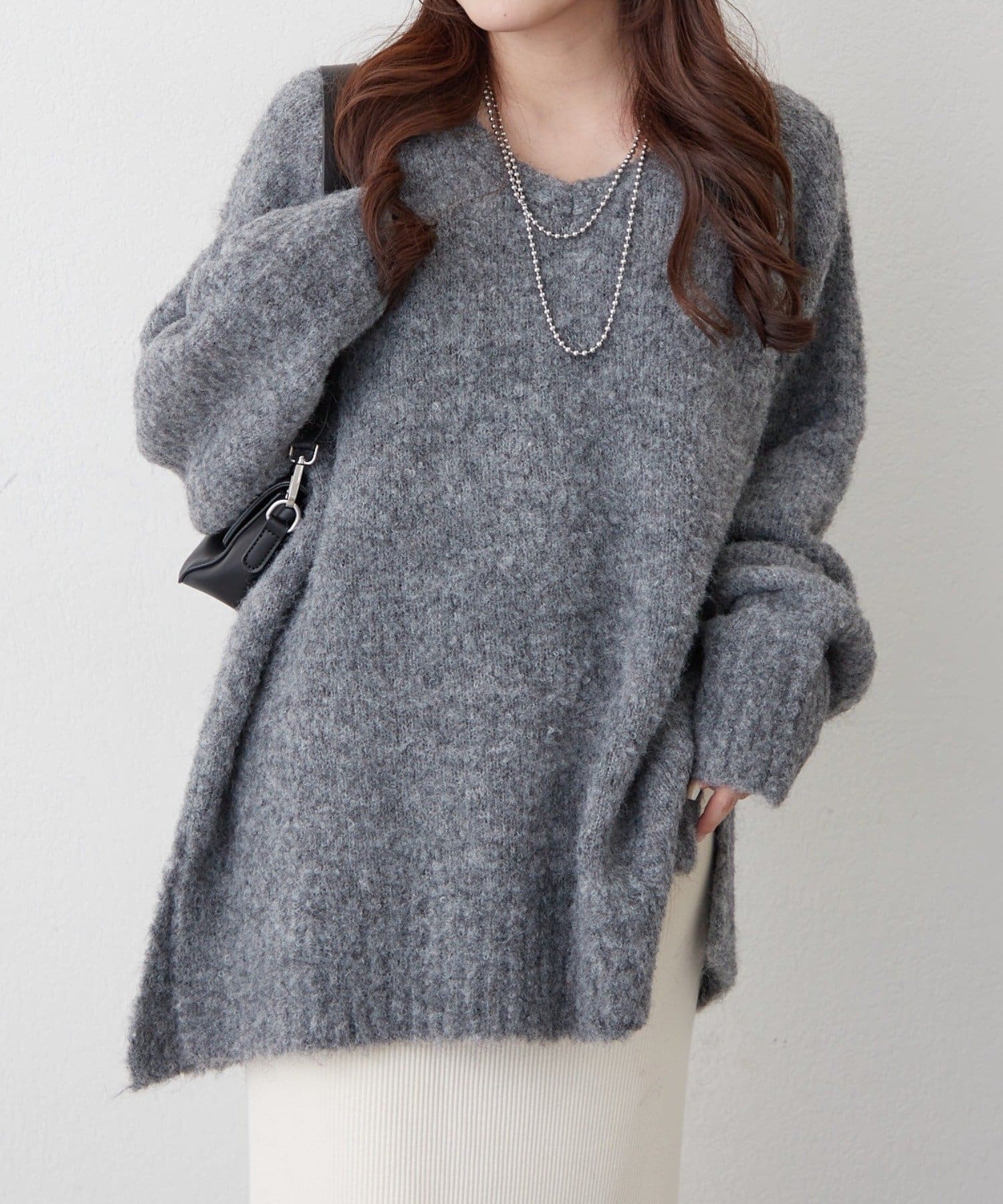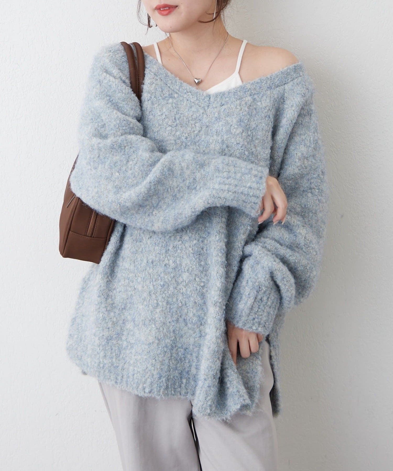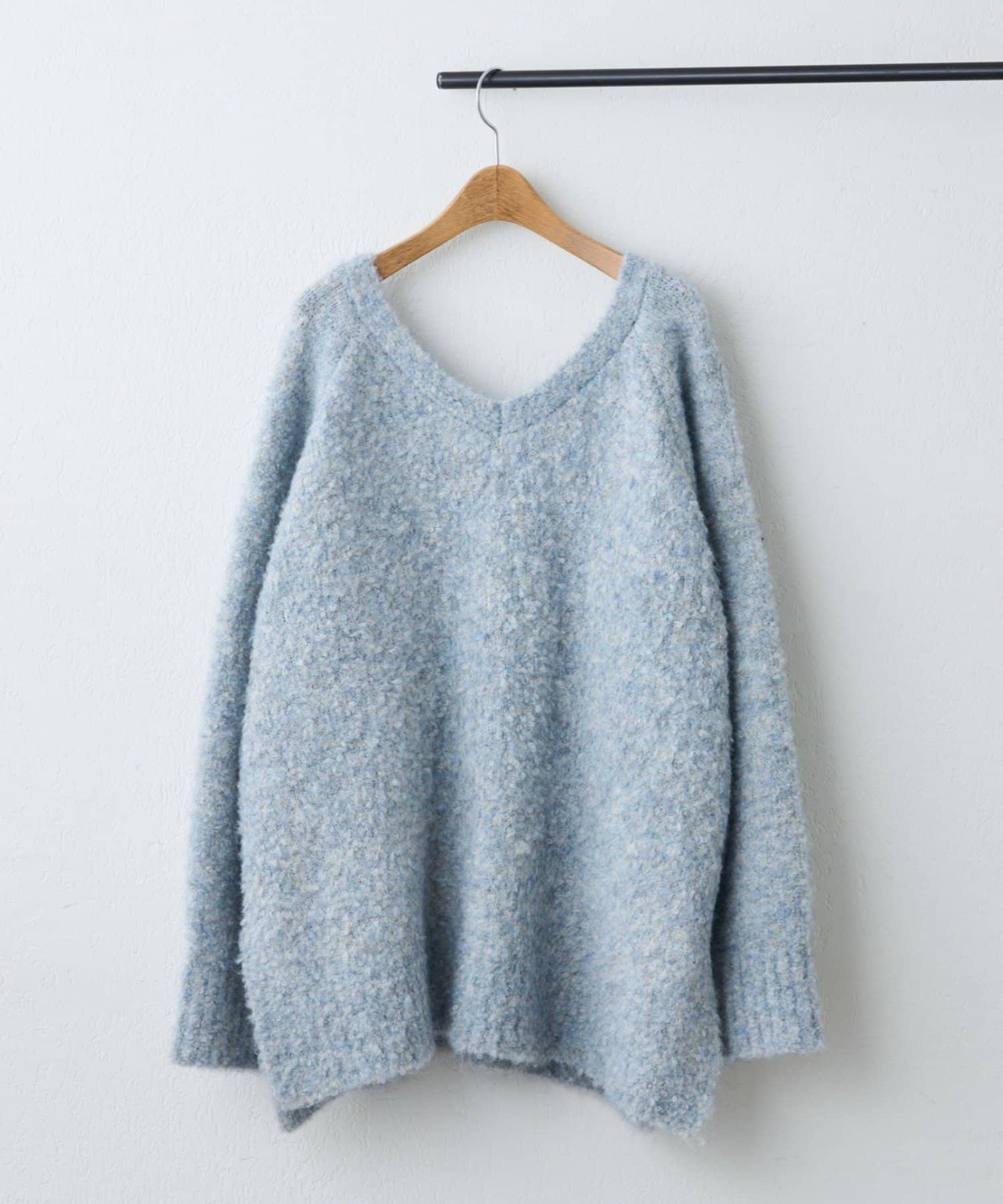 ・起毛がかったブークレ素材とMIXヤーンで表情豊かなニット
