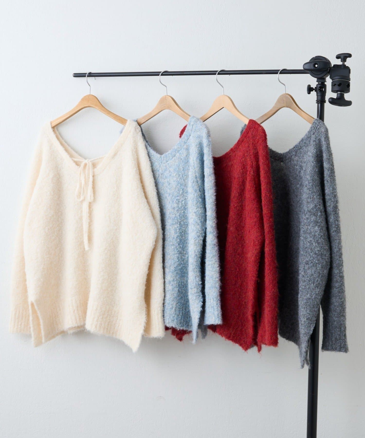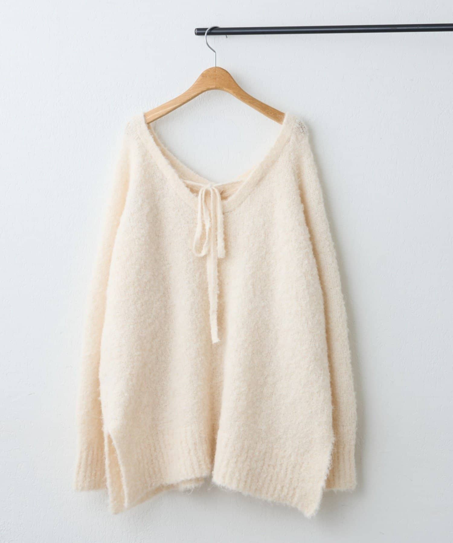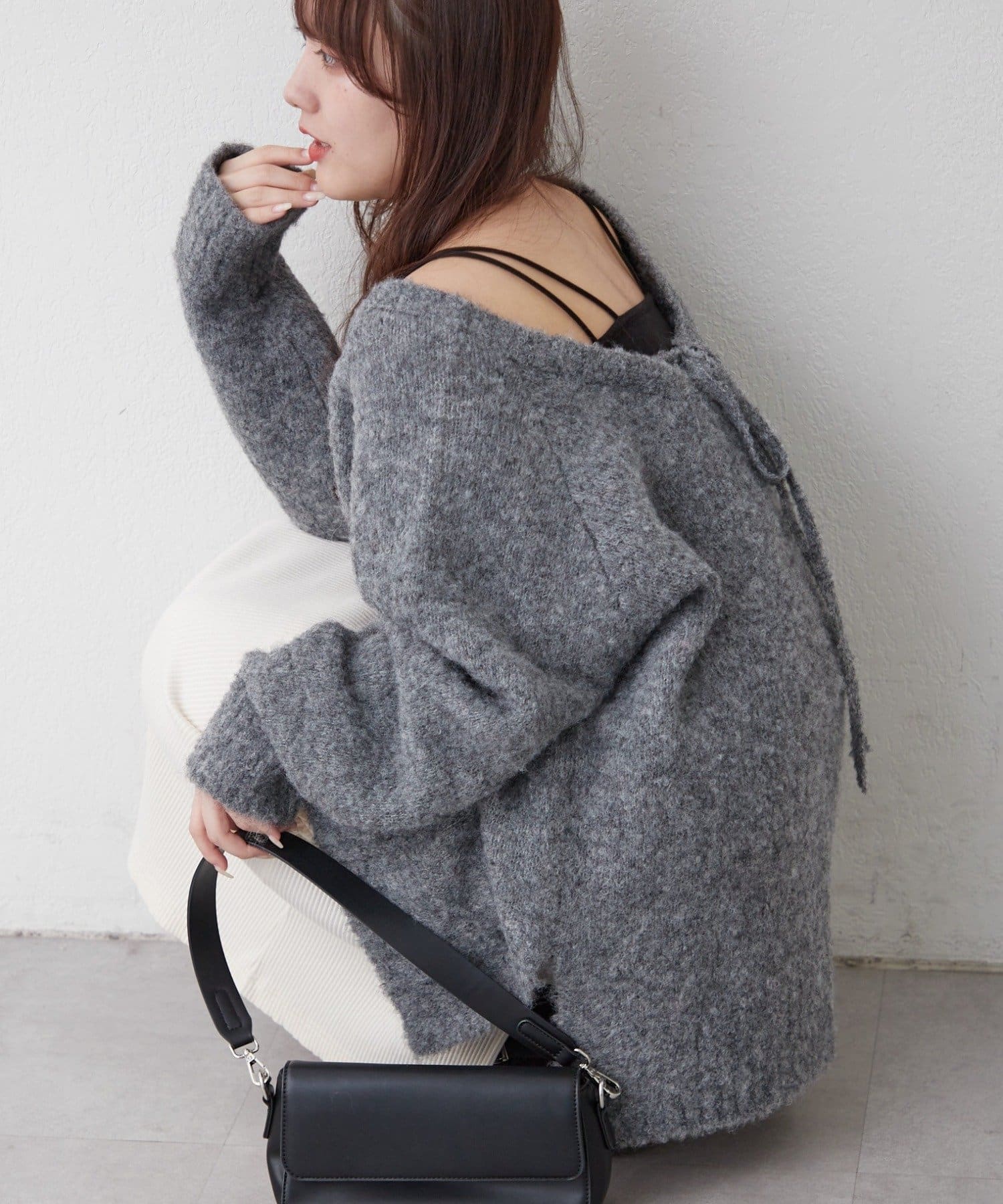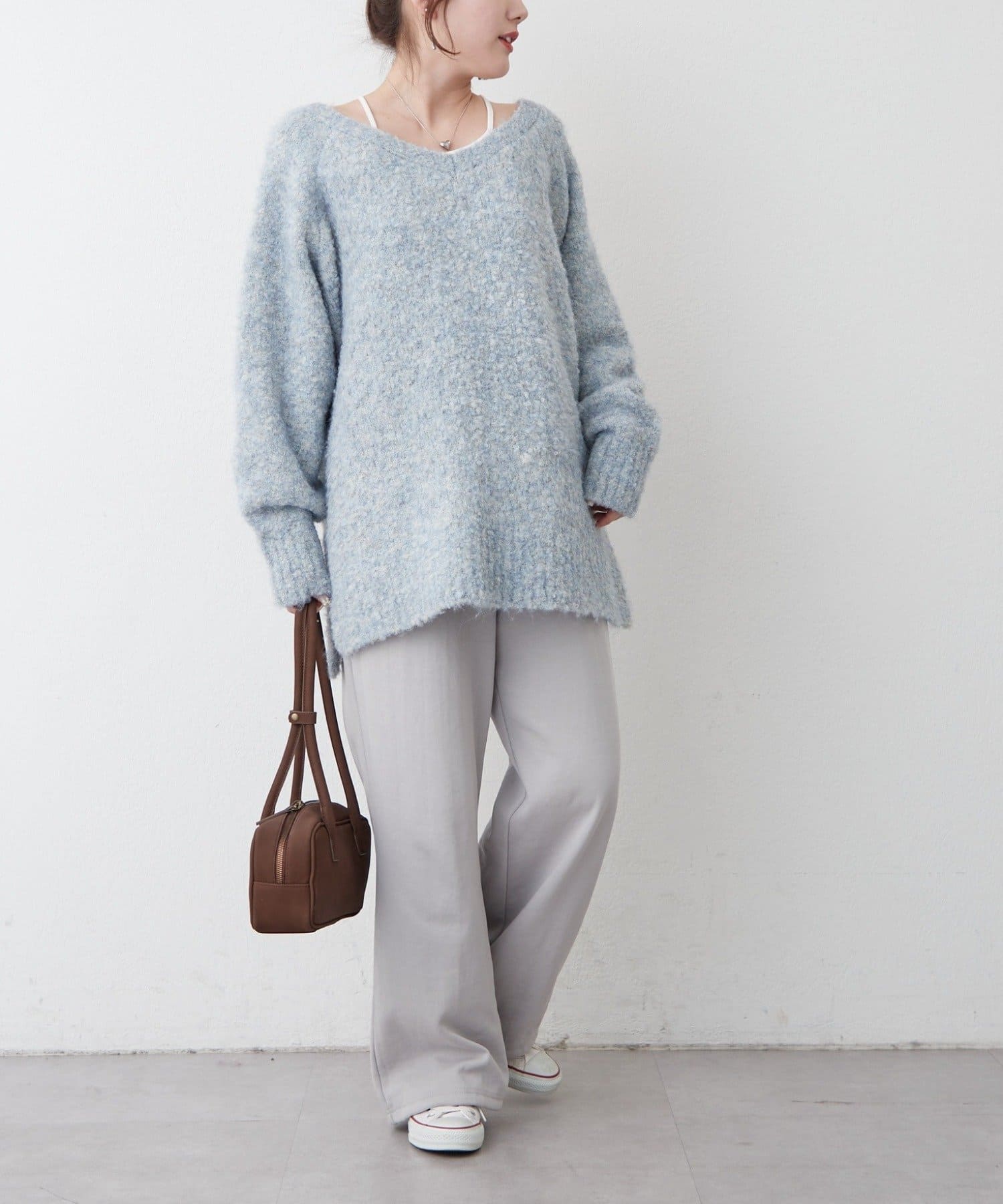 ・起毛がかったブークレ素材とMIXヤーンで表情豊かなニット